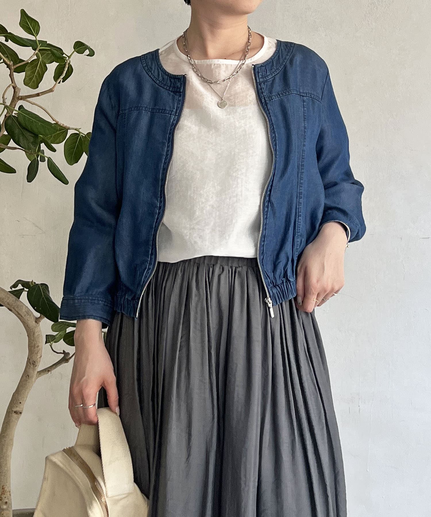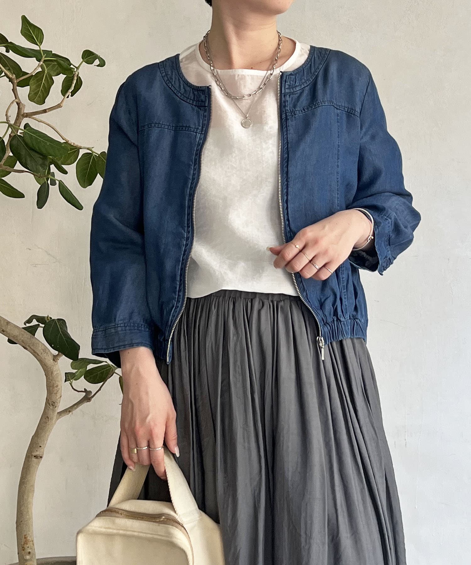 カジュアルすぎず柔らかい風合いが女性らしいデニムジャケット