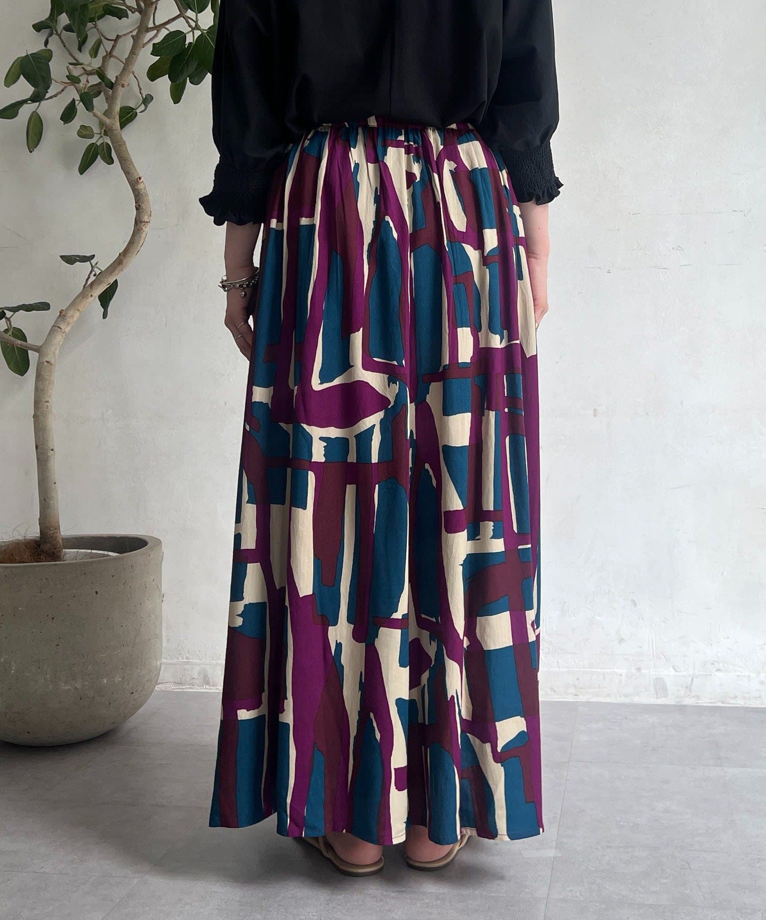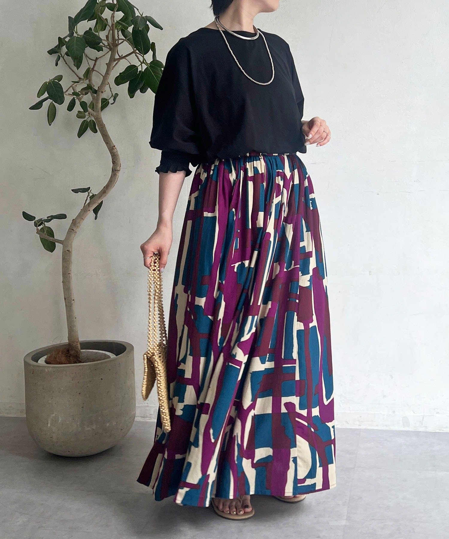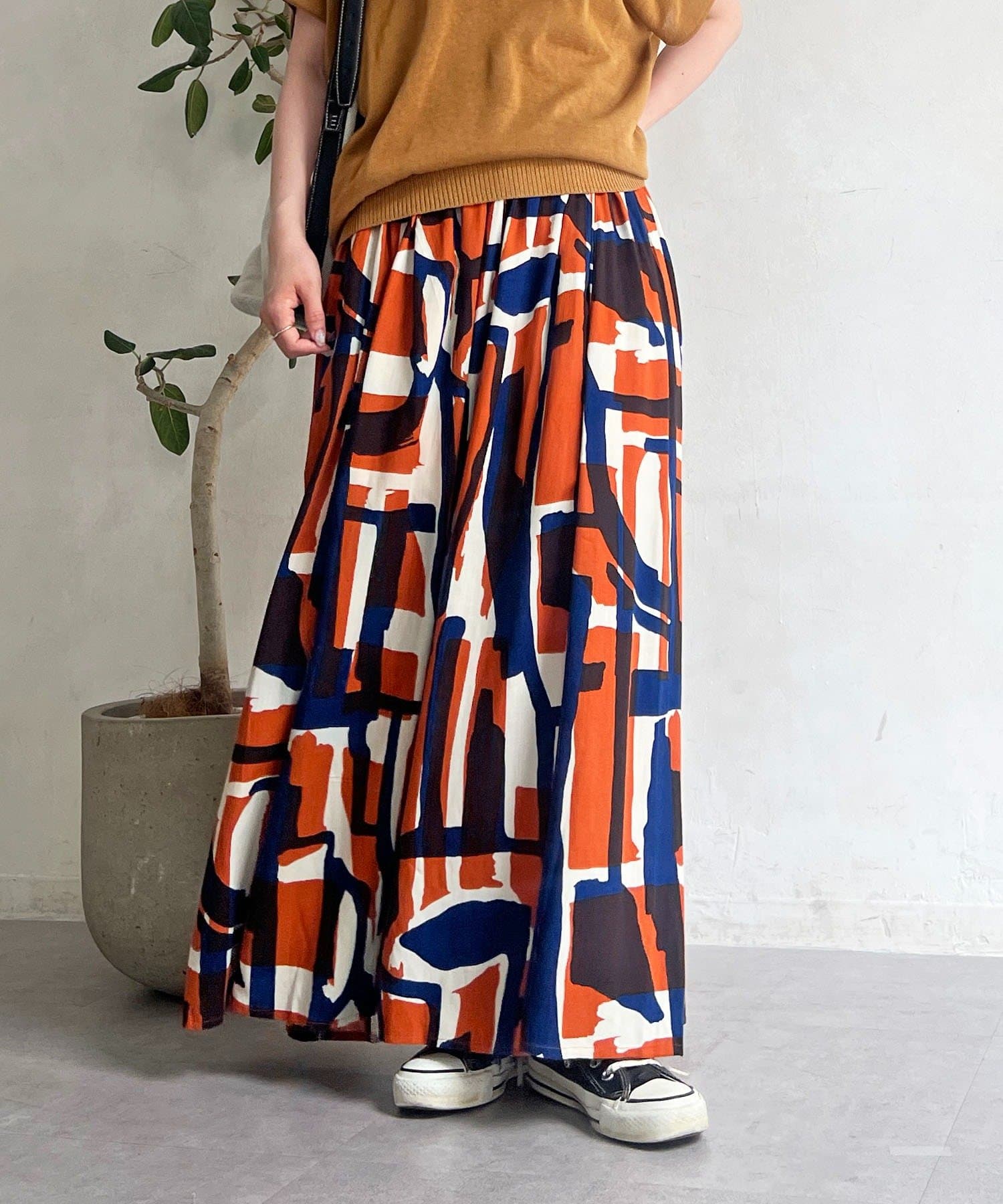 コーディネートの主役になるブロック柄スカート