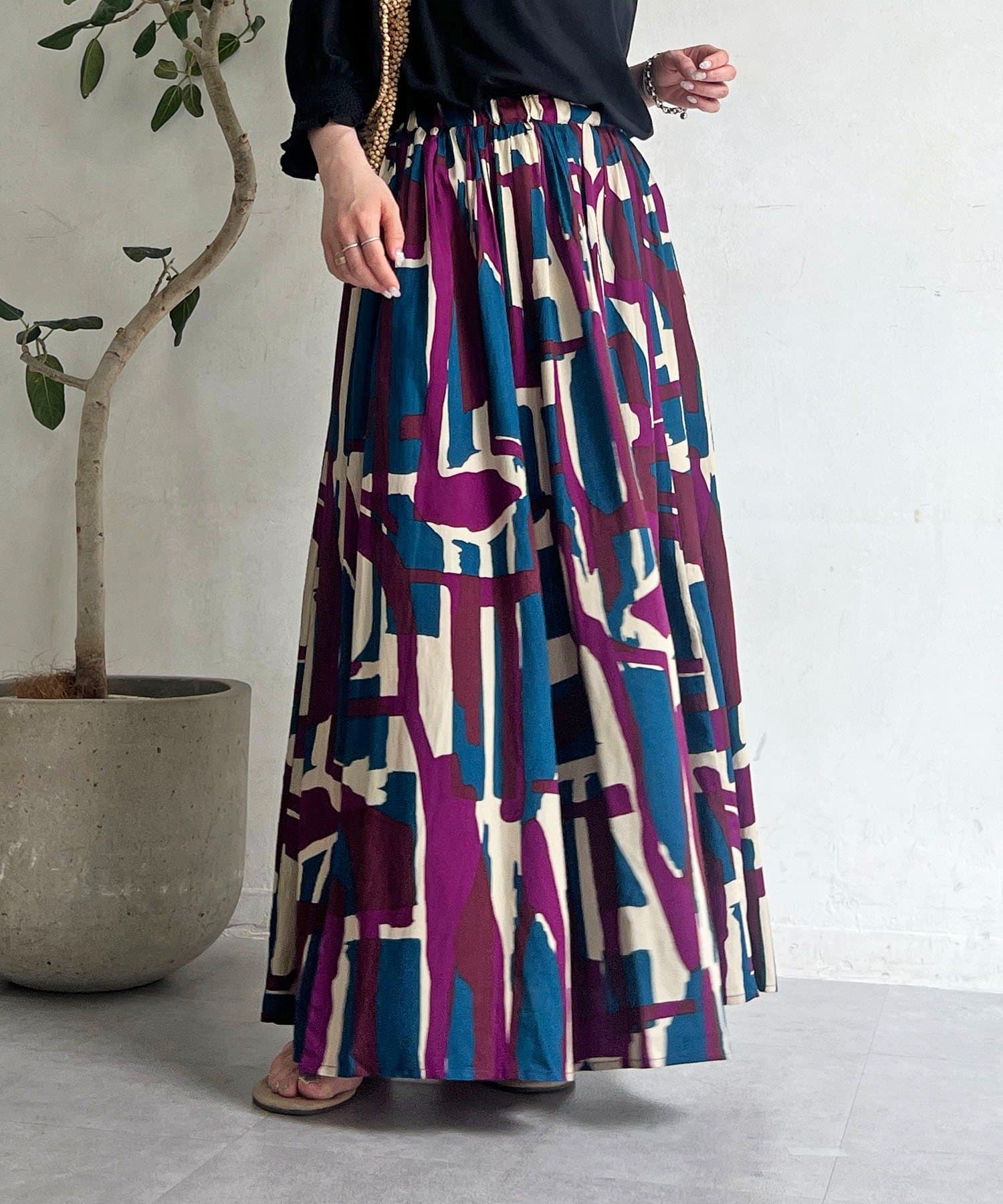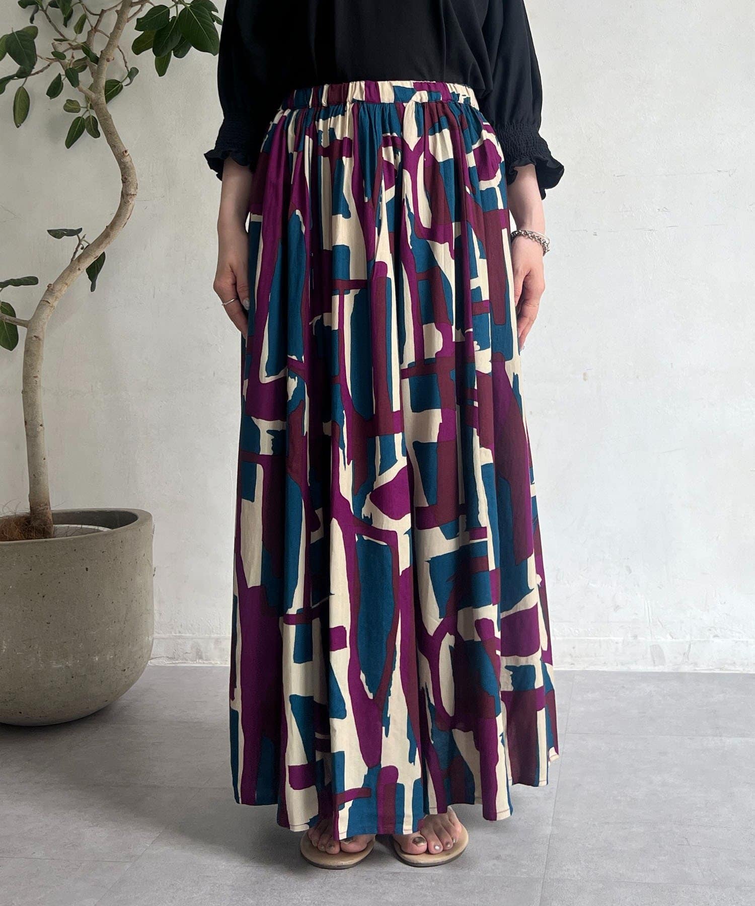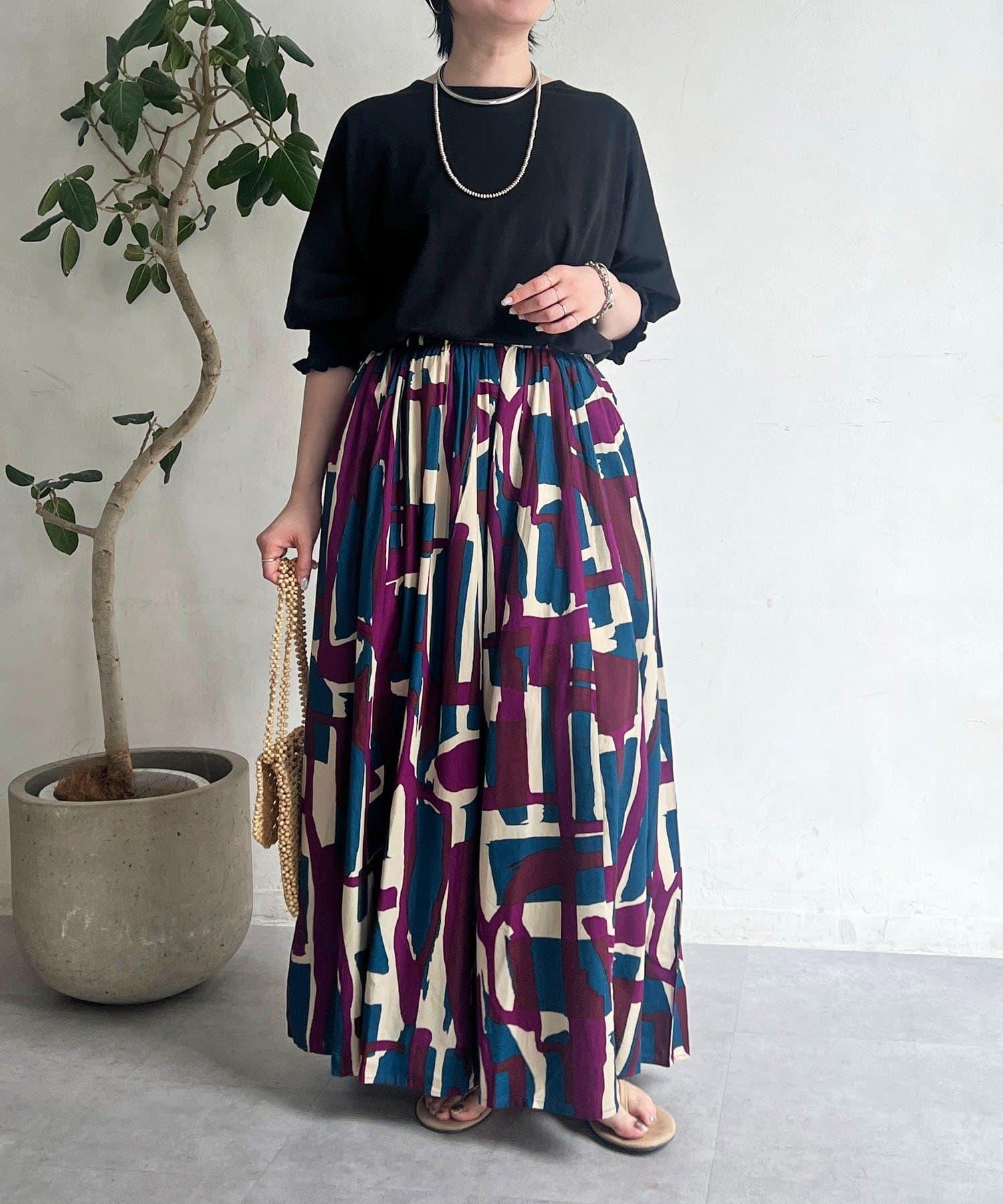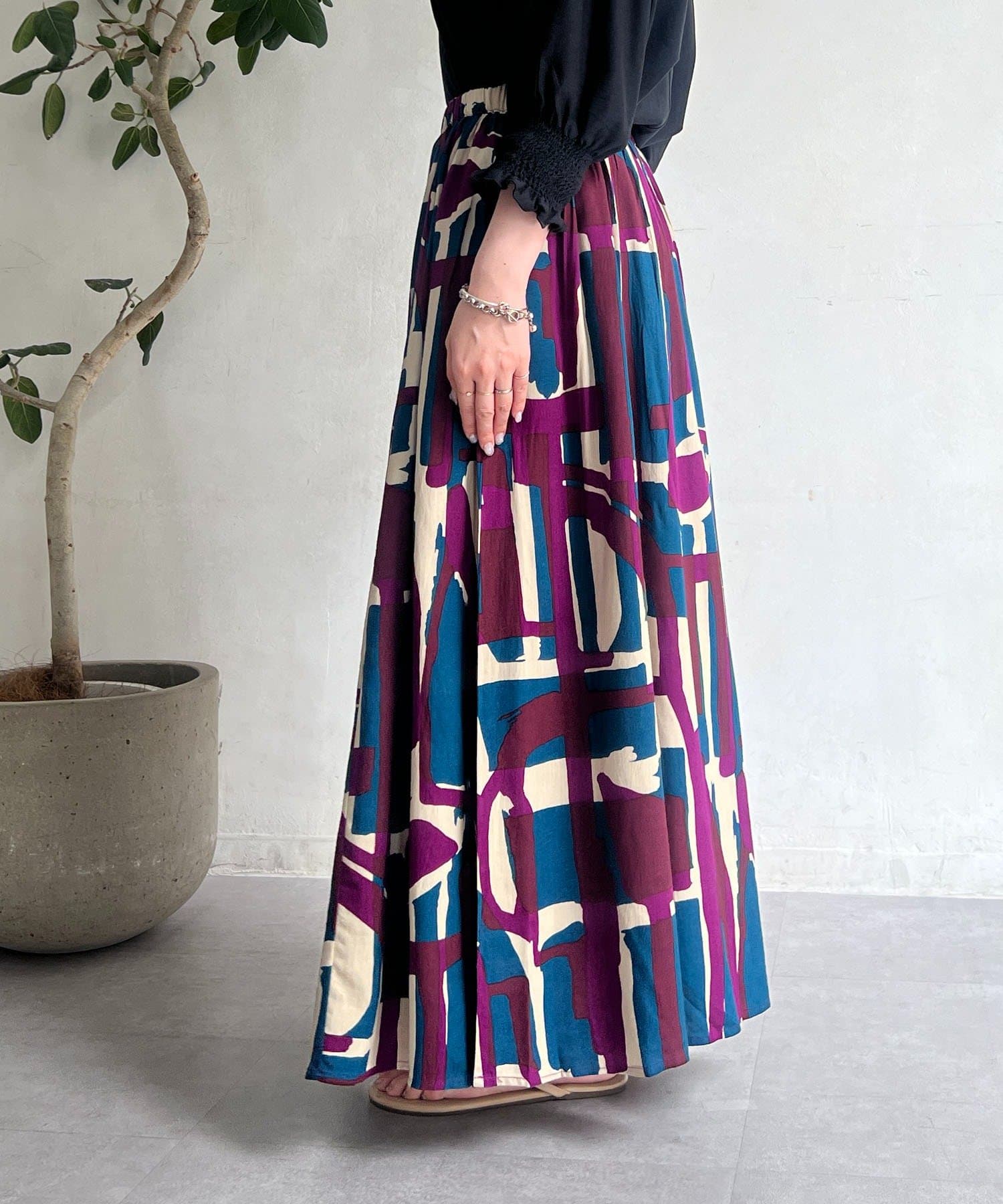 コーディネートの主役になるブロック柄スカート
