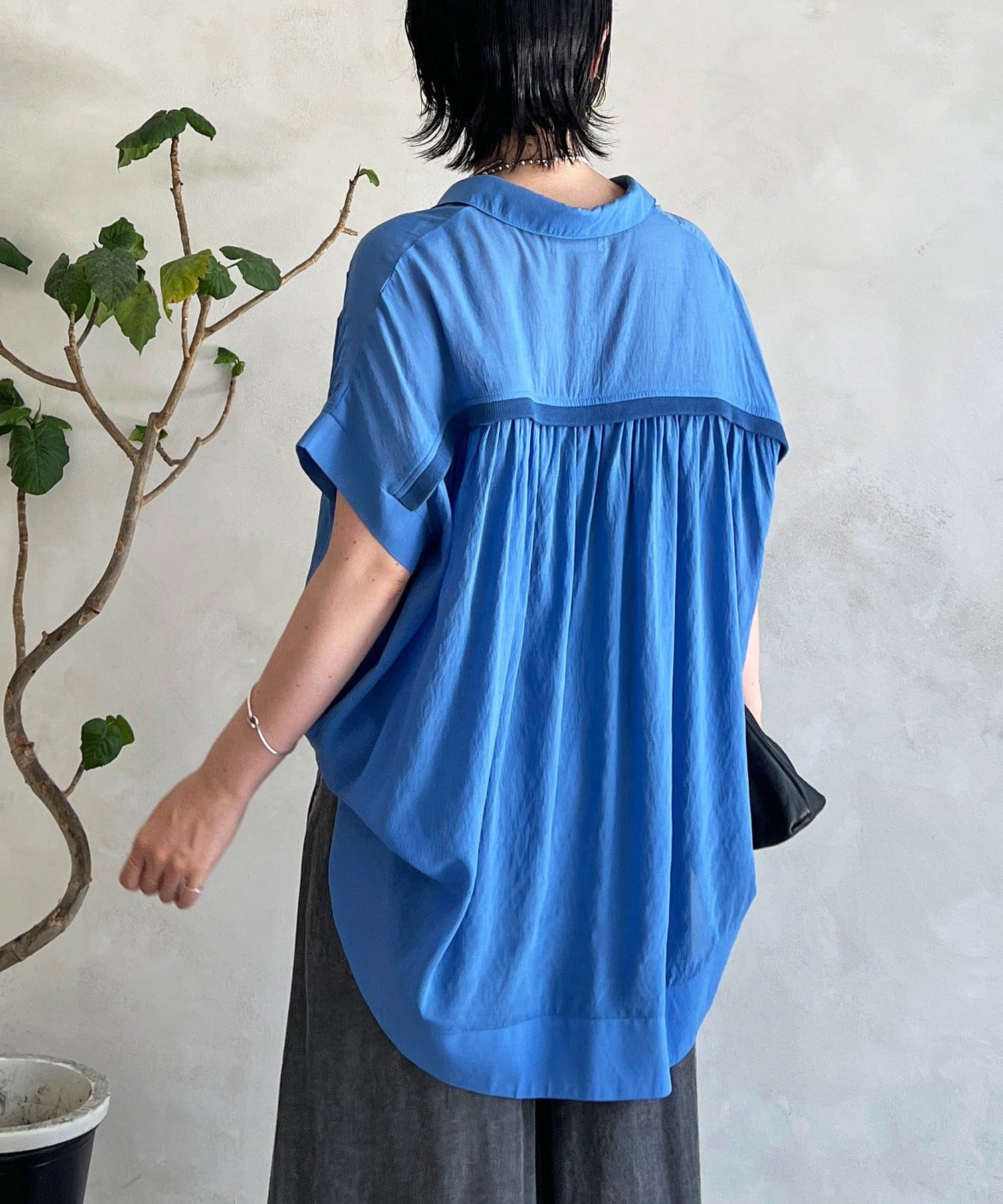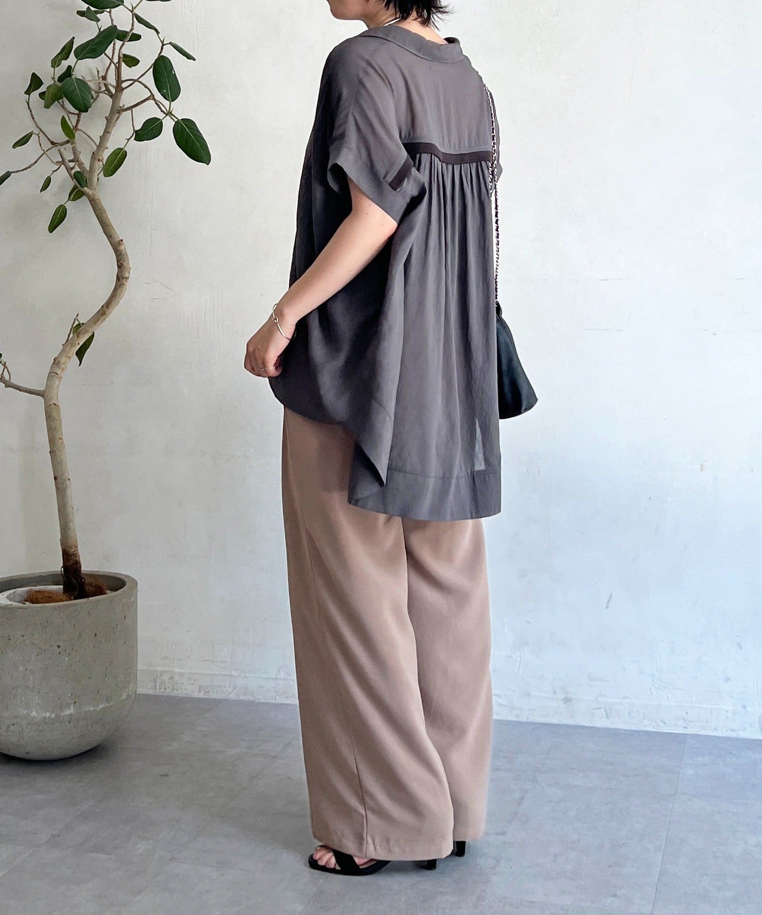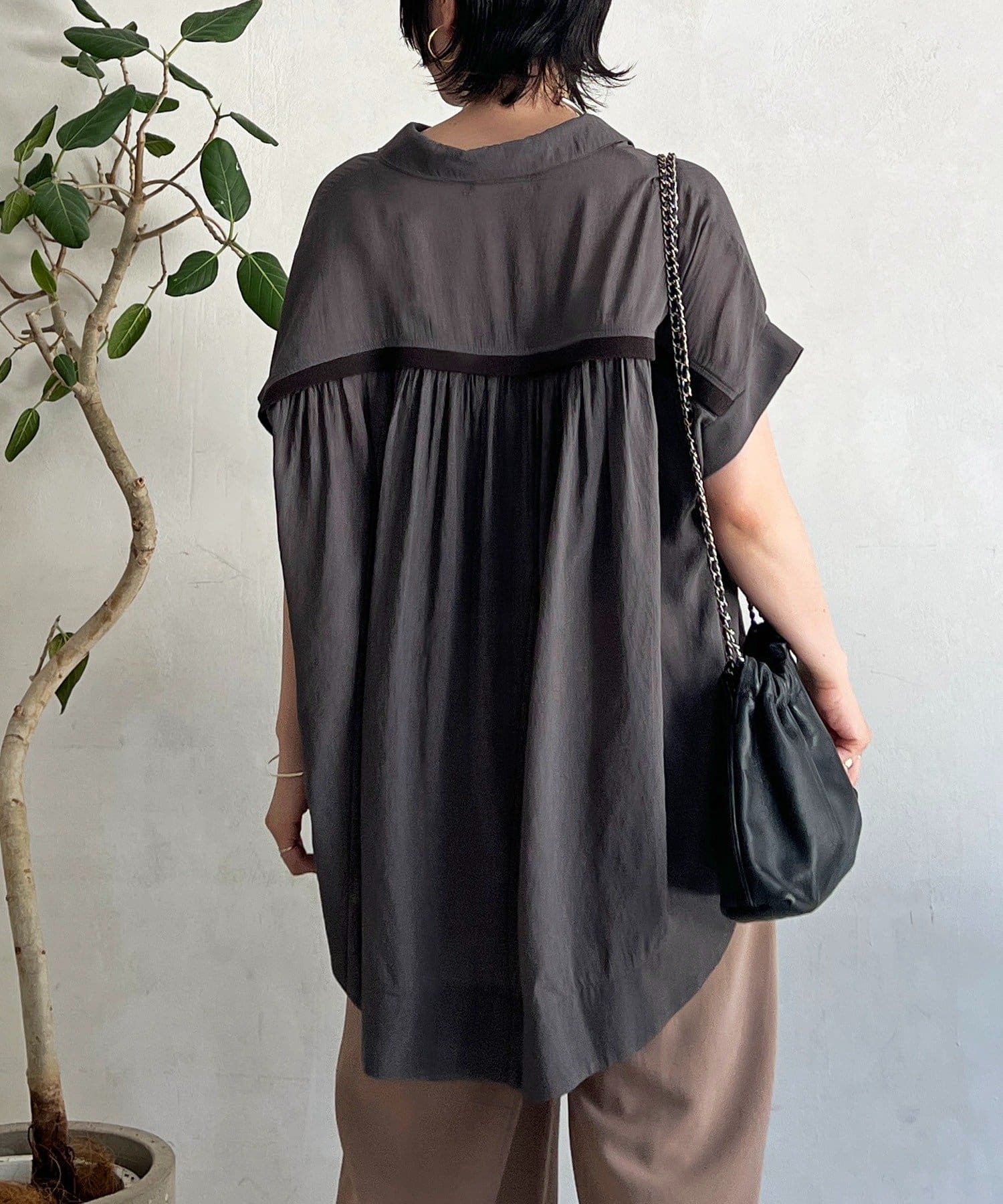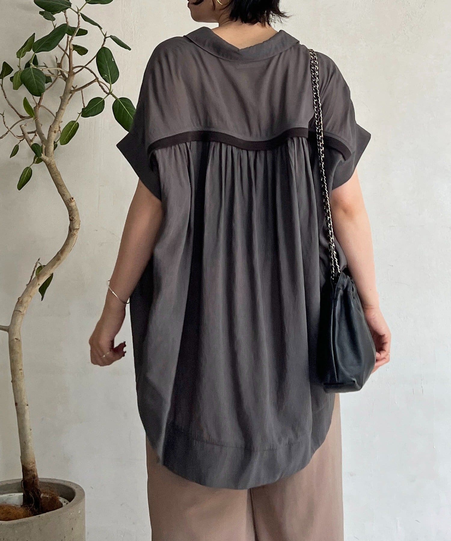 柔らかい風合いとバックギャザーデザインが華やかなブラウス