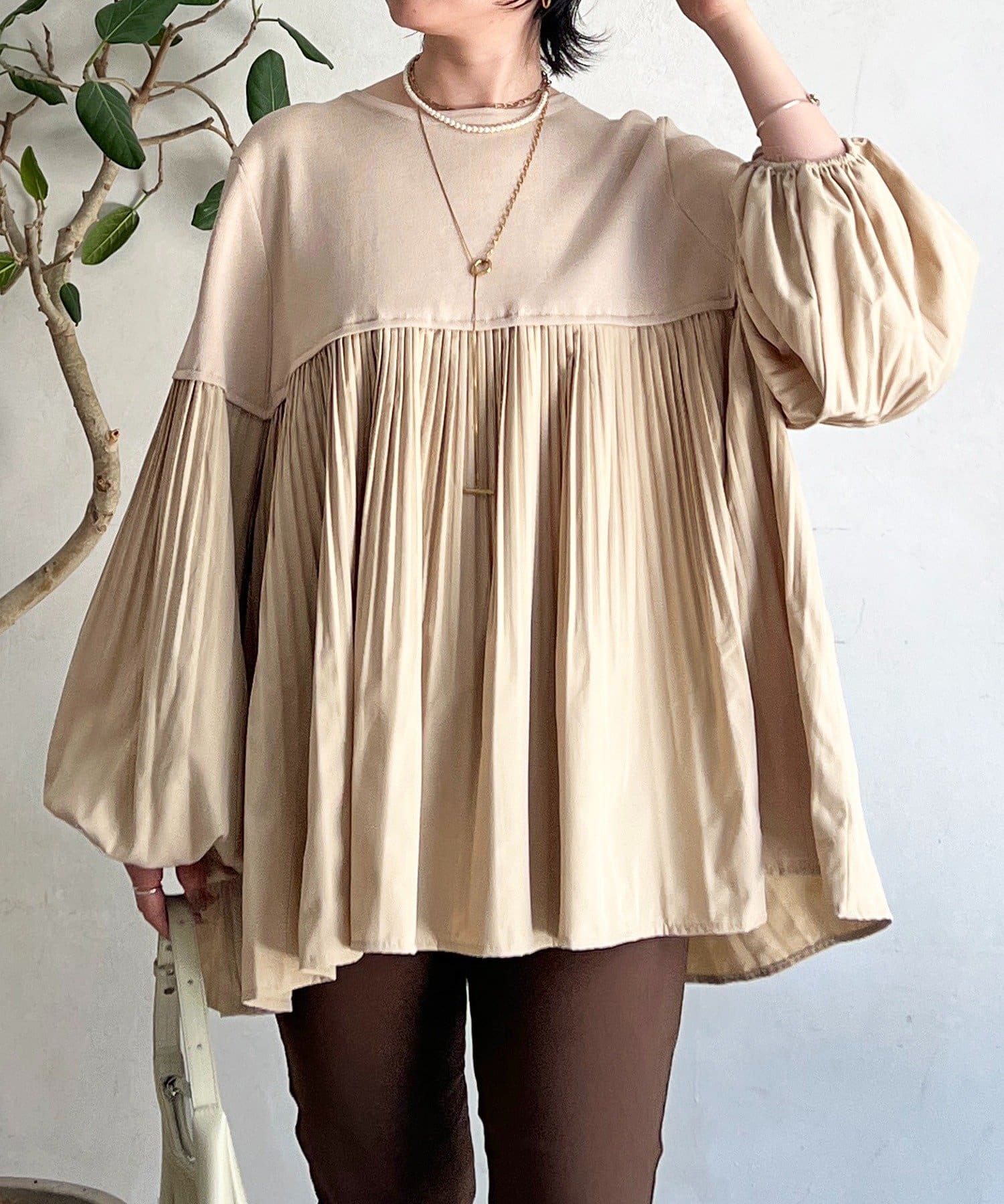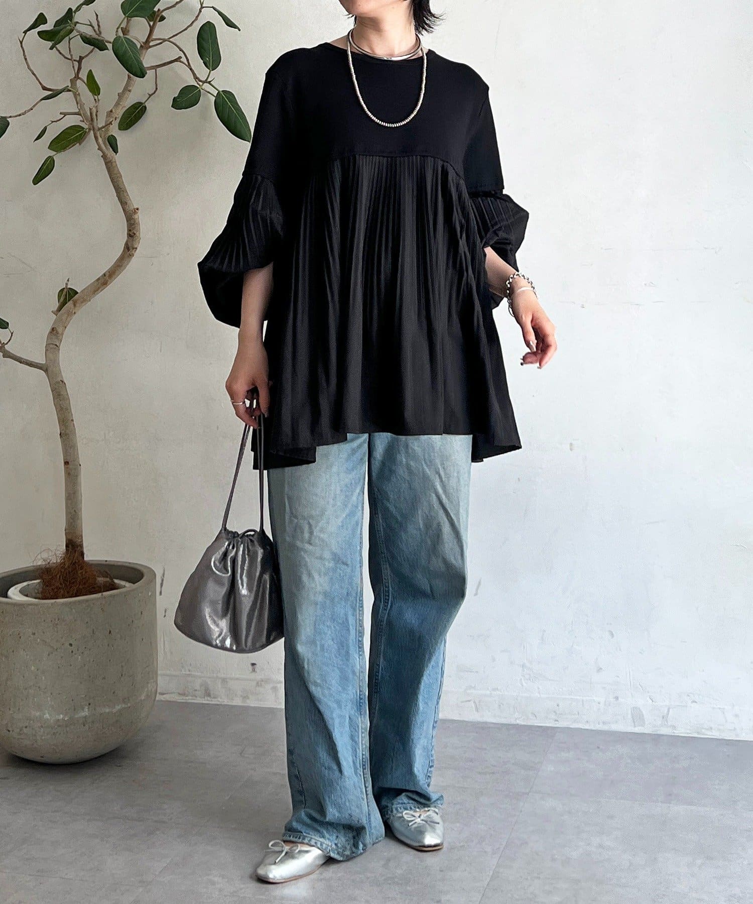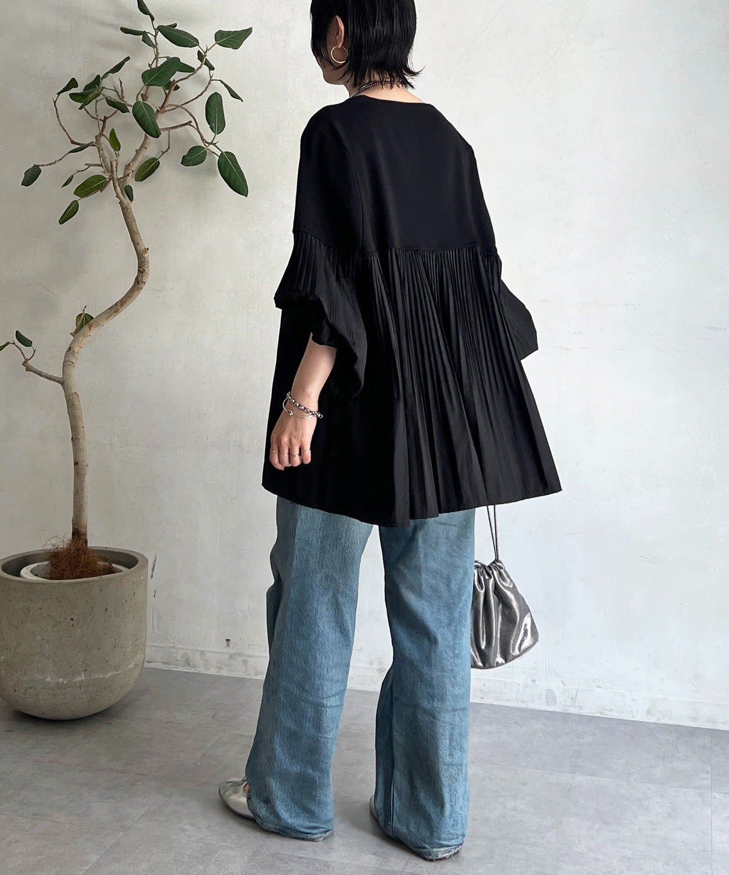 プリーツの切替で体型カバーとフェミニンさが叶うドッキングカットソー