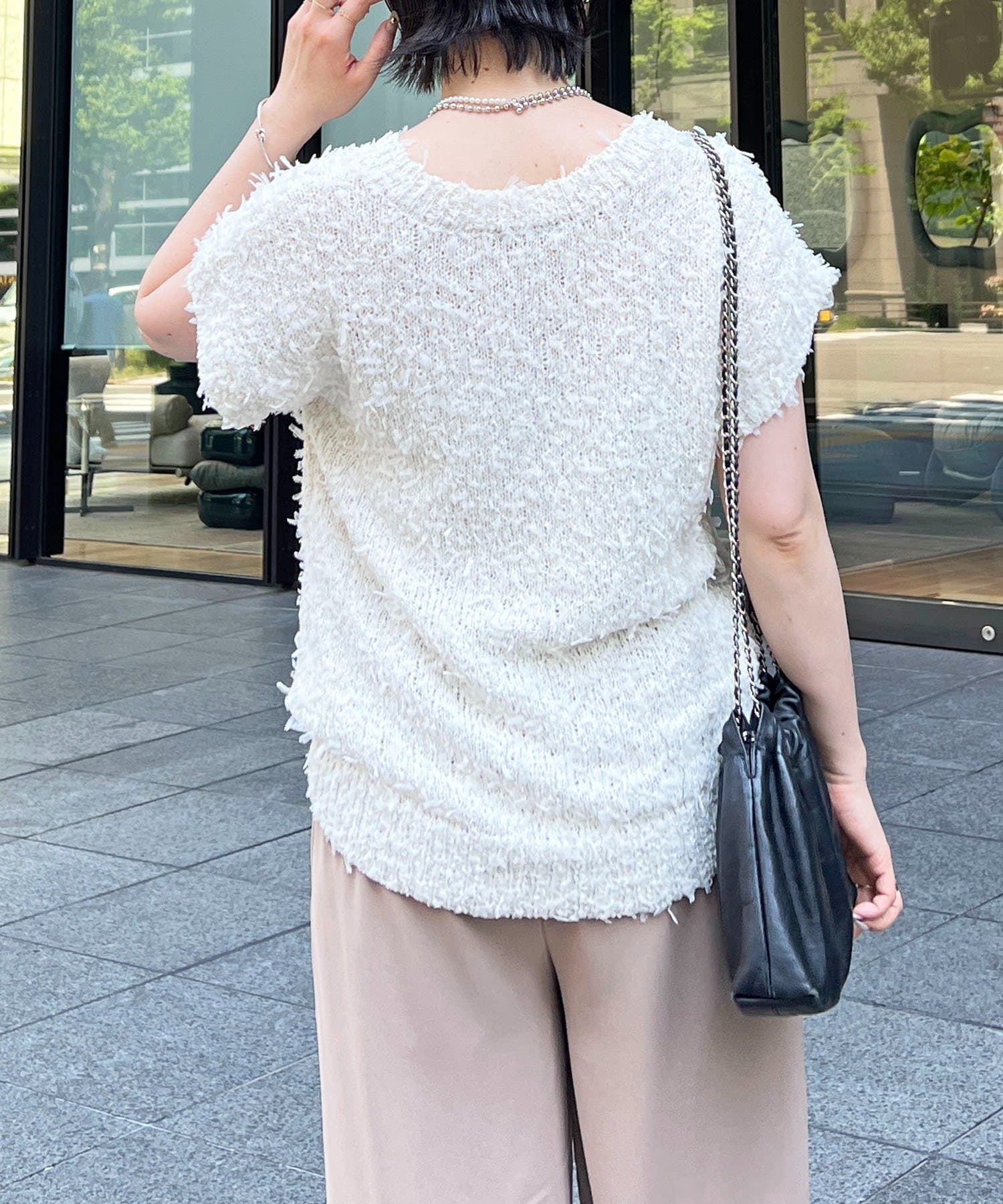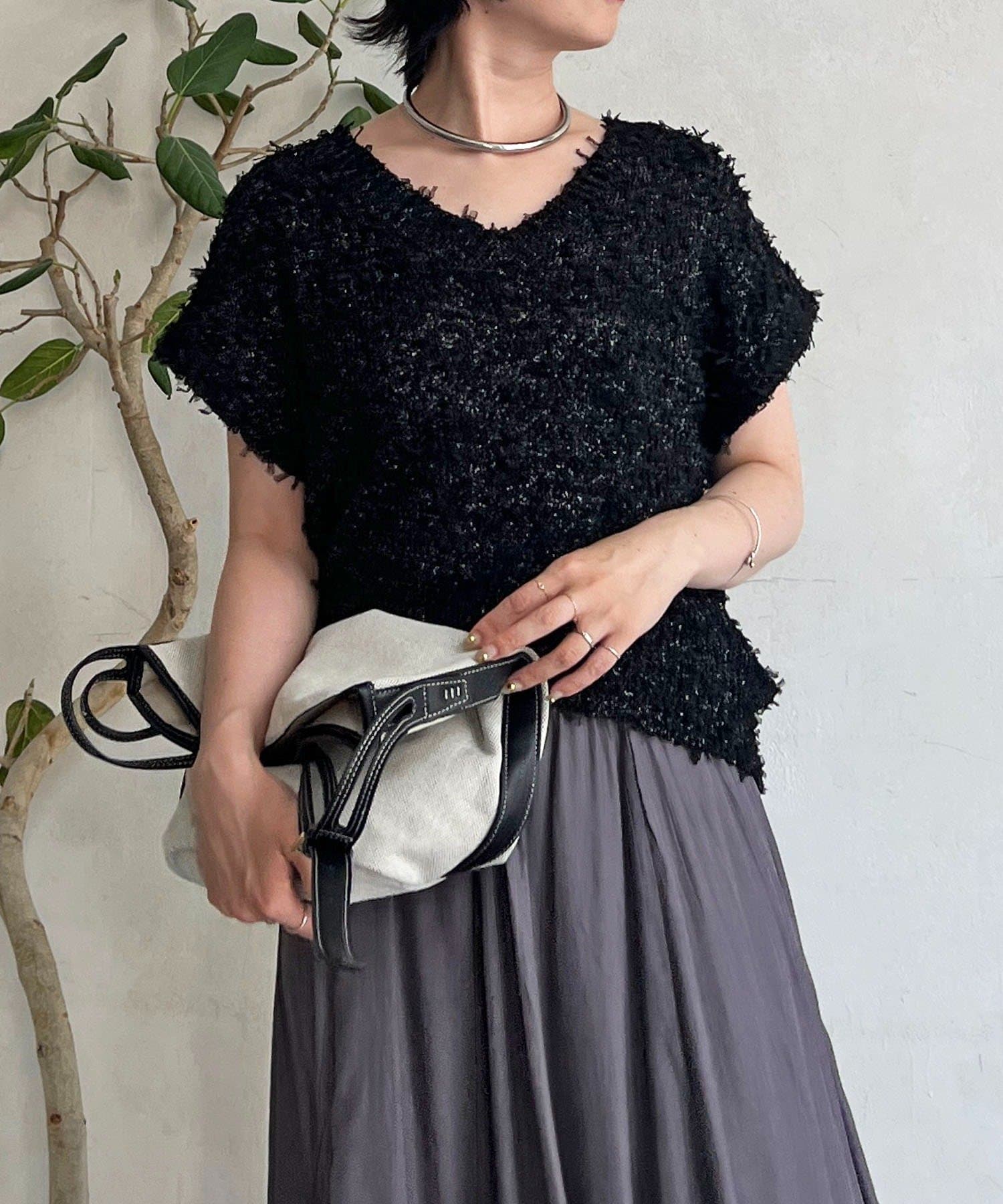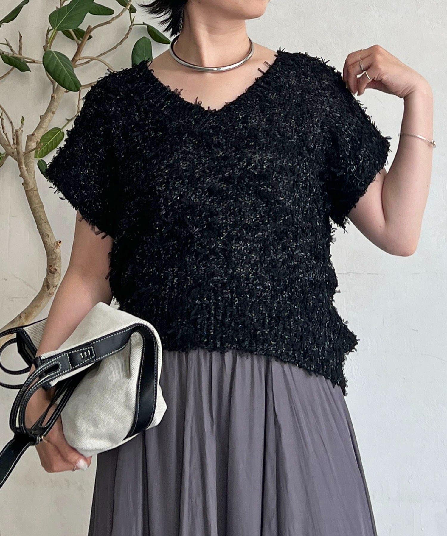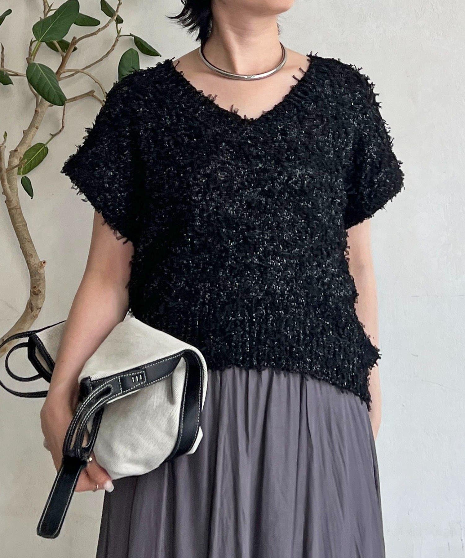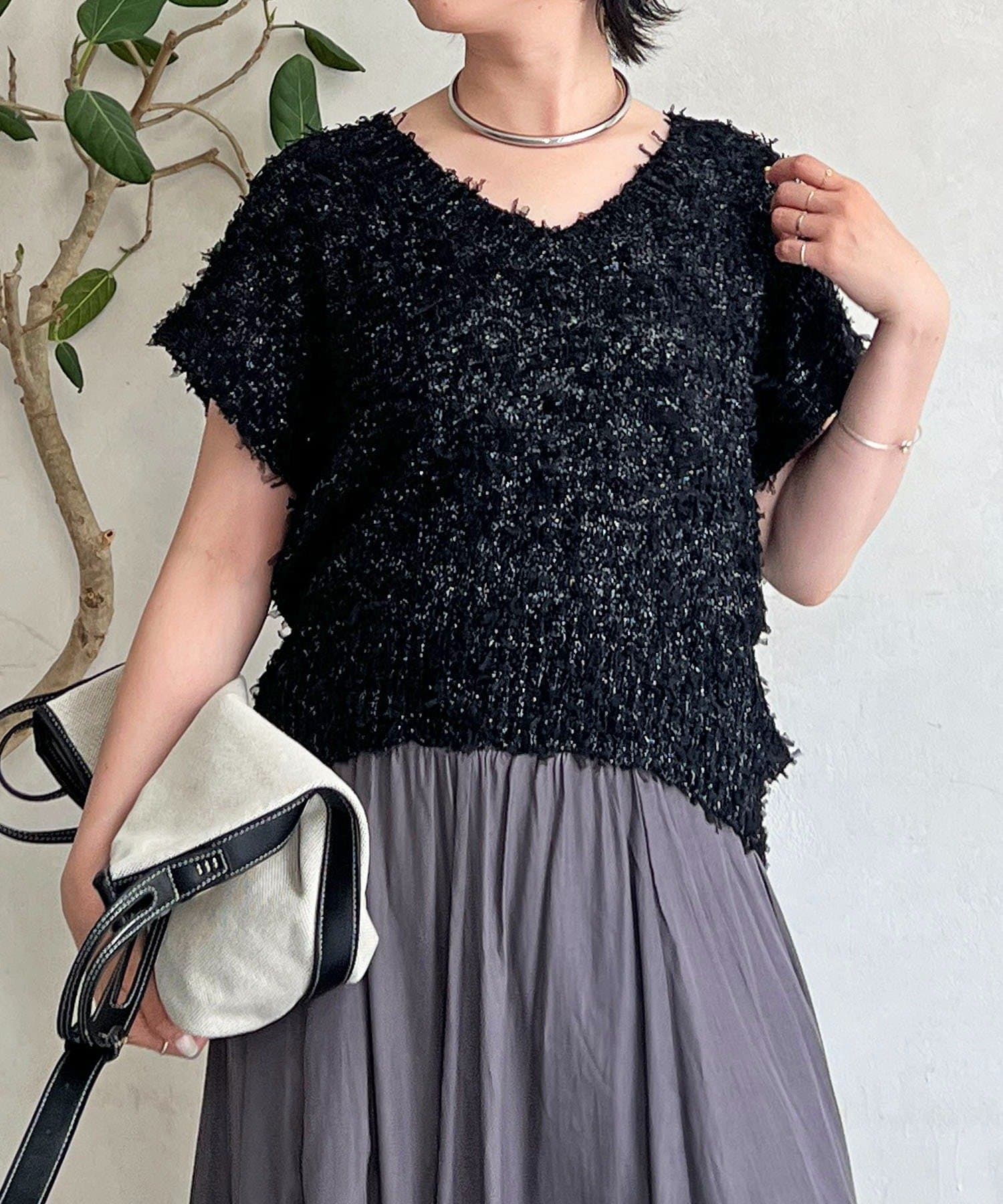 トレンド感のあるラメ糸×チュールミックスが魅力のジレプルオーバー
