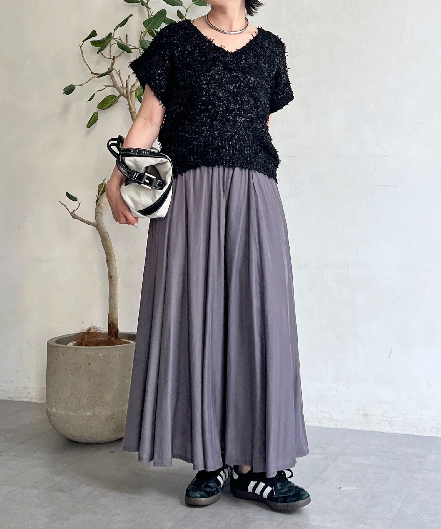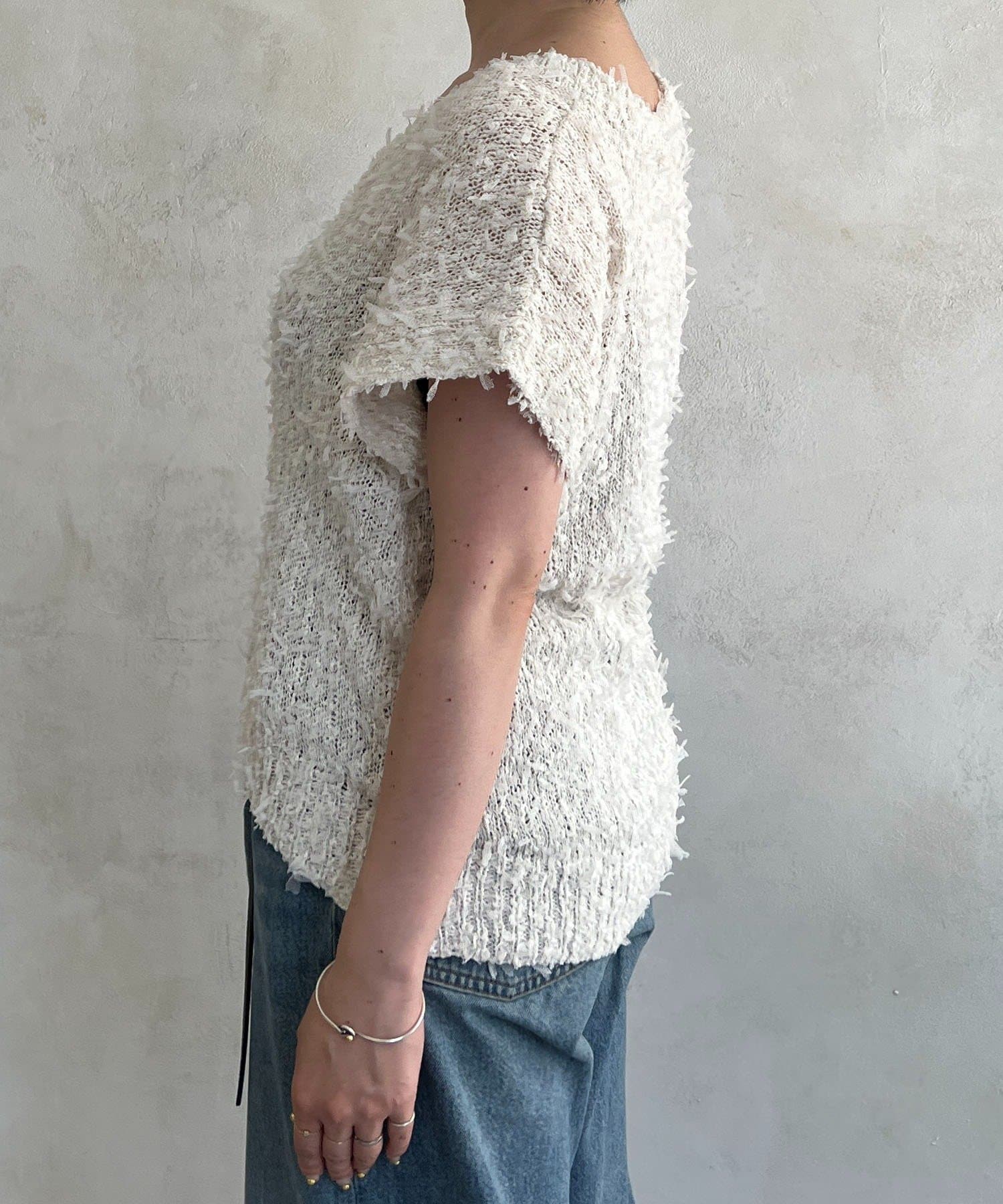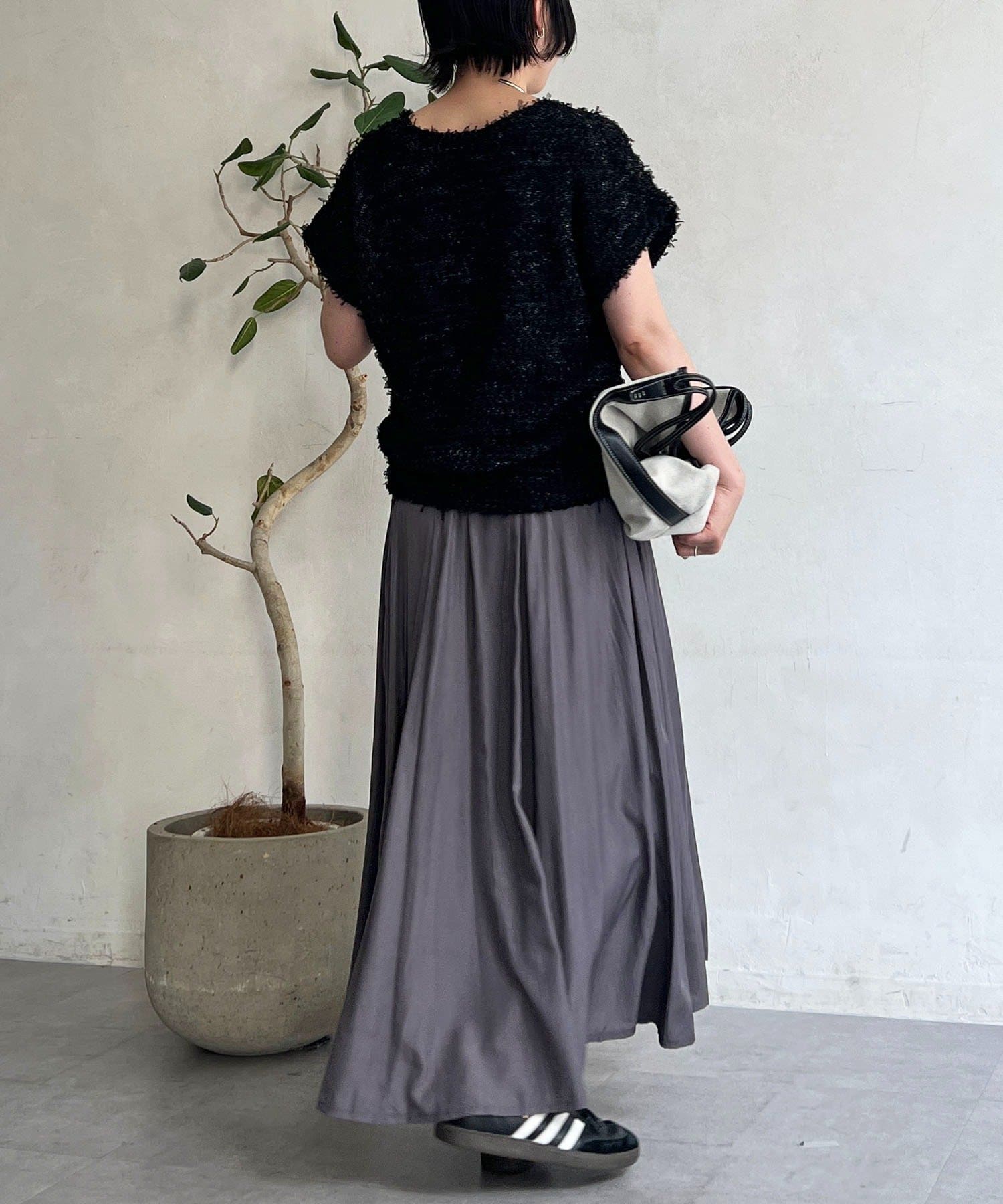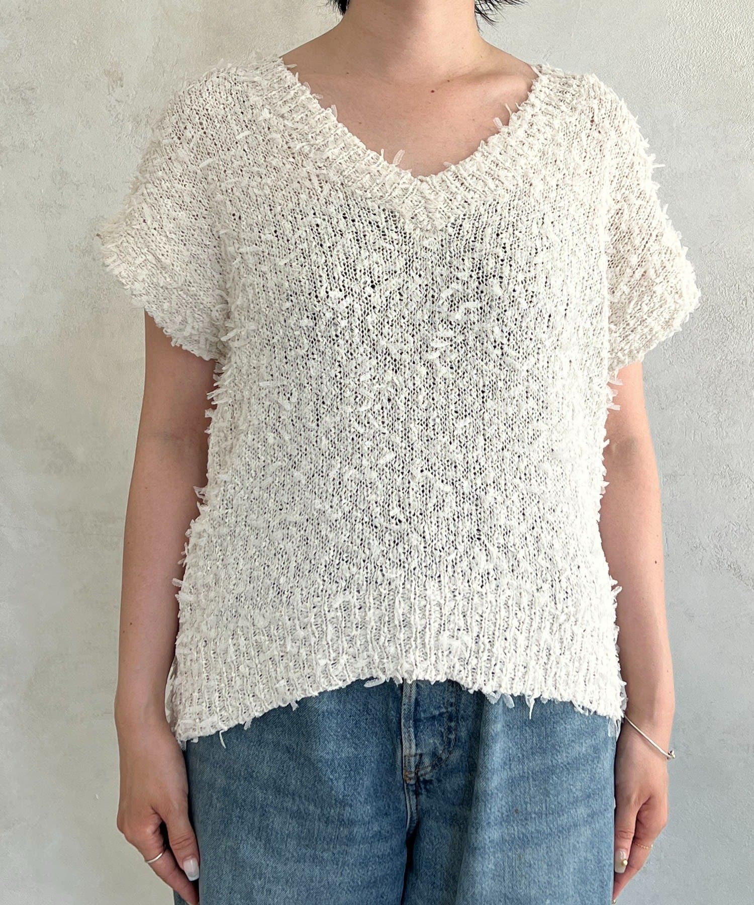 トレンド感のあるラメ糸×チュールミックスが魅力のジレプルオーバー