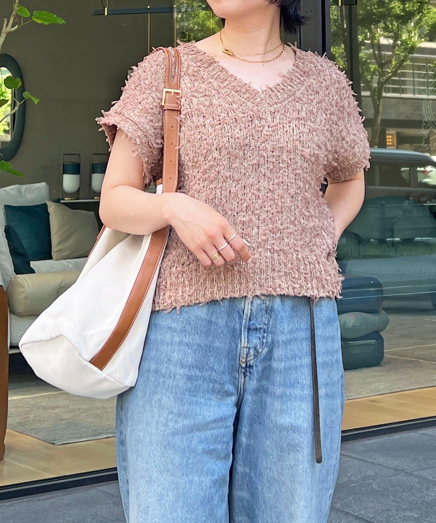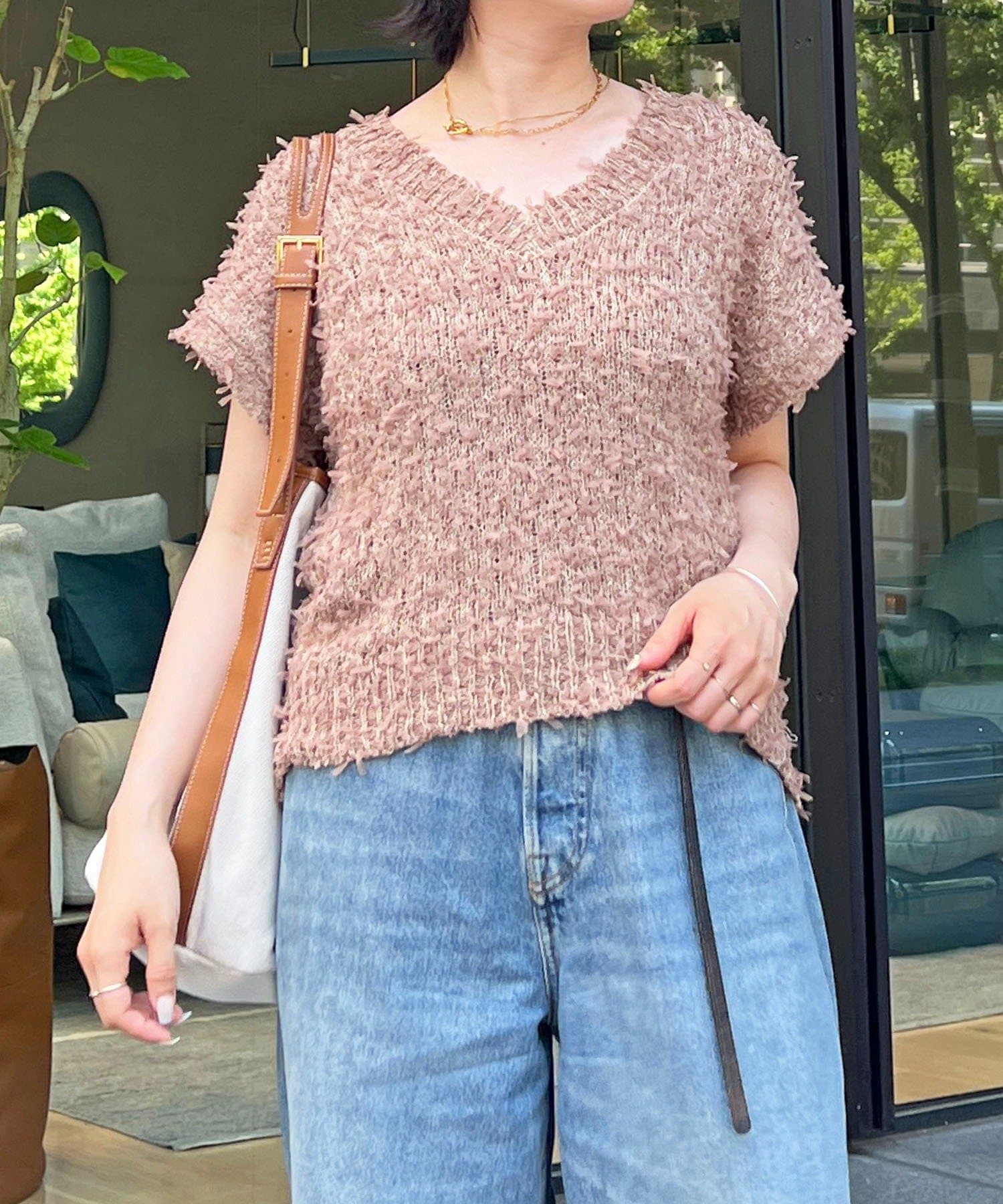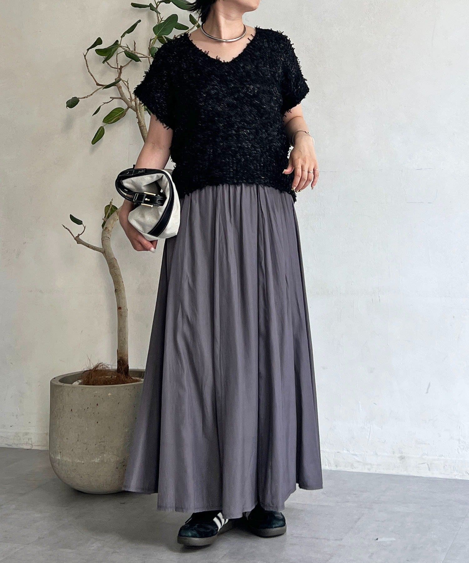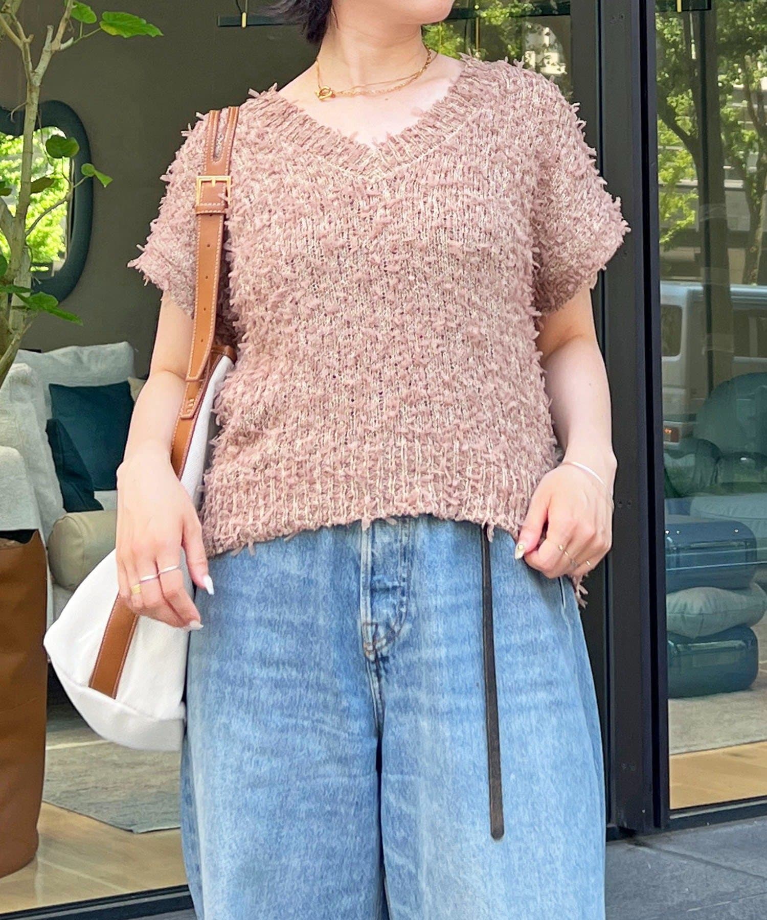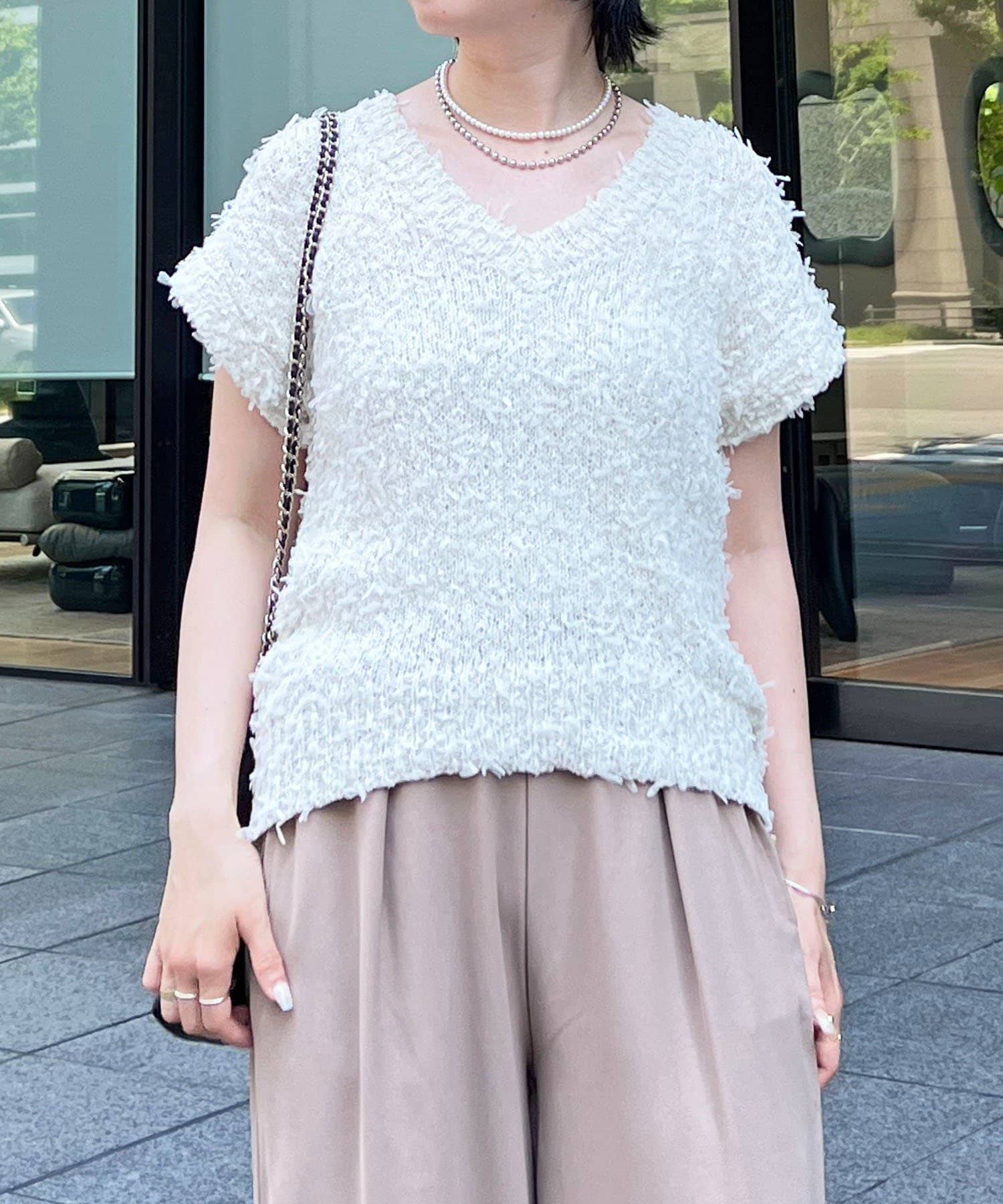 トレンド感のあるラメ糸×チュールミックスが魅力のジレプルオーバー