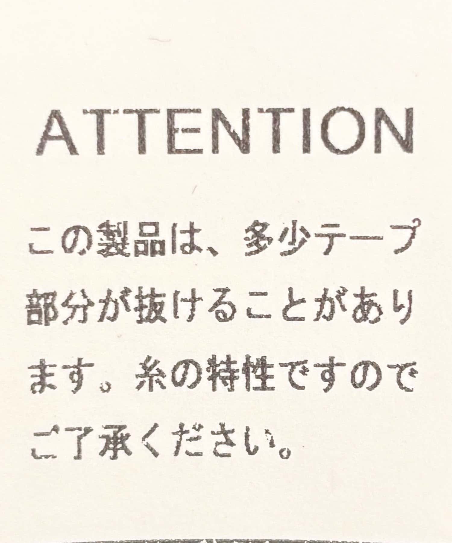 ※この製品は、多少テープ部分が抜けることがあります。糸の特性ですのでご了承ください。