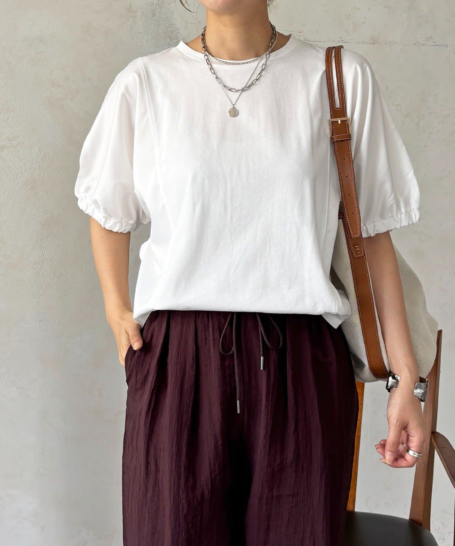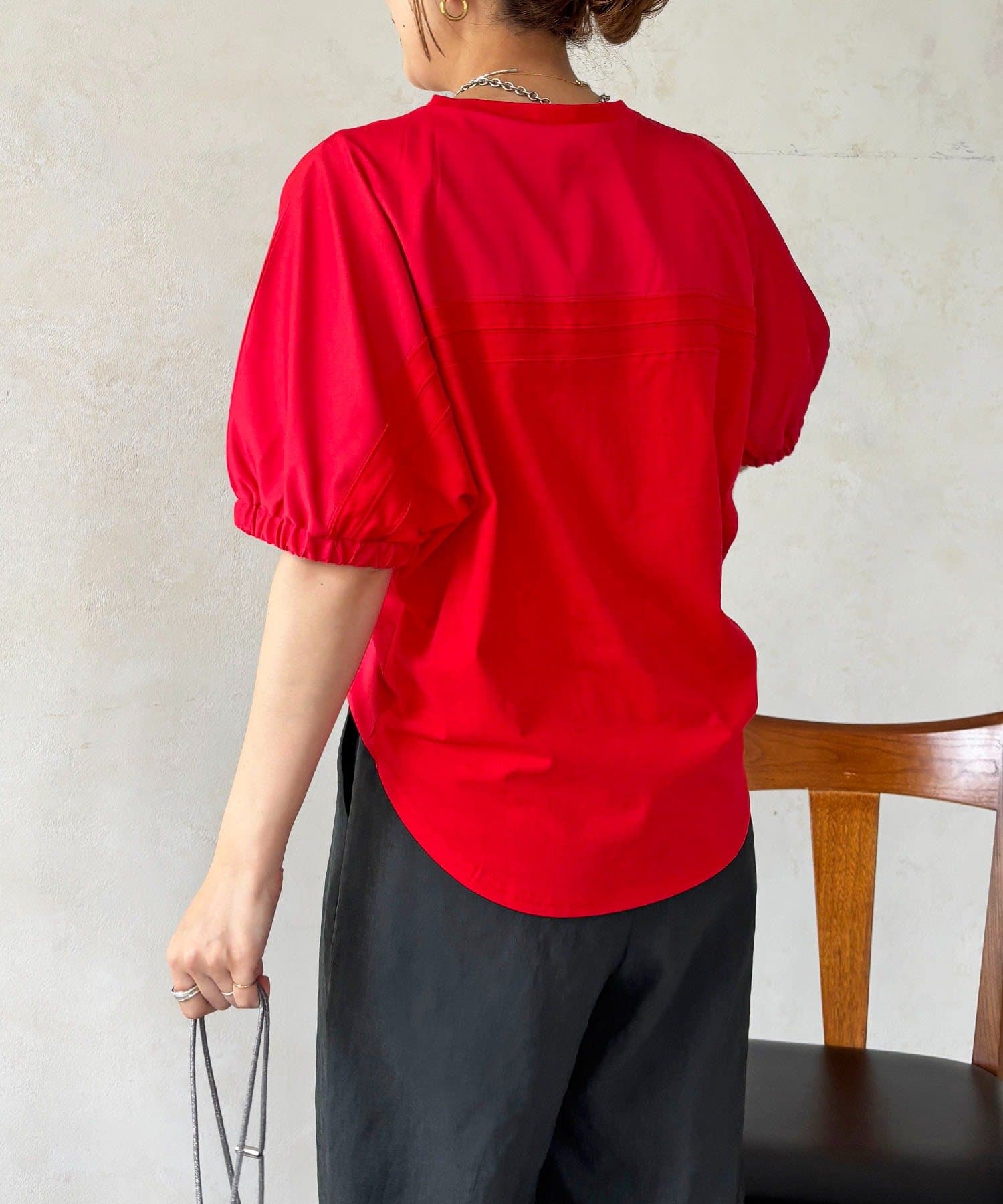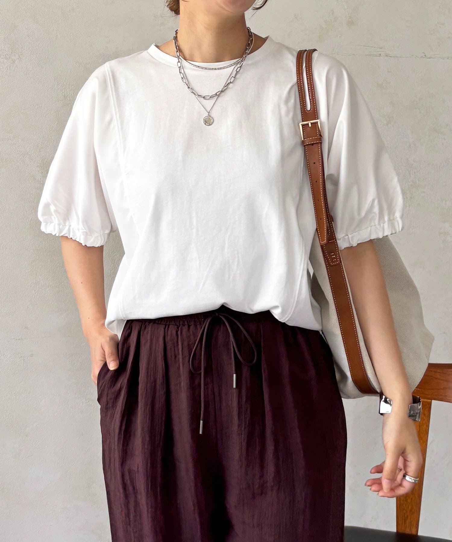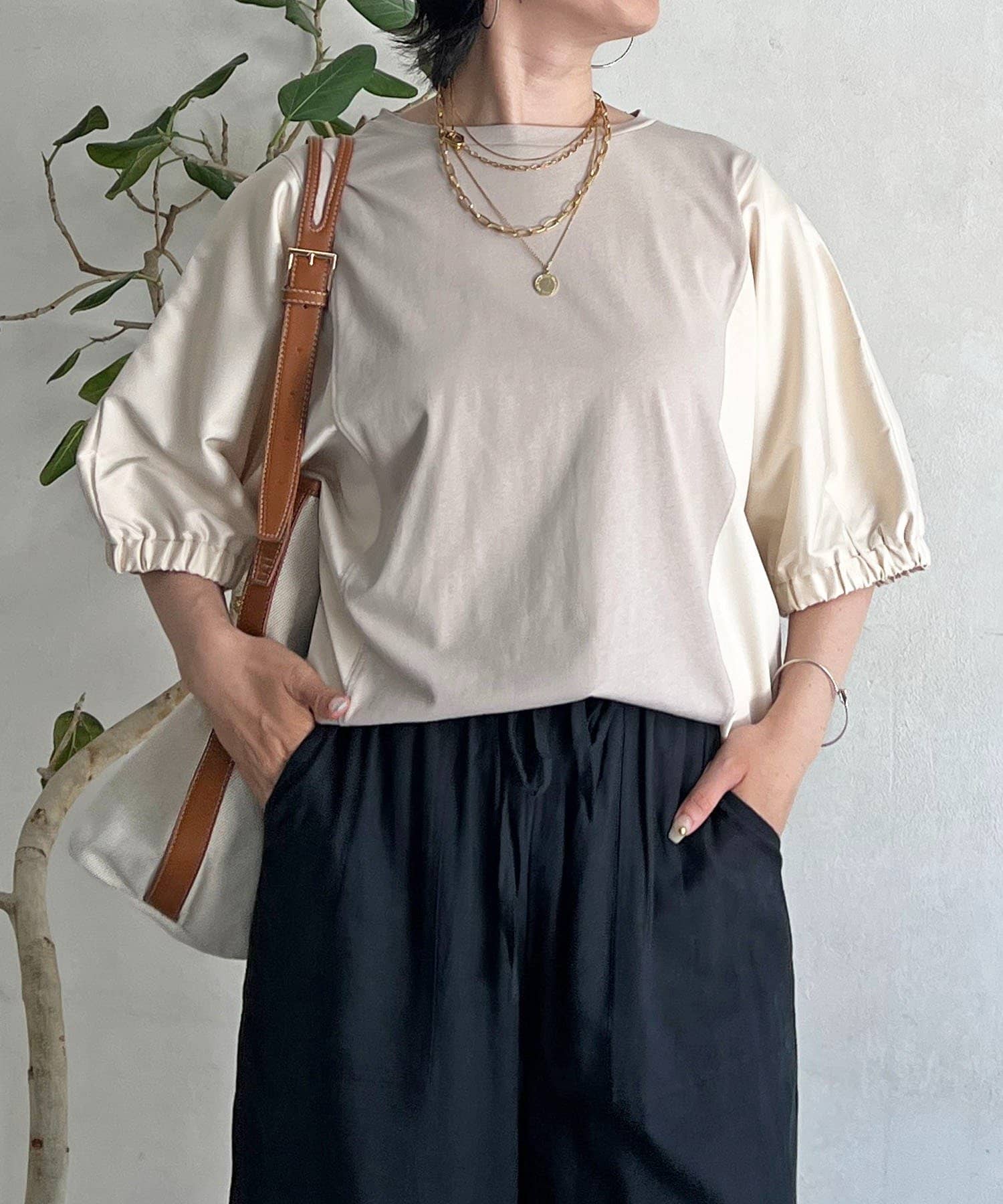 ・ふわっとした袖デザインは、さりげなく二の腕カバーにも