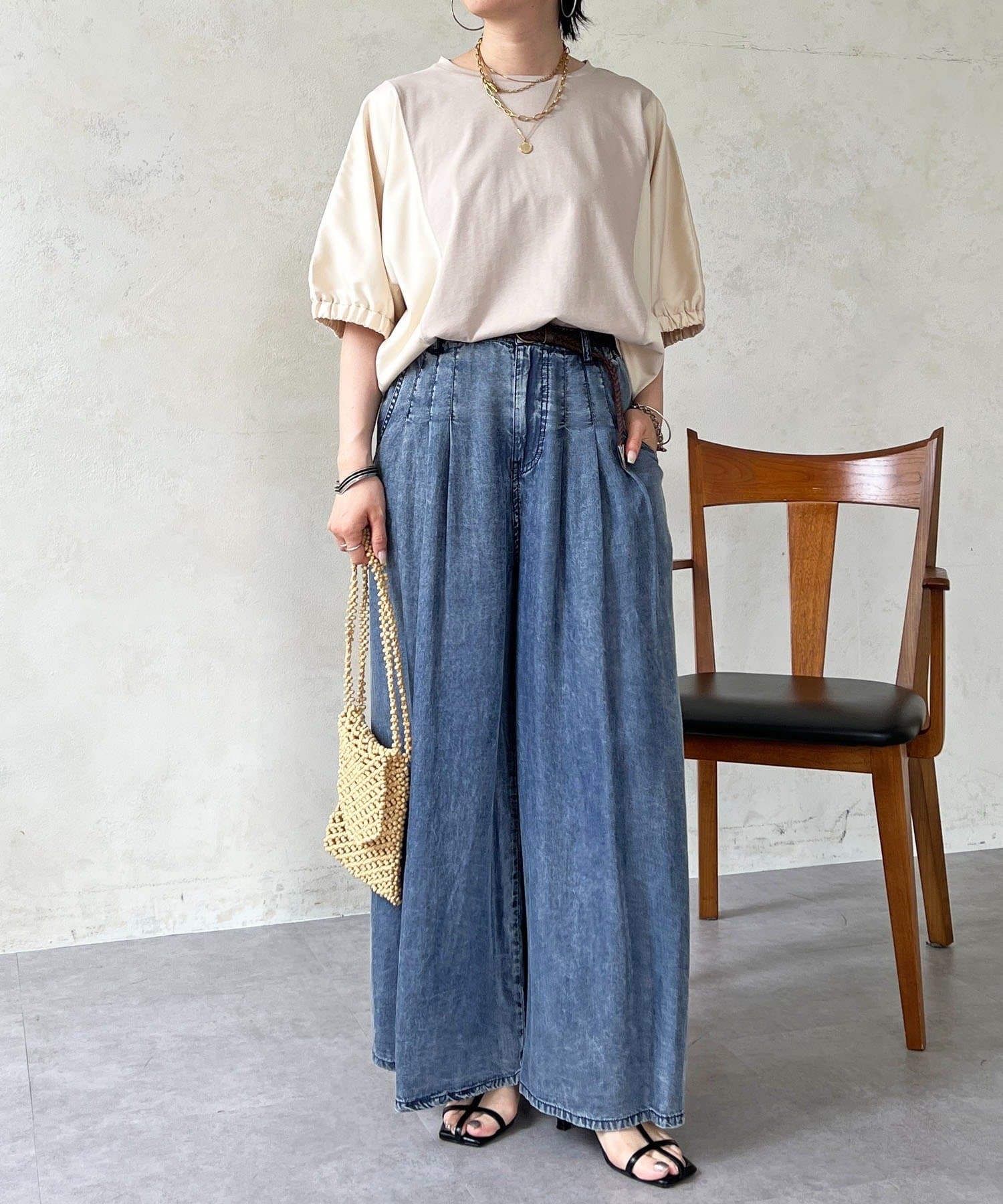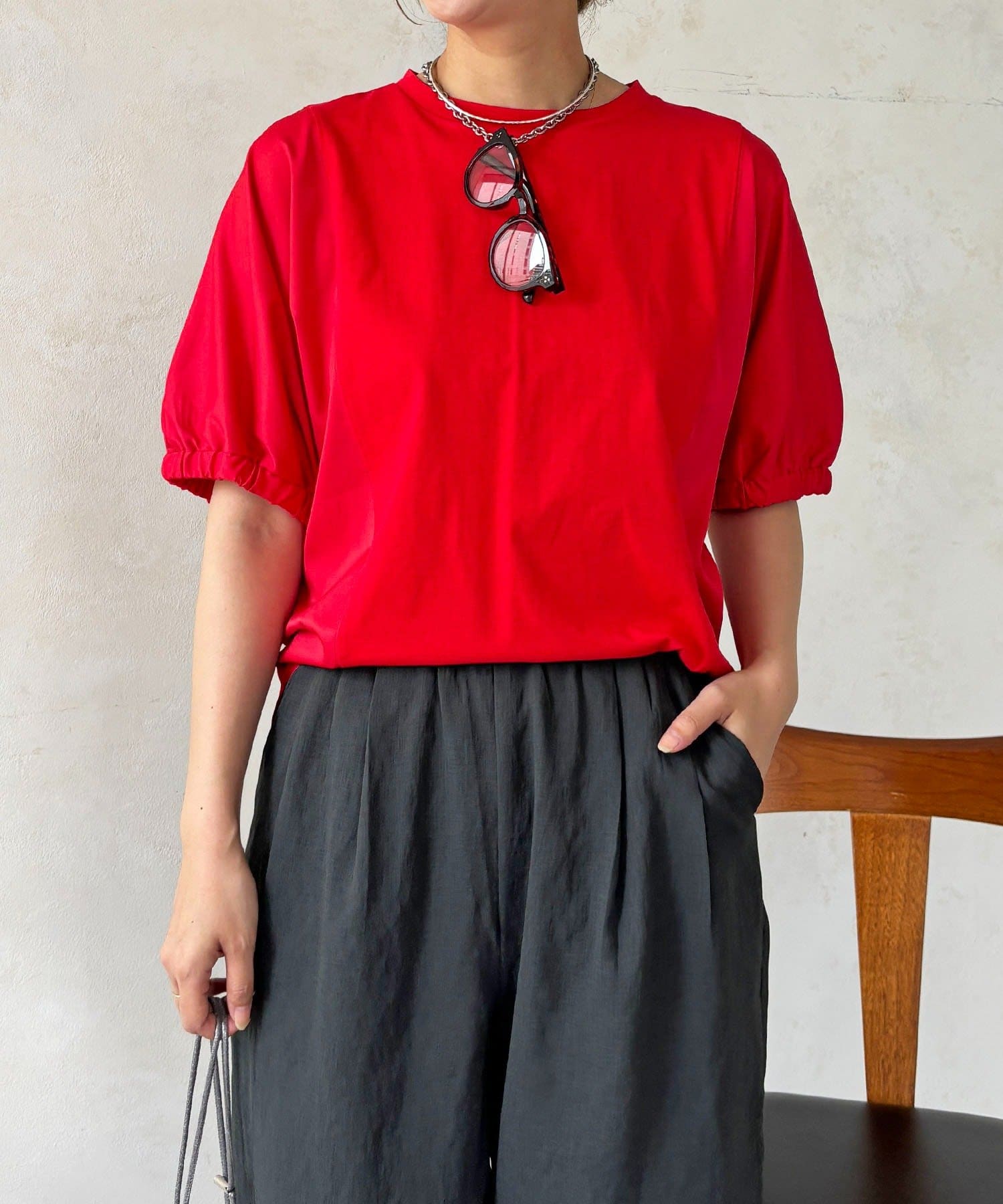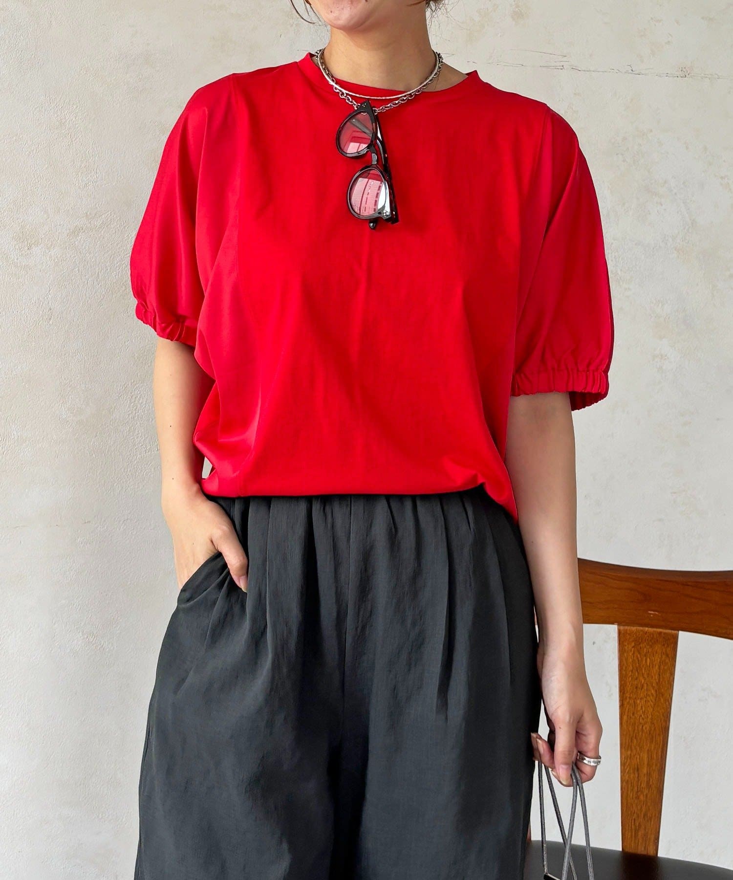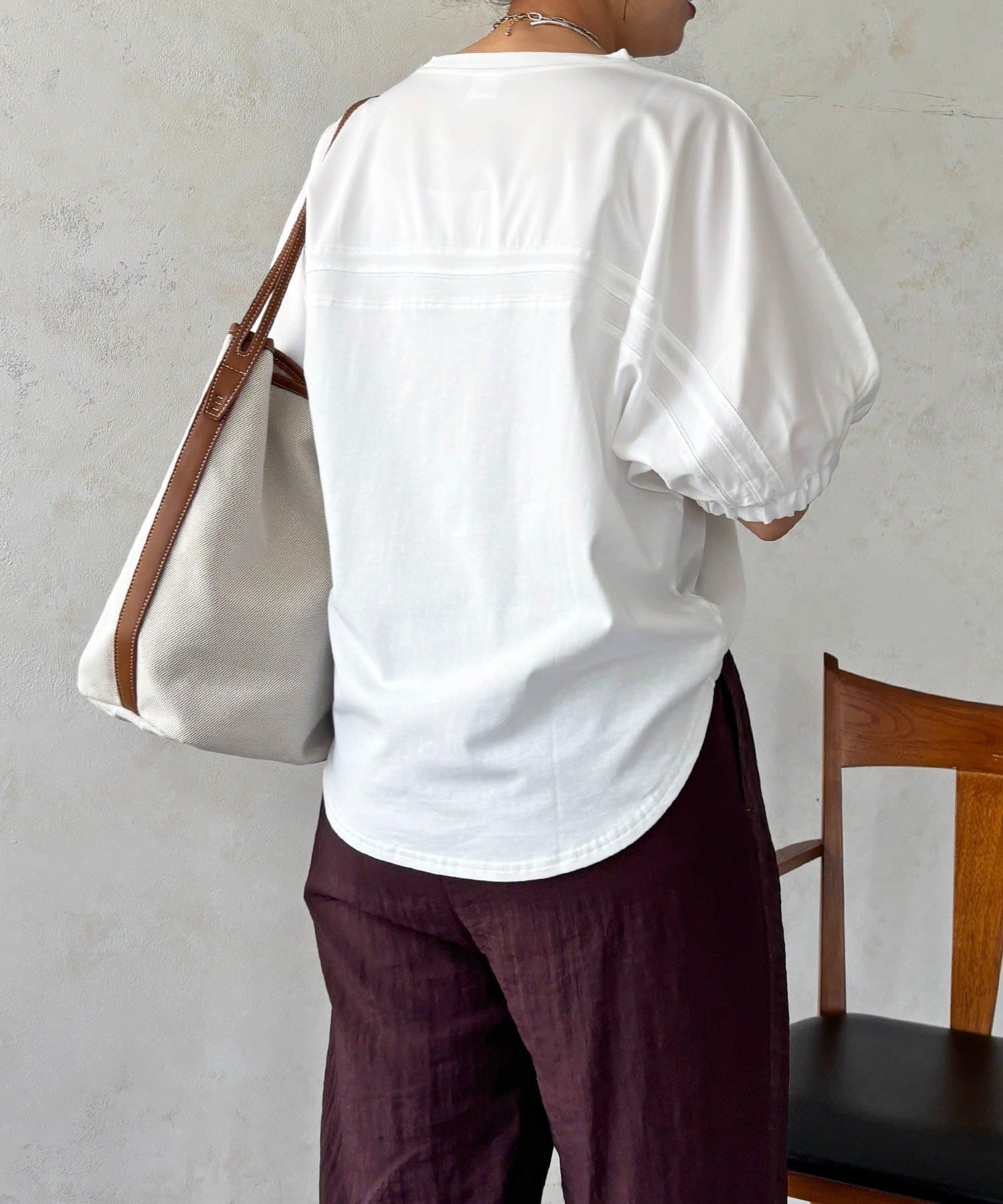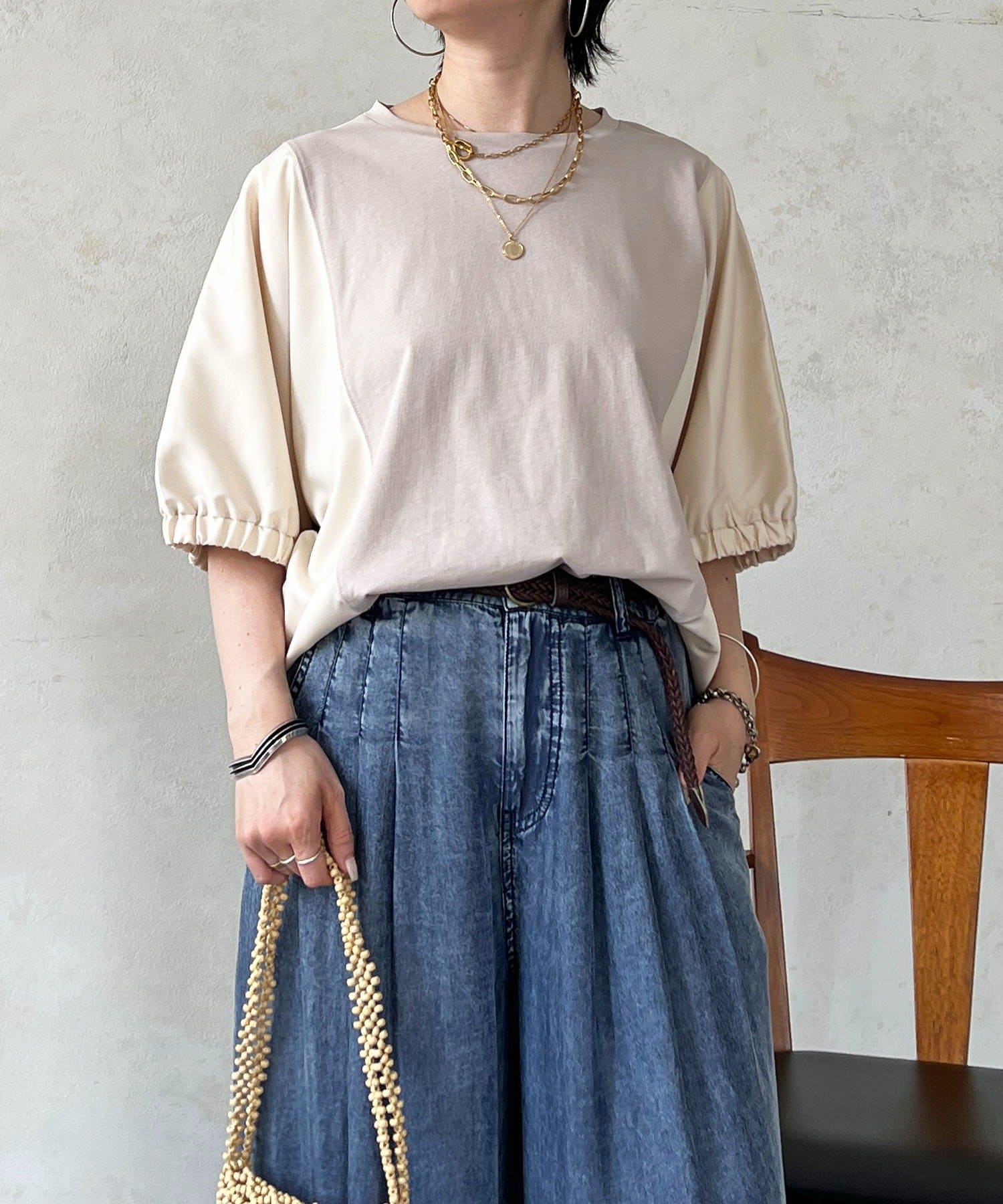 ・ふわっとした袖デザインは、さりげなく二の腕カバーにも