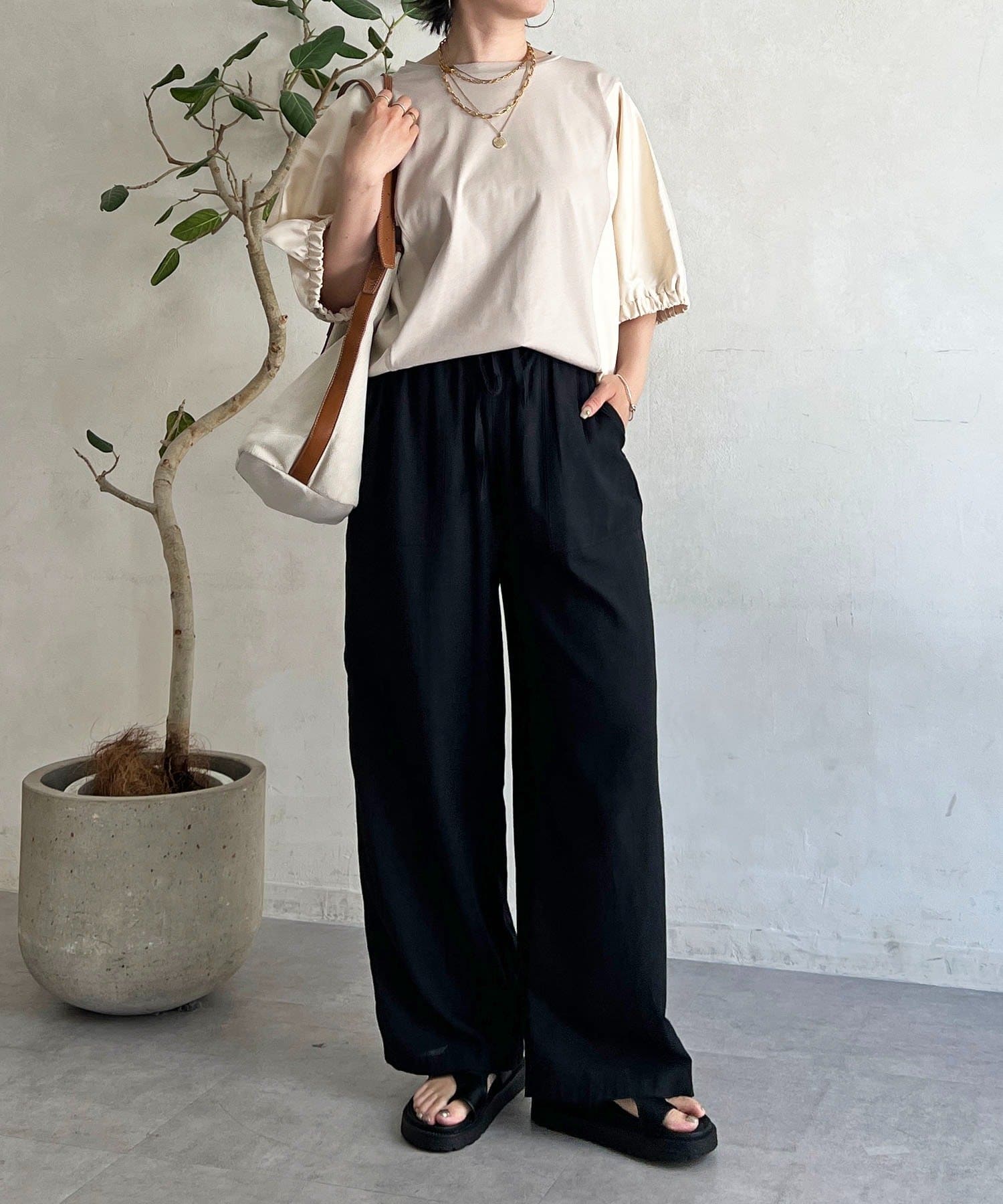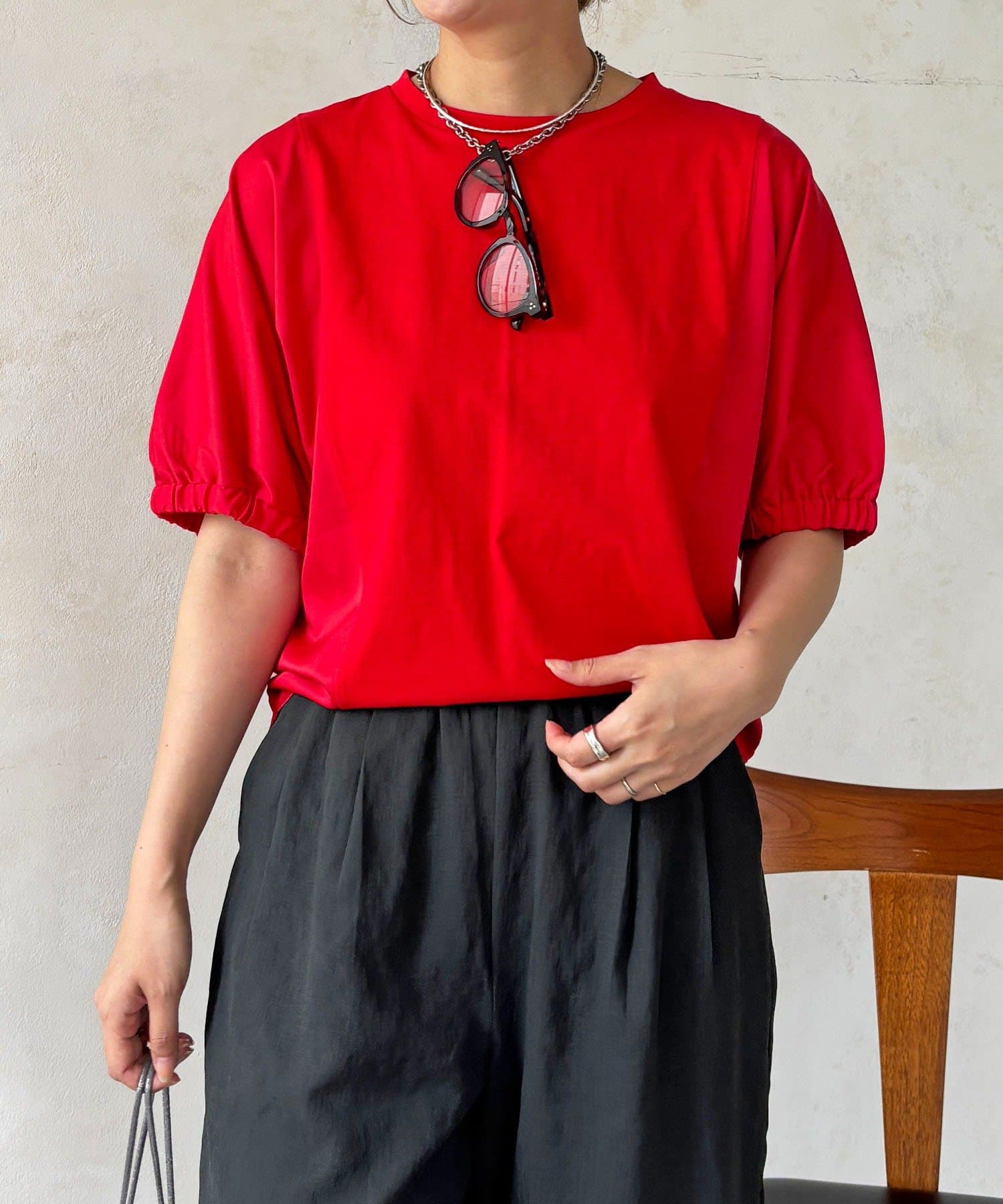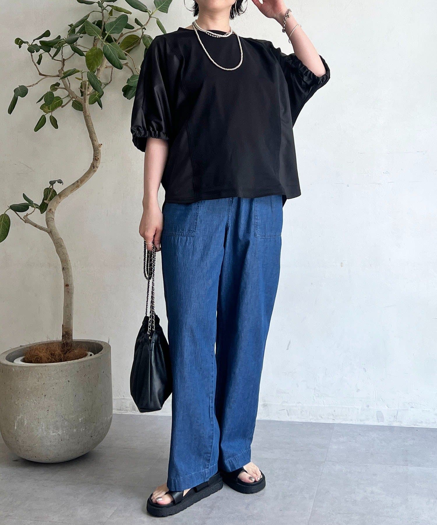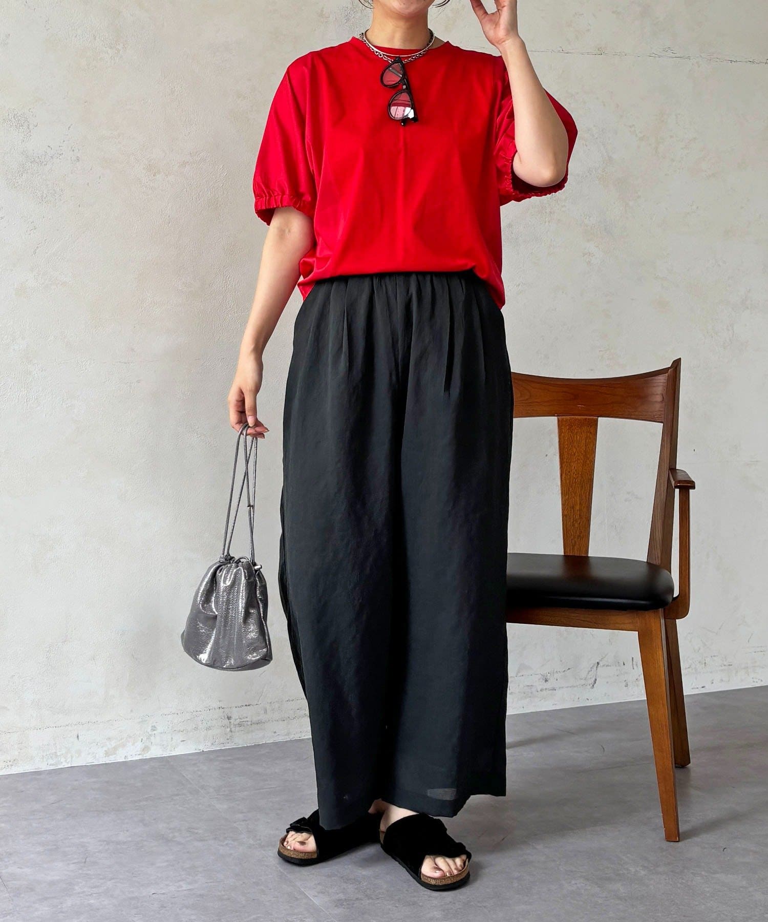 ・ふわっとした袖デザインは、さりげなく二の腕カバーにも