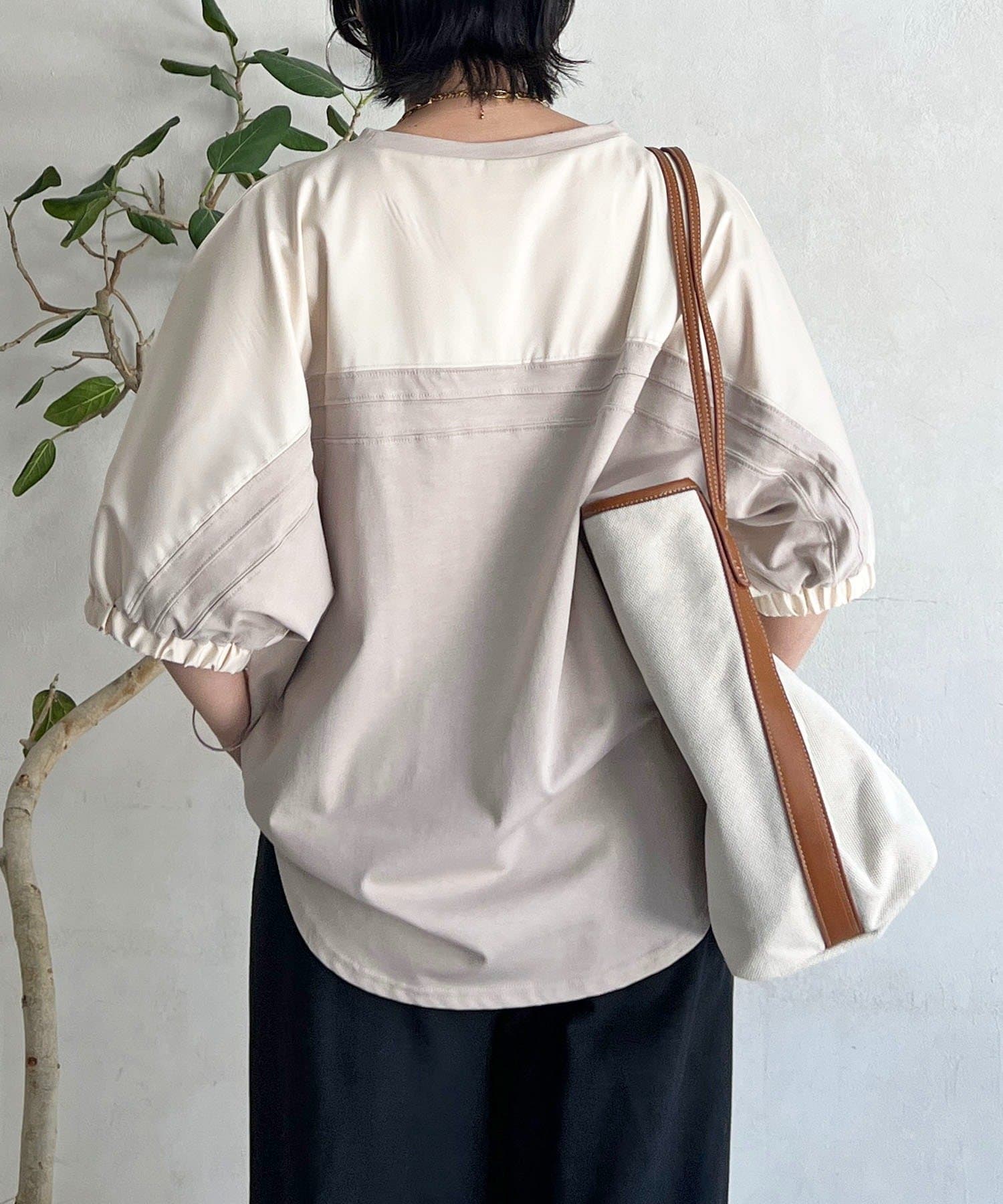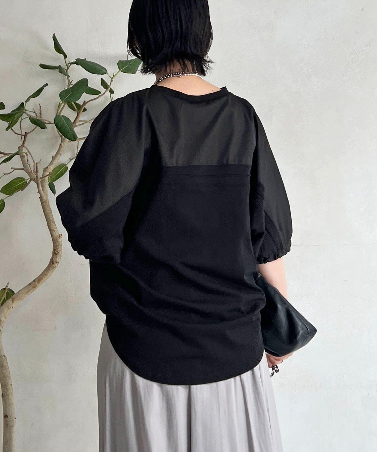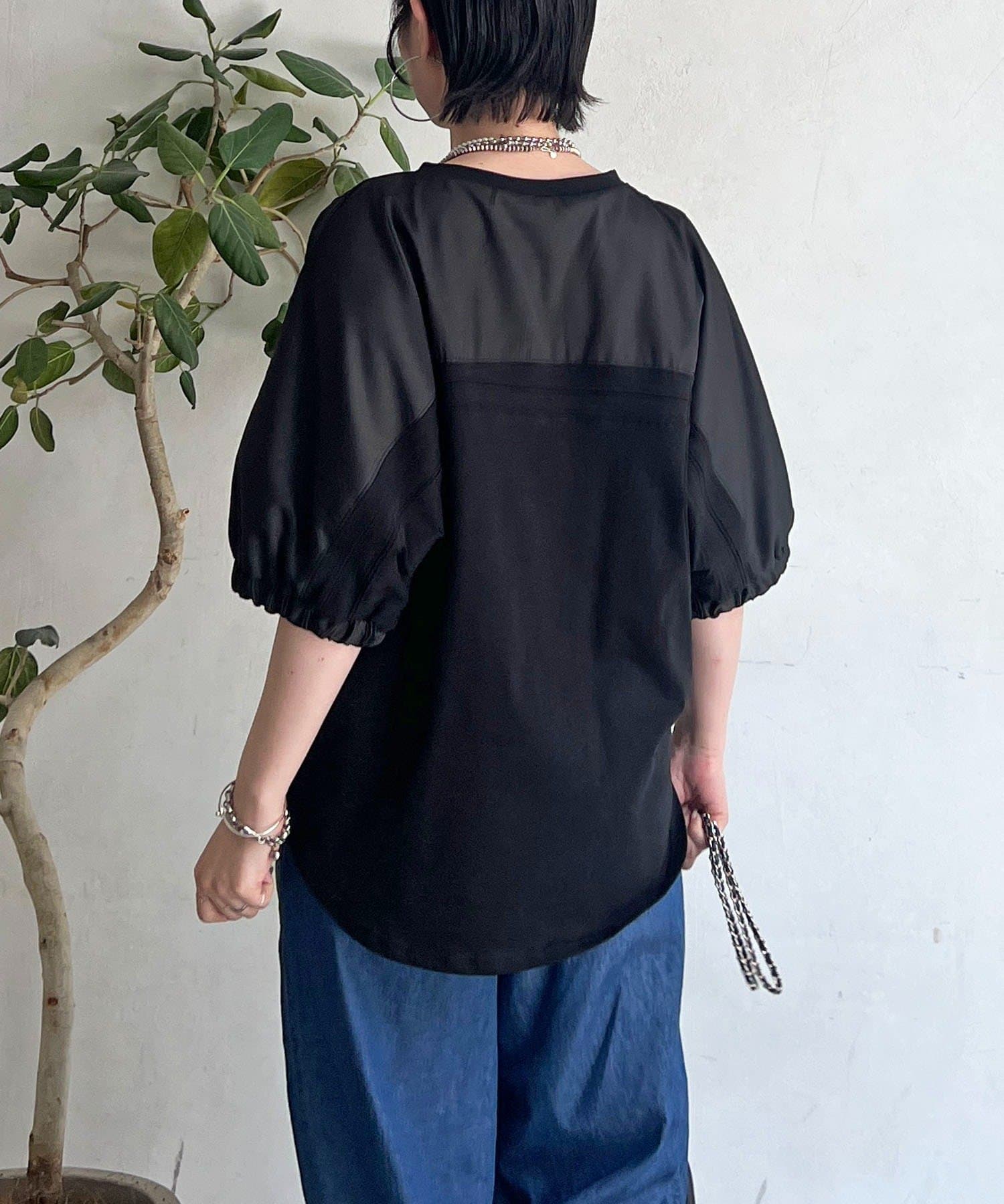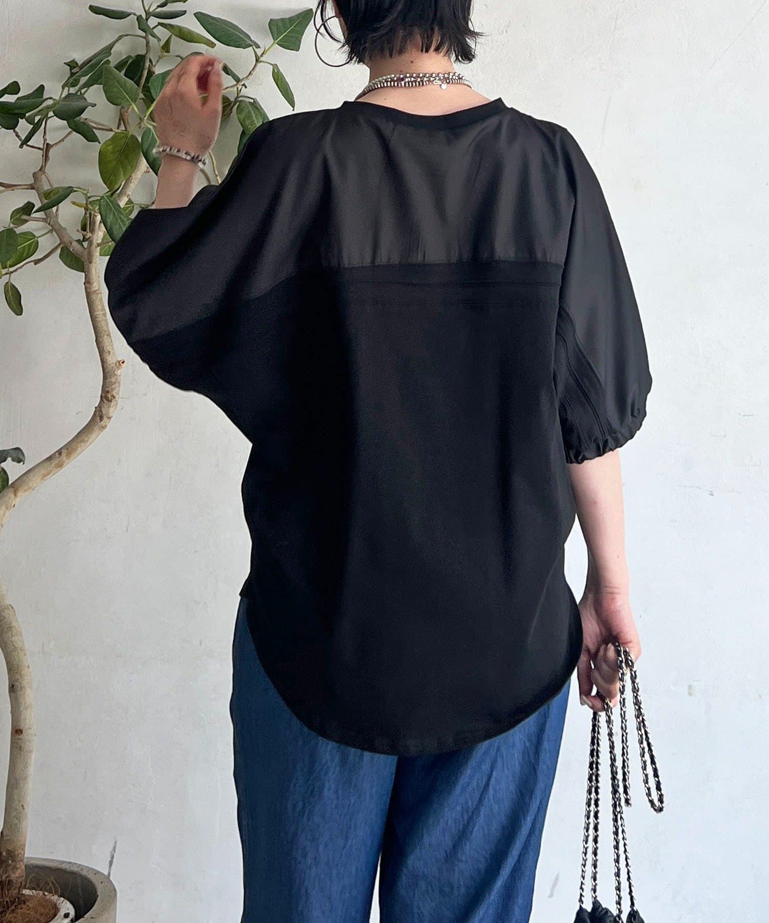 ・袖から背中にかけての異素材ドッキングがアクセントに