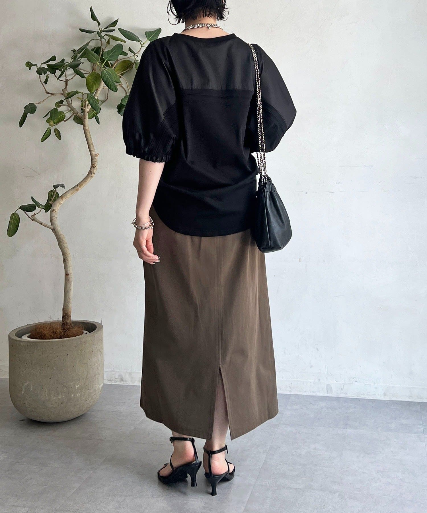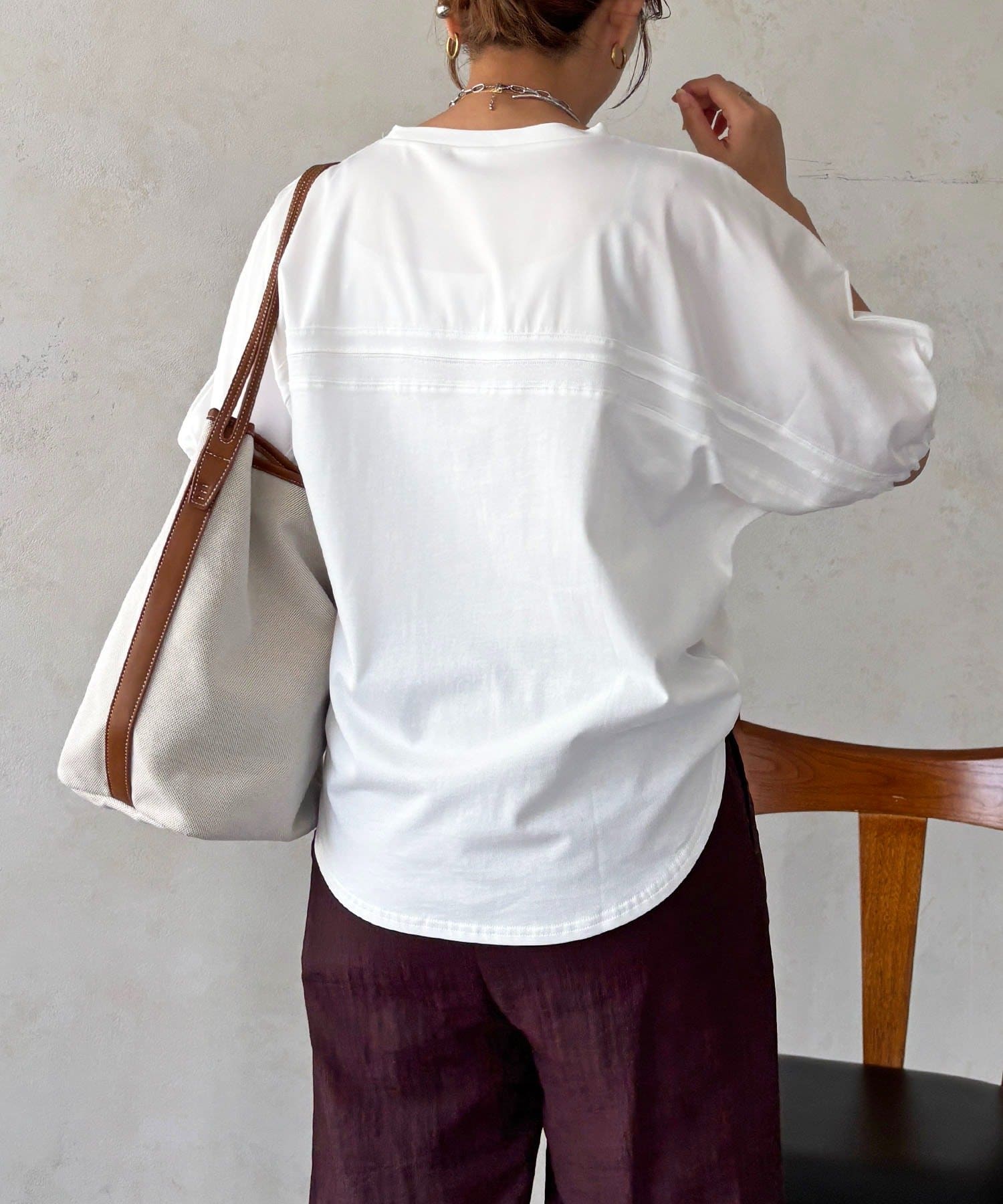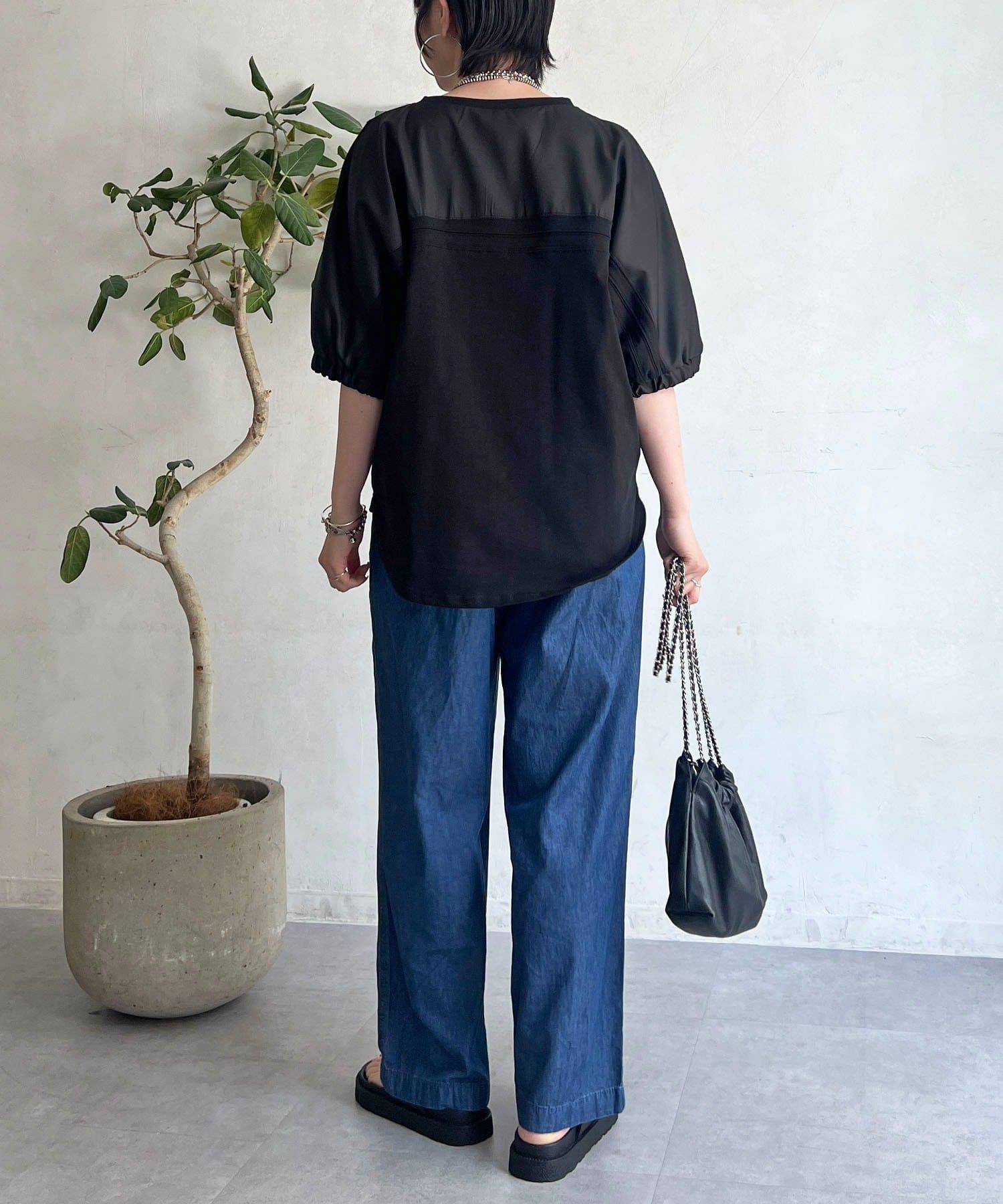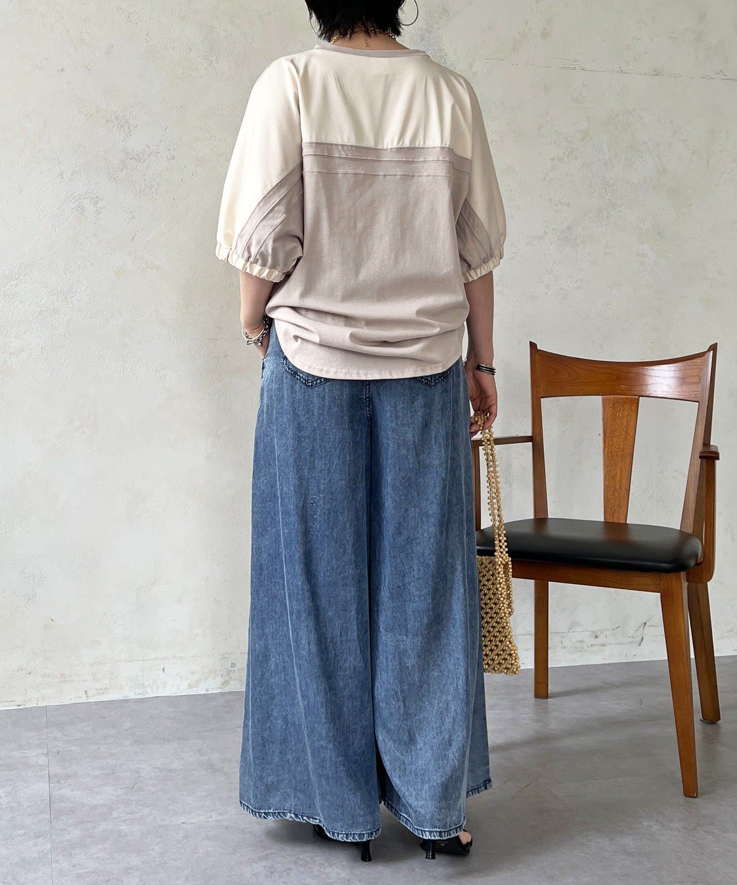 ・袖から背中にかけての異素材ドッキングがアクセントに
