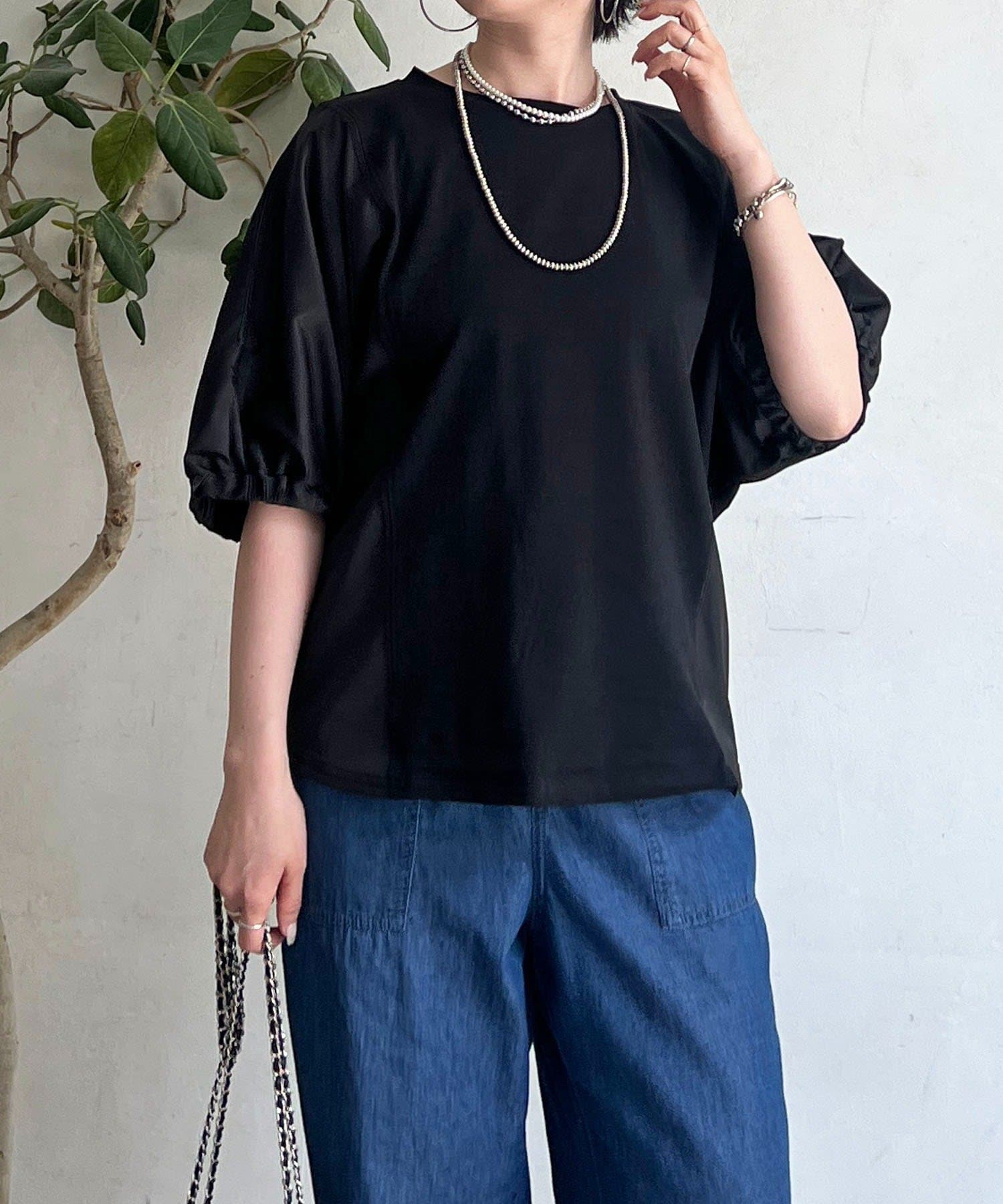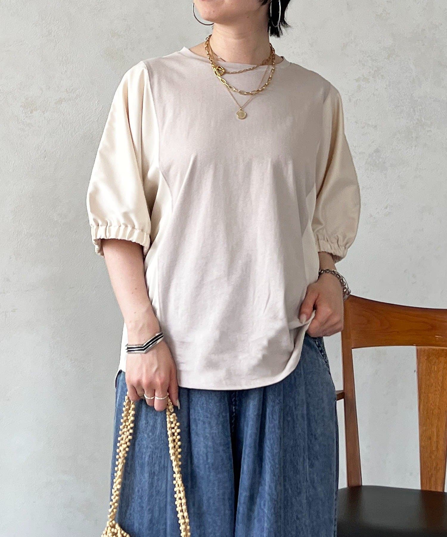 袖異素材ドルマンプルオーバー