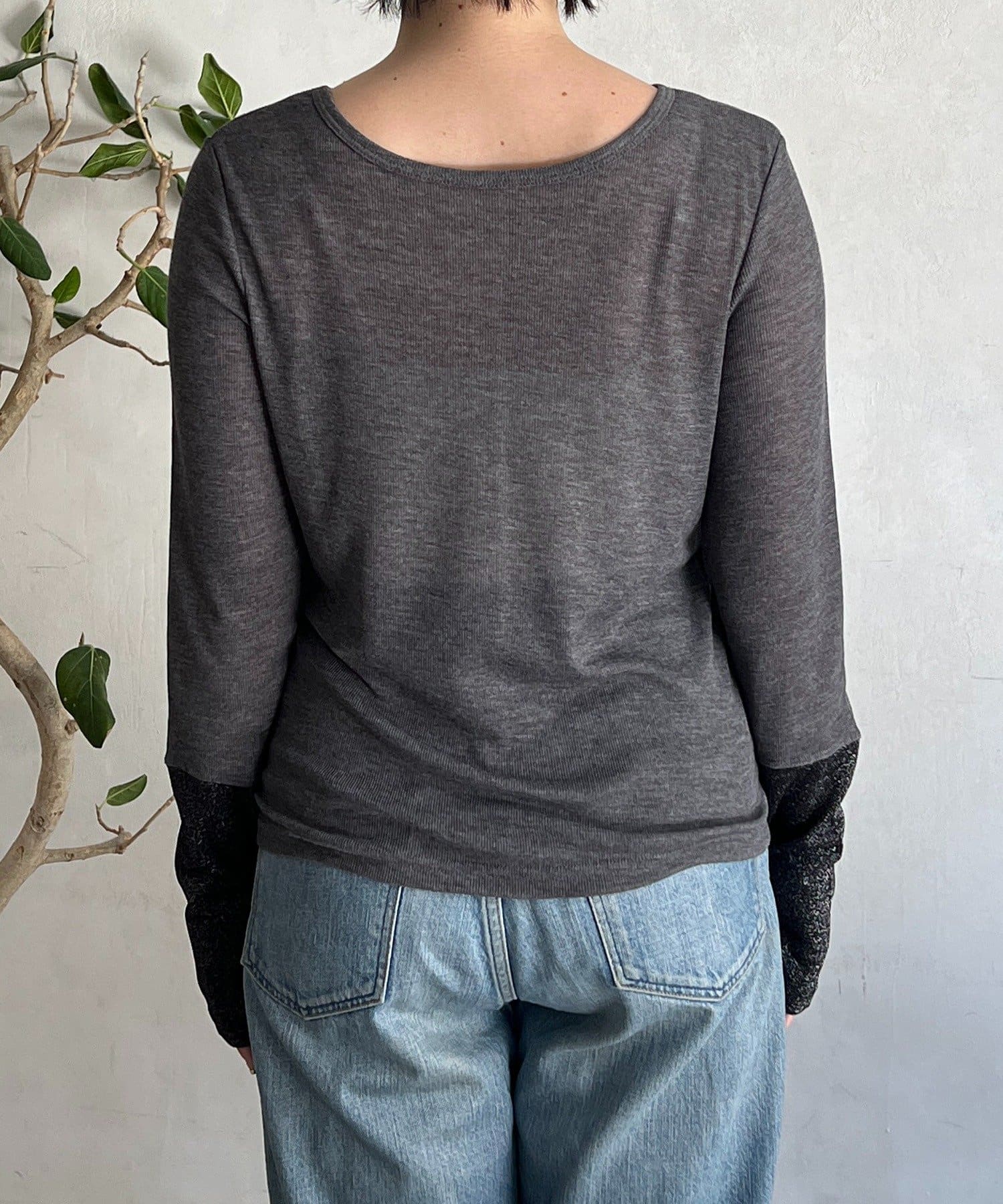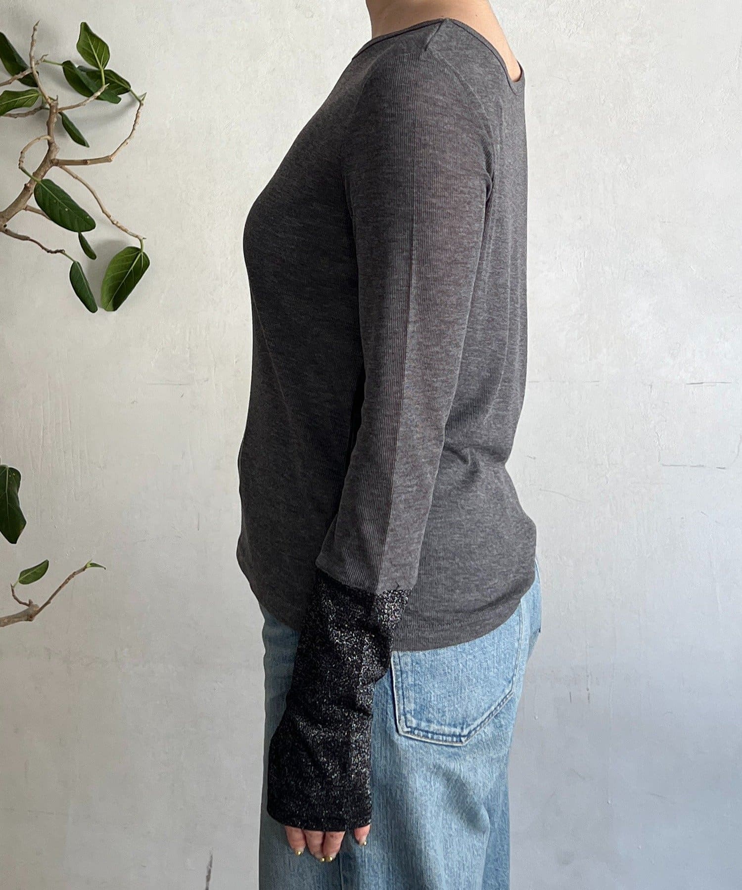 ・カフス部分がラメ素材で、前後2WAYどちらでも着用可能なカットソー