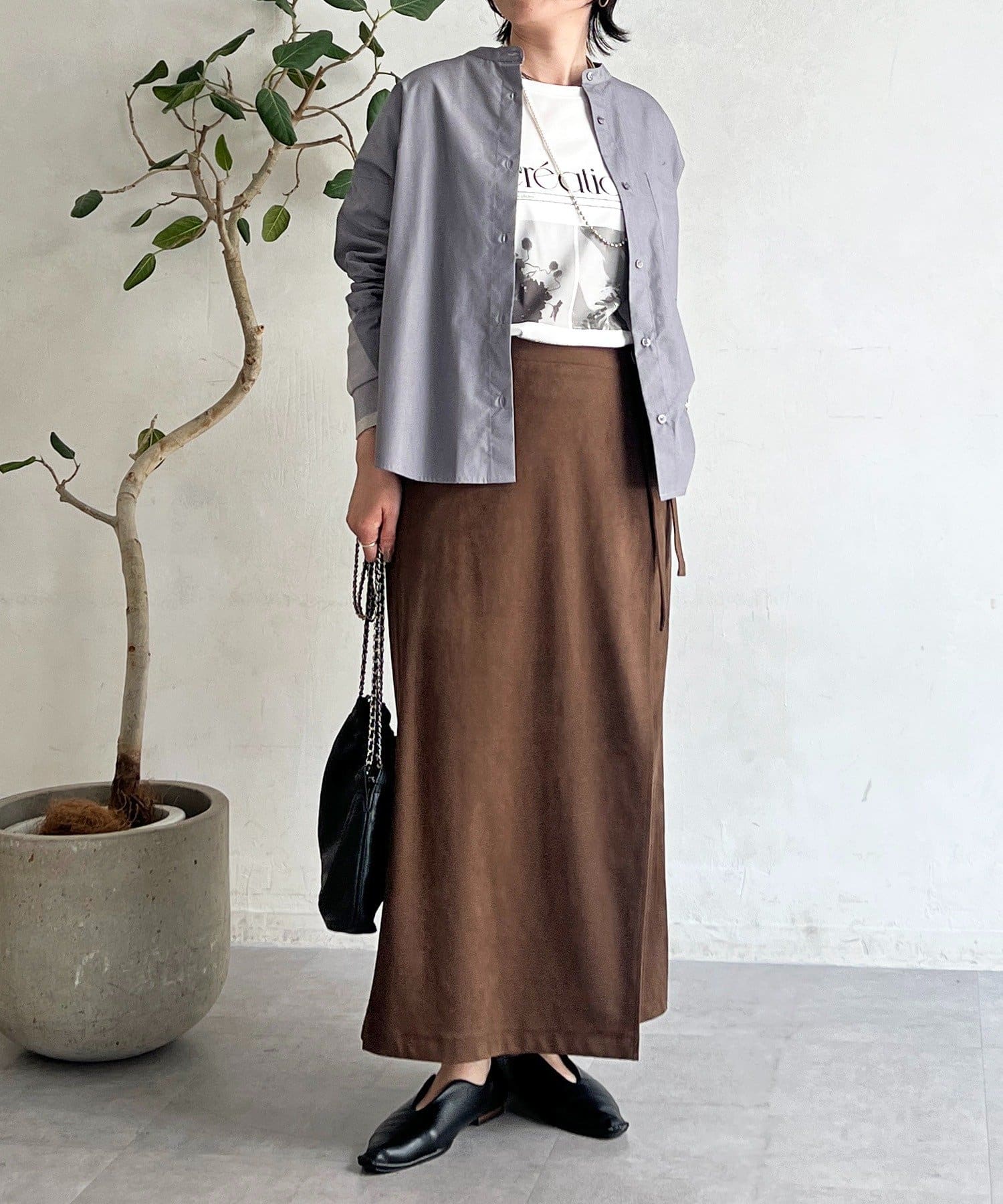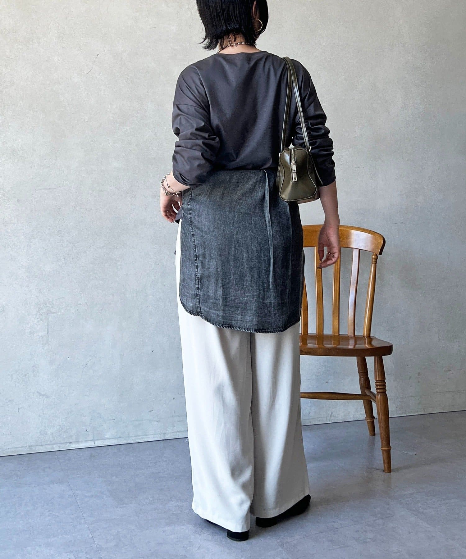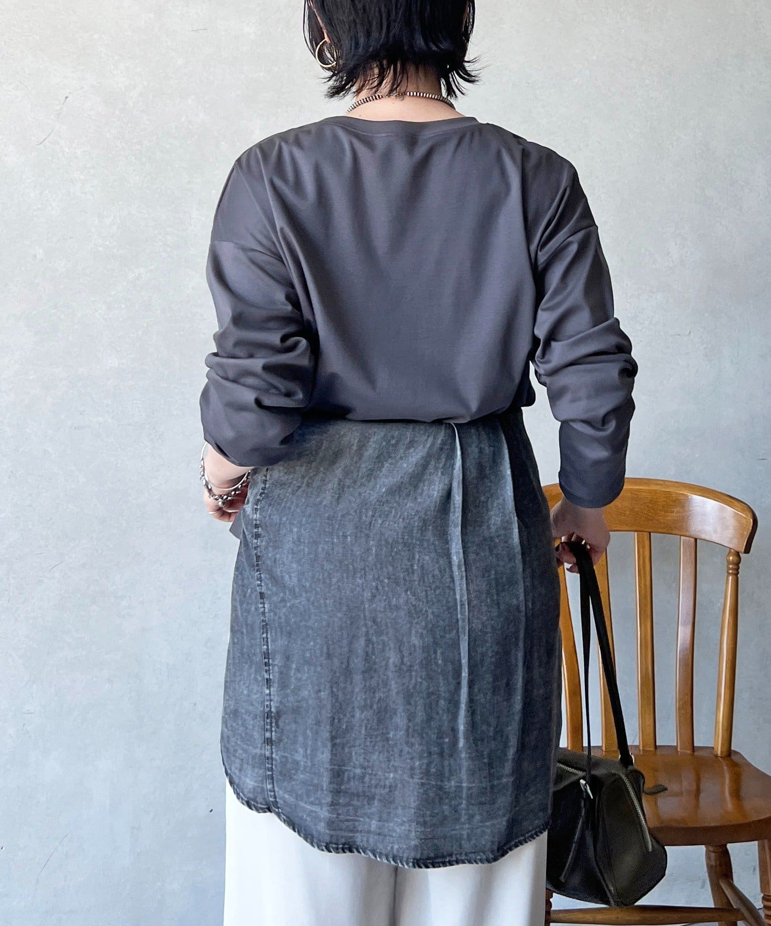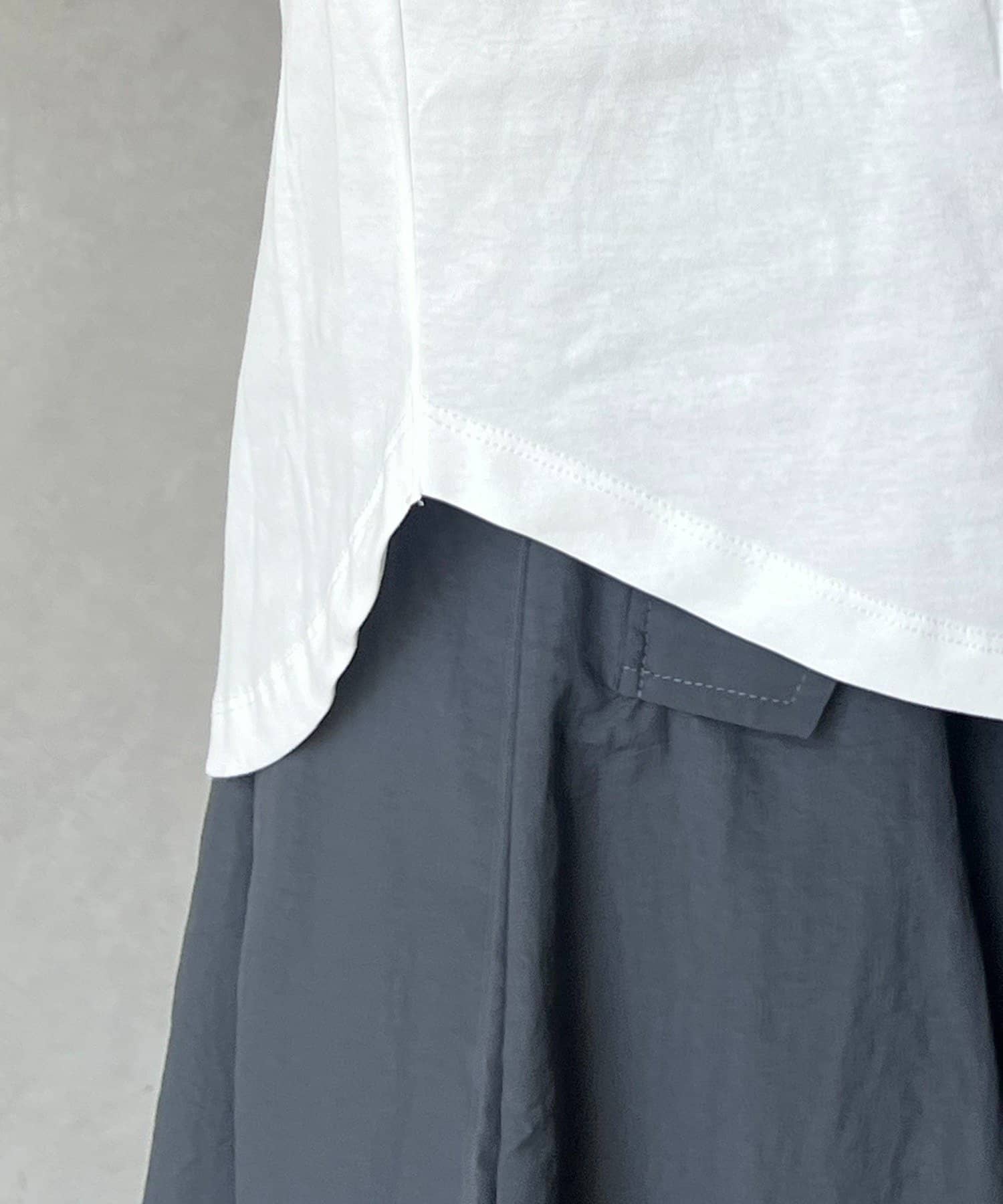 ・裾がラウンドカットされており、ニットなどとのレイヤードスタイルにもピッタリ