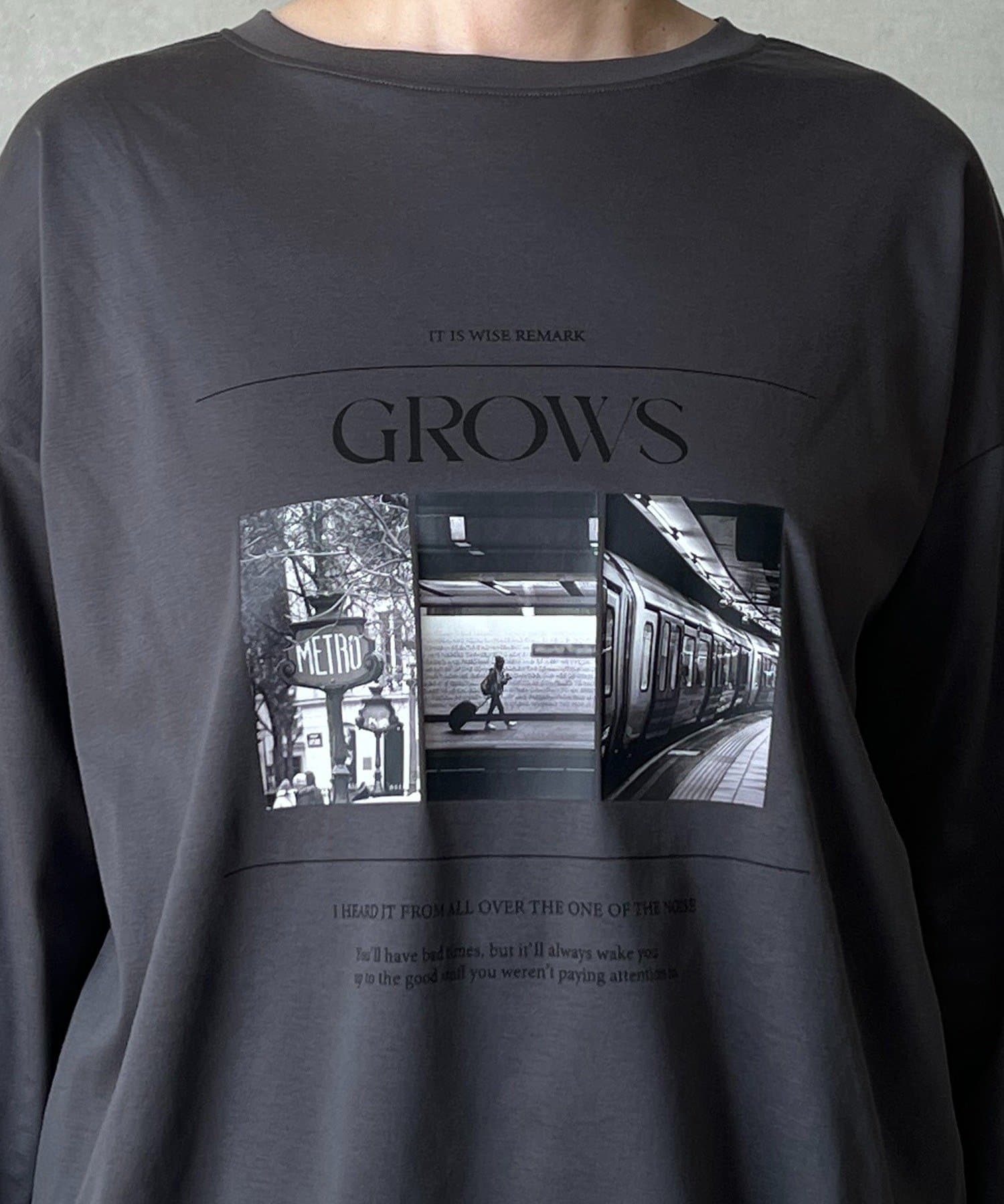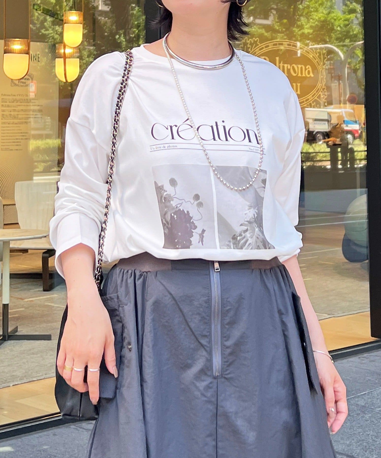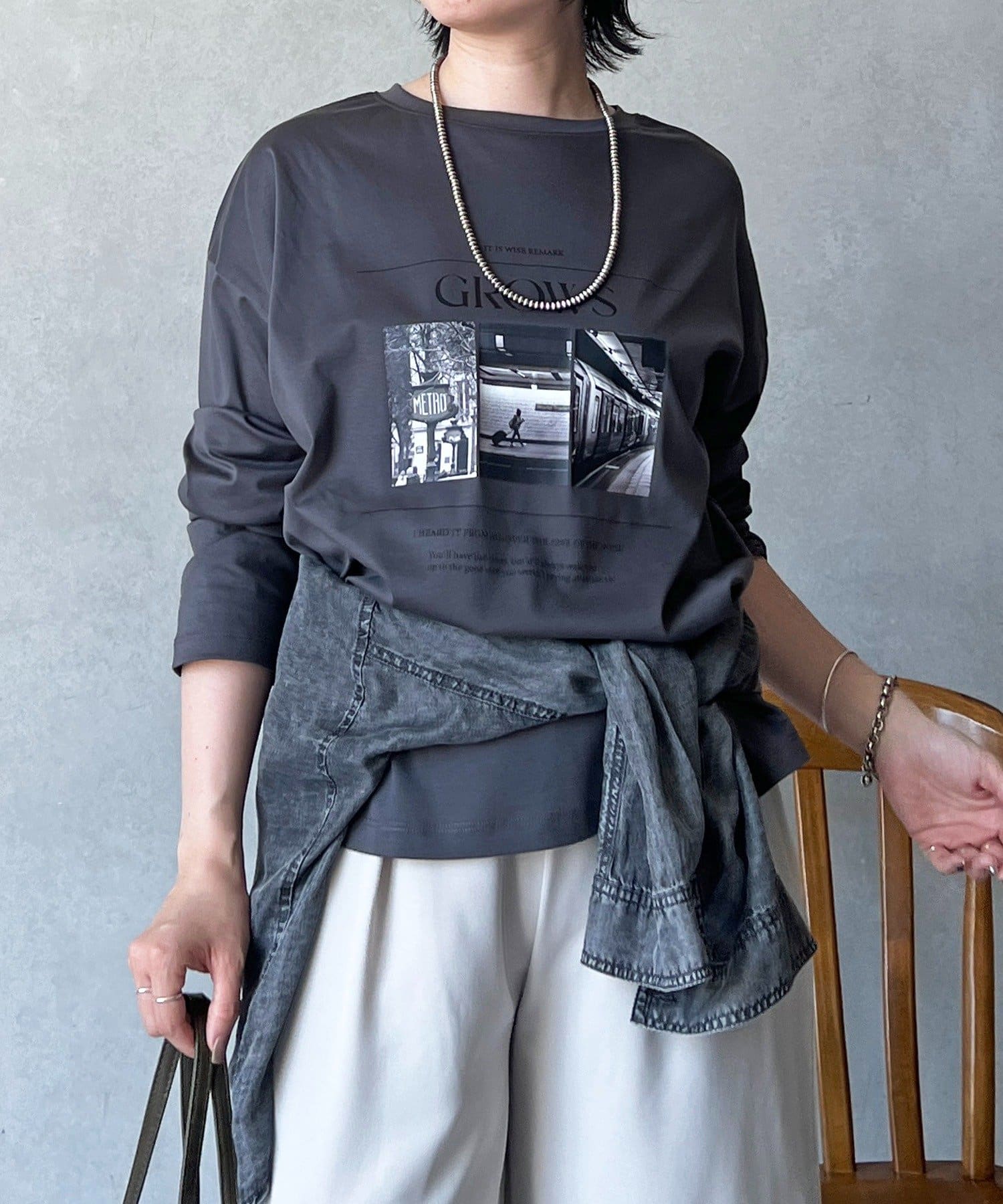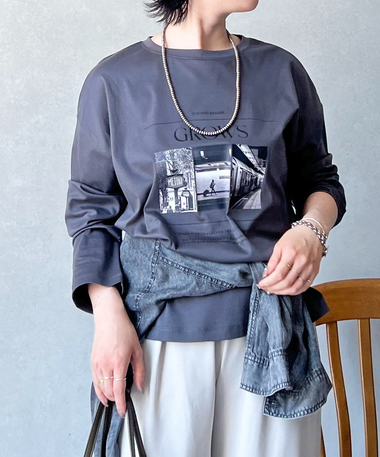 ・グラフィックフォトプリントでアクセントをつけた長袖Tシャツ