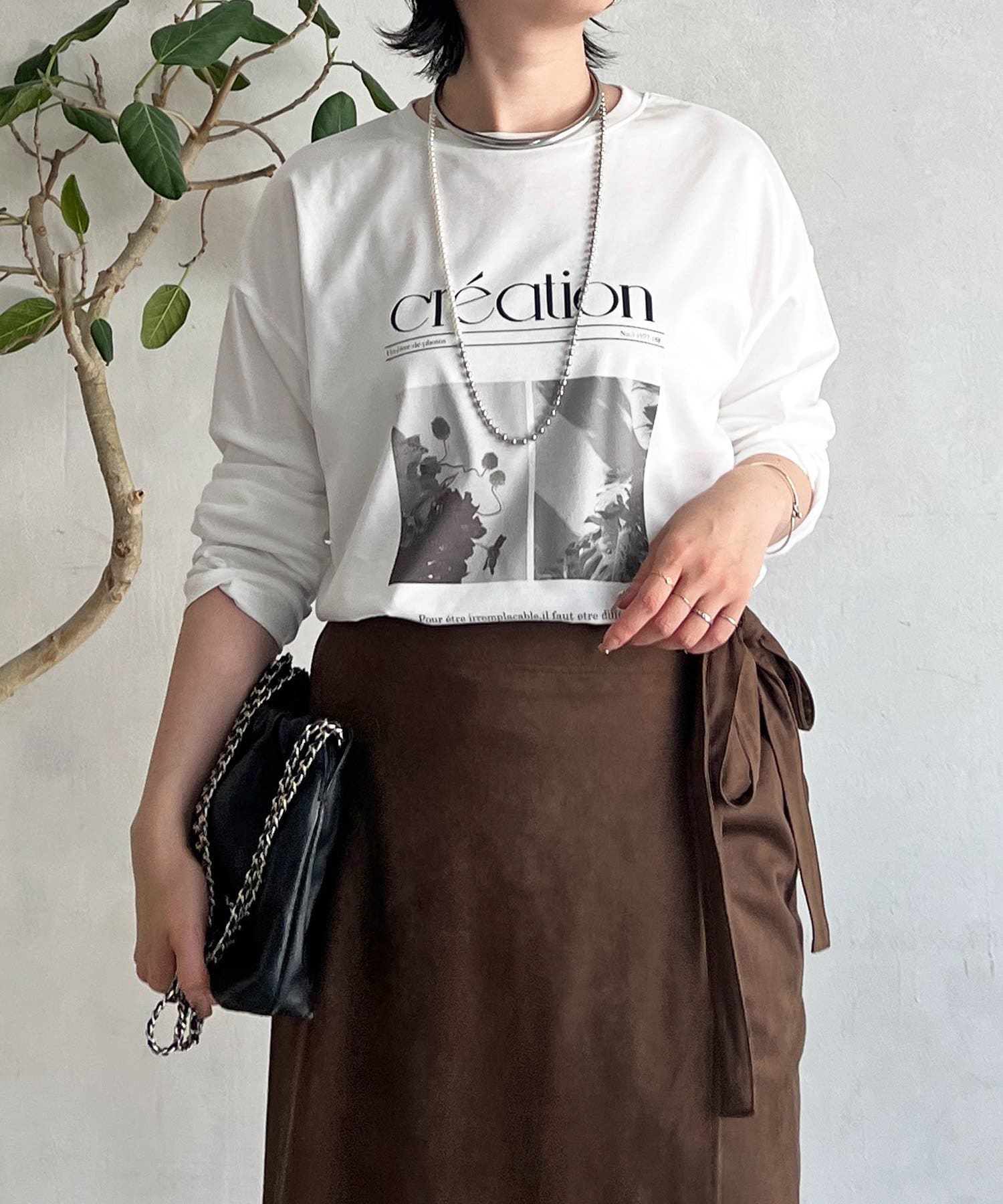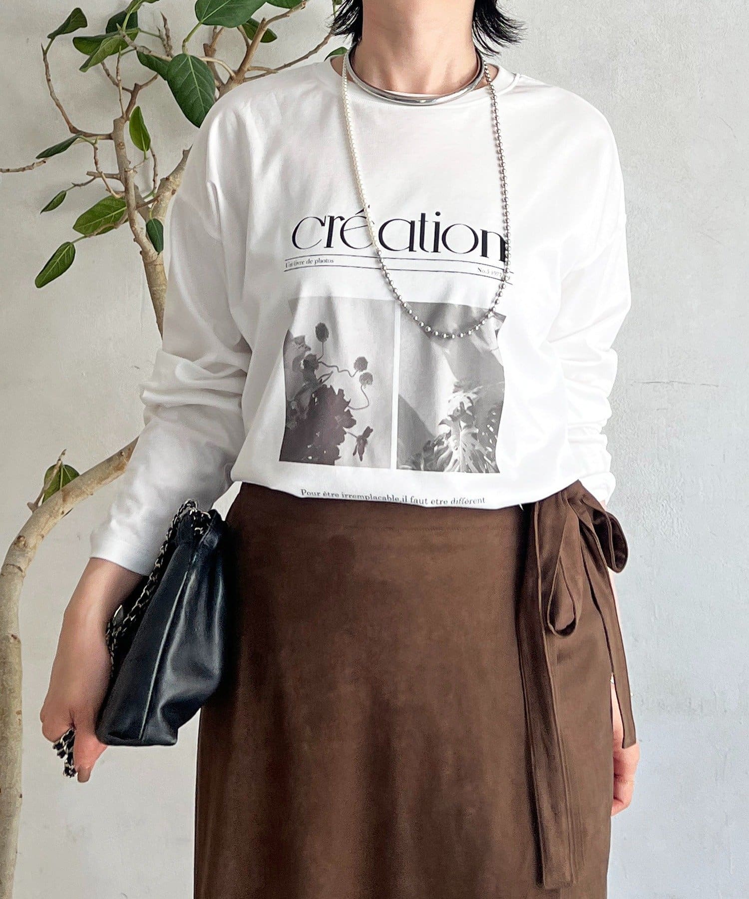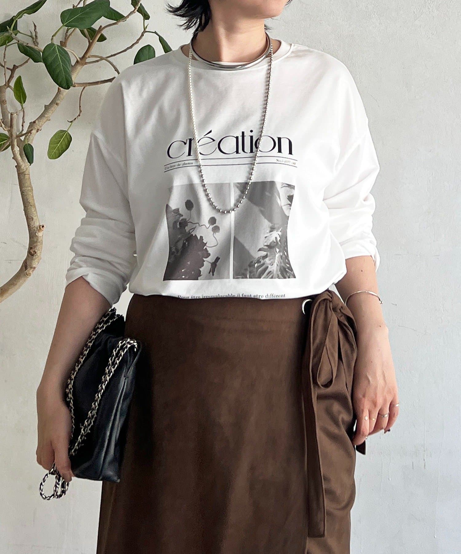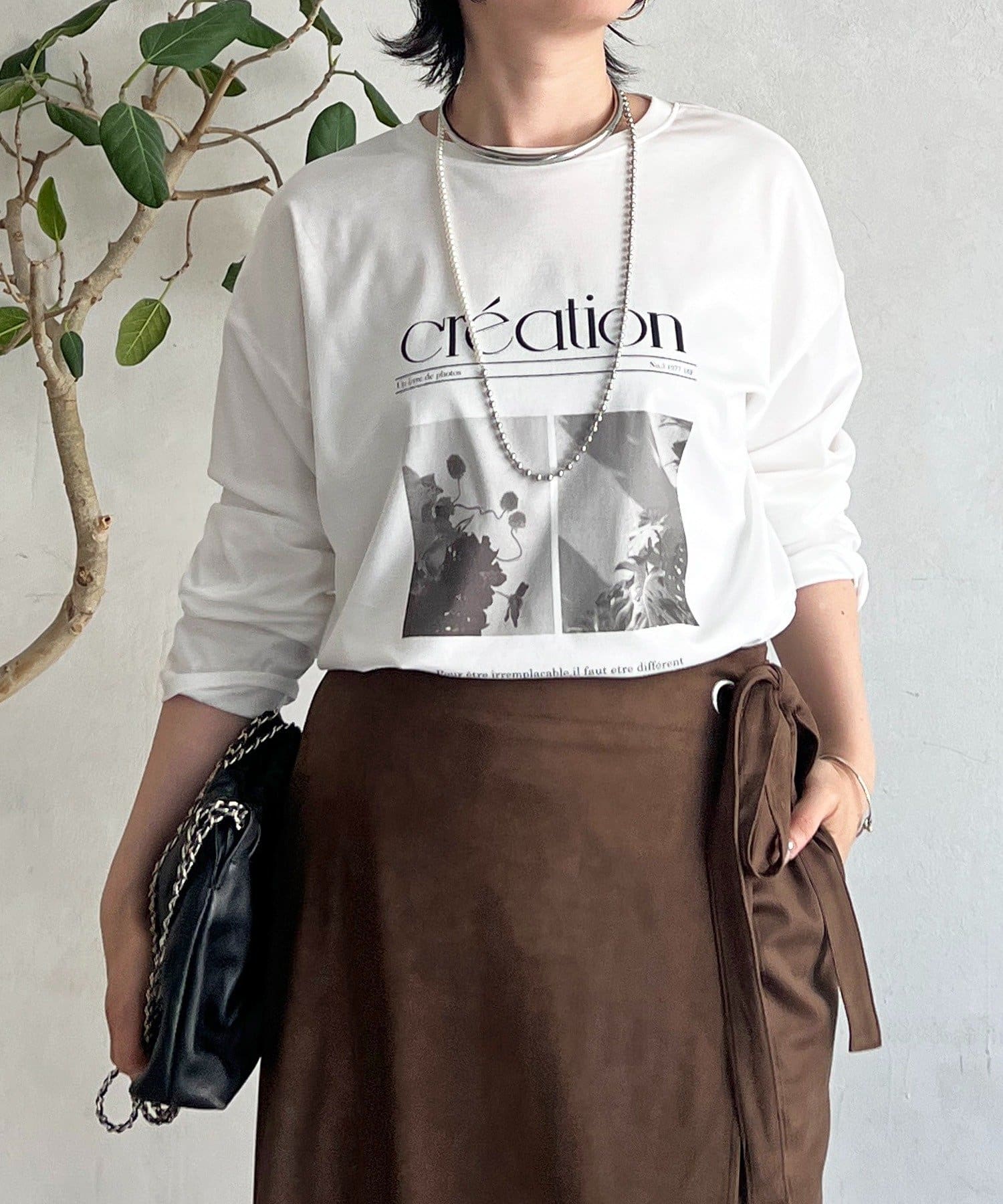 ・グラフィックフォトプリントでアクセントをつけた長袖Tシャツ