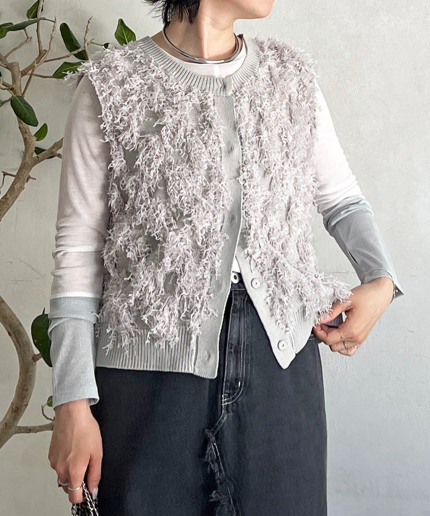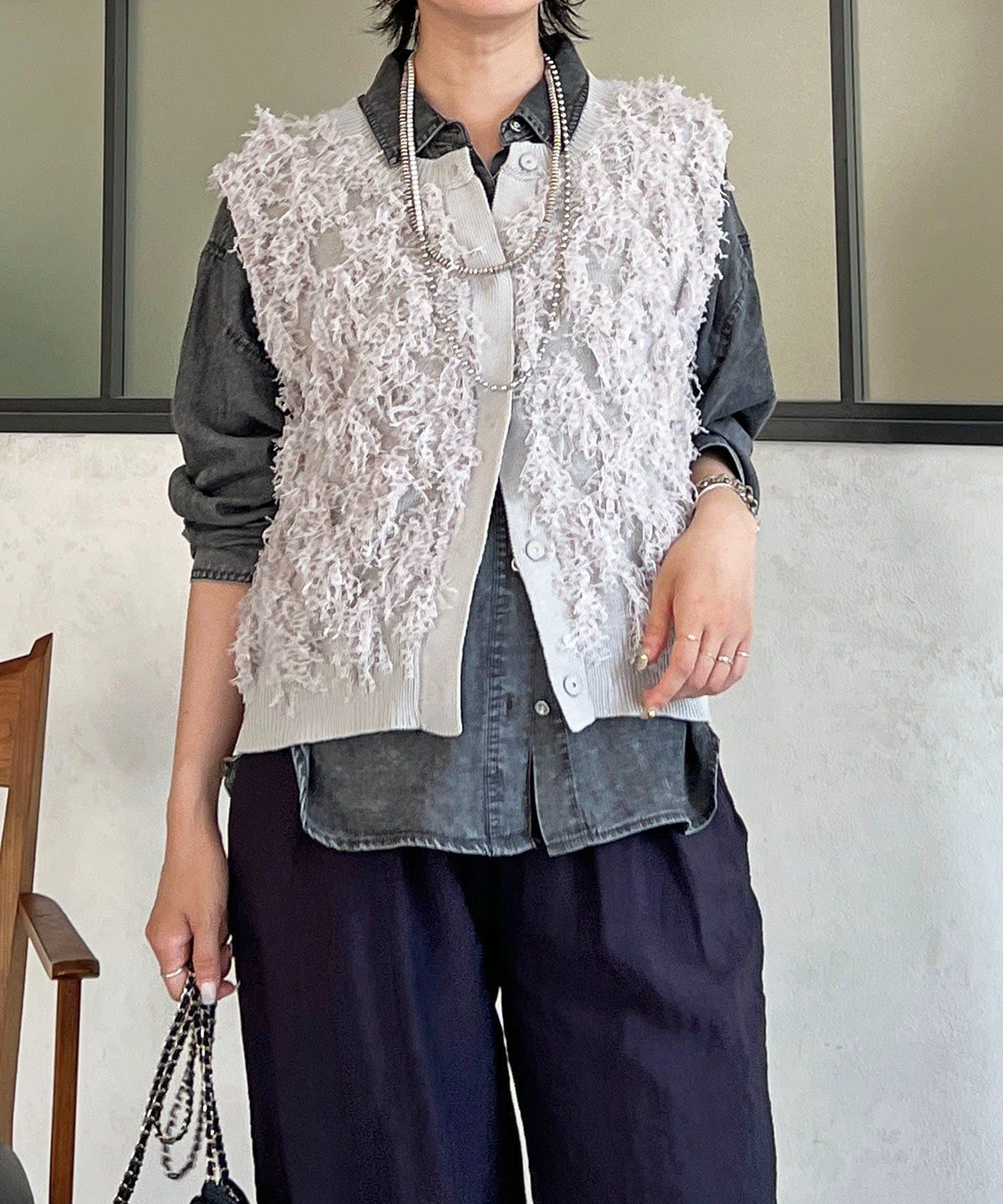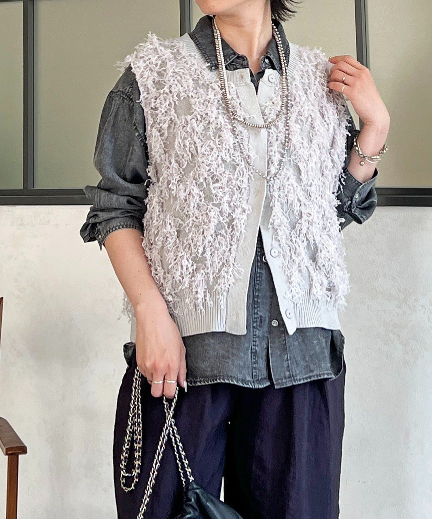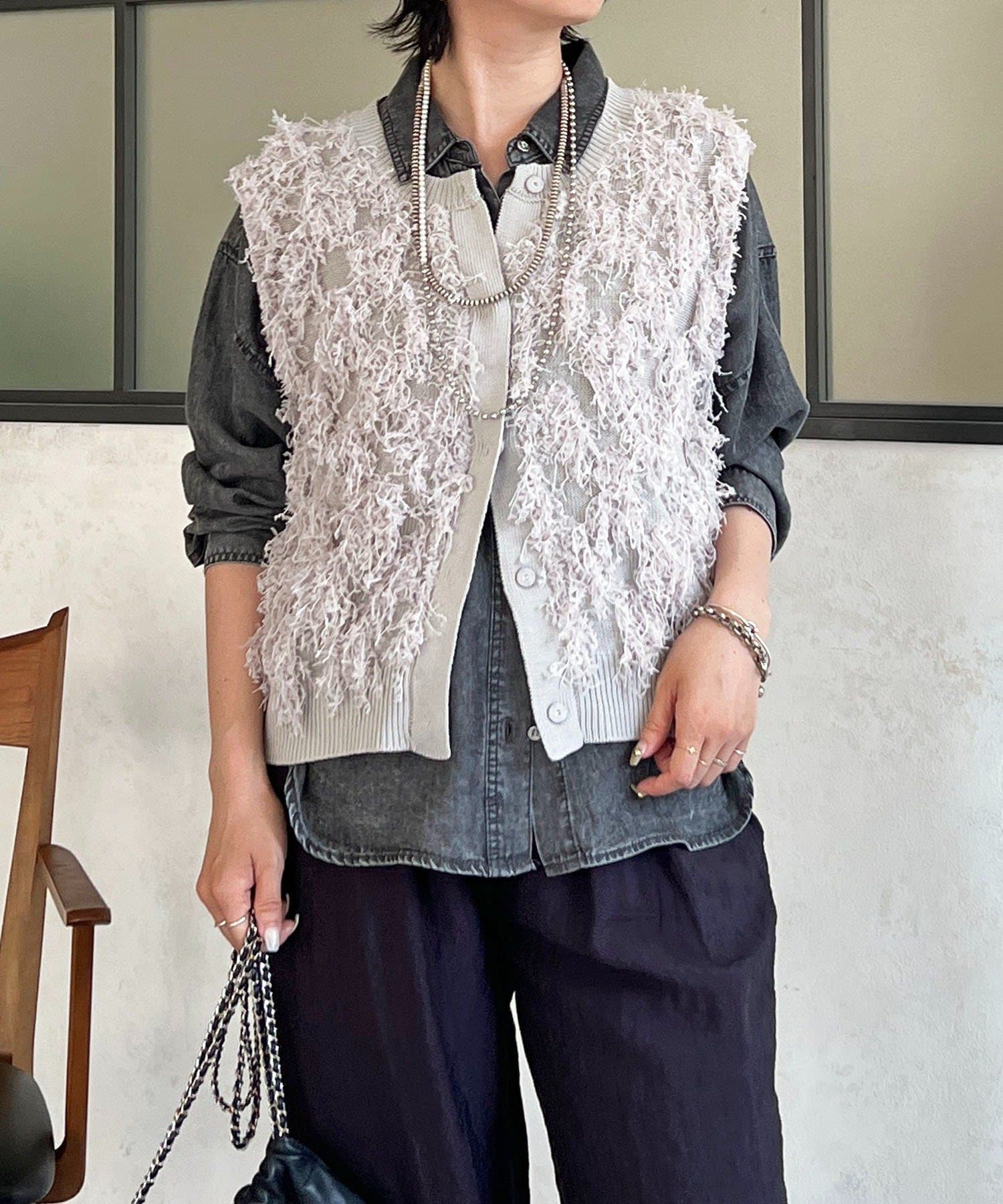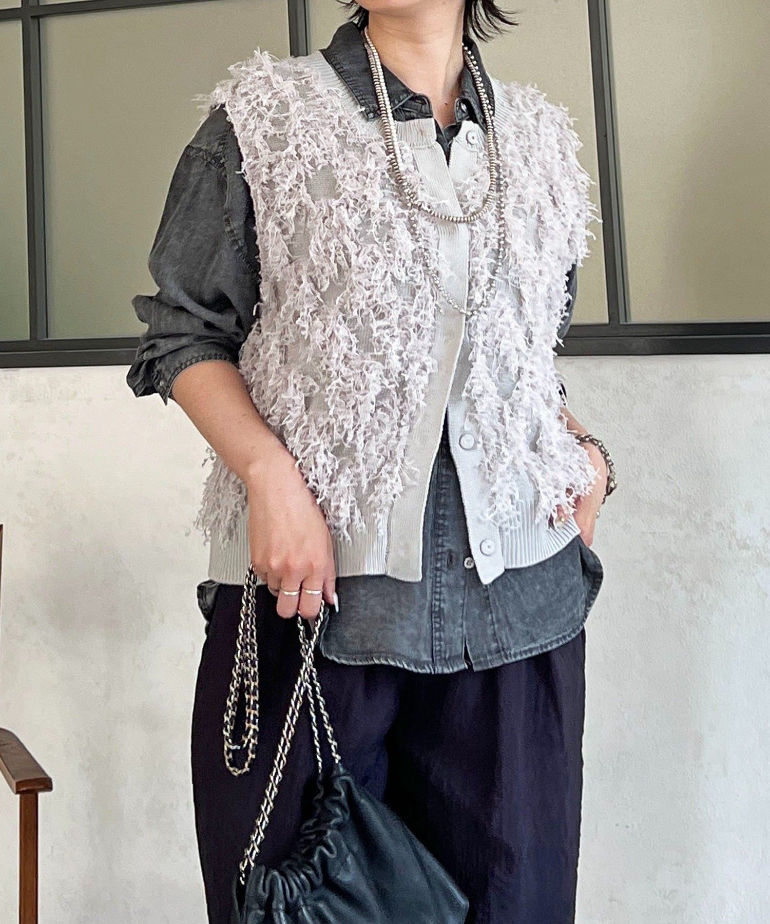 ・表面感のある素材感がかわいいフリンジベスト