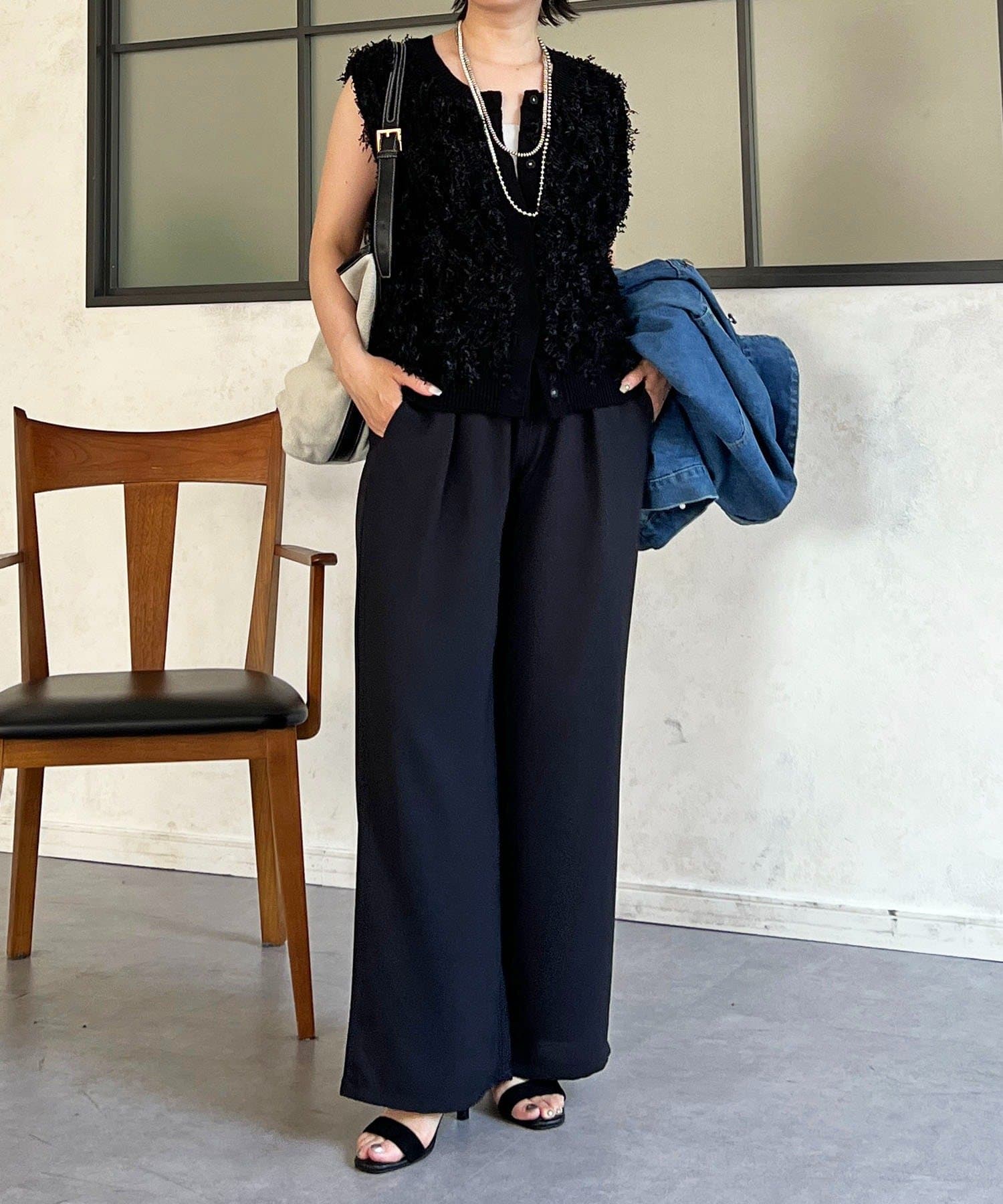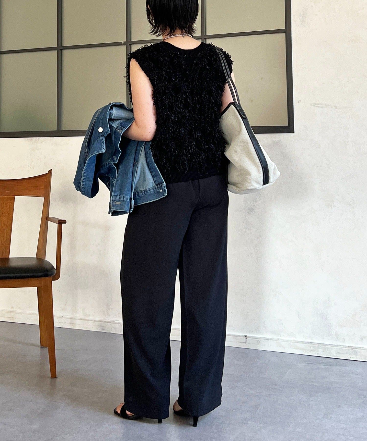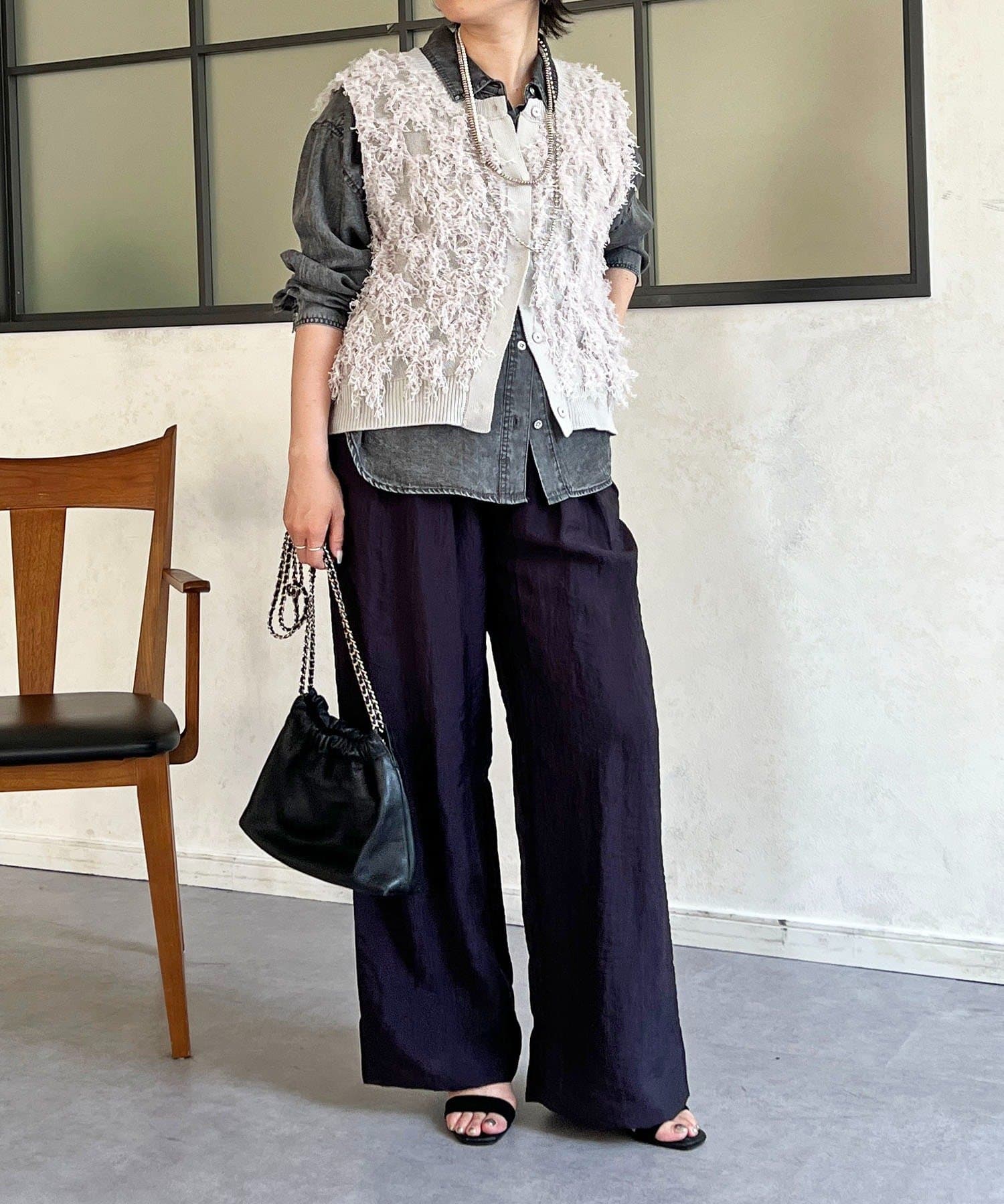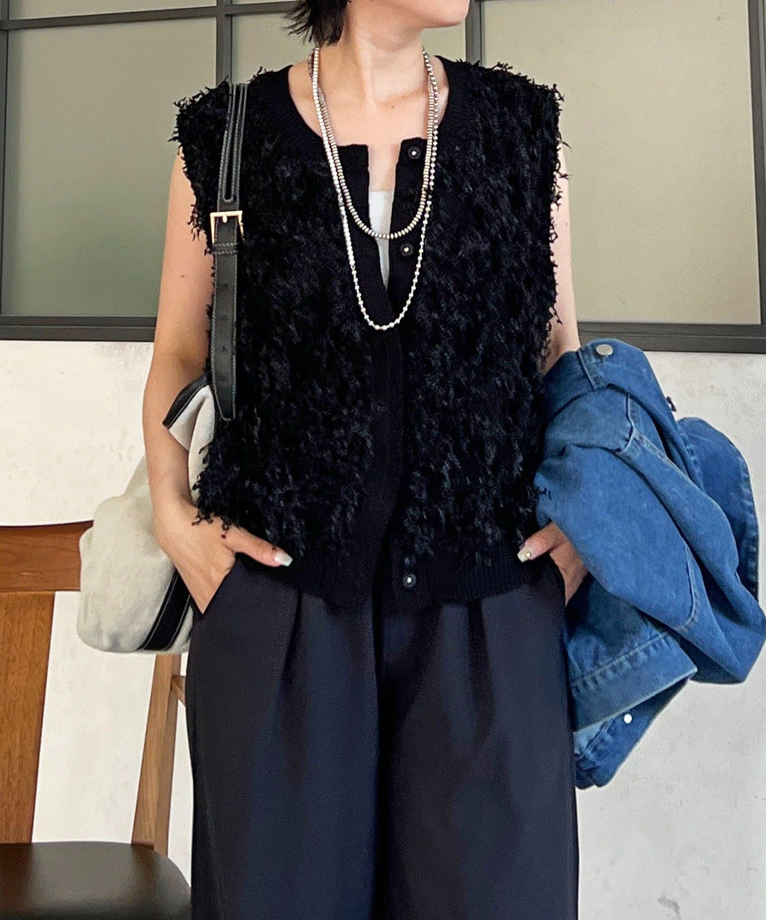表面感のある素材がトレンドムードのフリンジベスト