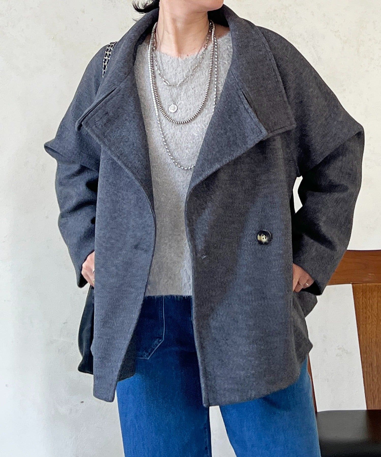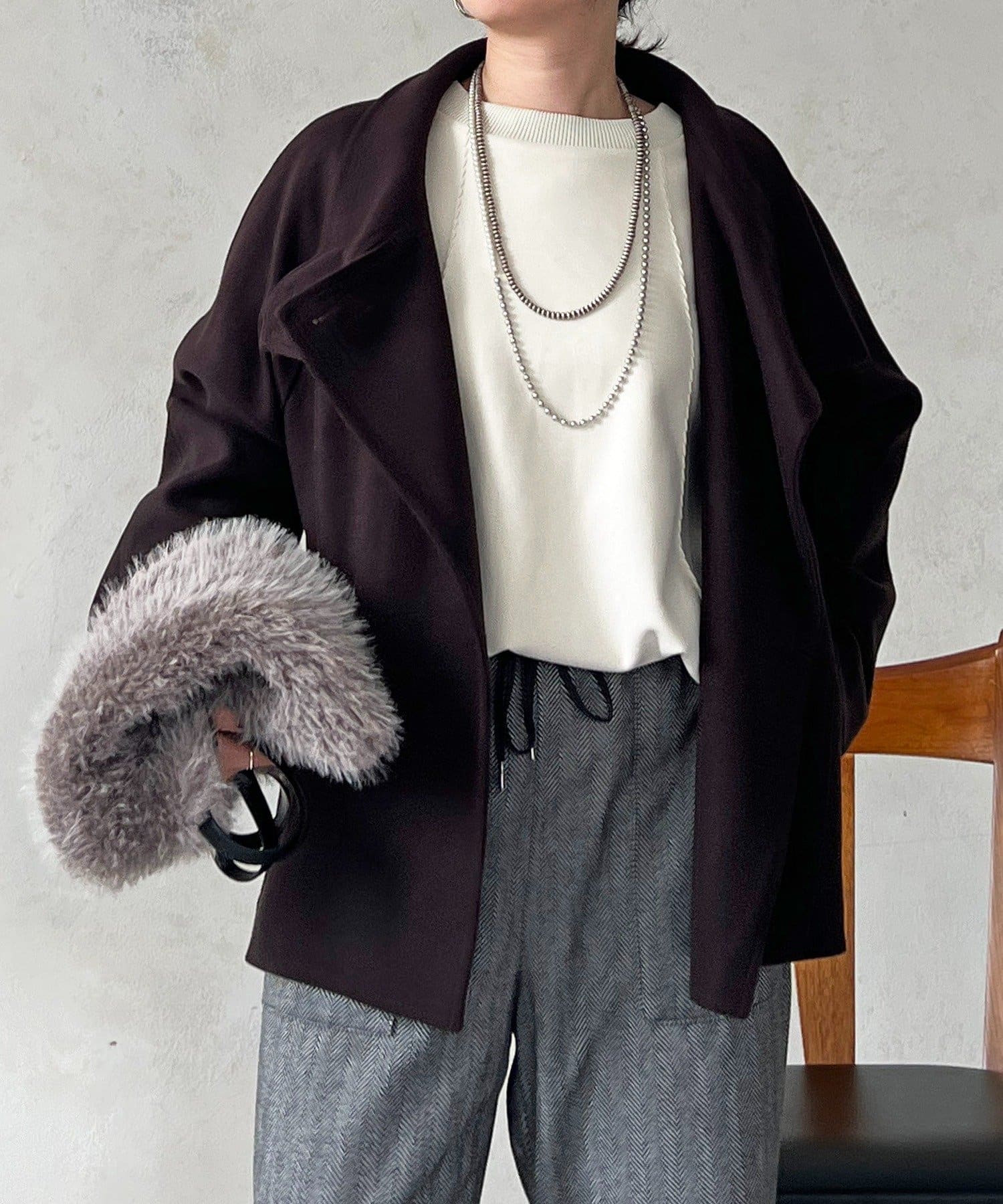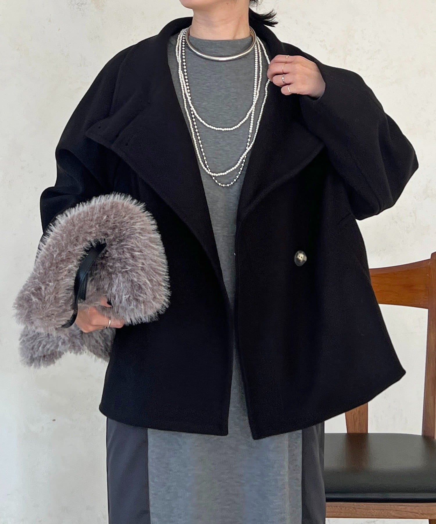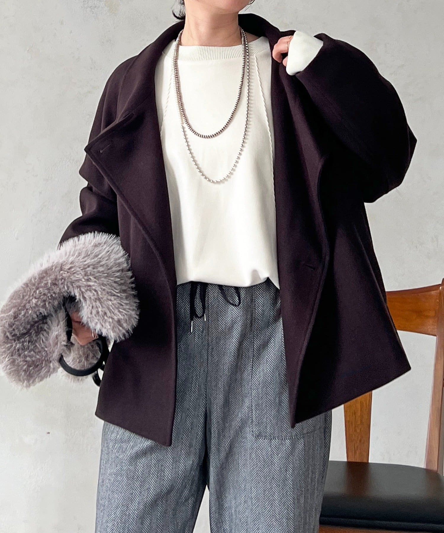 ・ワイドスタンドが顔まわりを華やかに演出してくれるショートコート