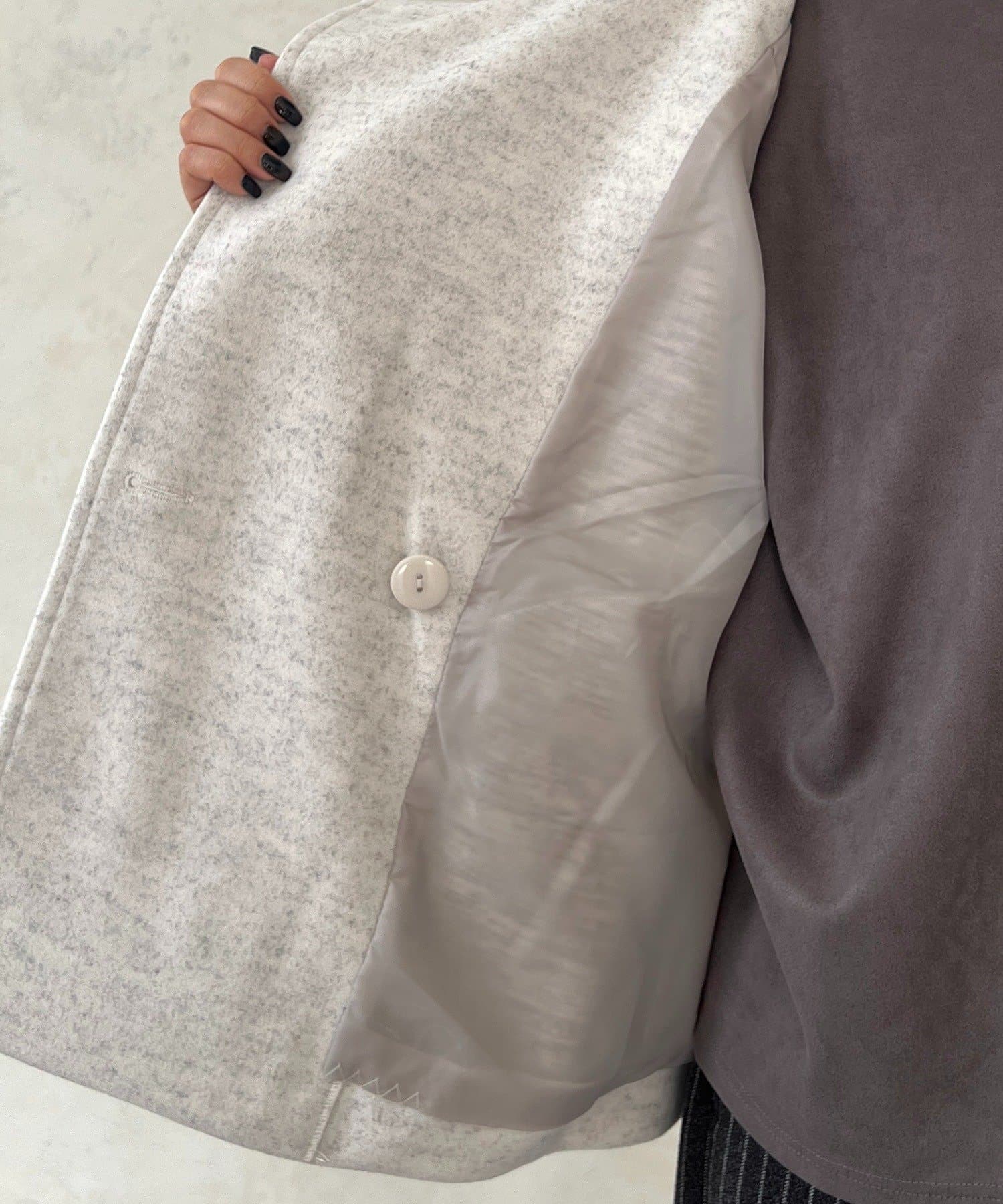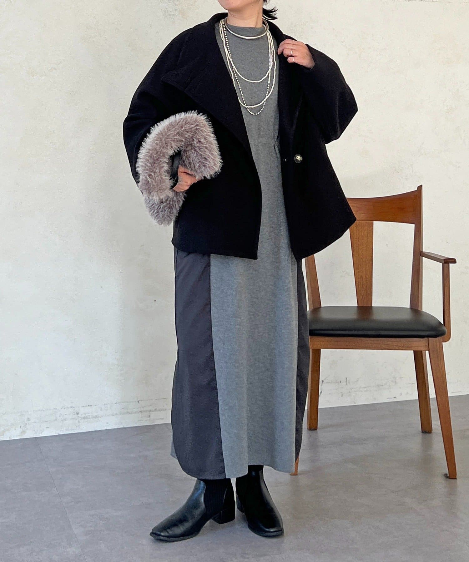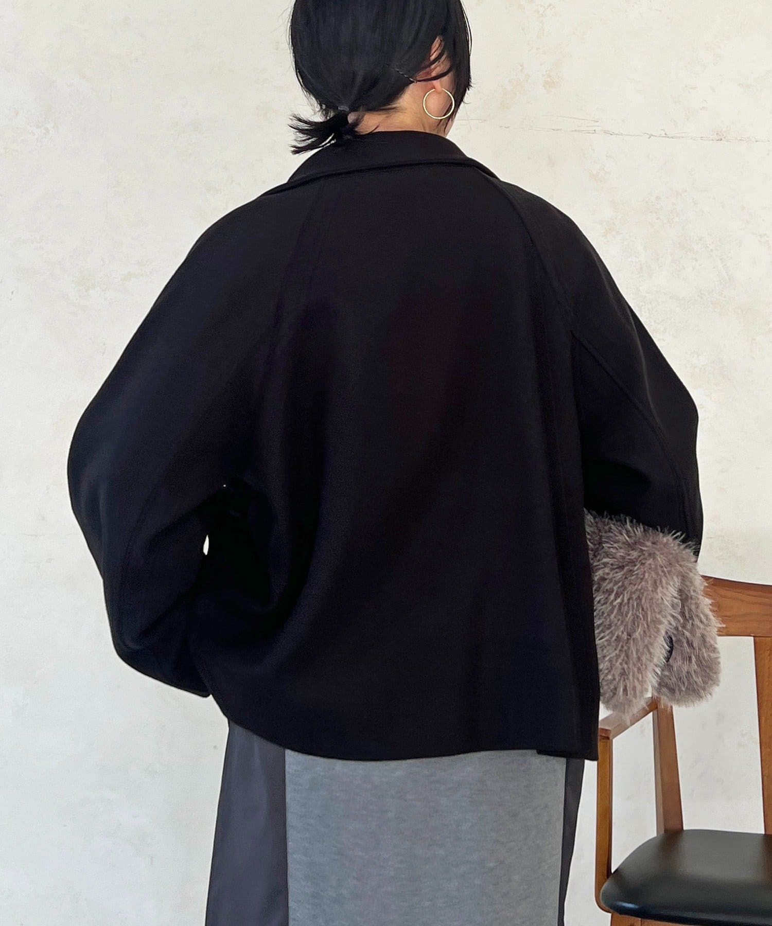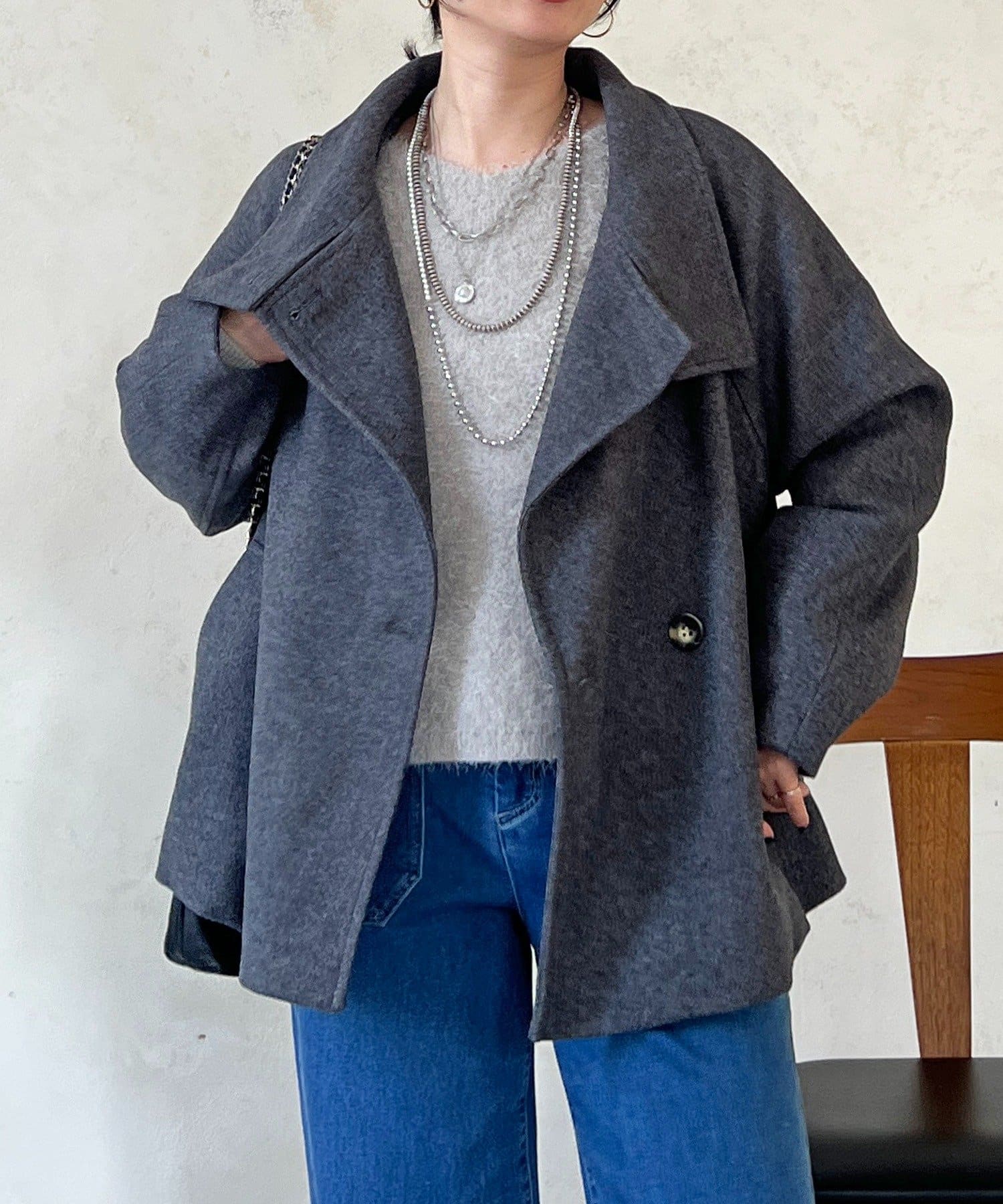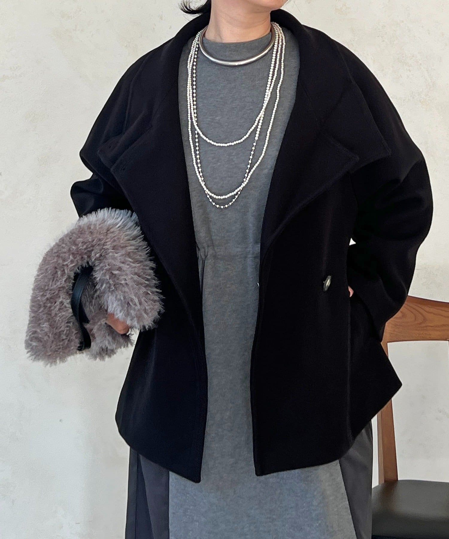 ・ワイドスタンドが顔まわりを華やかに演出してくれるショートコート