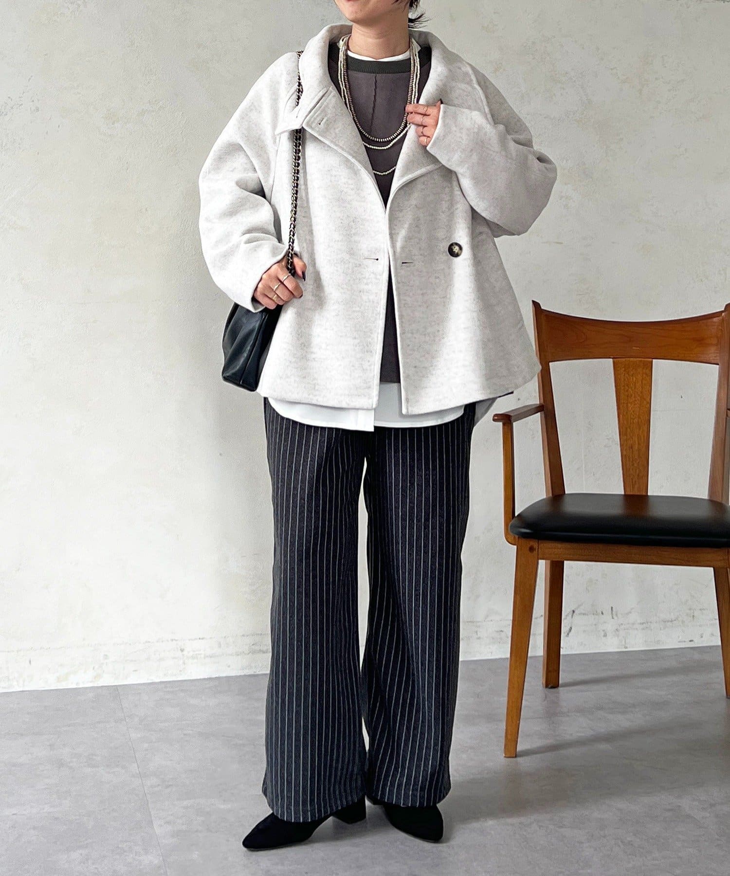 スタンドカラーで程よいカジュアル感が魅力のショートコート