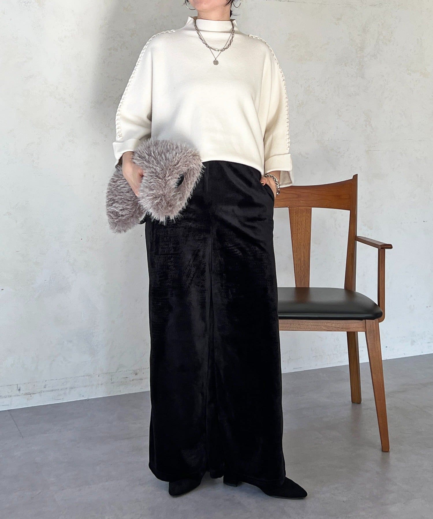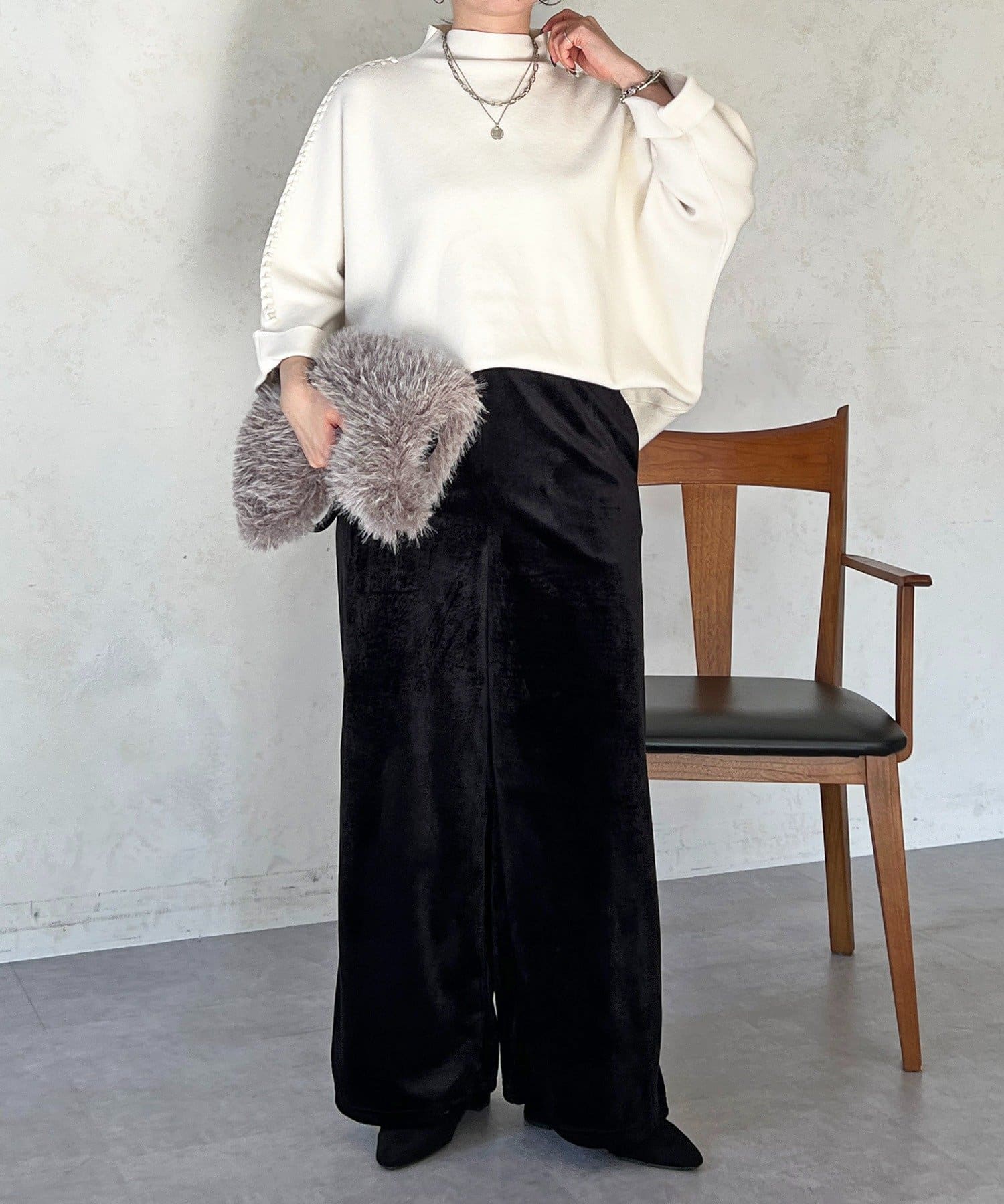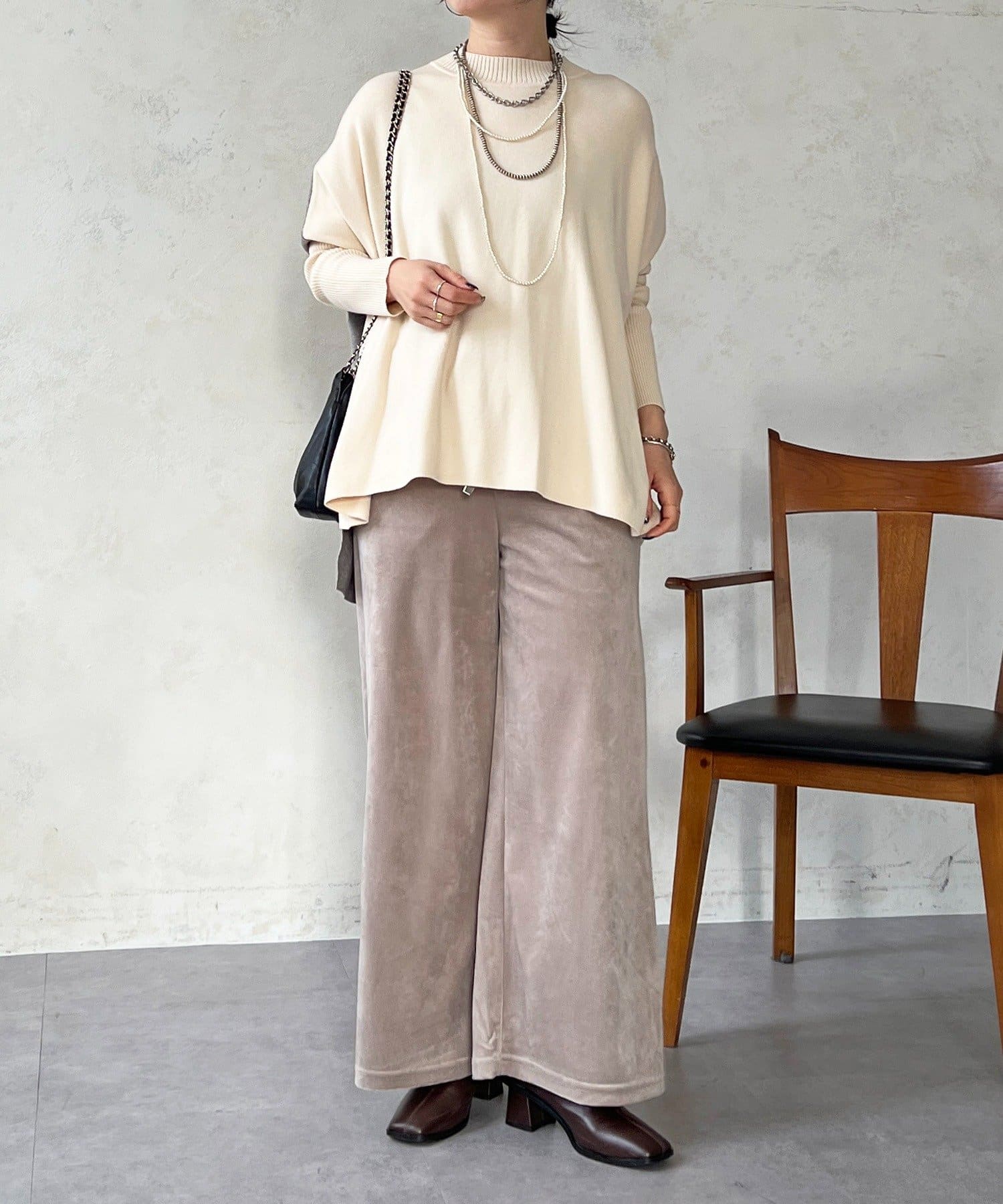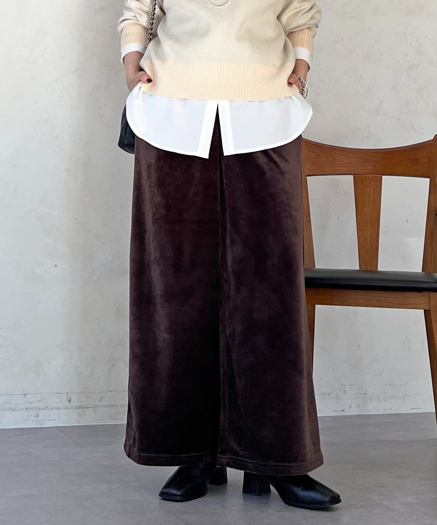 ・シームズンムードたっぷりなベロアコール素材がこなれ感を演出