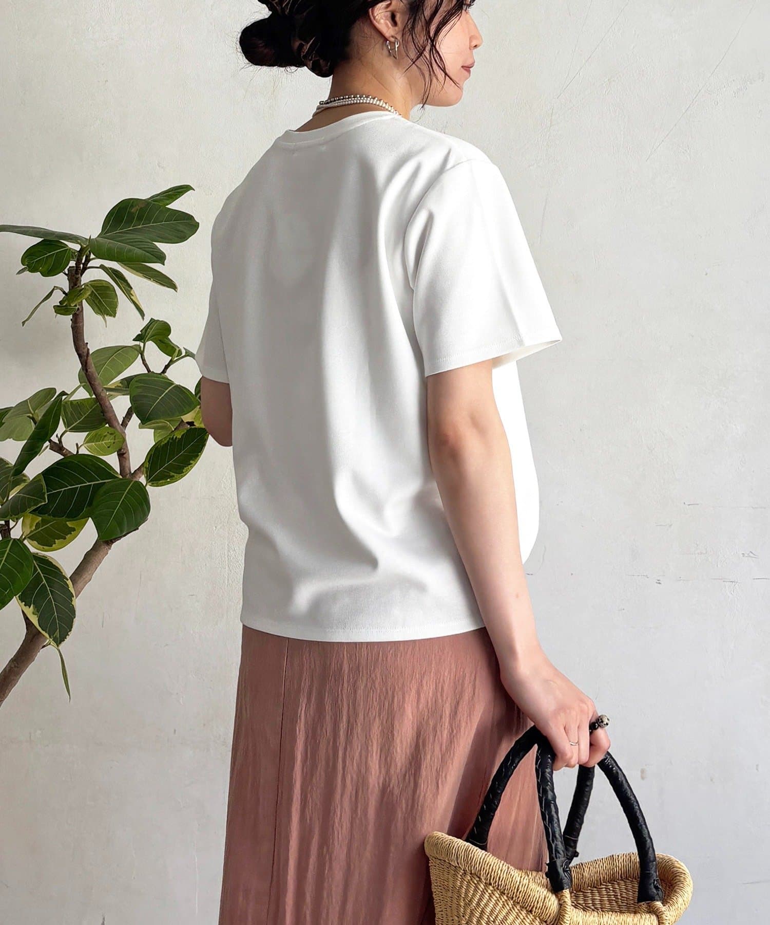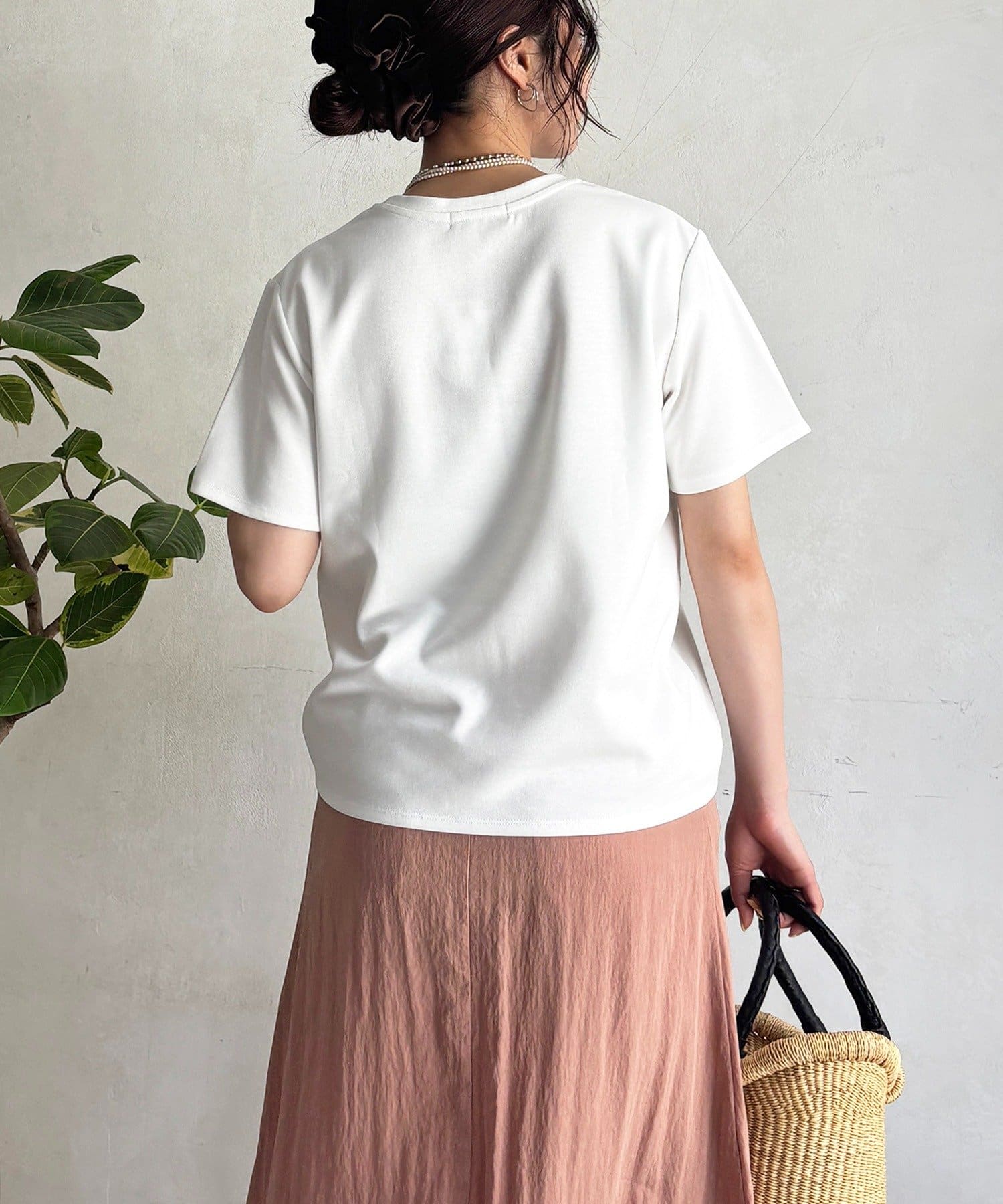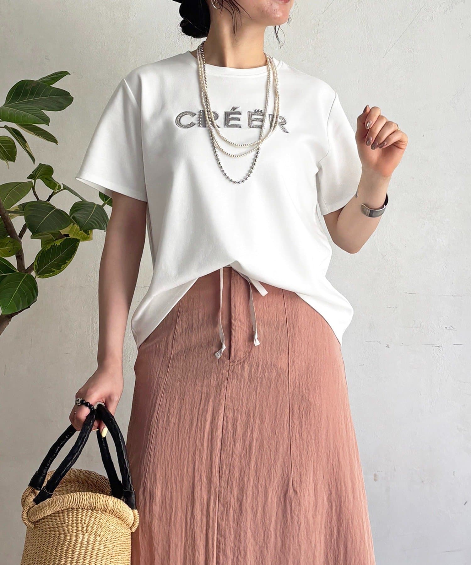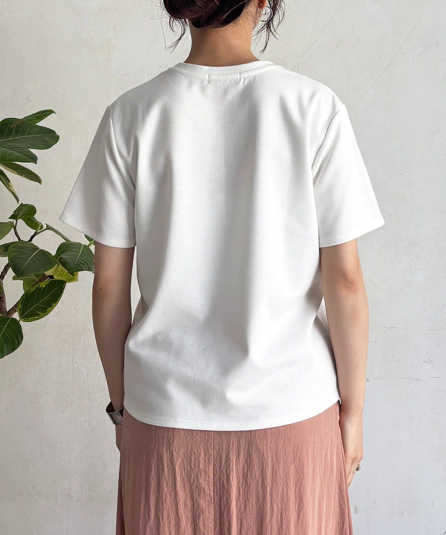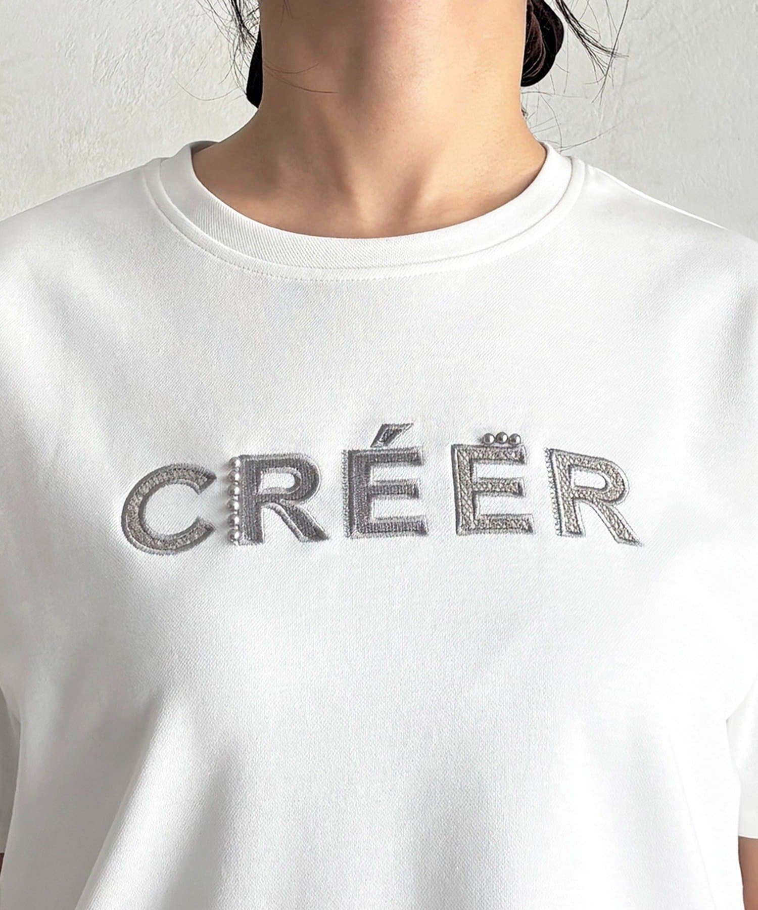 上品カジュアルに着こなせるビーズ×刺繍ロゴTシャツ