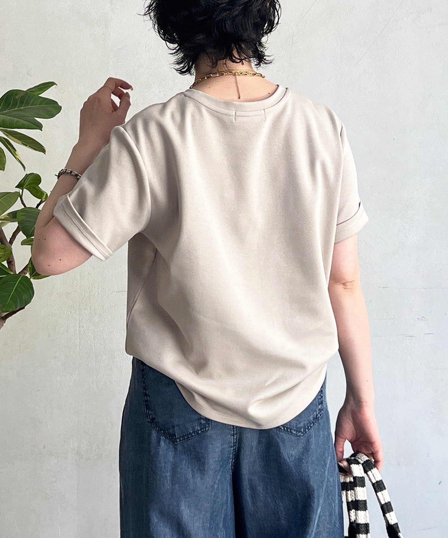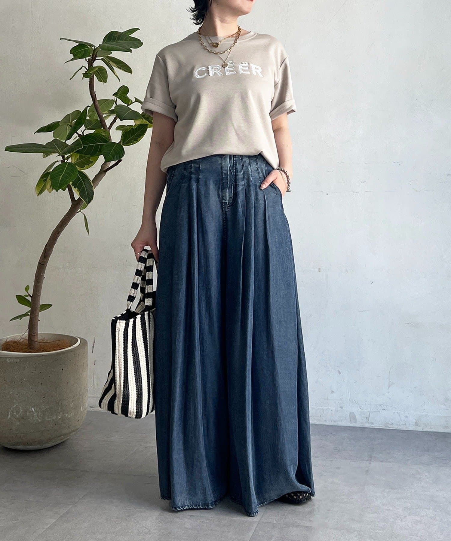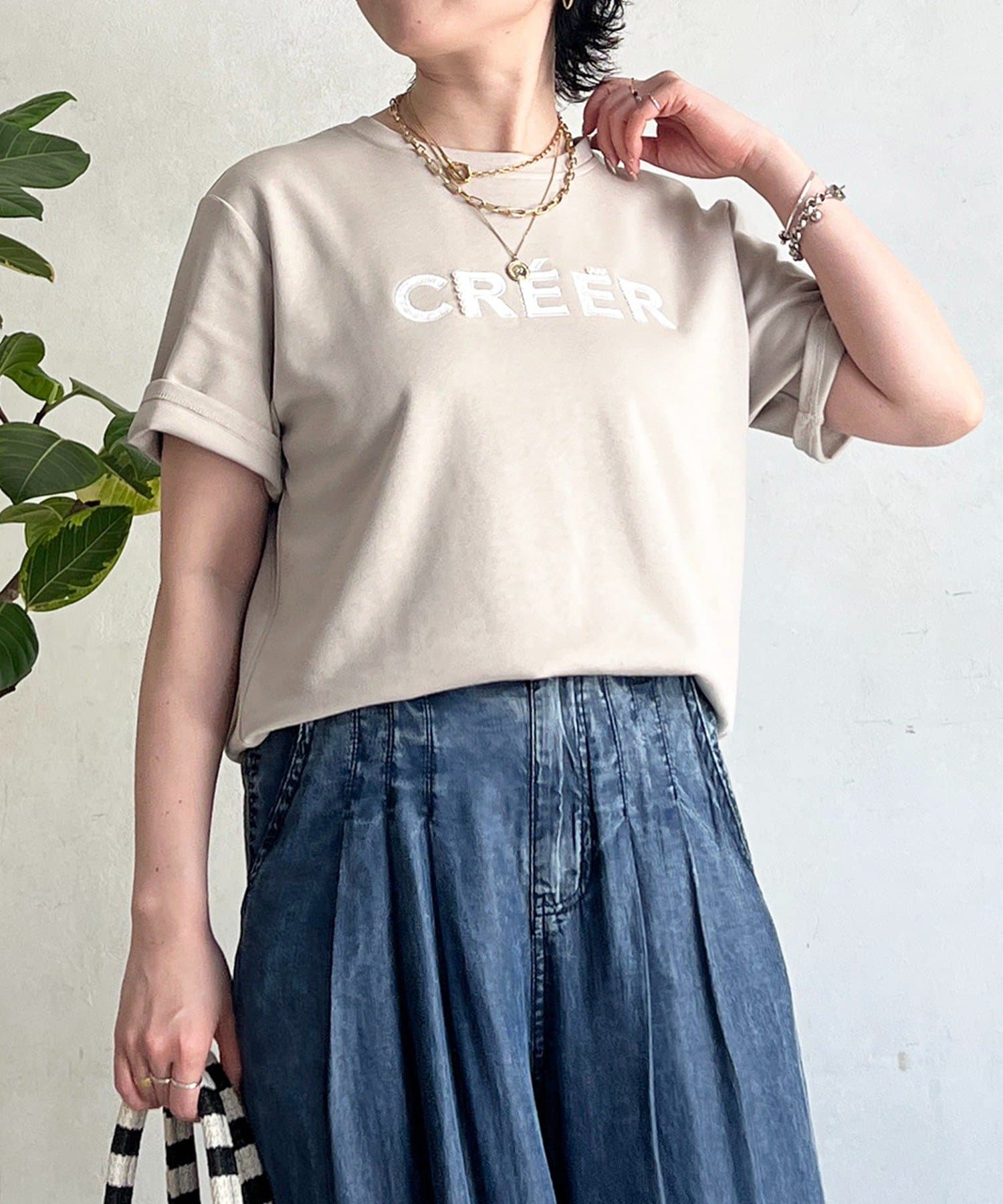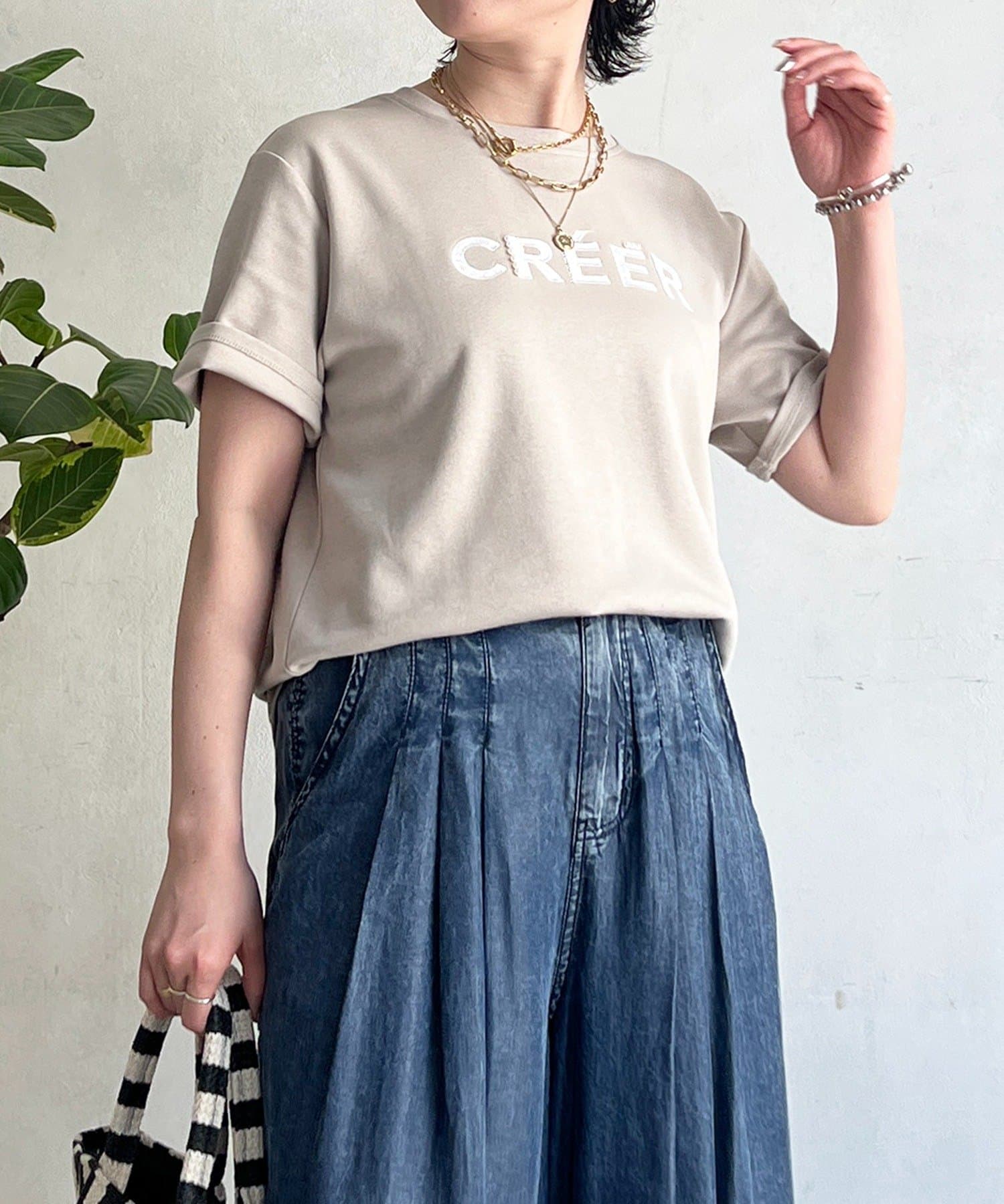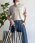 上品カジュアルに着こなせるビーズ×刺繍ロゴTシャツ