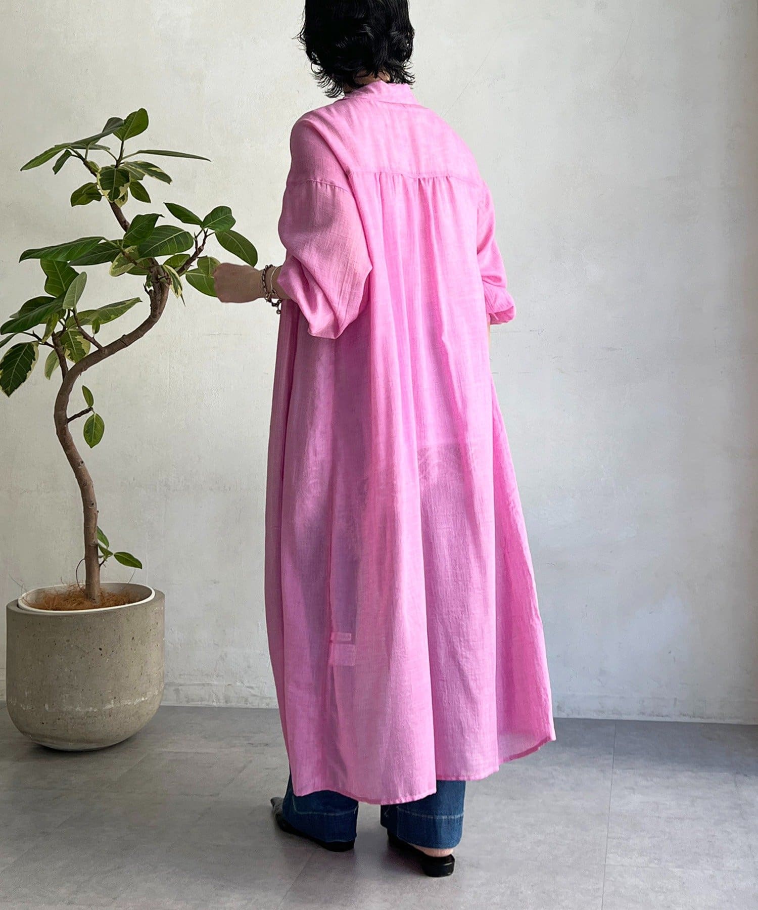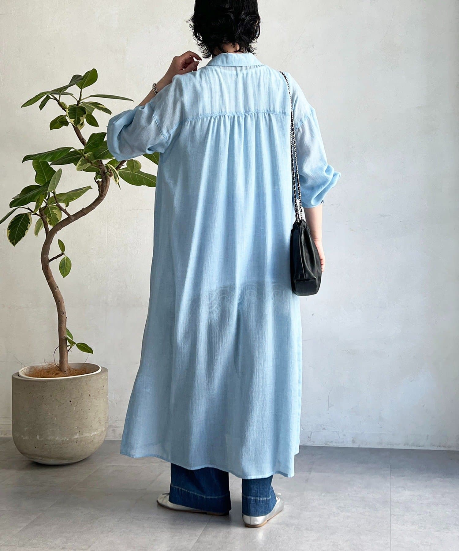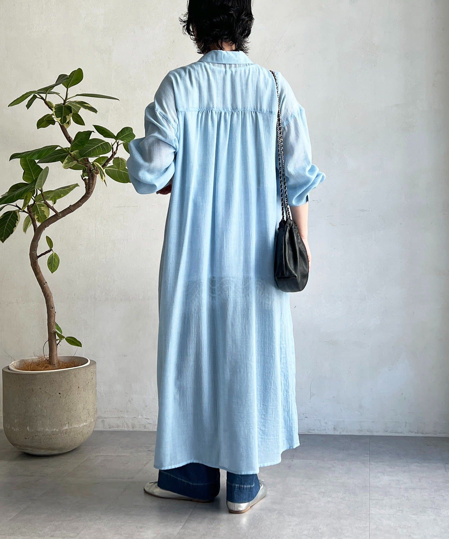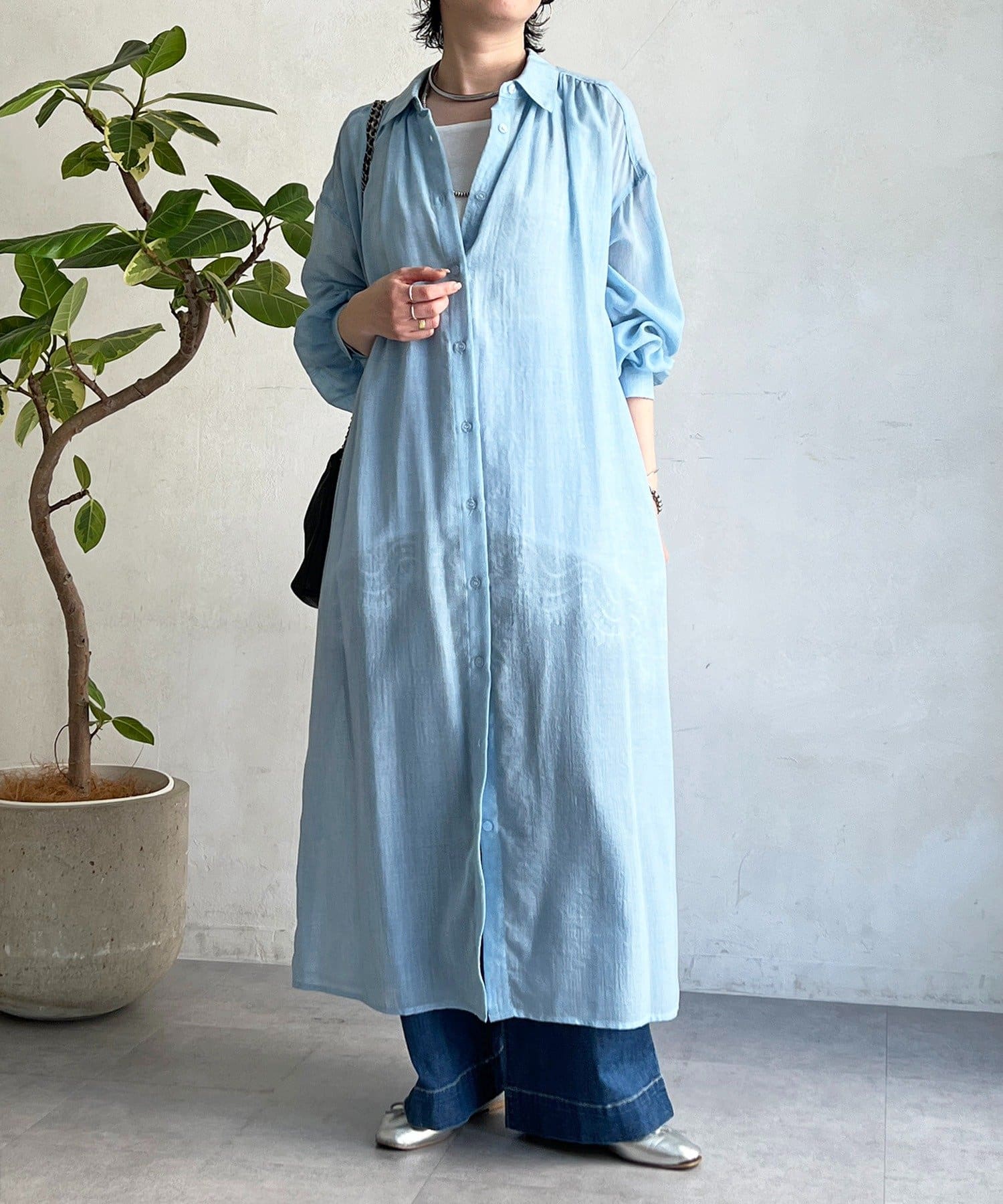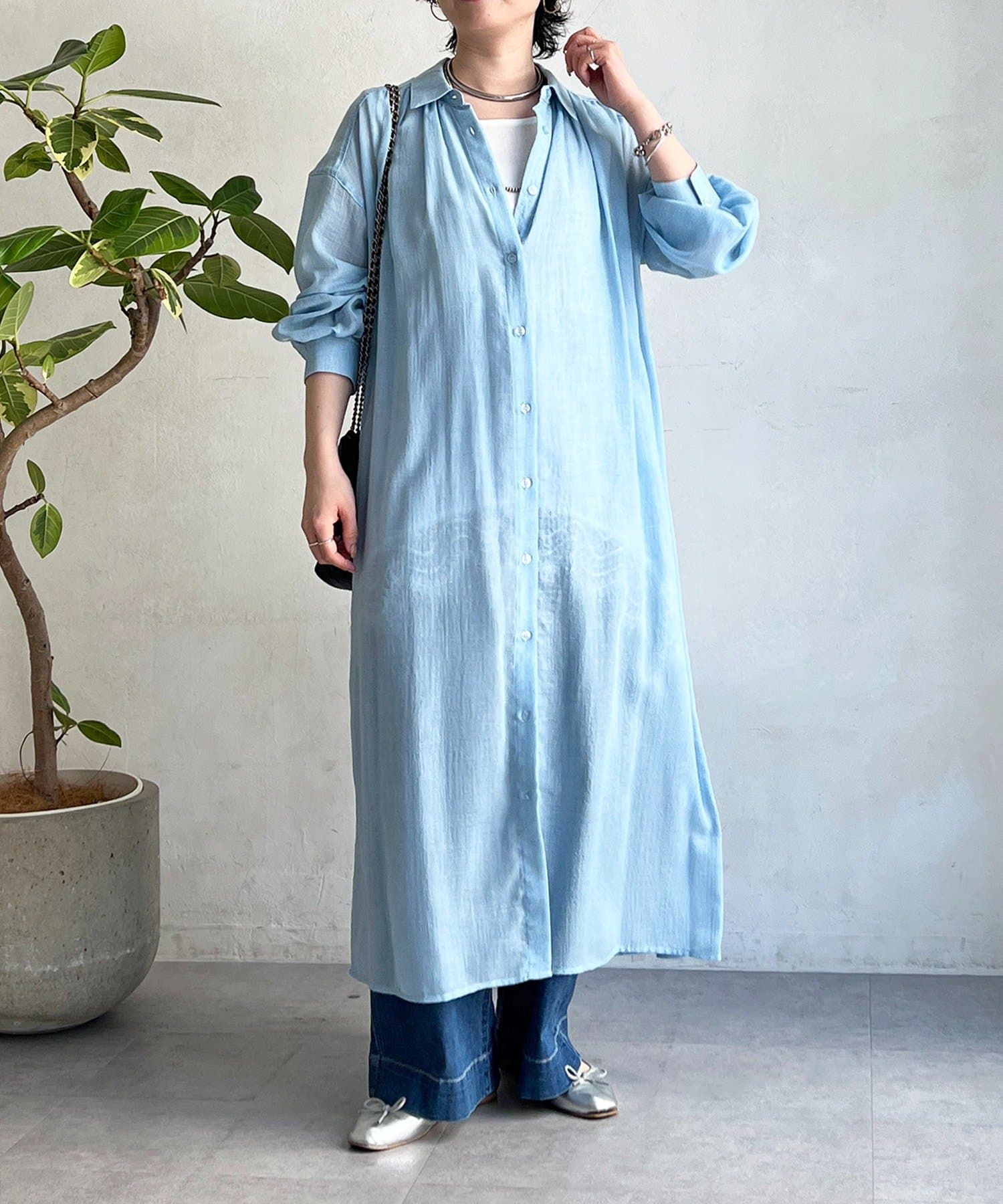 ・シャリ感とドライな素材感がシャツワンピの上品さにカジュアルさをプラス
