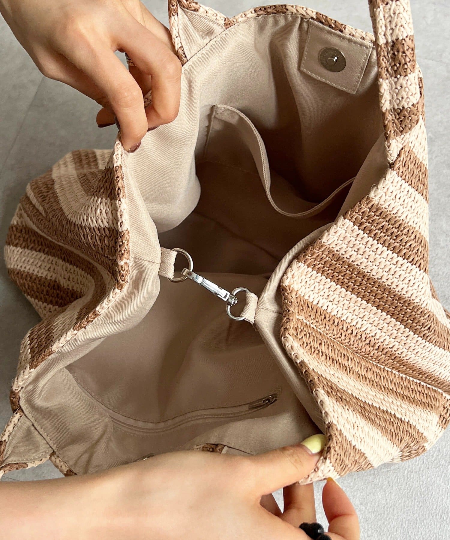 シーズンムードたっぷり!ストライプが華やかな2wayかごトート