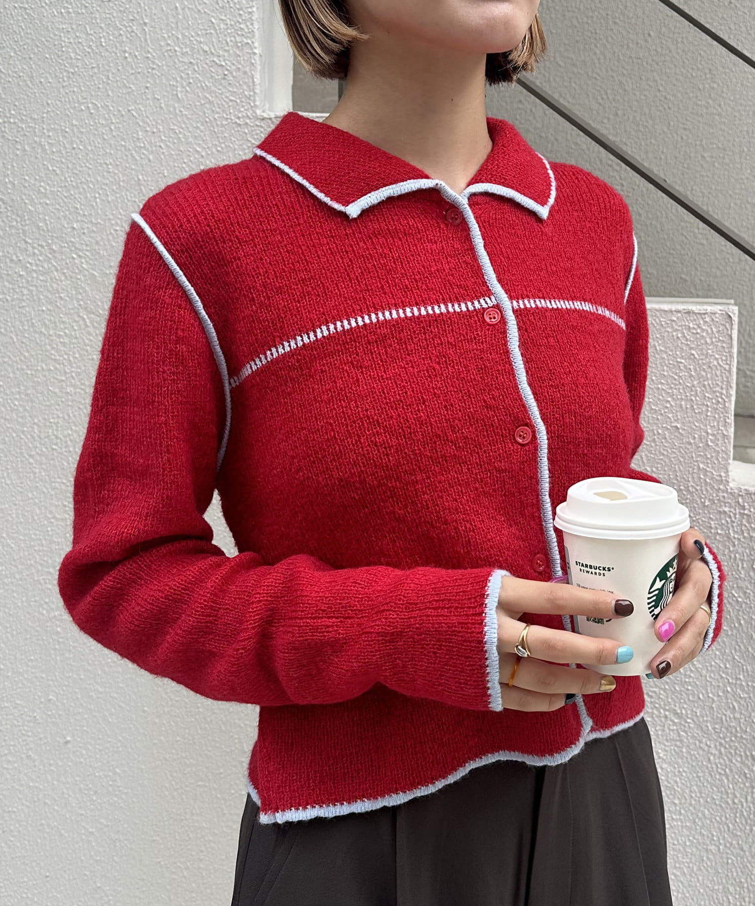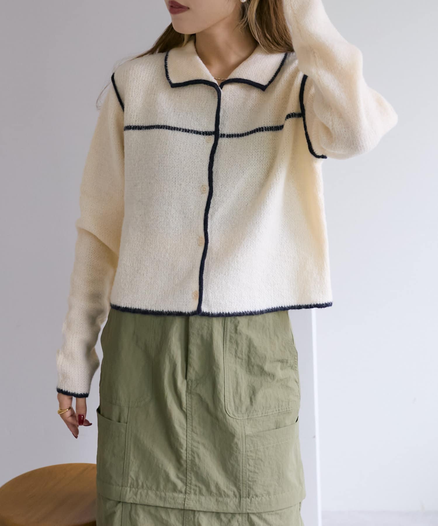 ・フロントボタンを開けてカーデとしても、閉めてトップスとしても着用していただけます