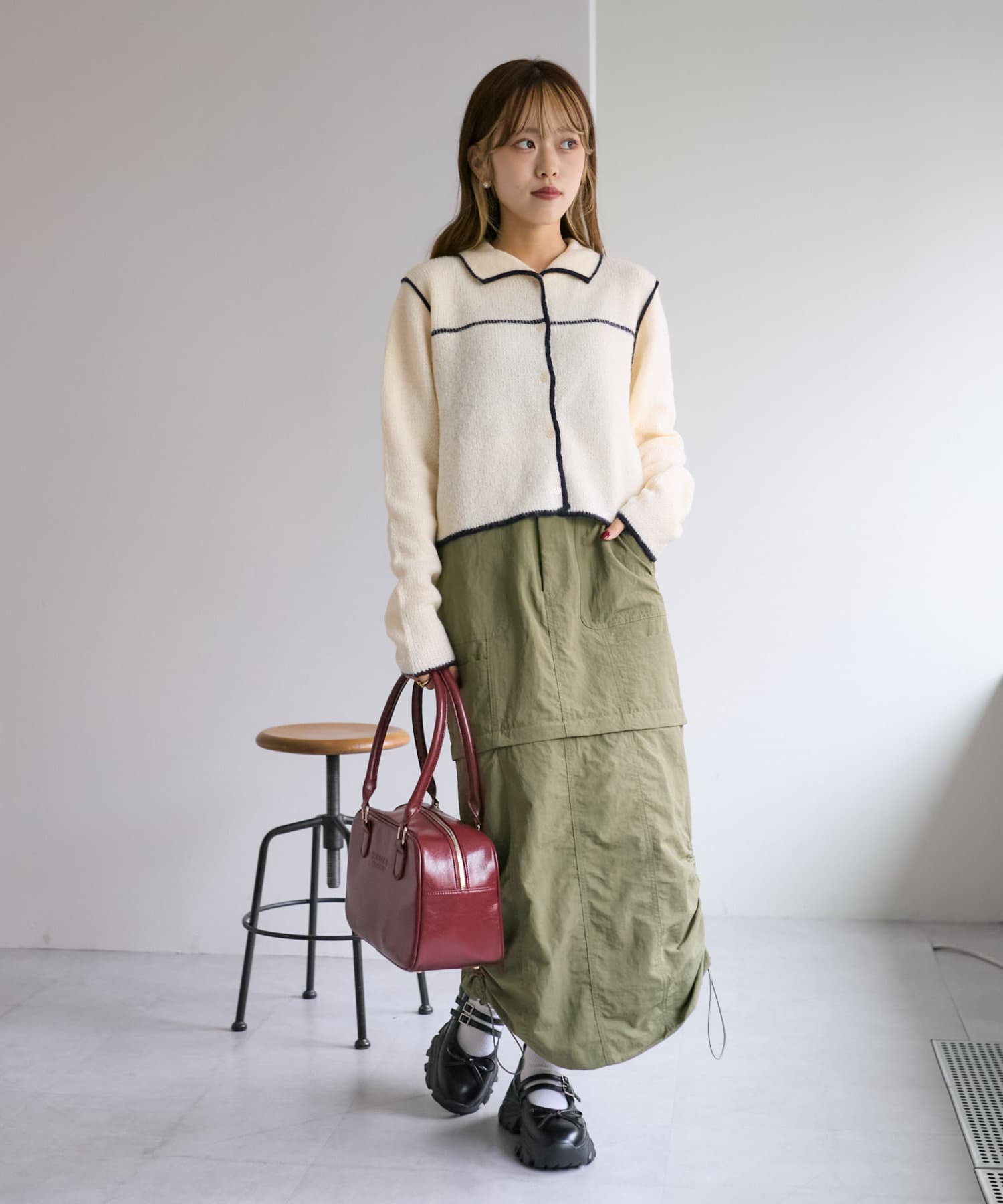 ・本体と別カラーのパイピングを使用し、コーデのアクセントになる配色デザインに仕上げました