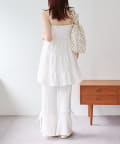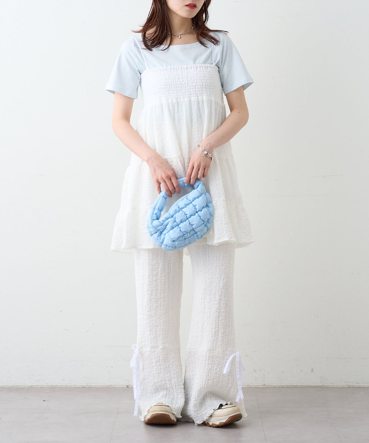 ・パンツの裾にはリボンが付いていて、フレアの切り替えもあるので脚長効果も♪