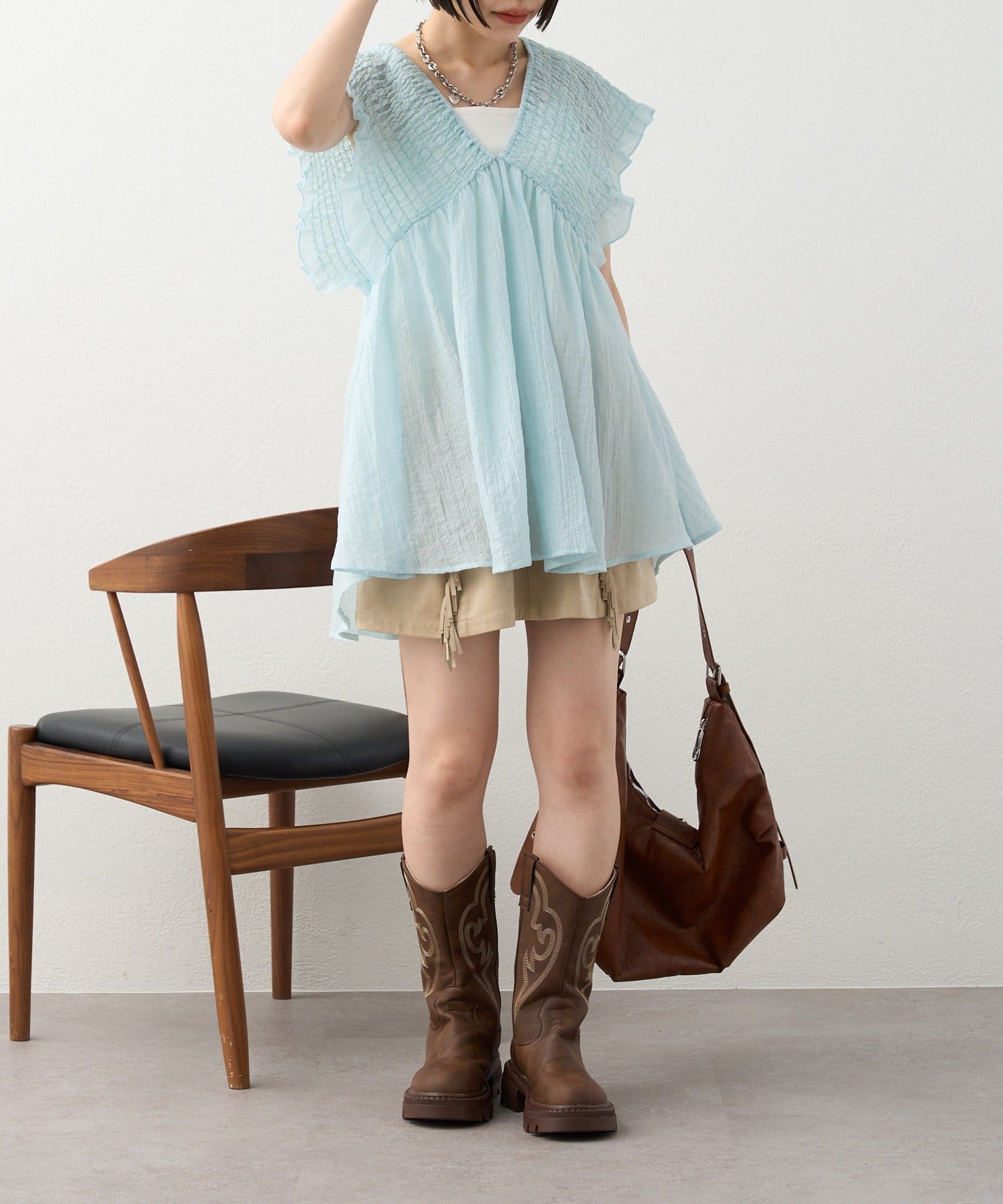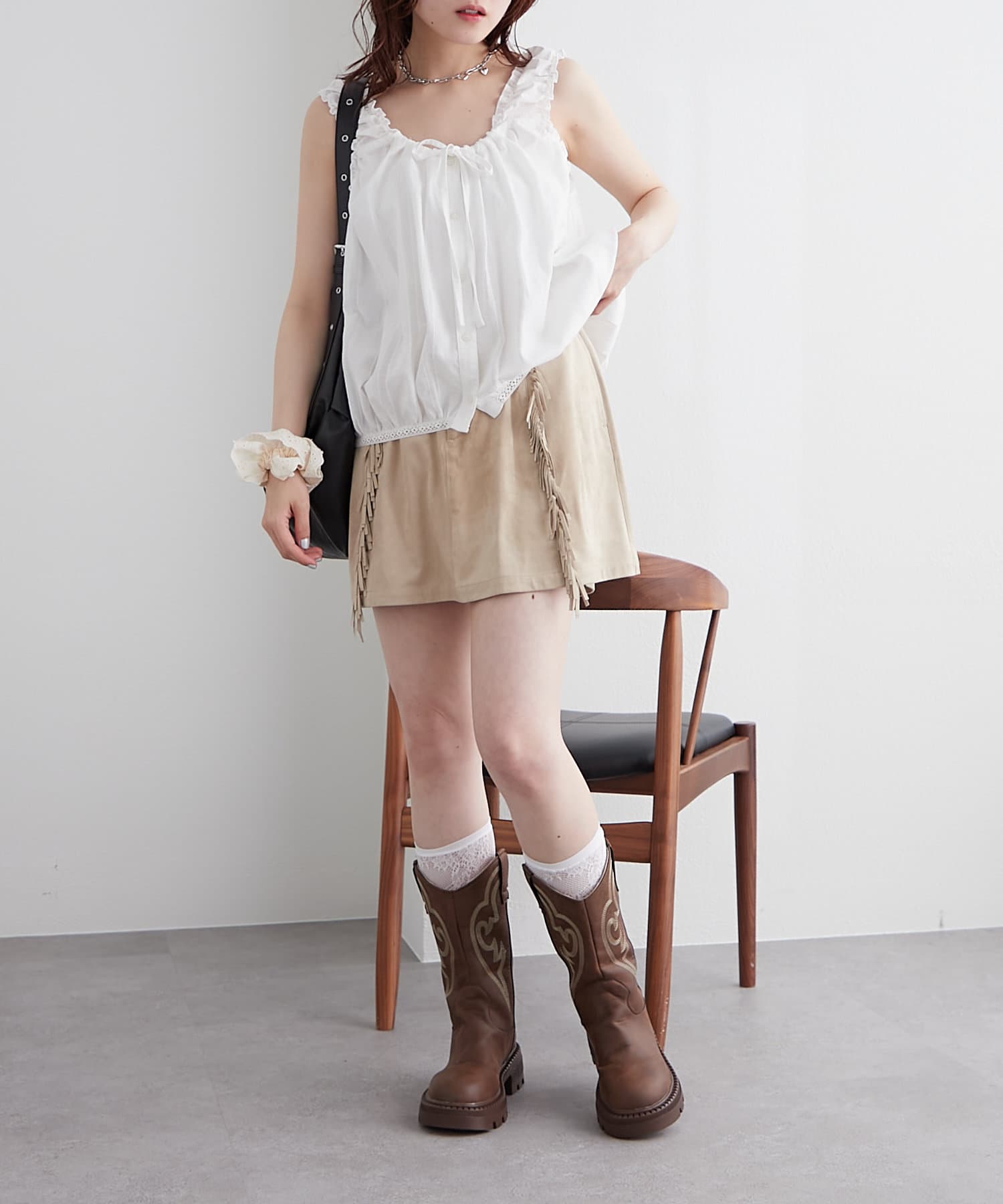 ・チェックシャツやブーツと合わせてトレンドのウエスタンスタイルに!