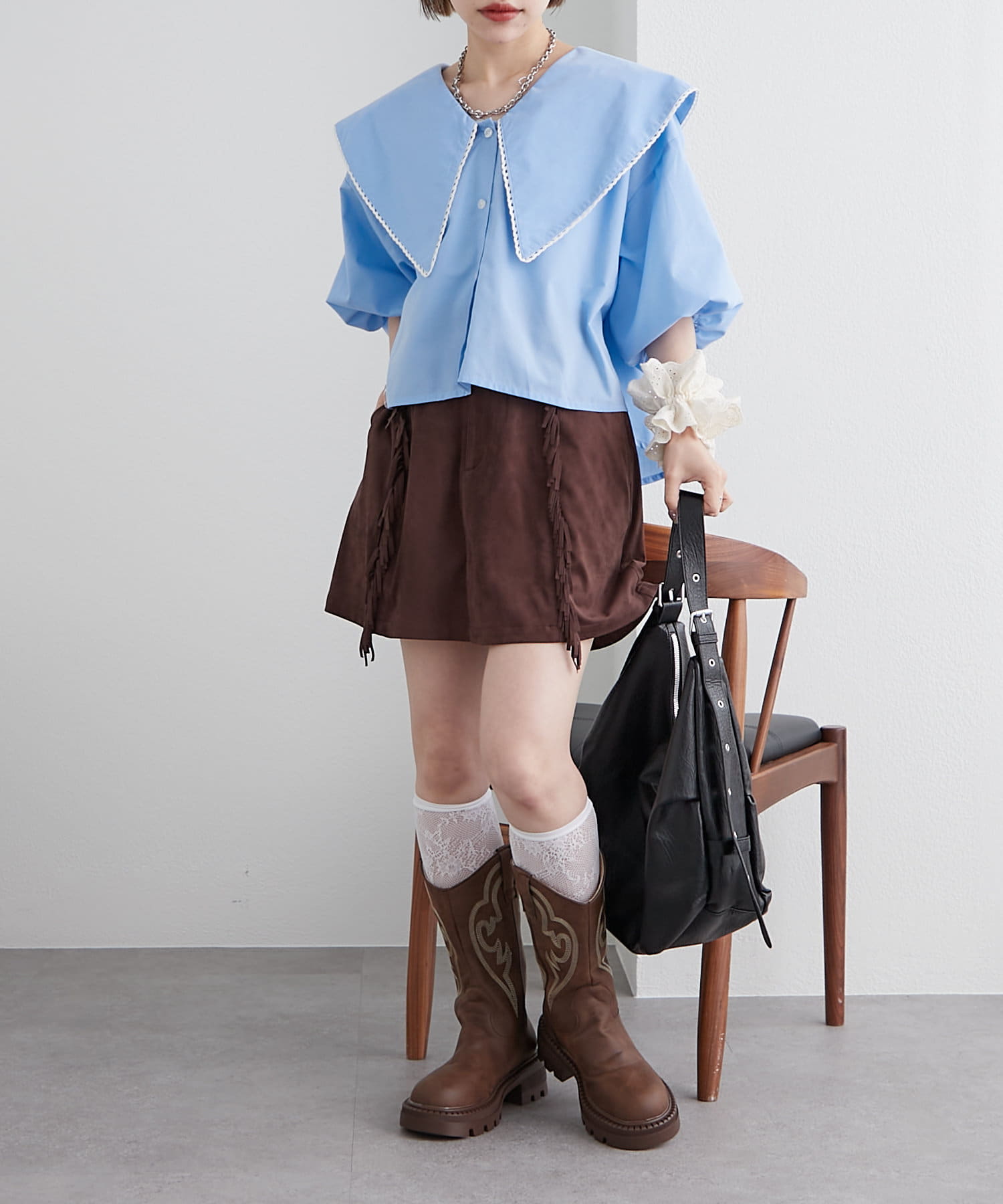 ・ガーリーなブラウスとの相性もバッチリです♪