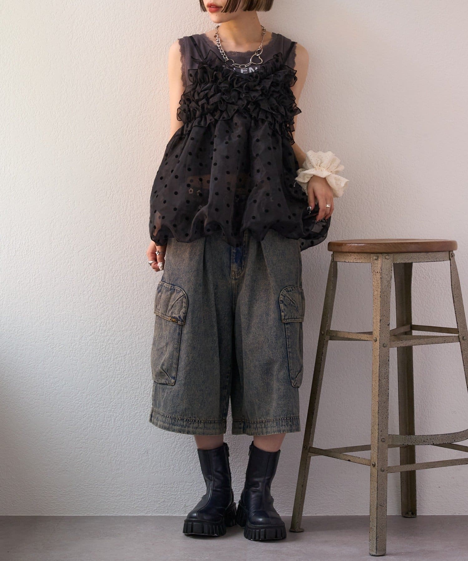 ・バルーンキャミなどのレディライクなアイテムと合わせたミックステイストなコーデもオススメです!