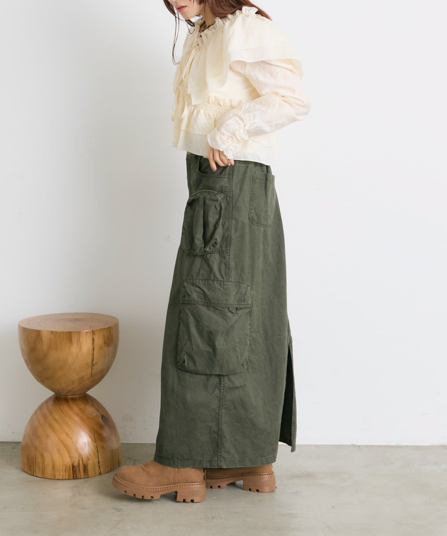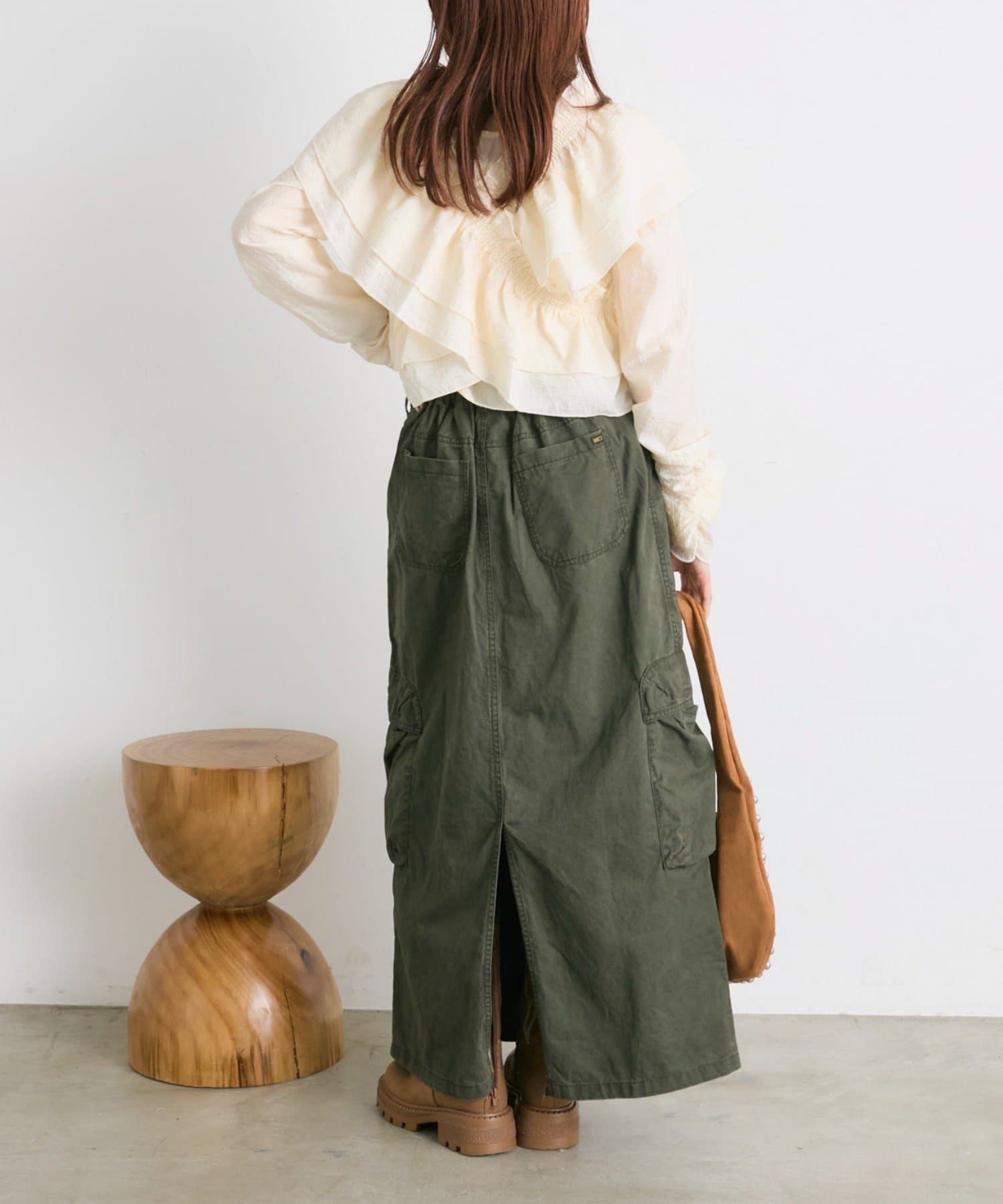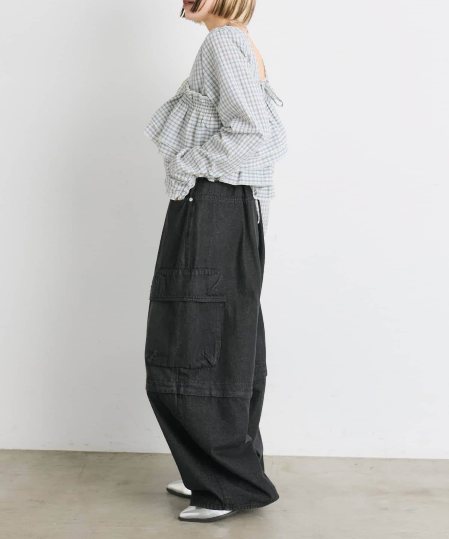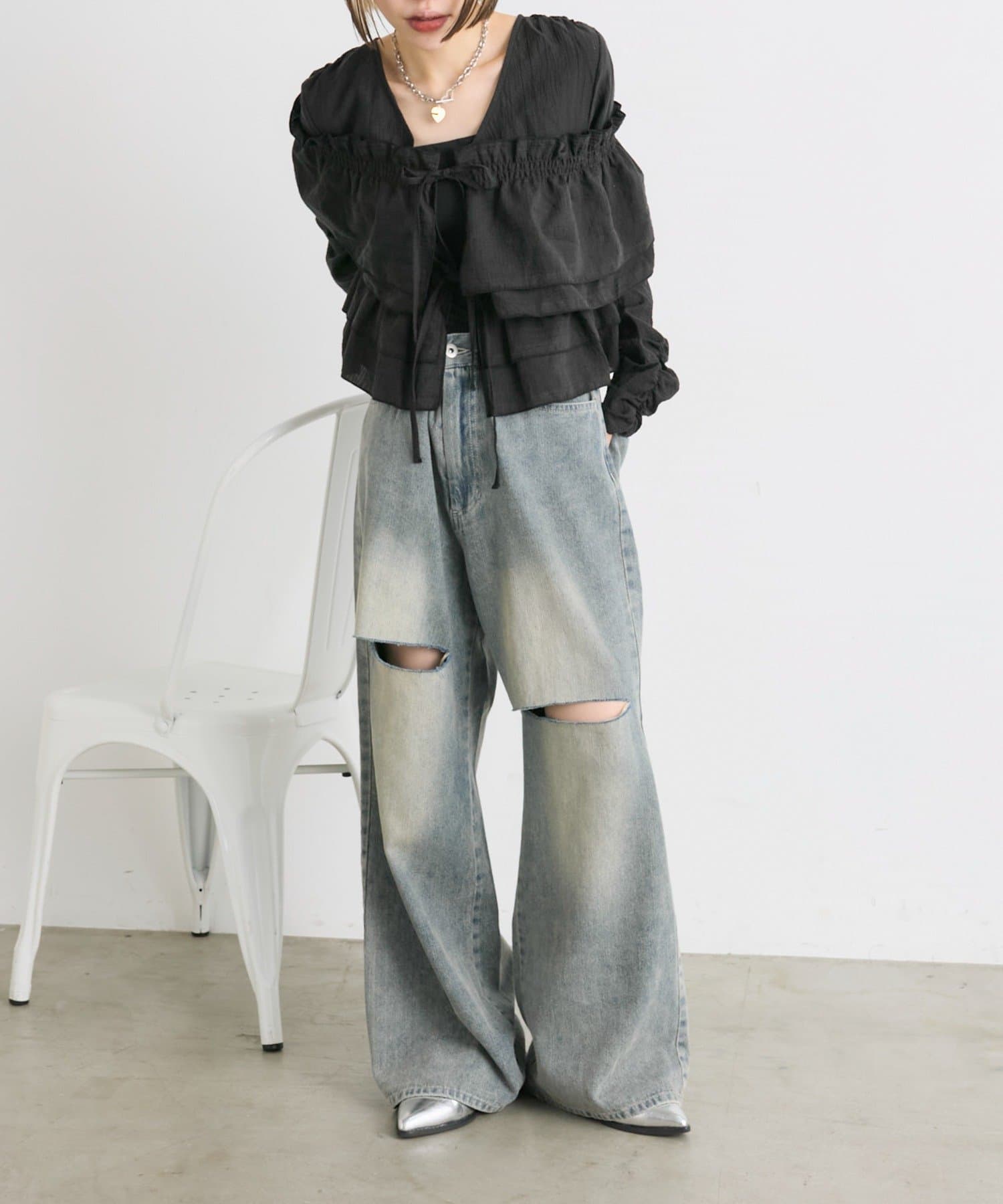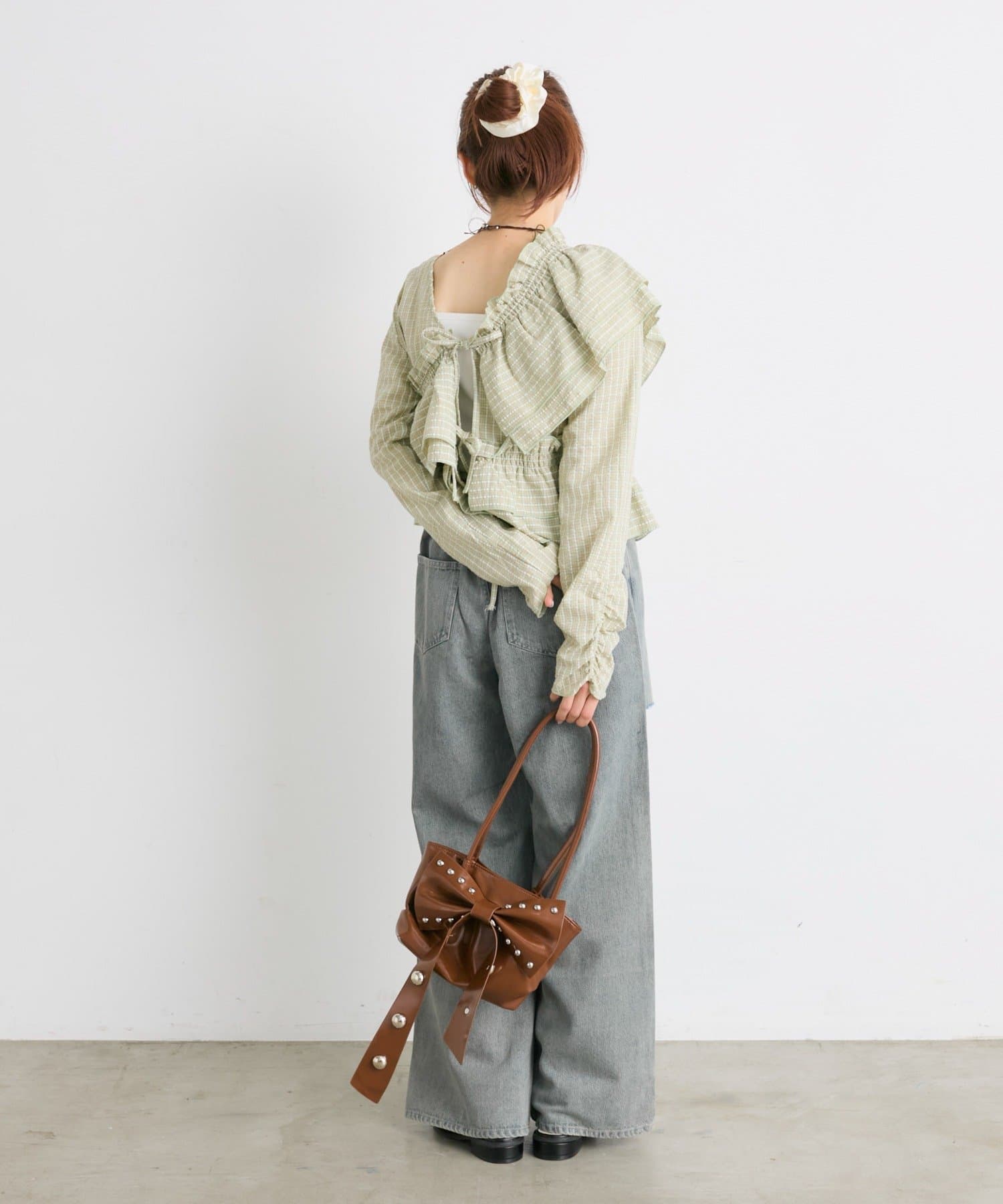 ・片方のフリルを腕の下に下したワンショル風の着こなしが垢抜けコーデに♪