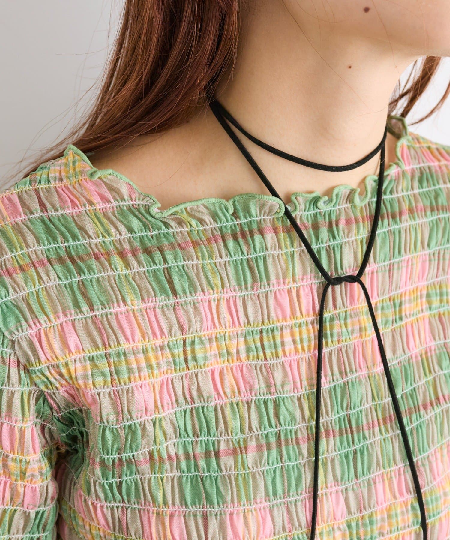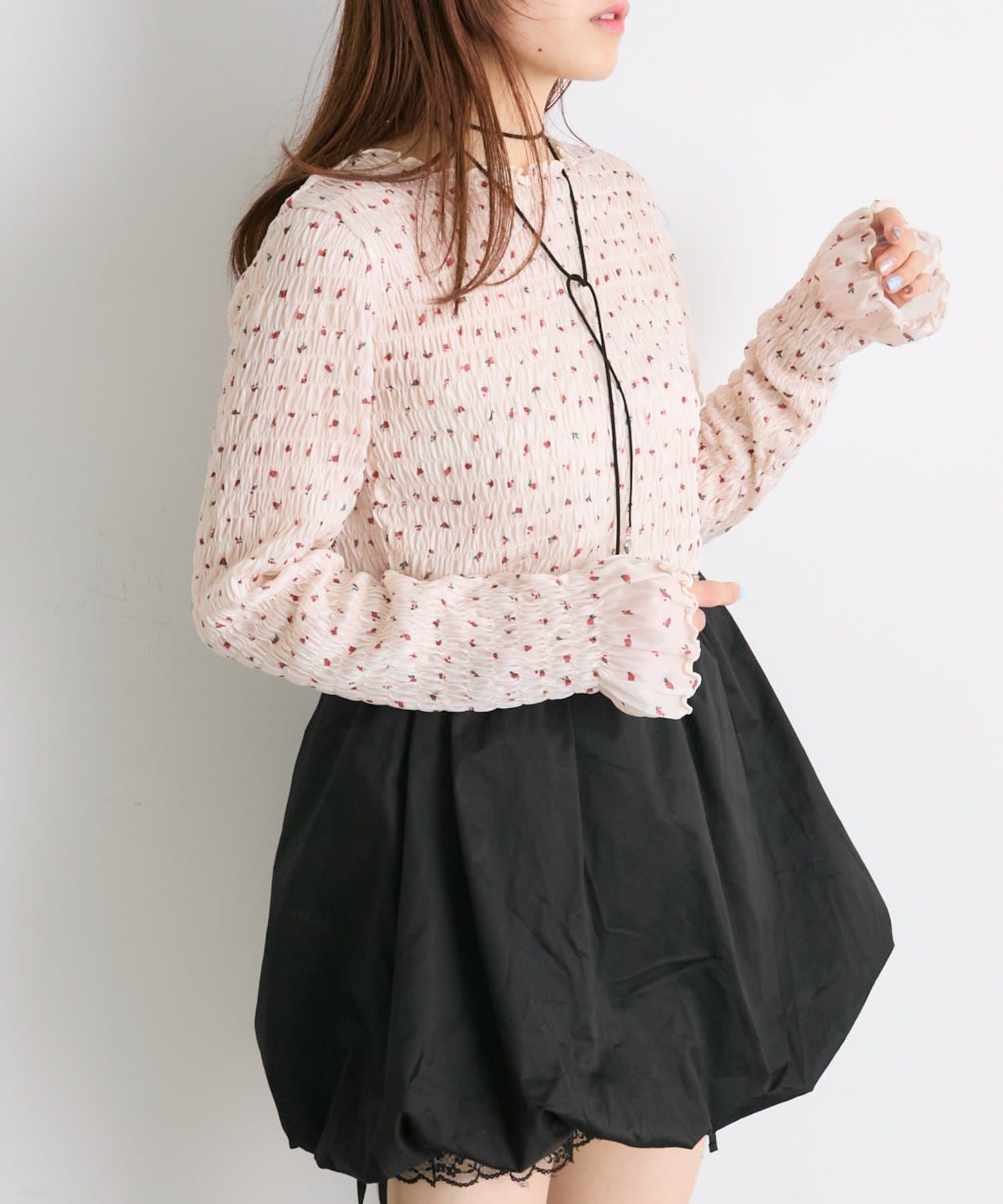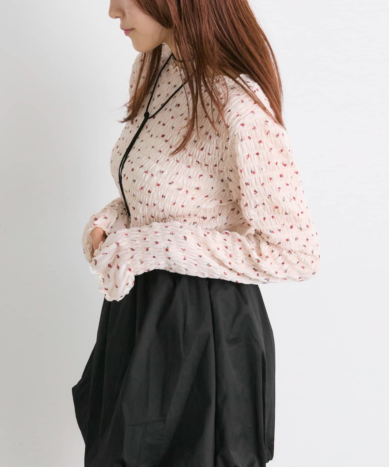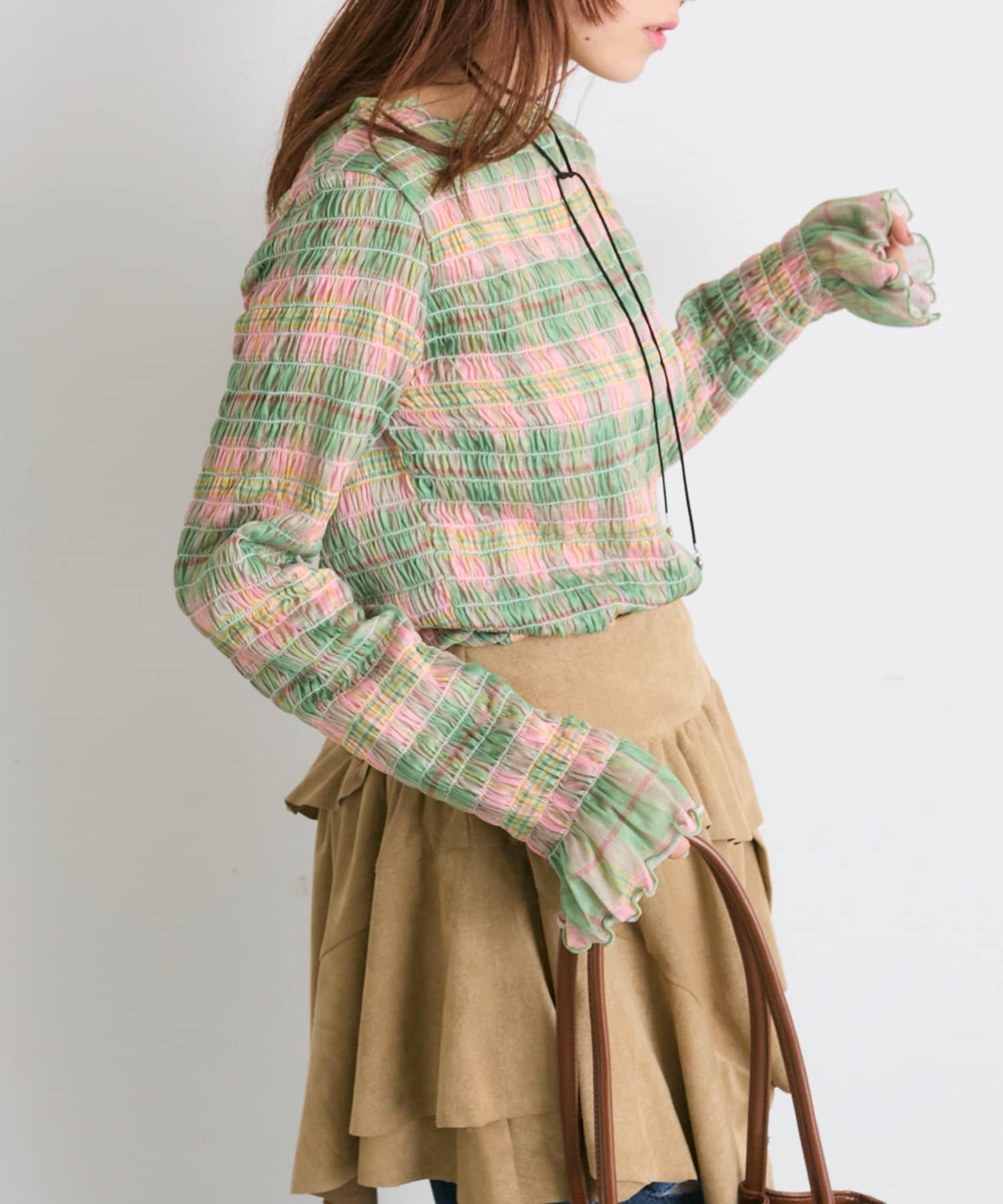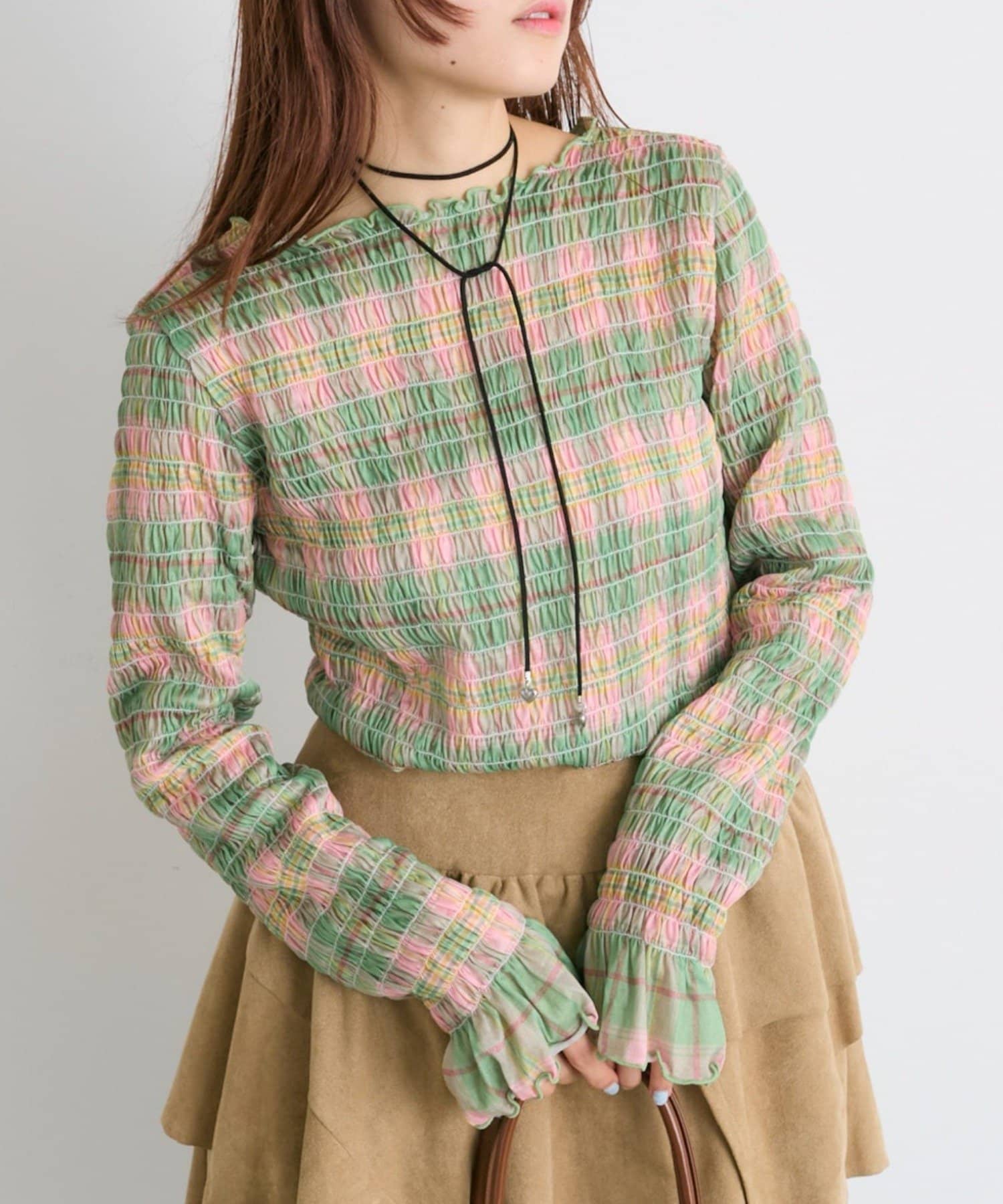 ・一枚でもインナーでも目を引くシャーリングのデザイン