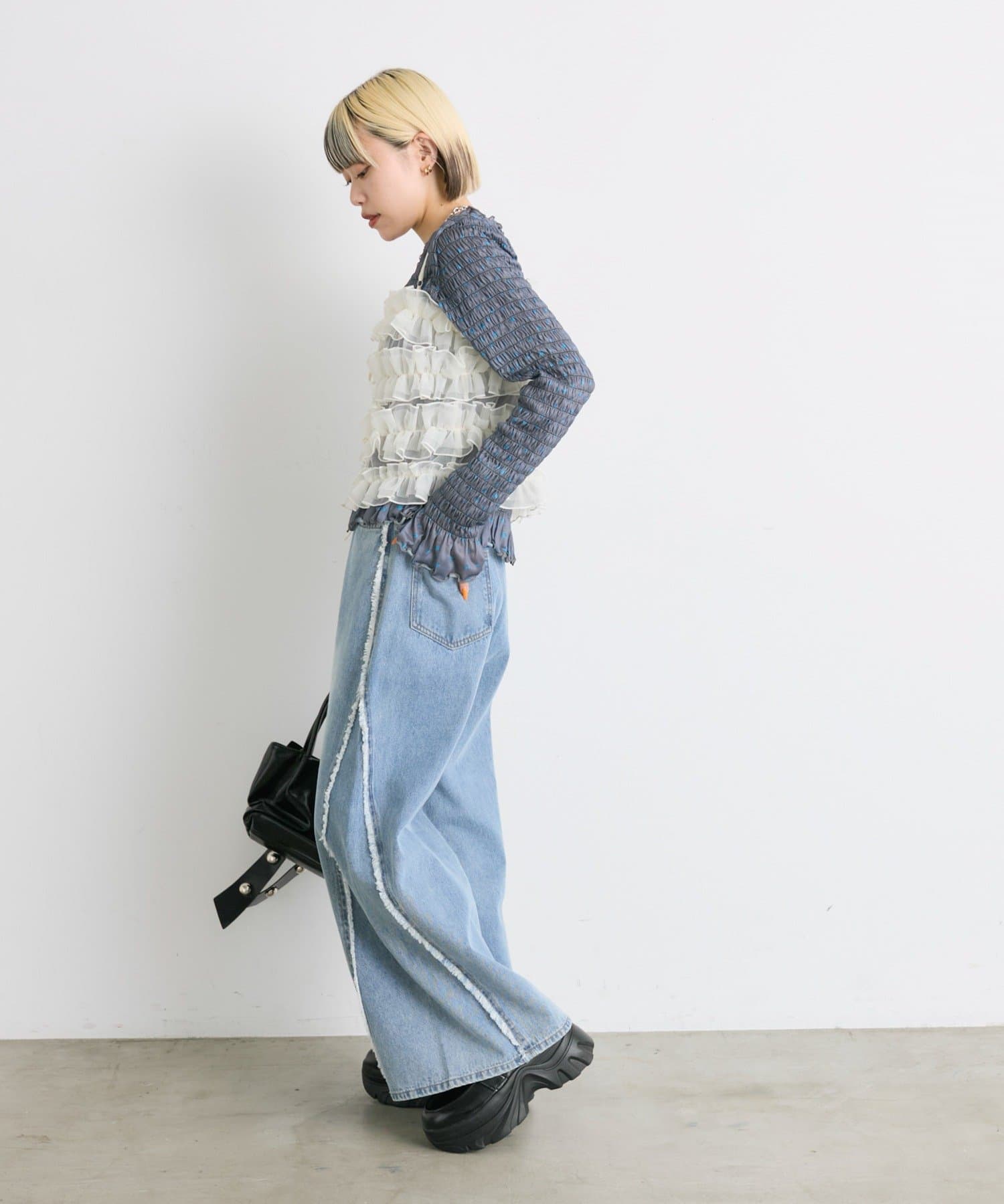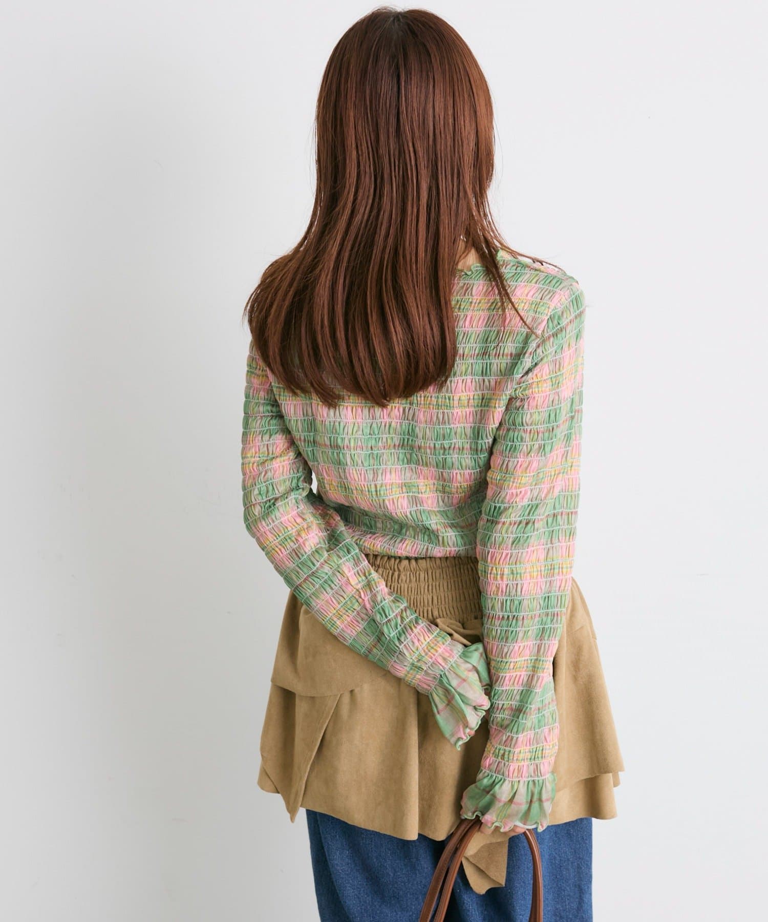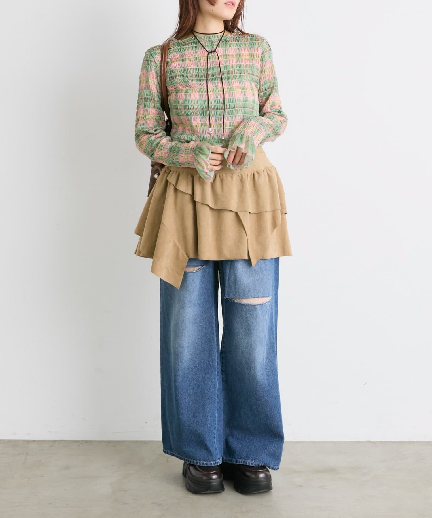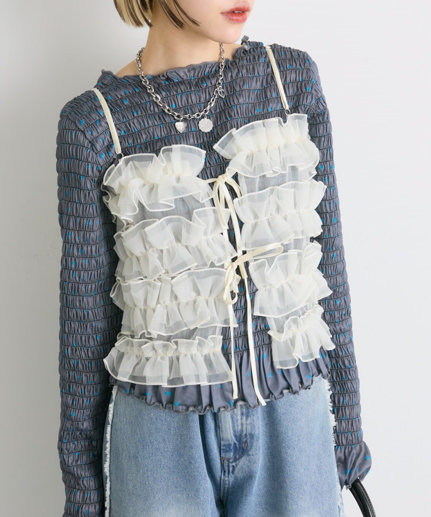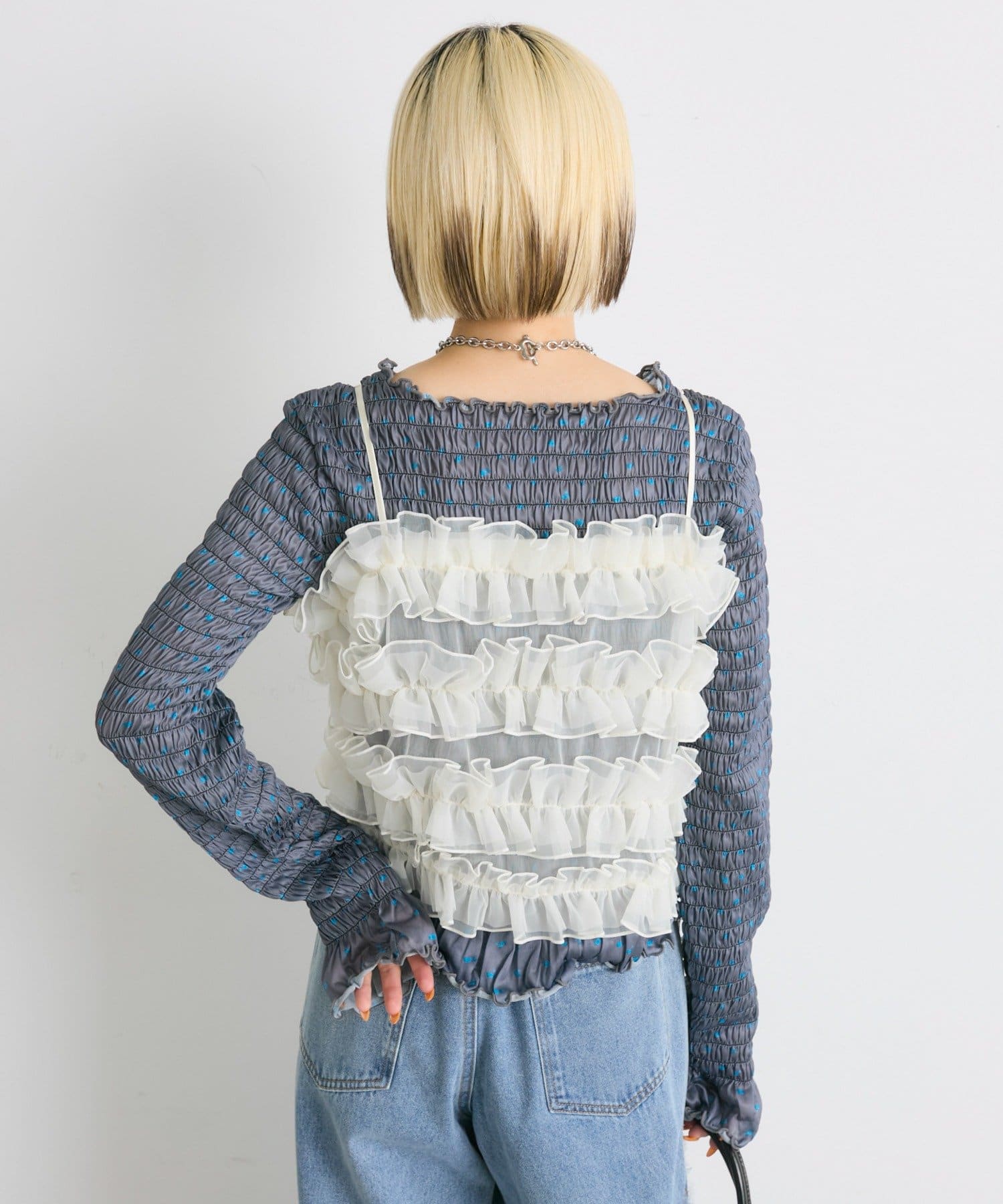 ・一枚でもインナーでも目を引くシャーリングのデザイン