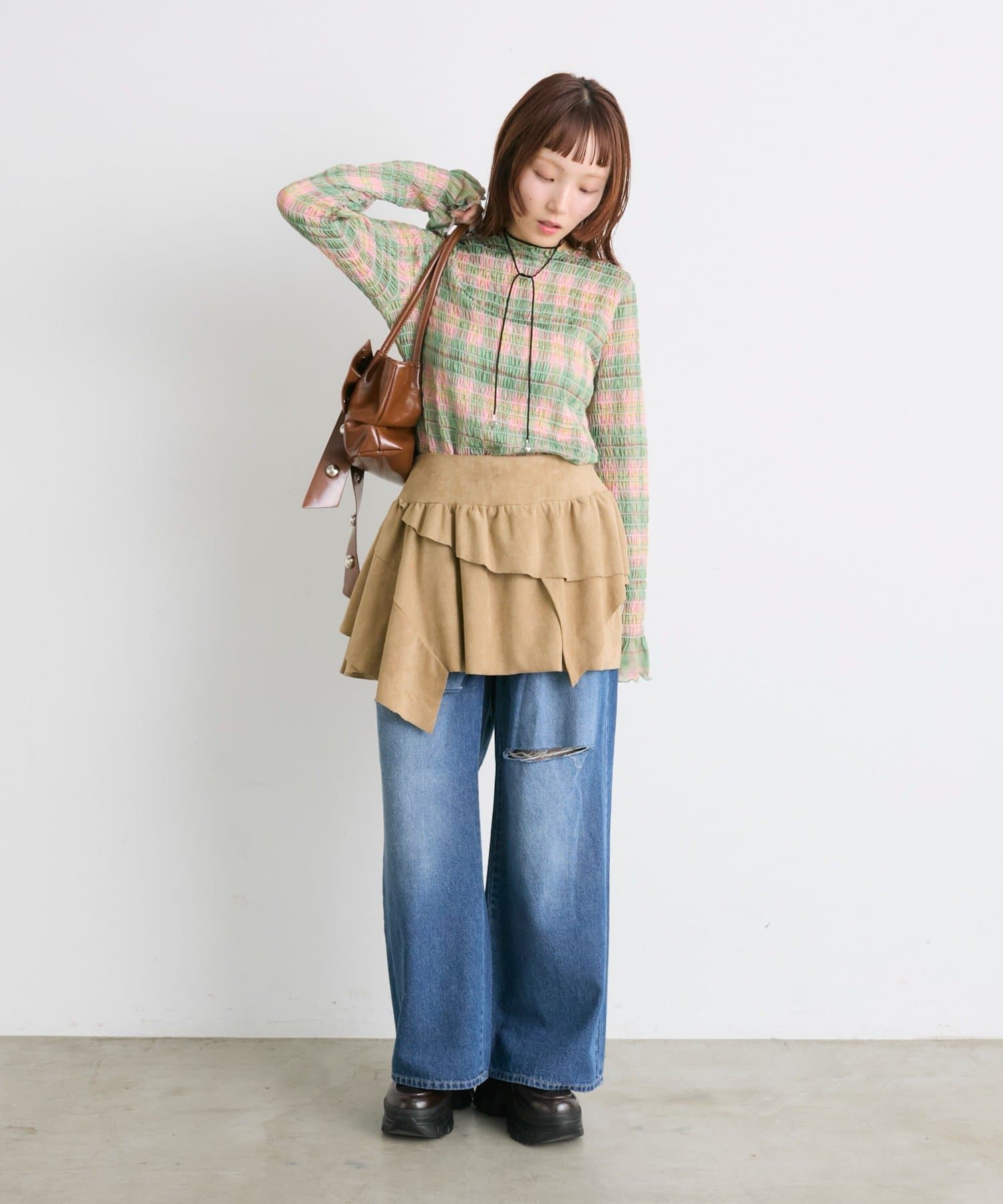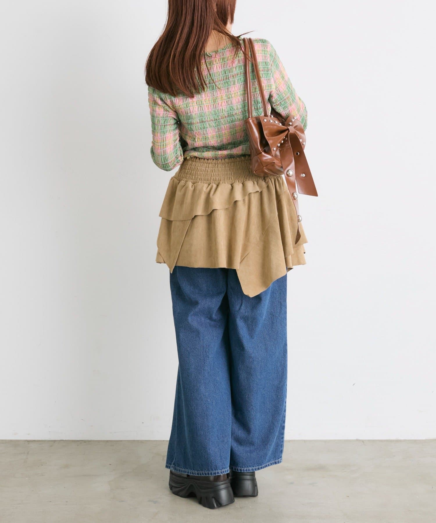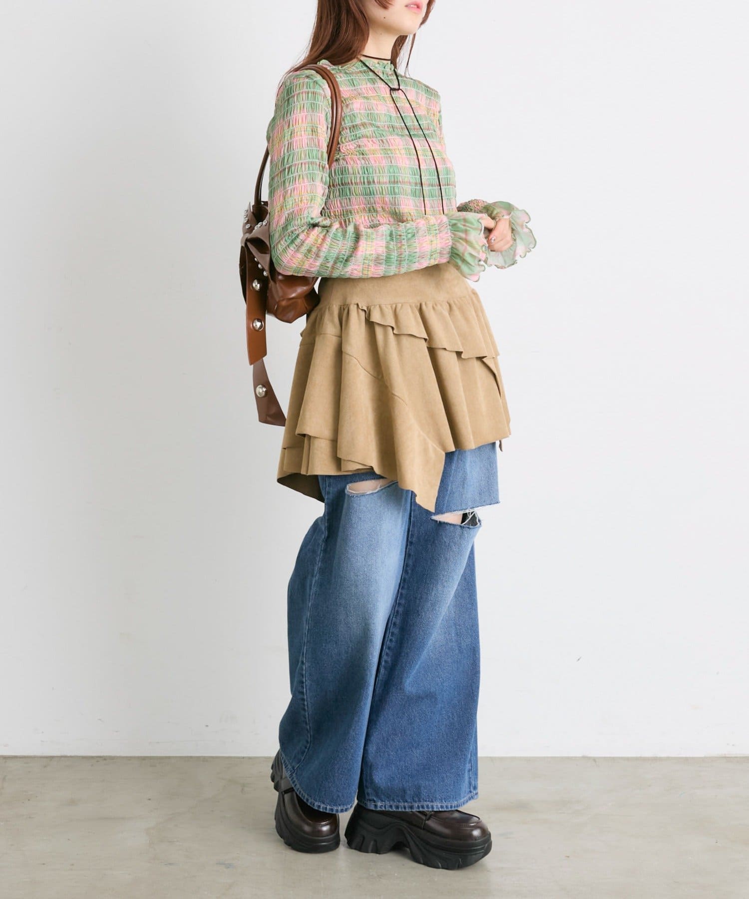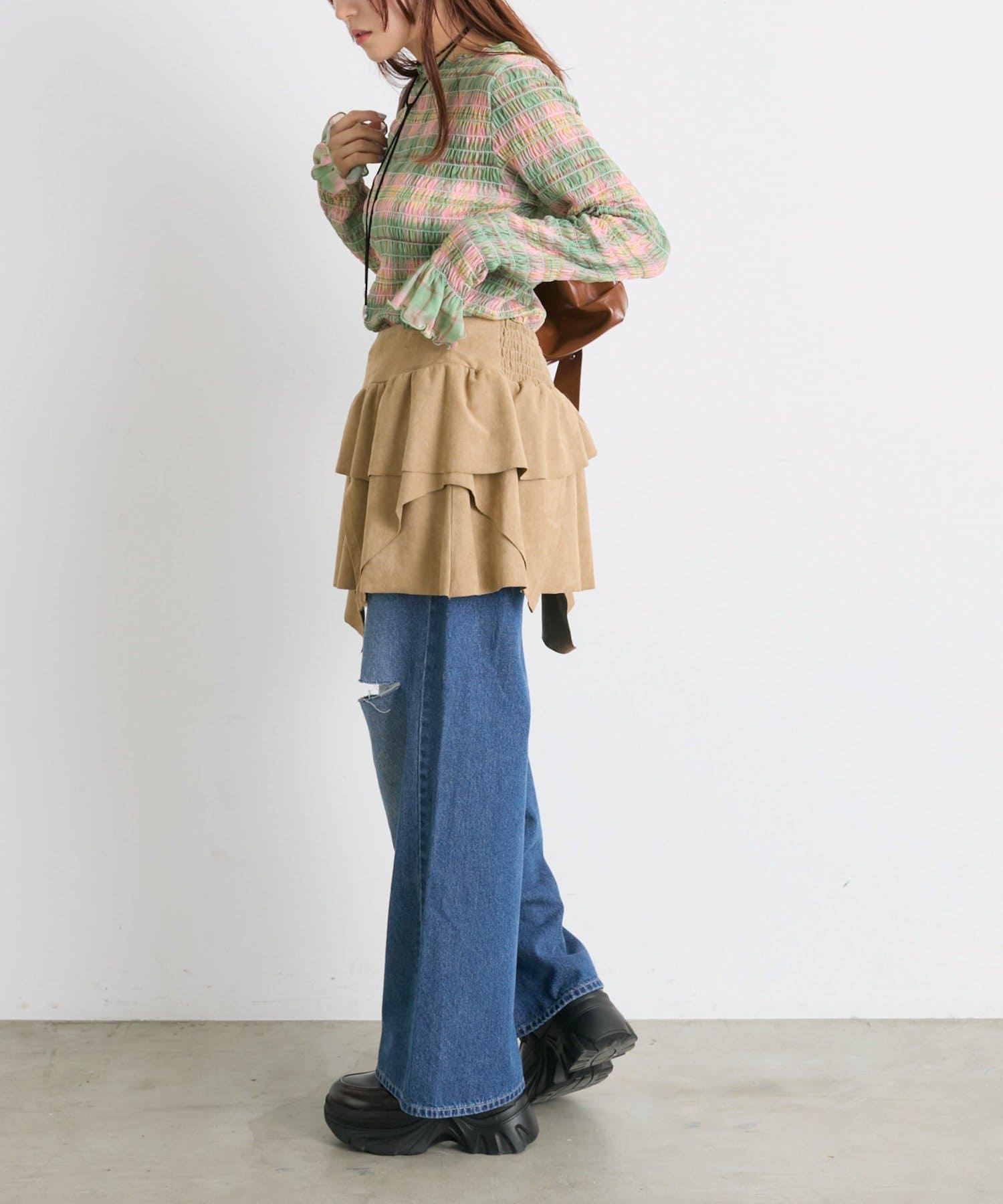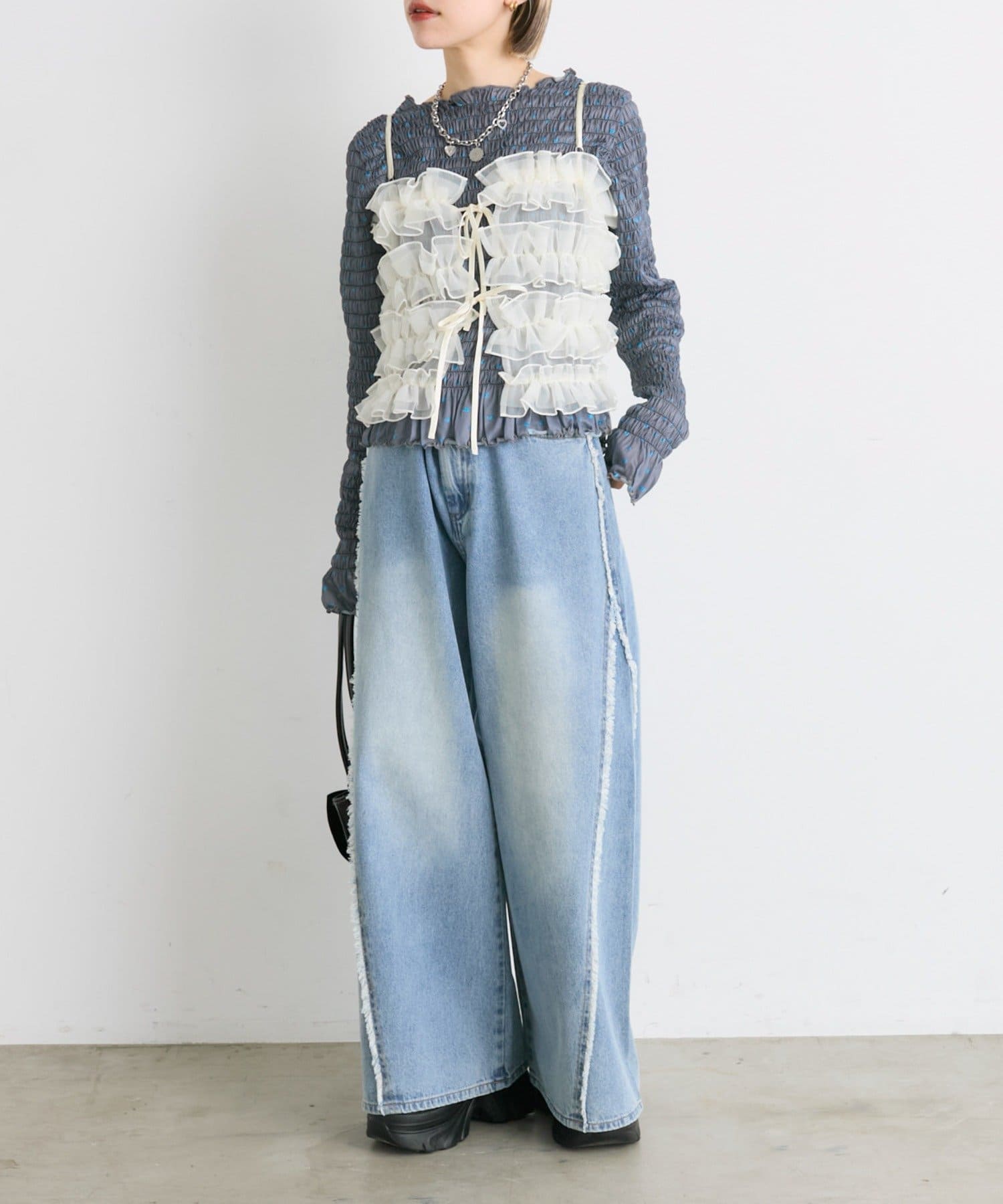 ・一枚でもインナーでも目を引くシャーリングのデザイン