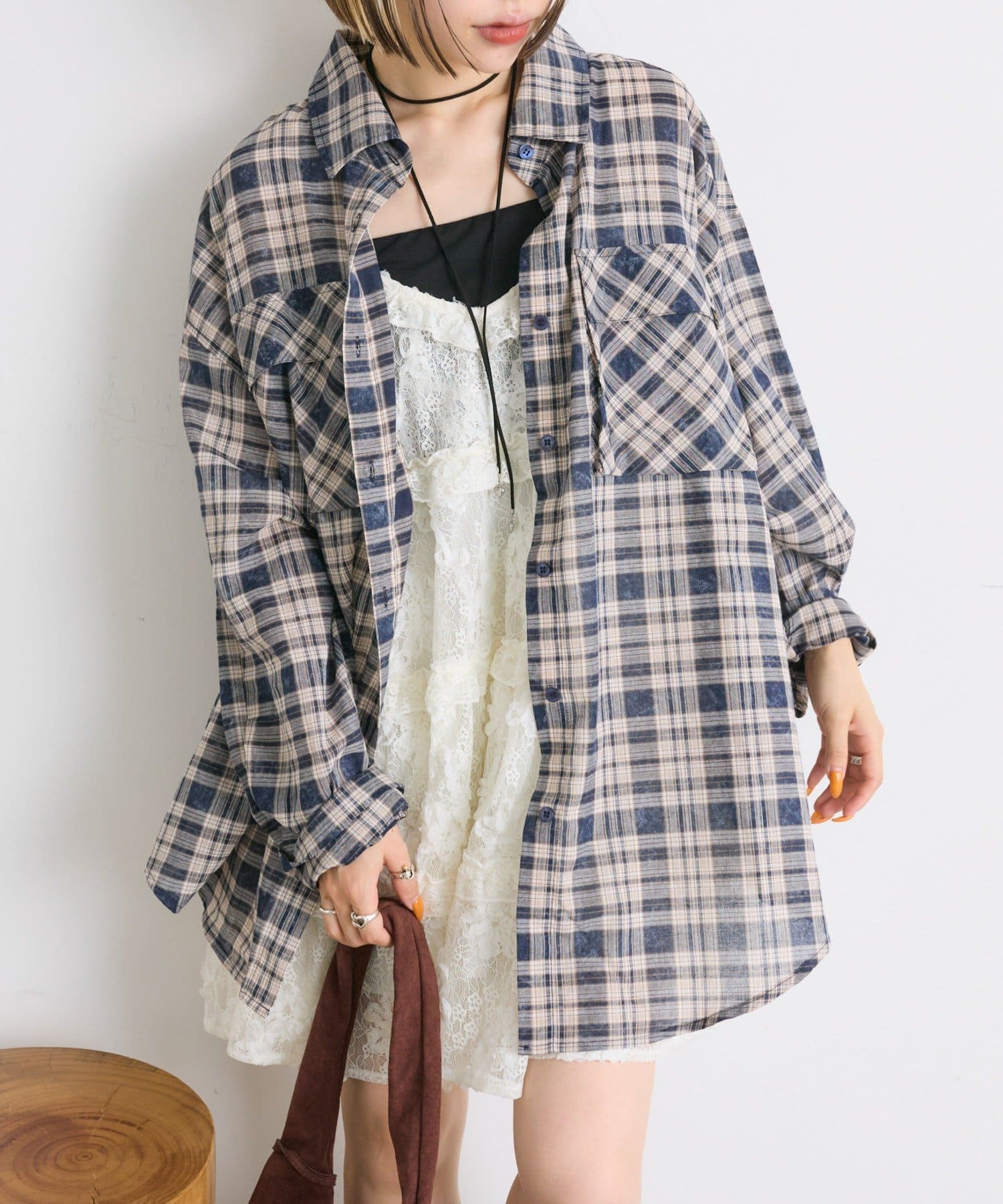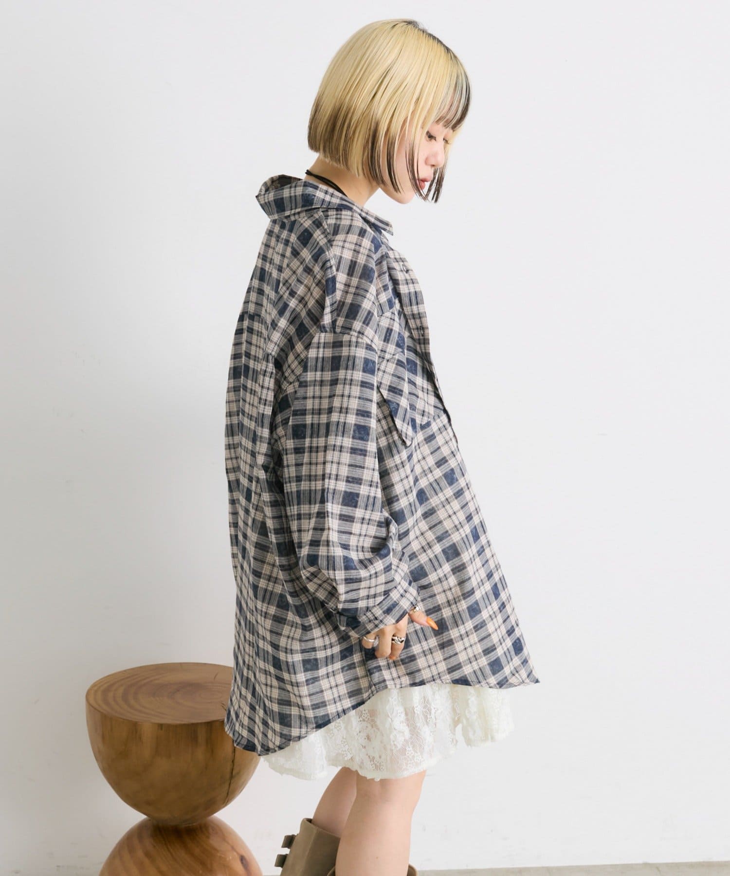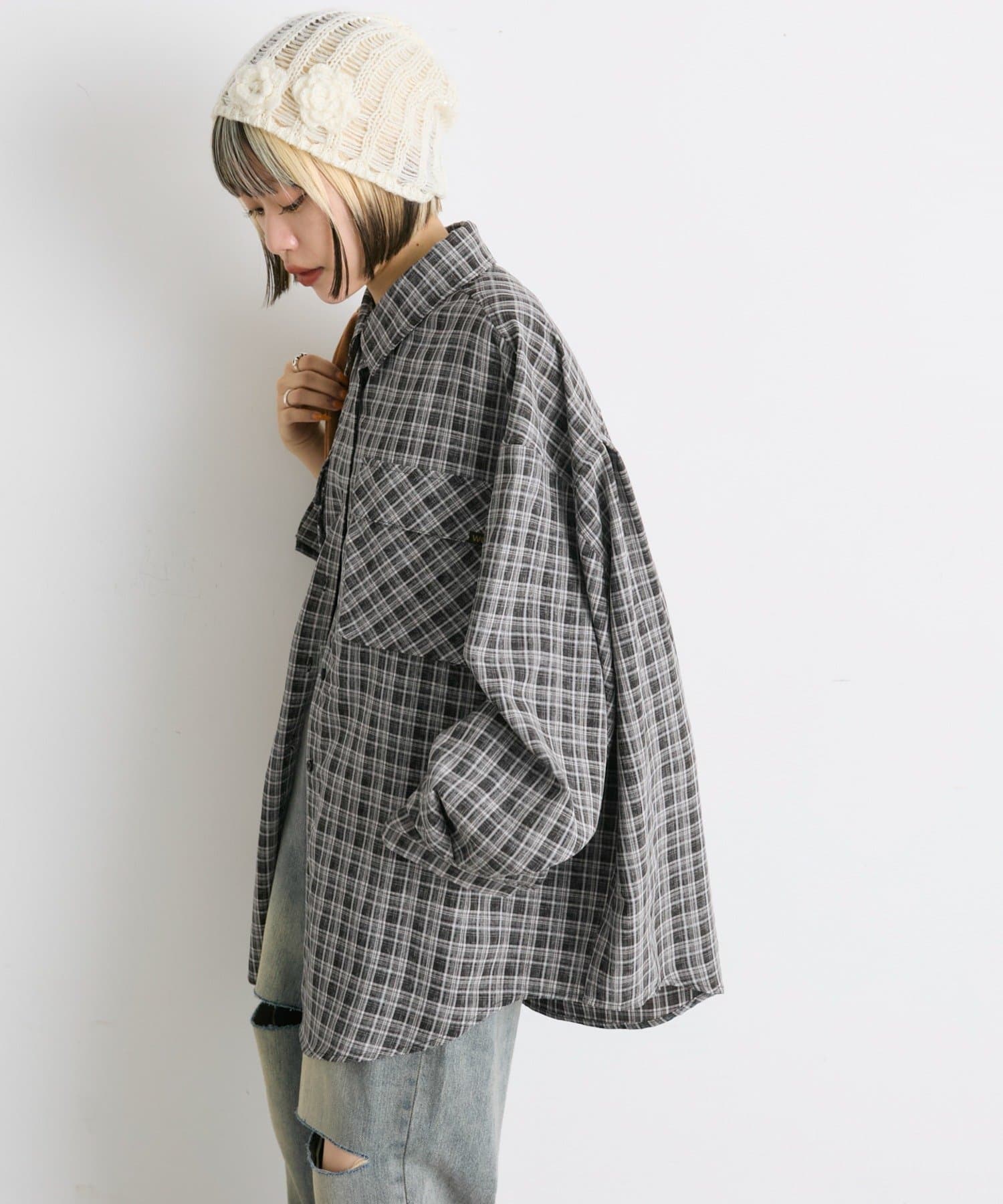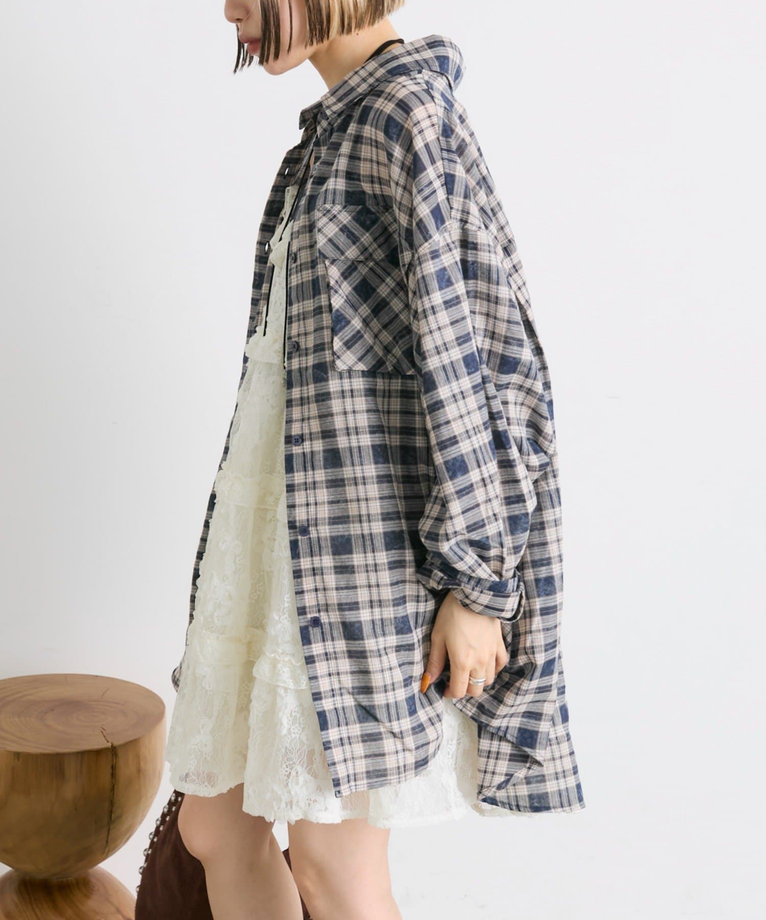 ・ビッグシルエットがかわいいチェックシャツ