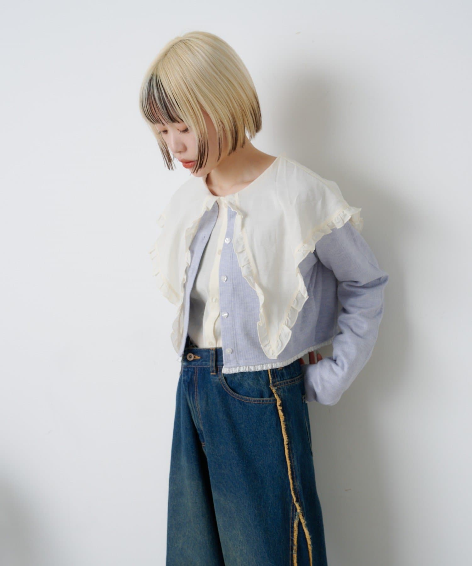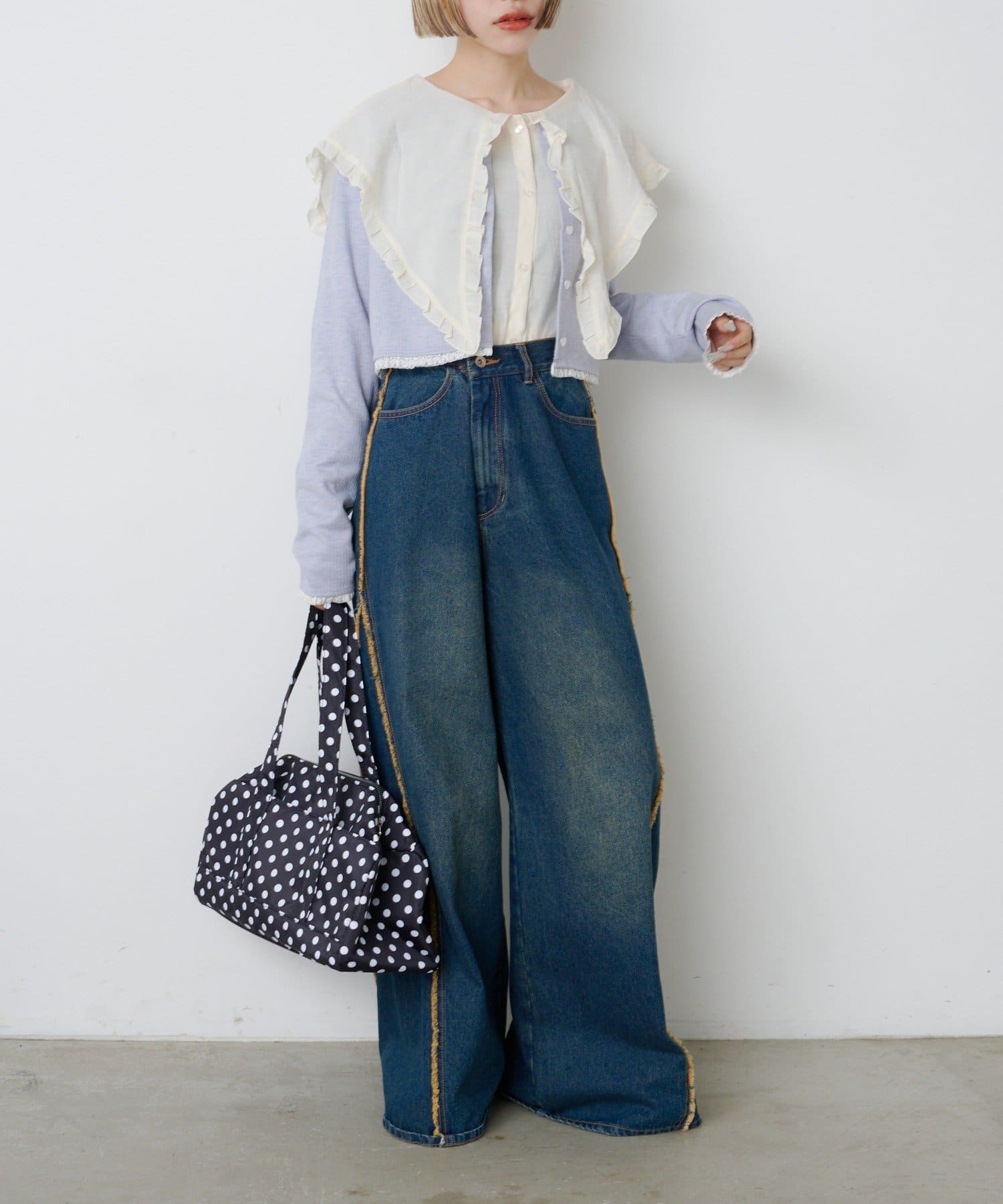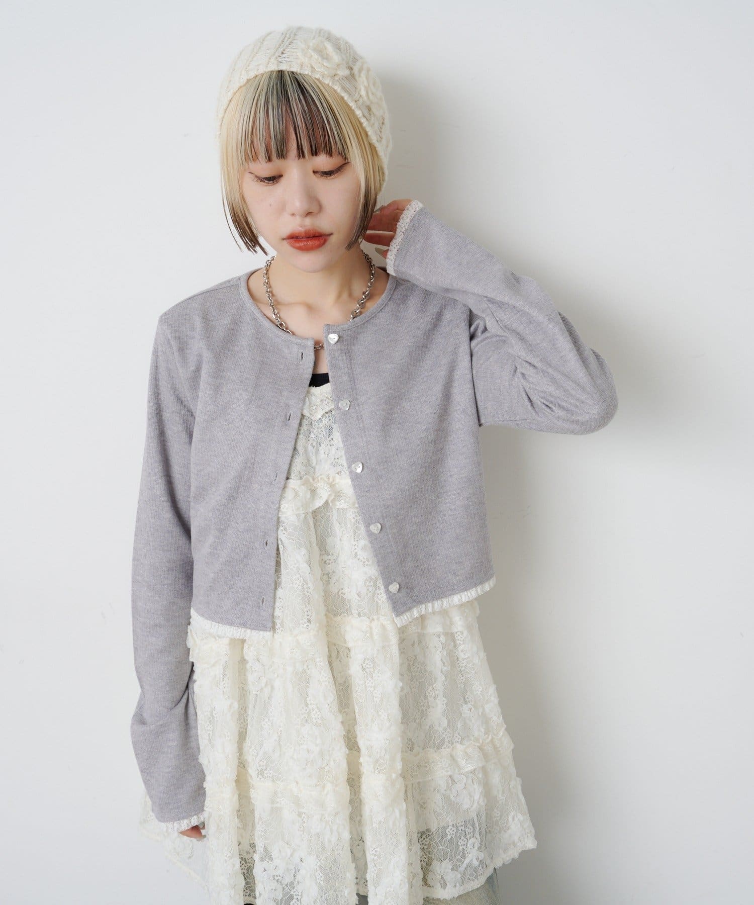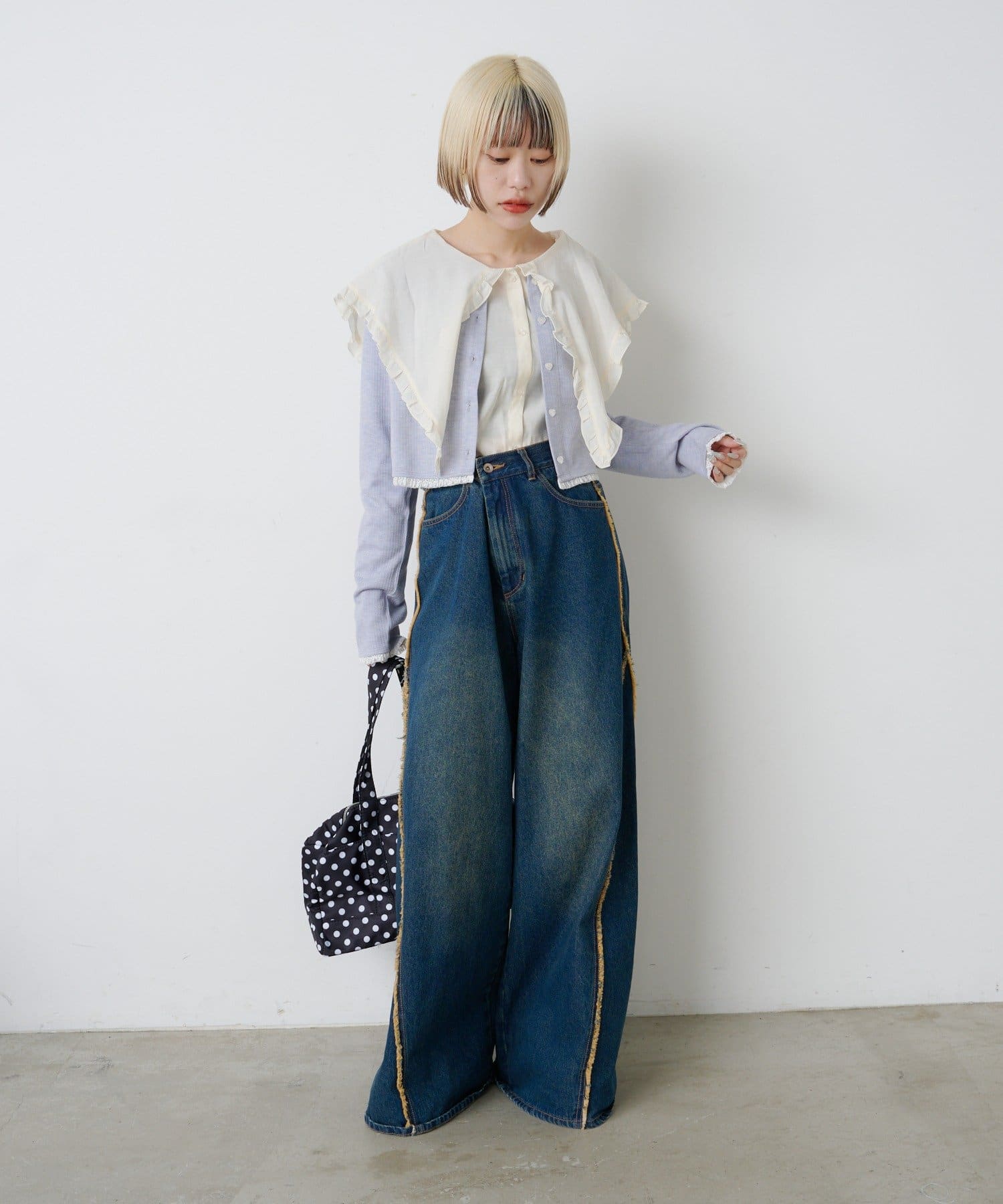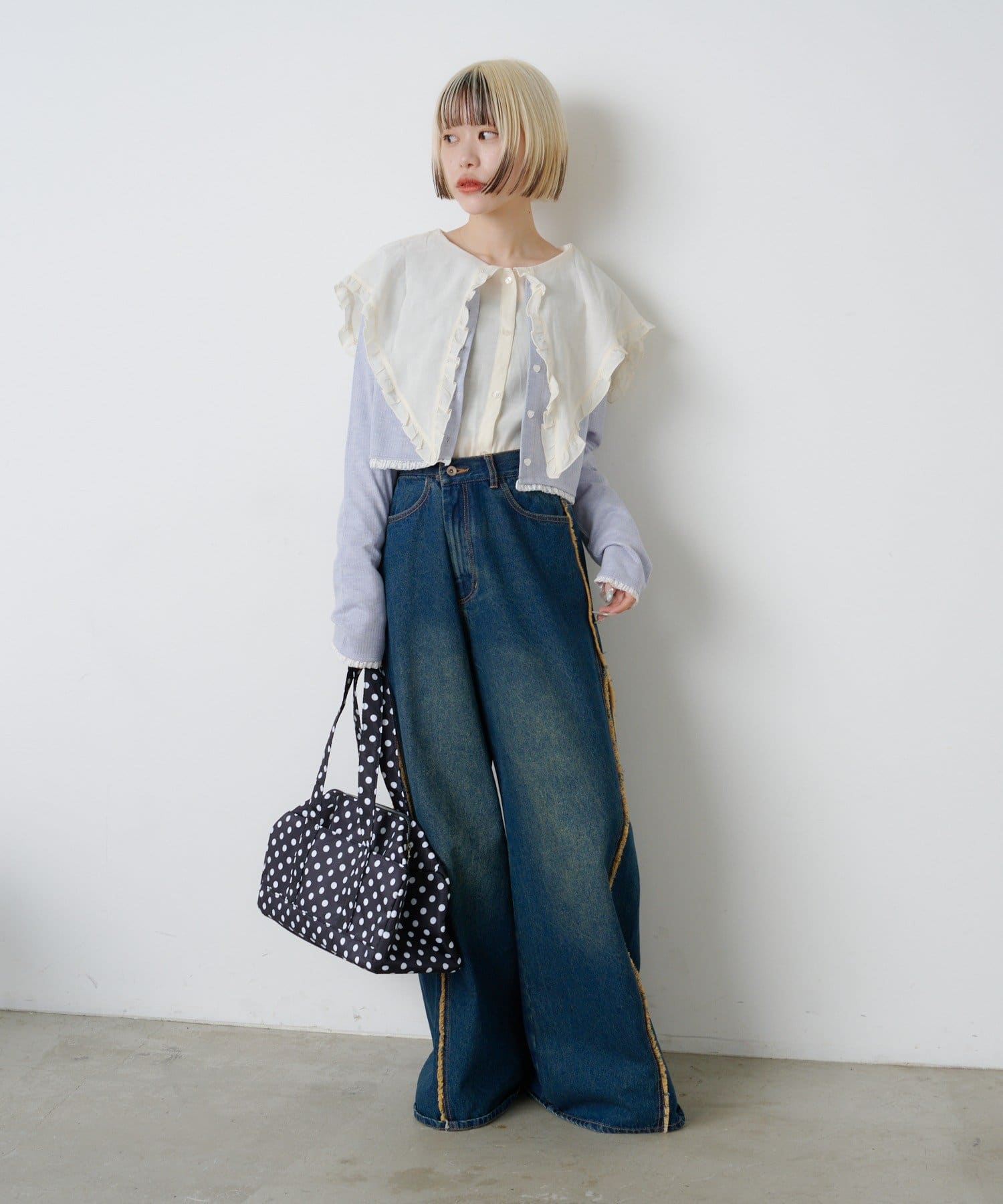 ・ラウンドネックなので襟のついたトップスと合わせるとよりかわいい♡