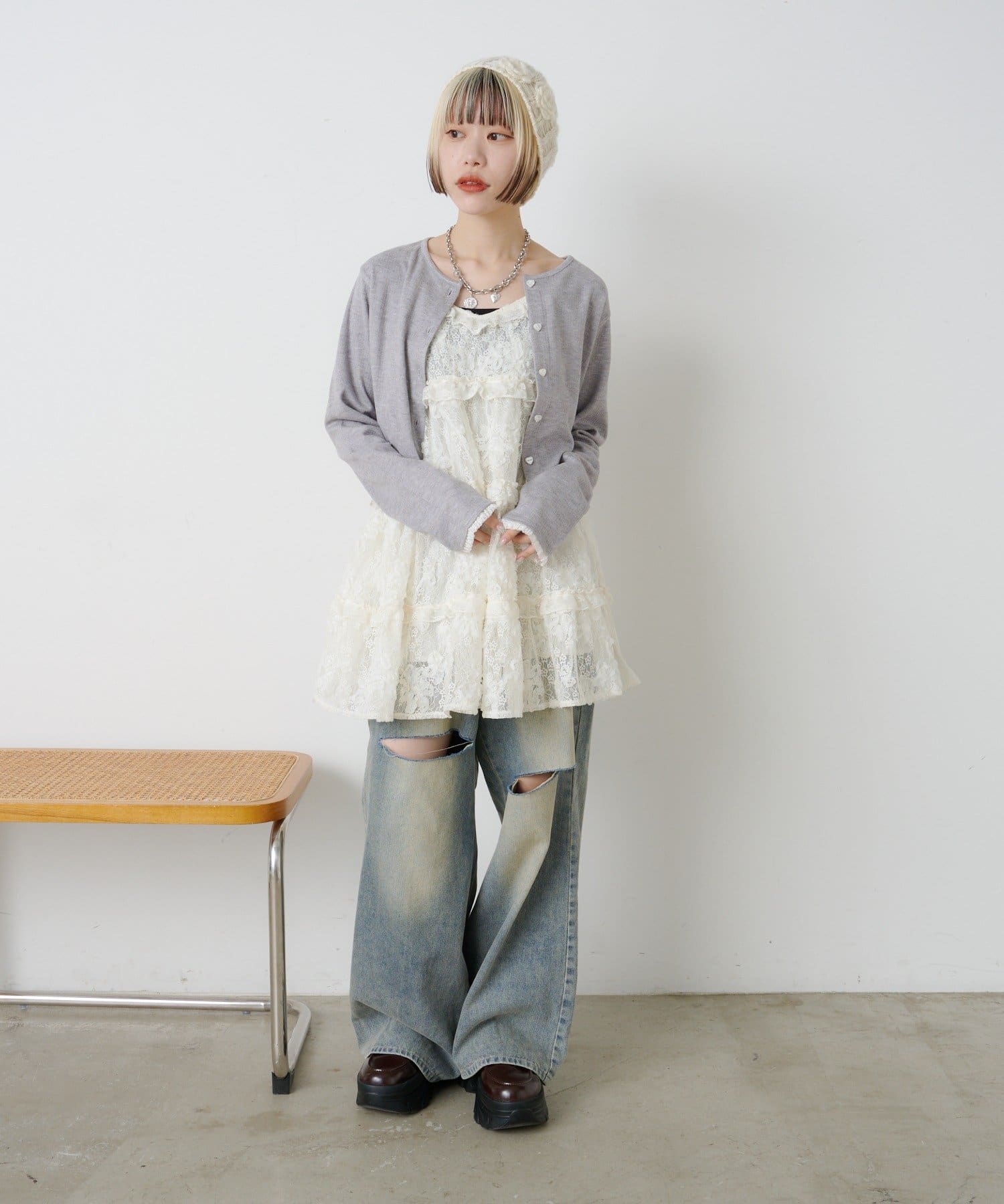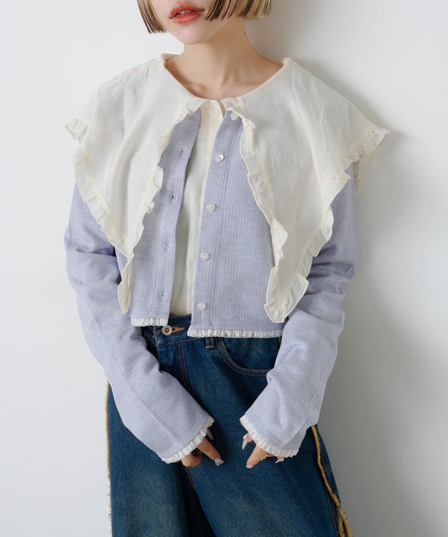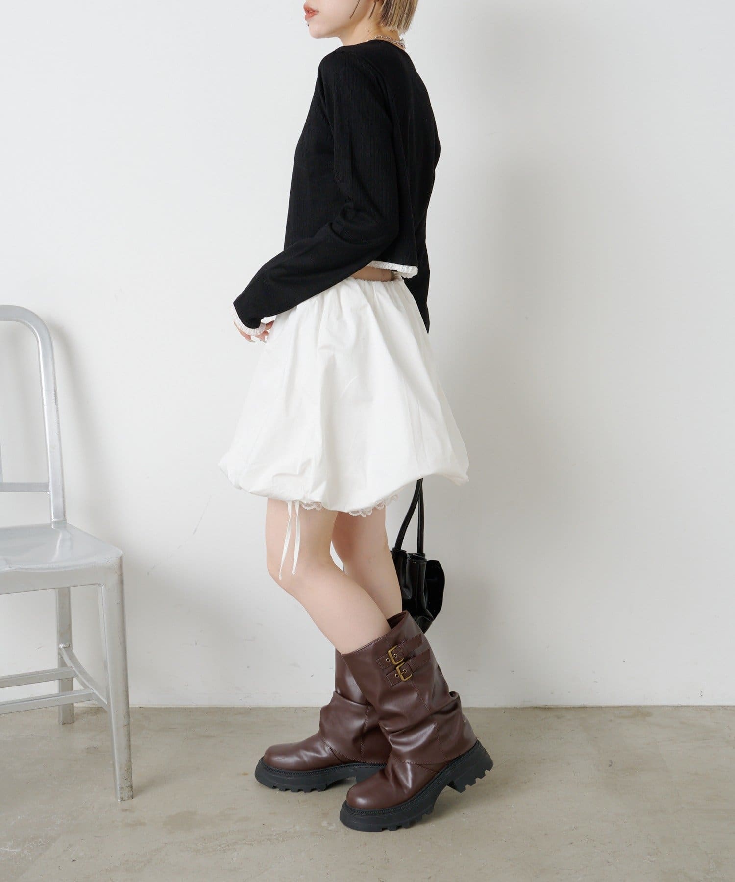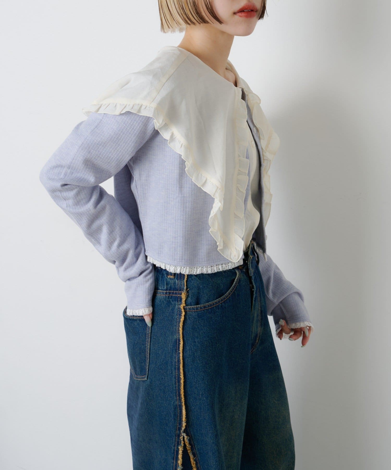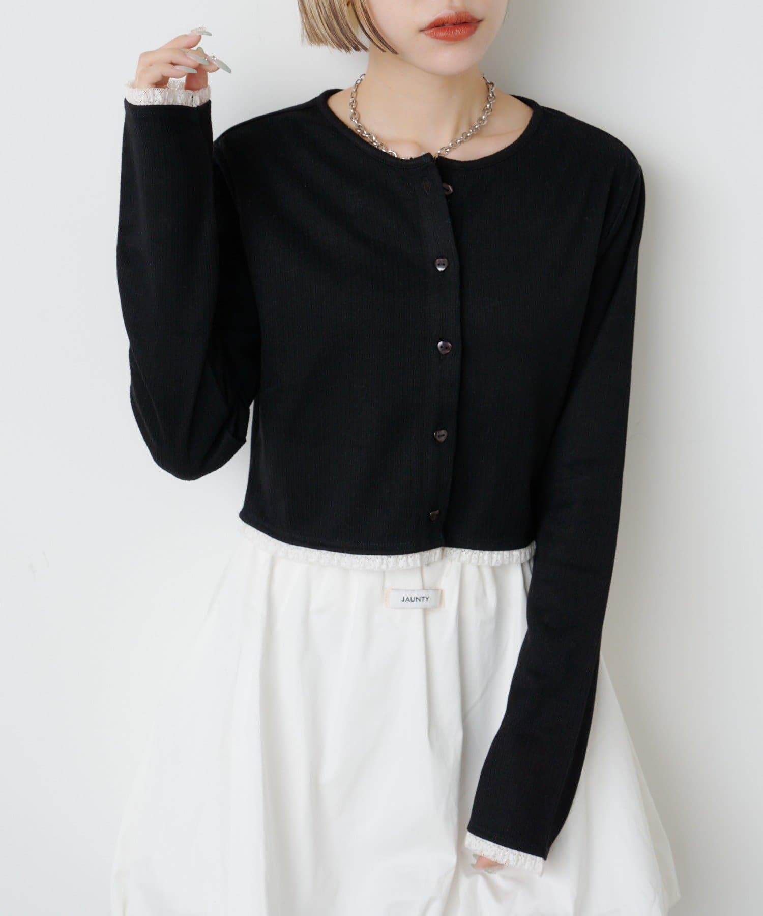 ・ラウンドネックなので襟のついたトップスと合わせるとよりかわいい♡