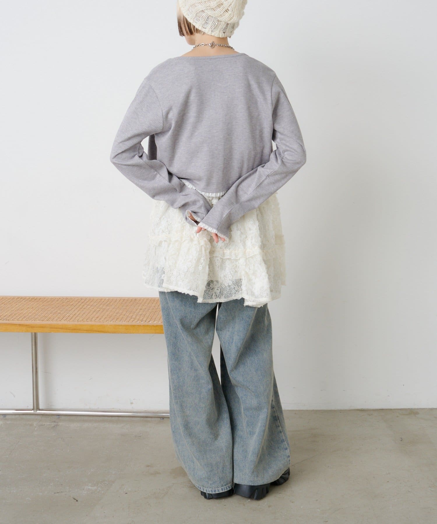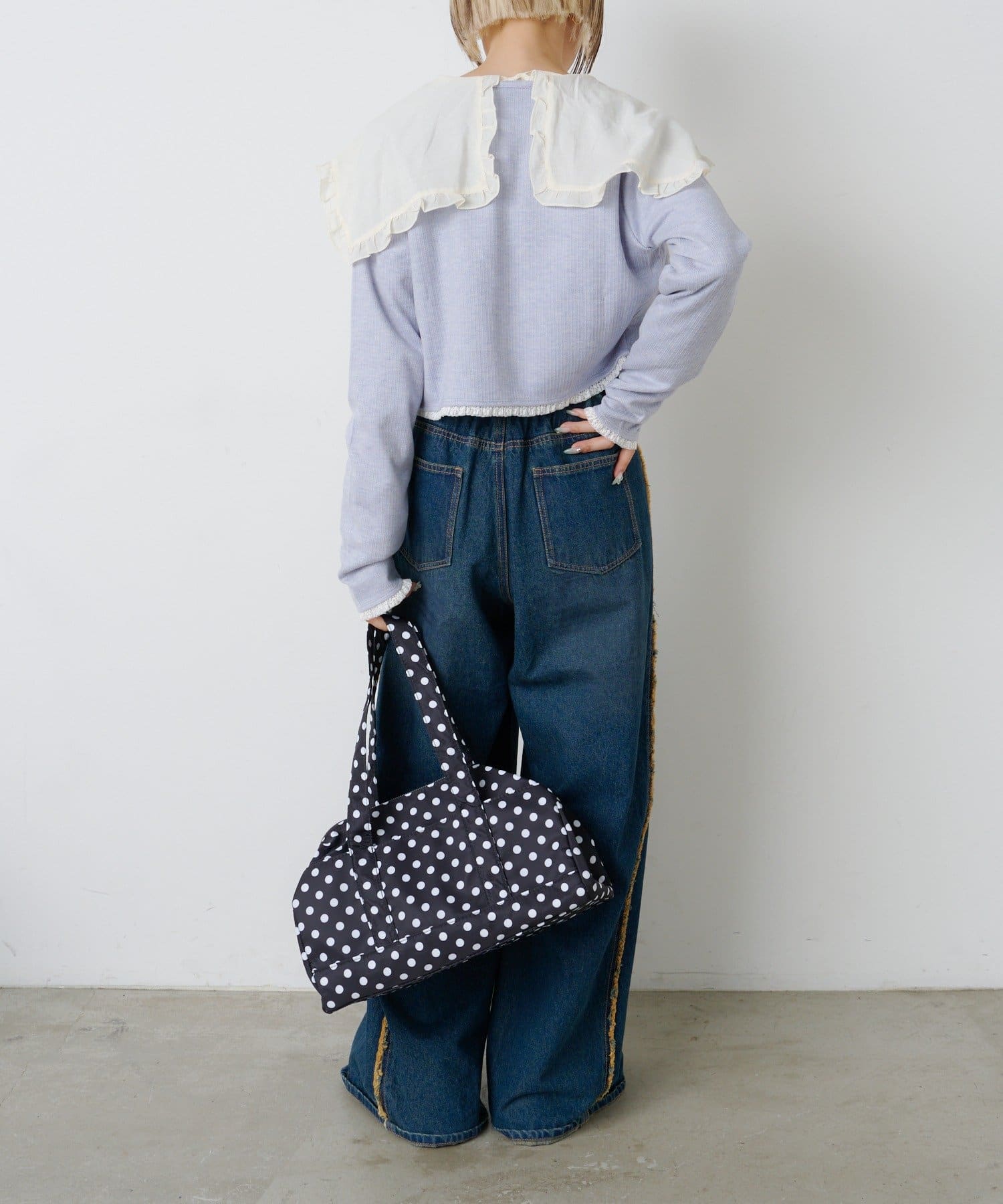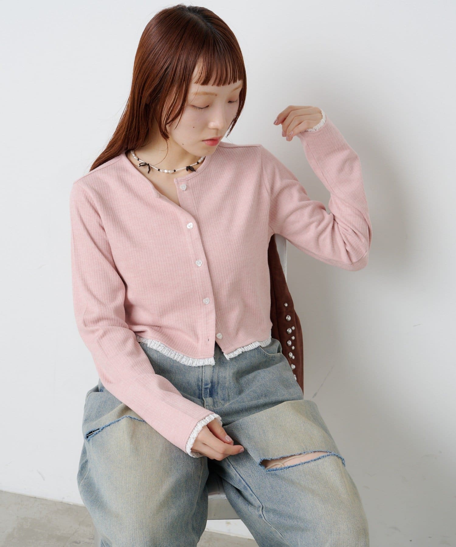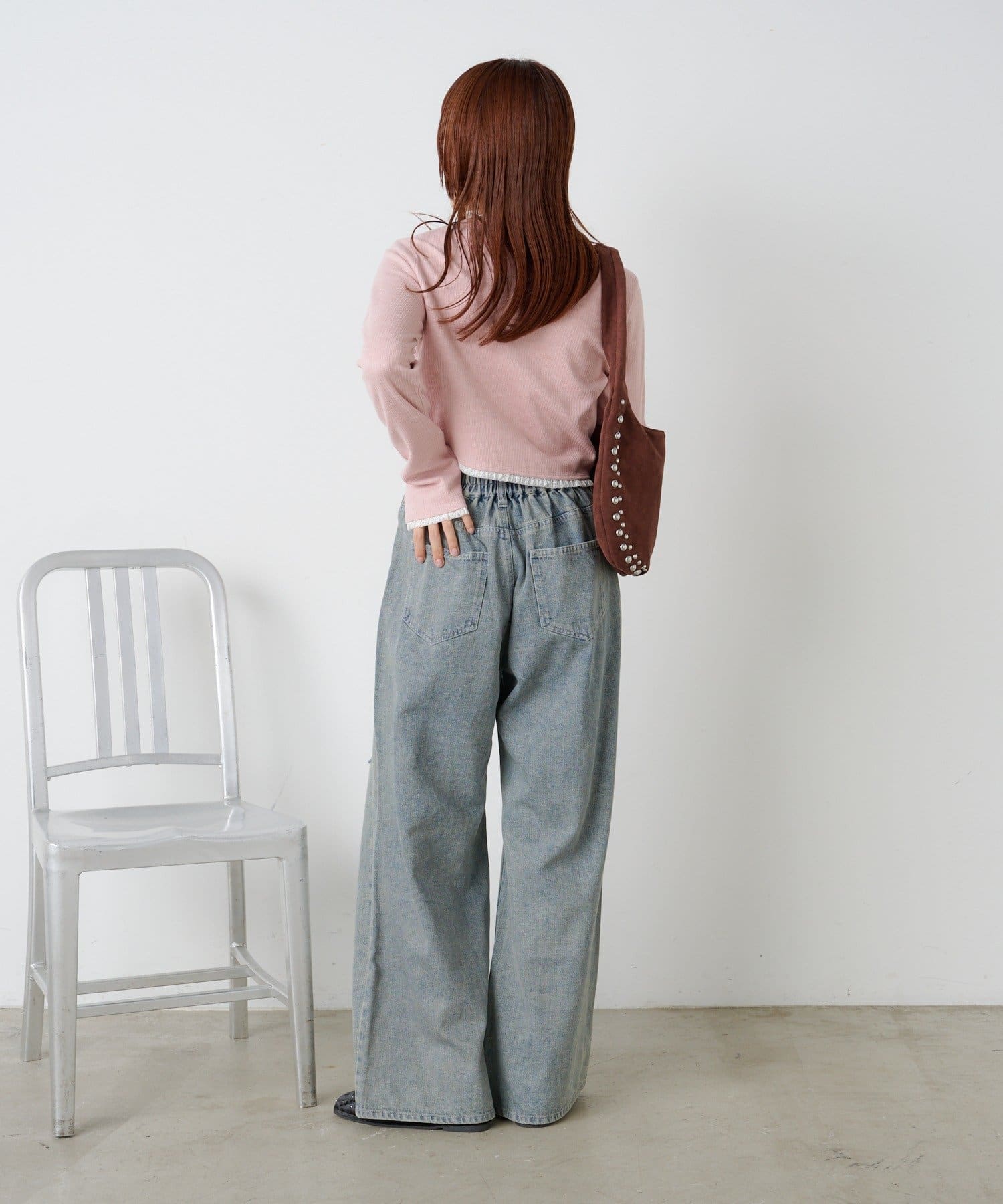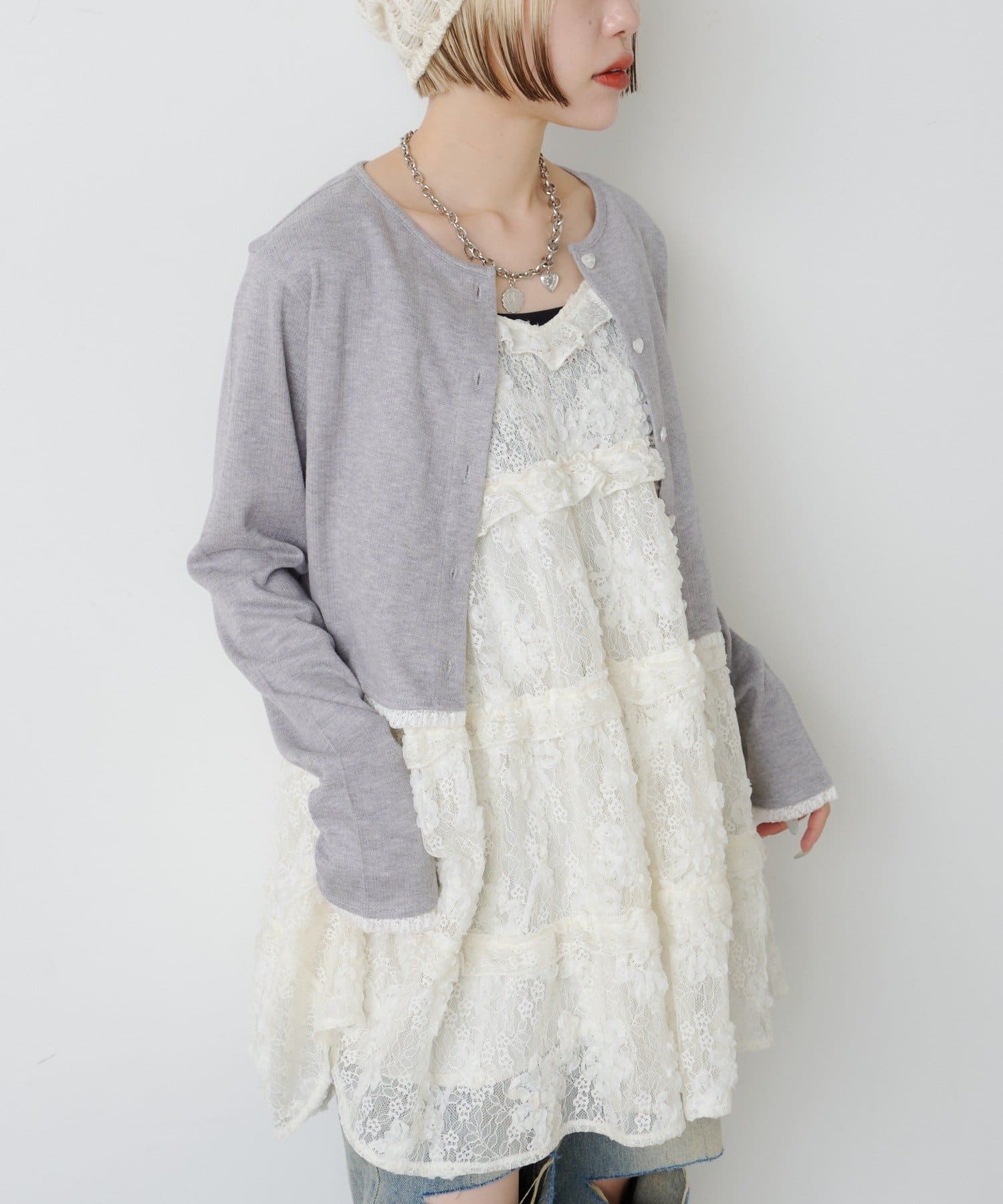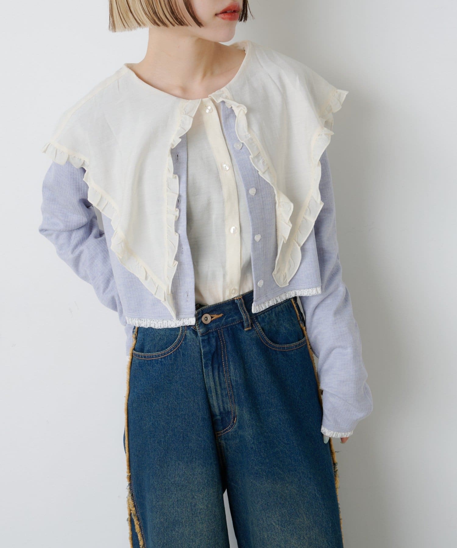 ・ラウンドネックなので襟のついたトップスと合わせるとよりかわいい♡