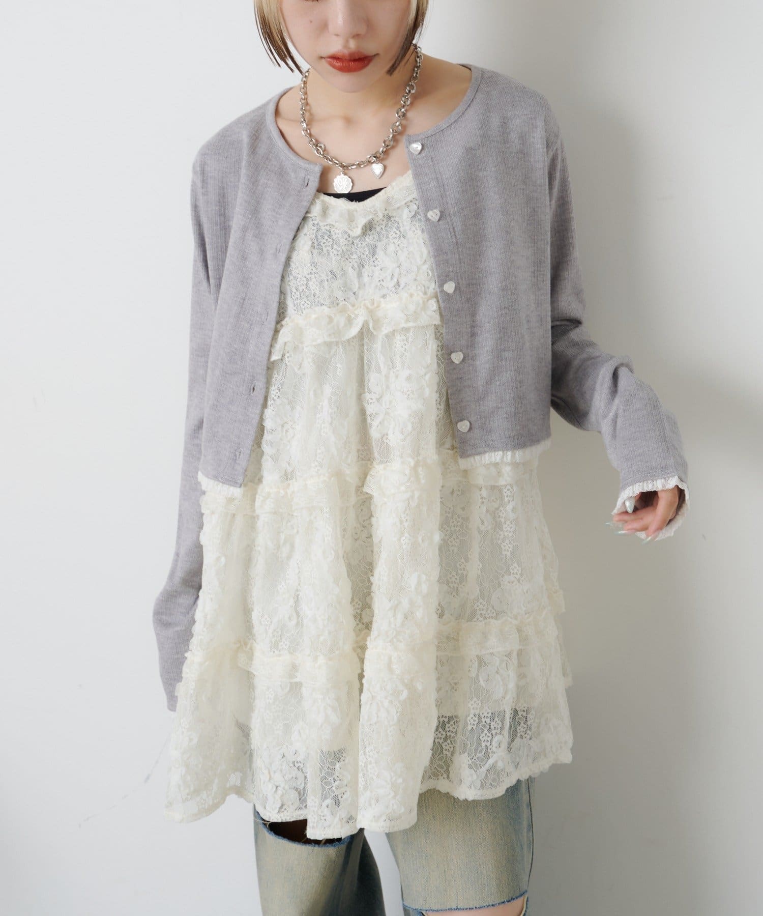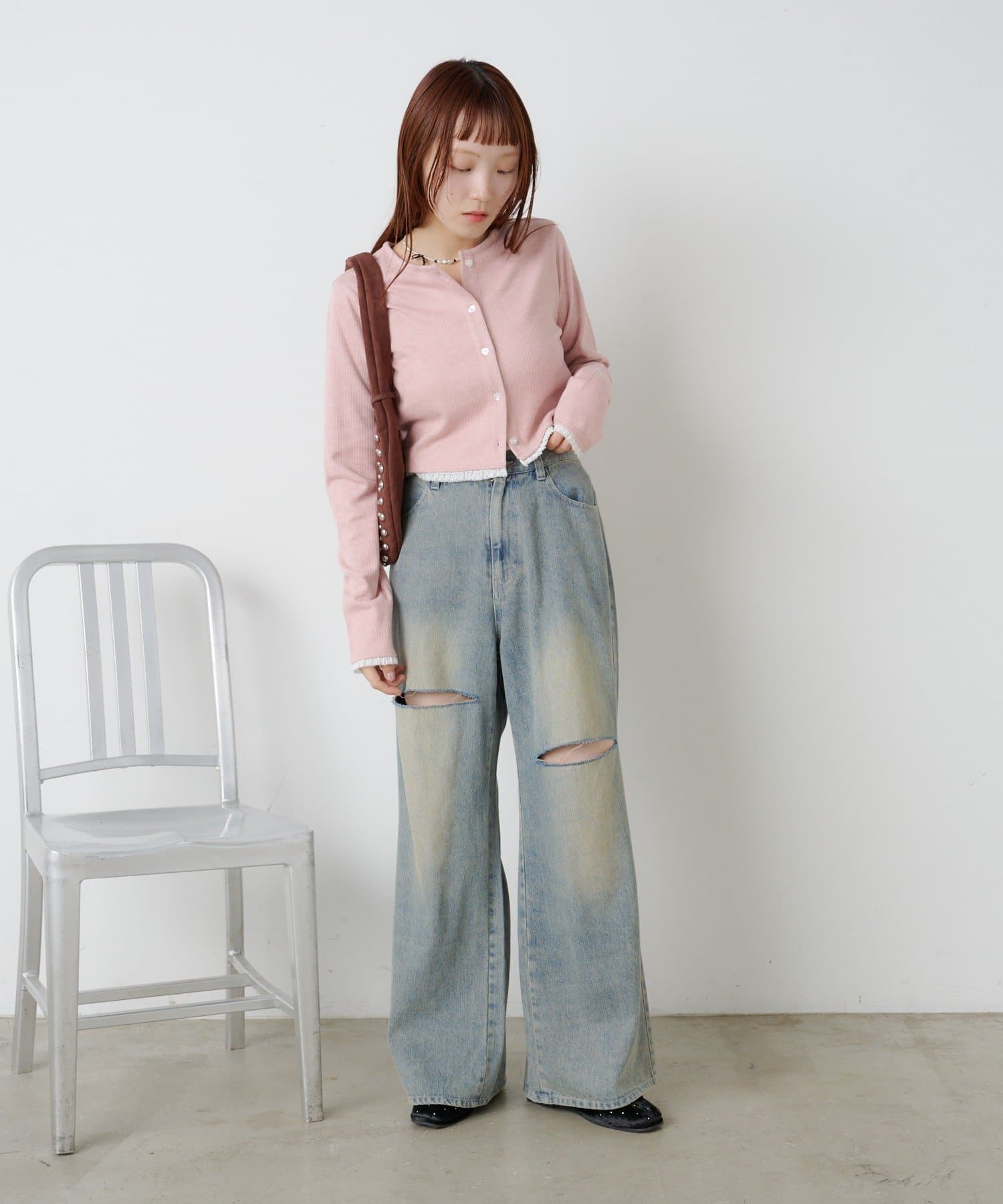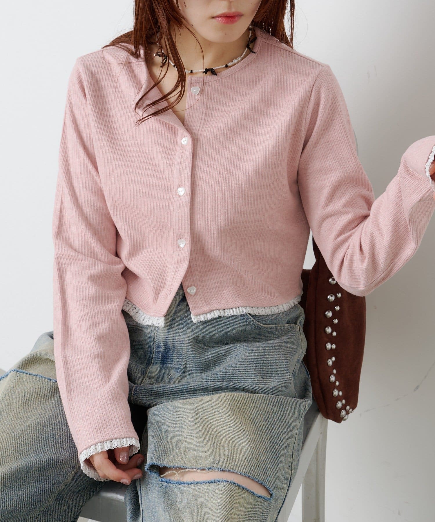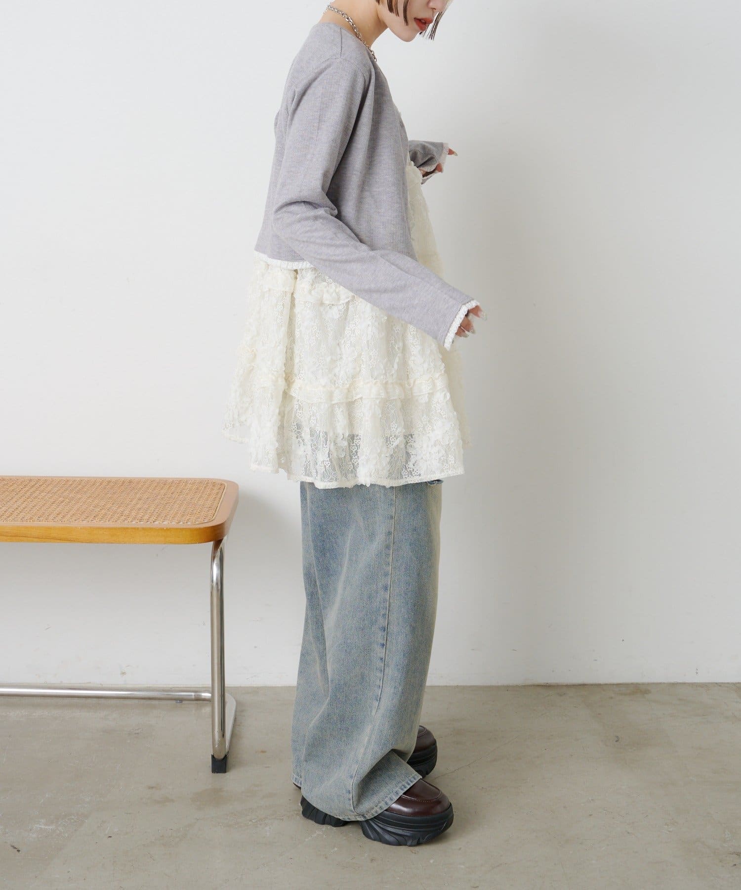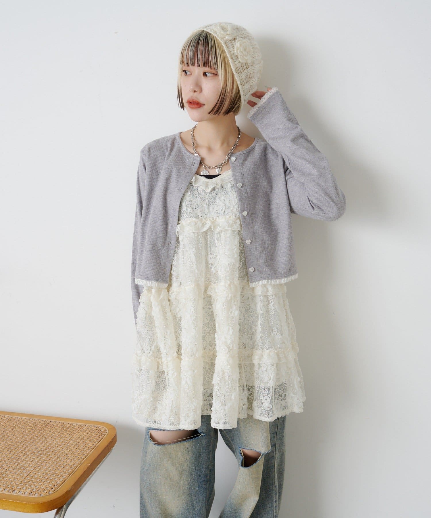 ・ラウンドネックなので襟のついたトップスと合わせるとよりかわいい♡
