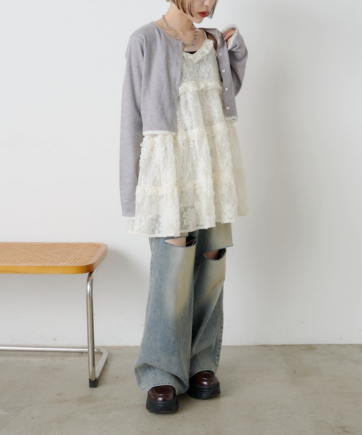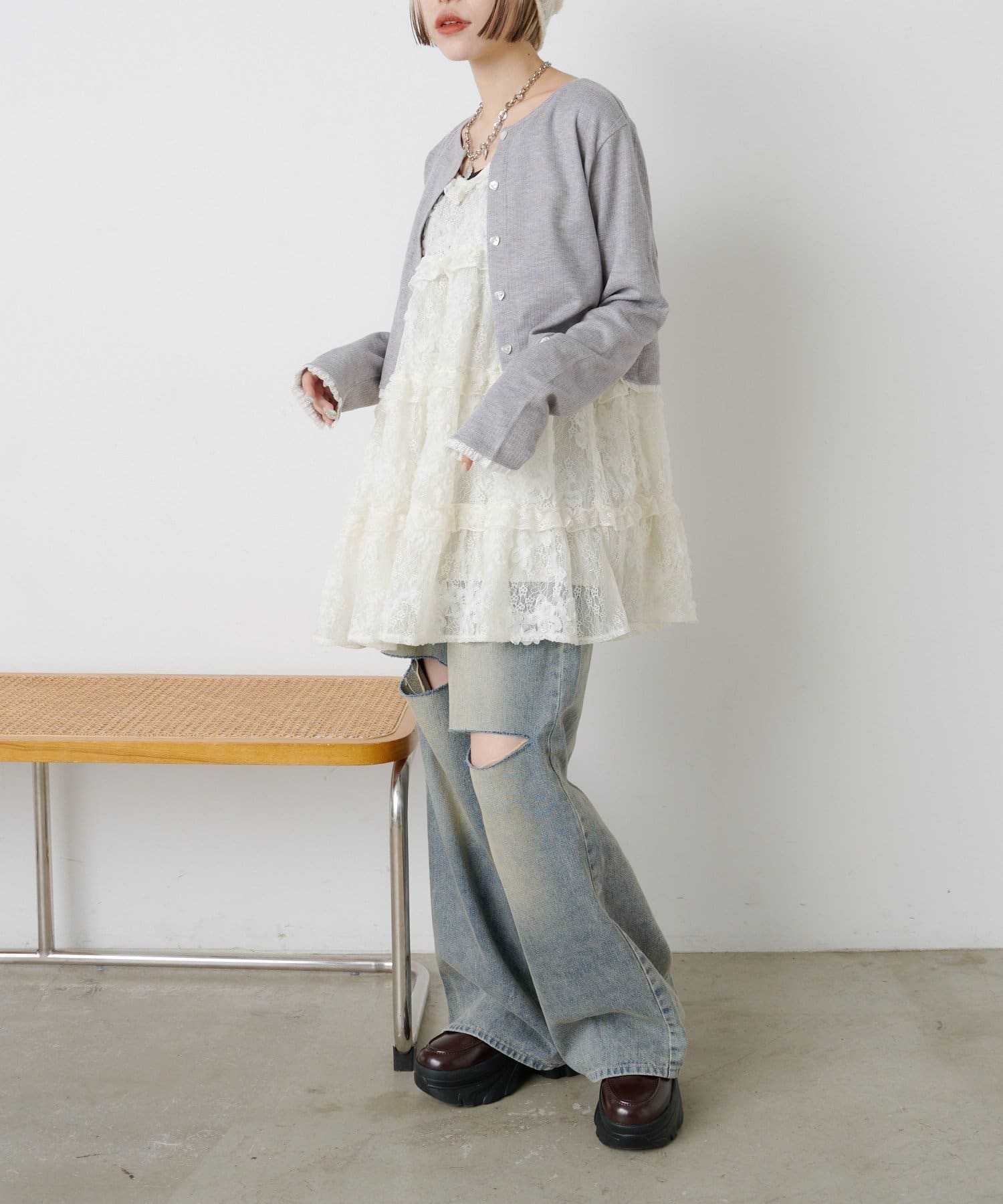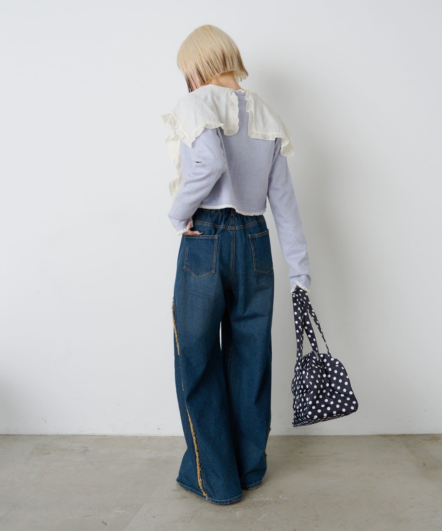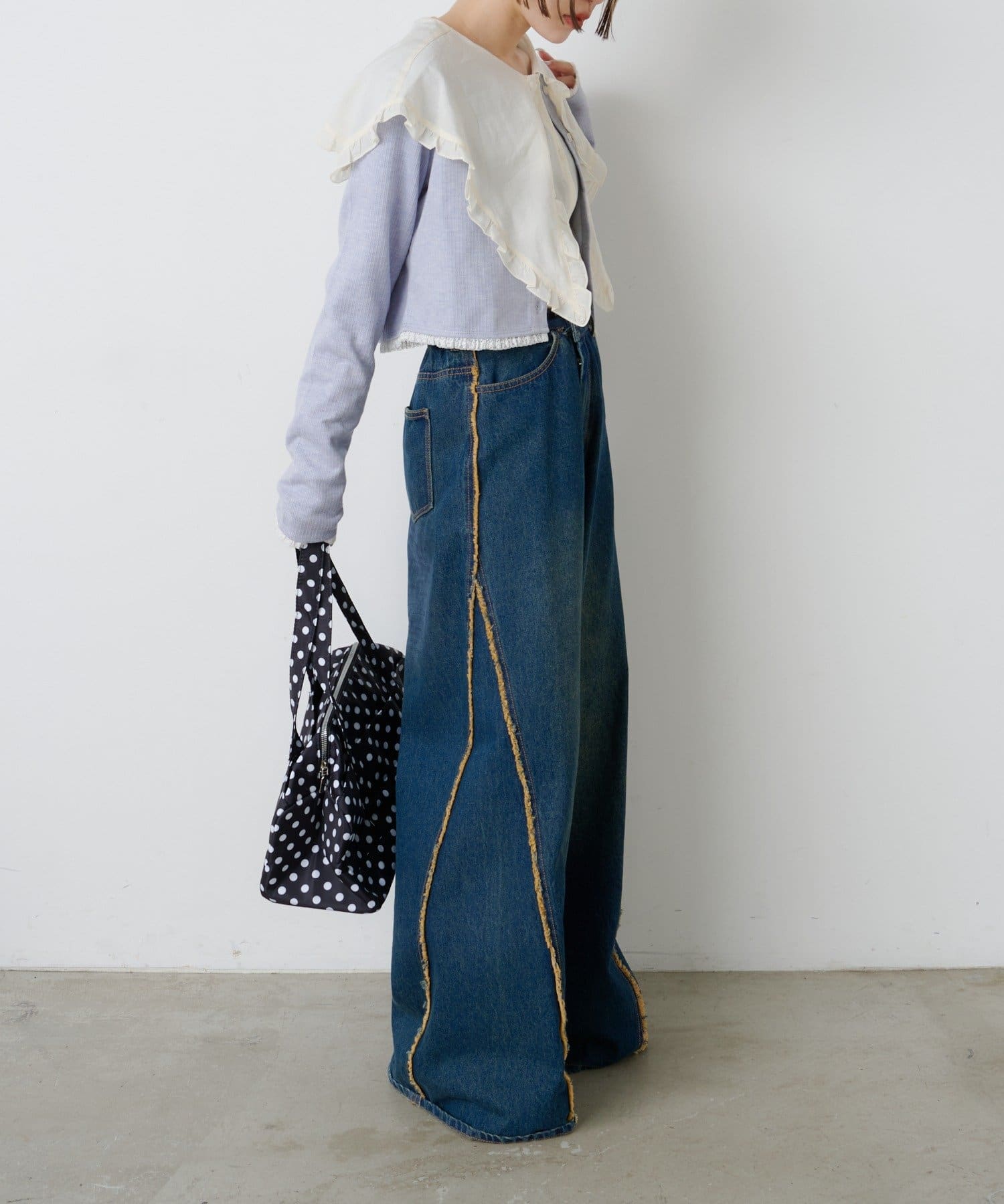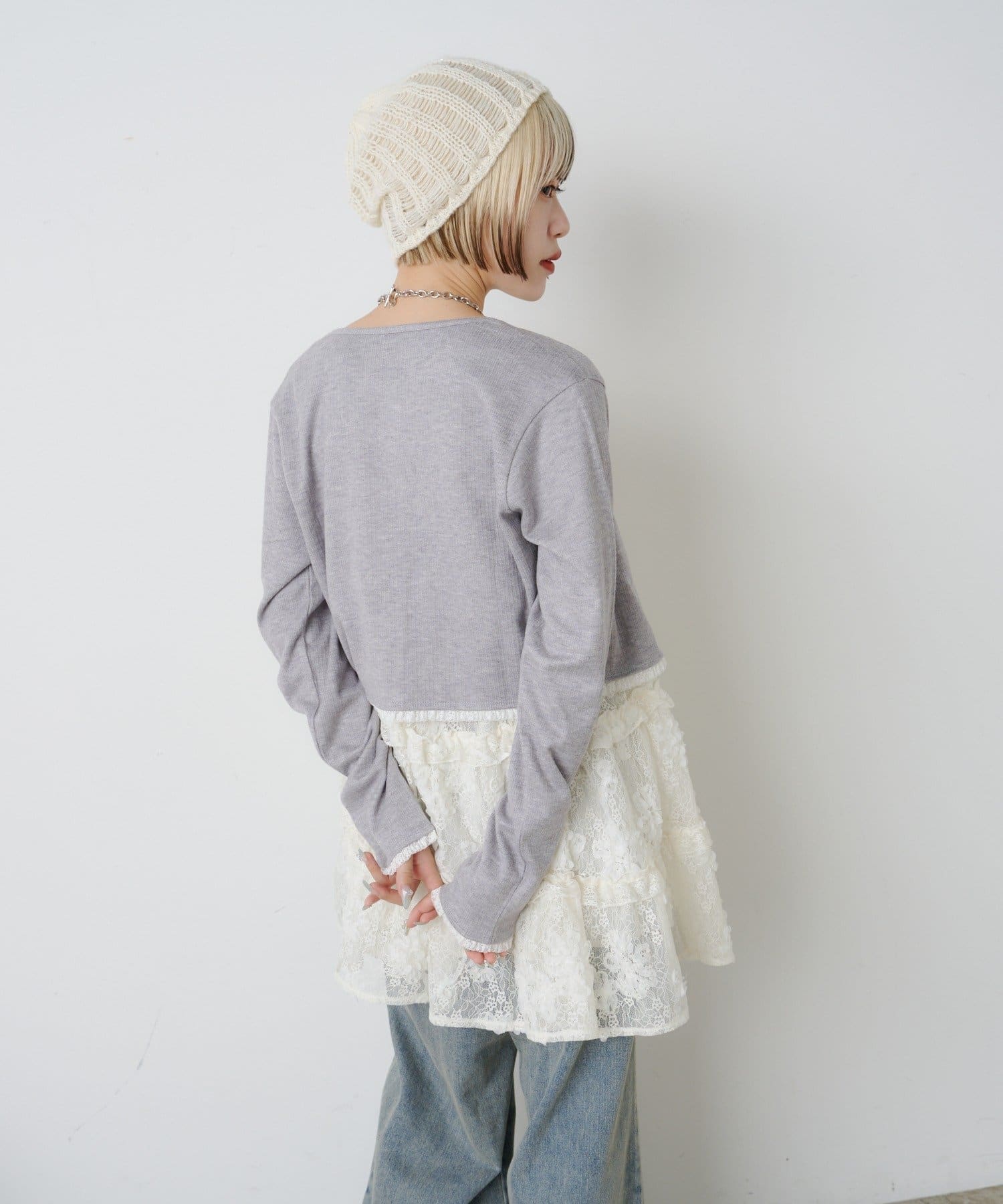 ・ラウンドネックなので襟のついたトップスと合わせるとよりかわいい♡
