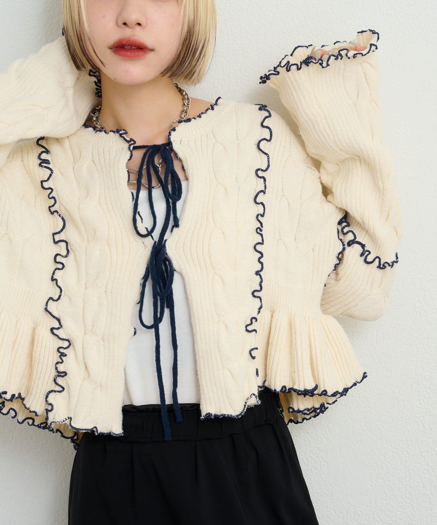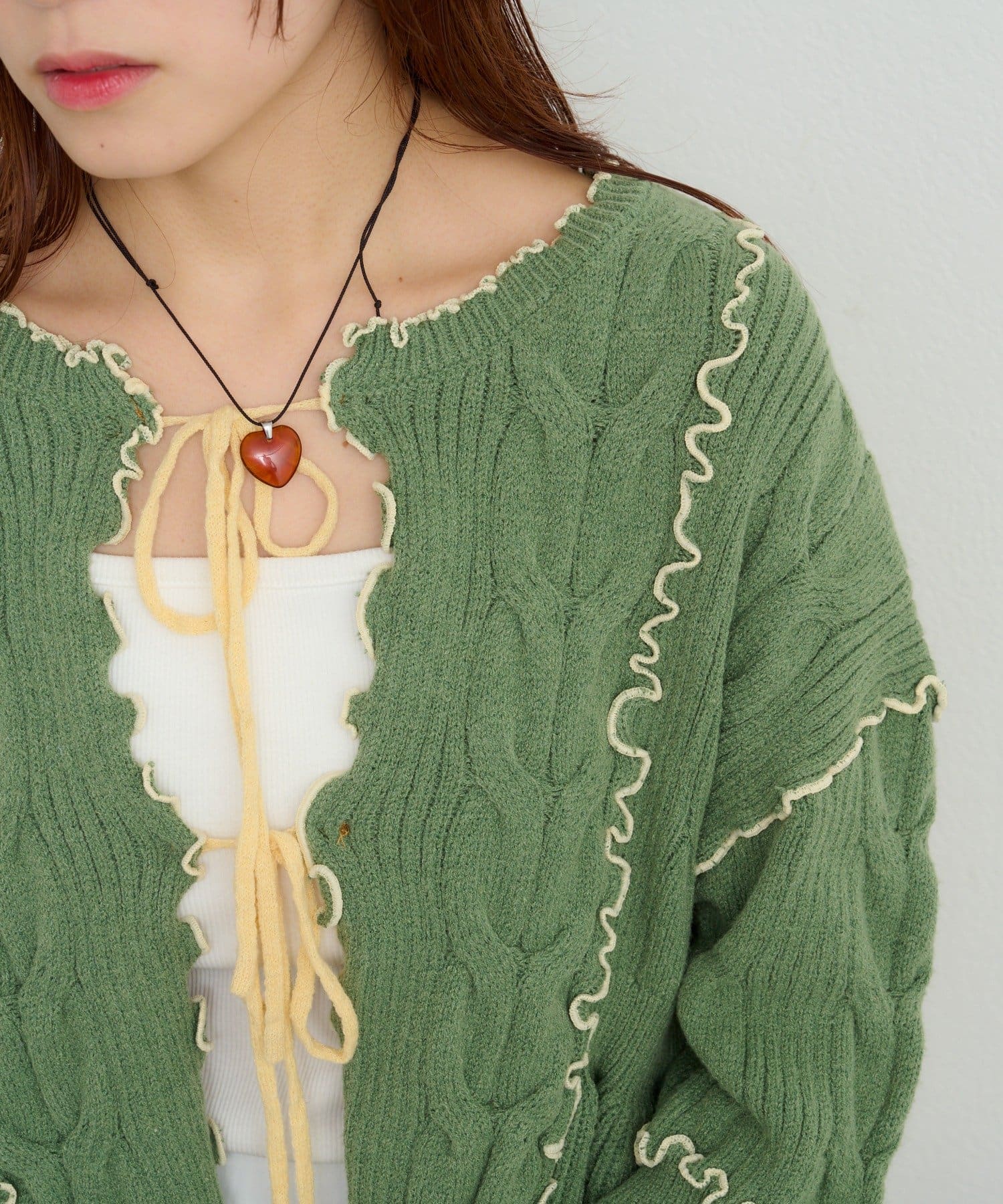 【予約人気アイテムNO.1】配色メロウケーブルリボンカーデ