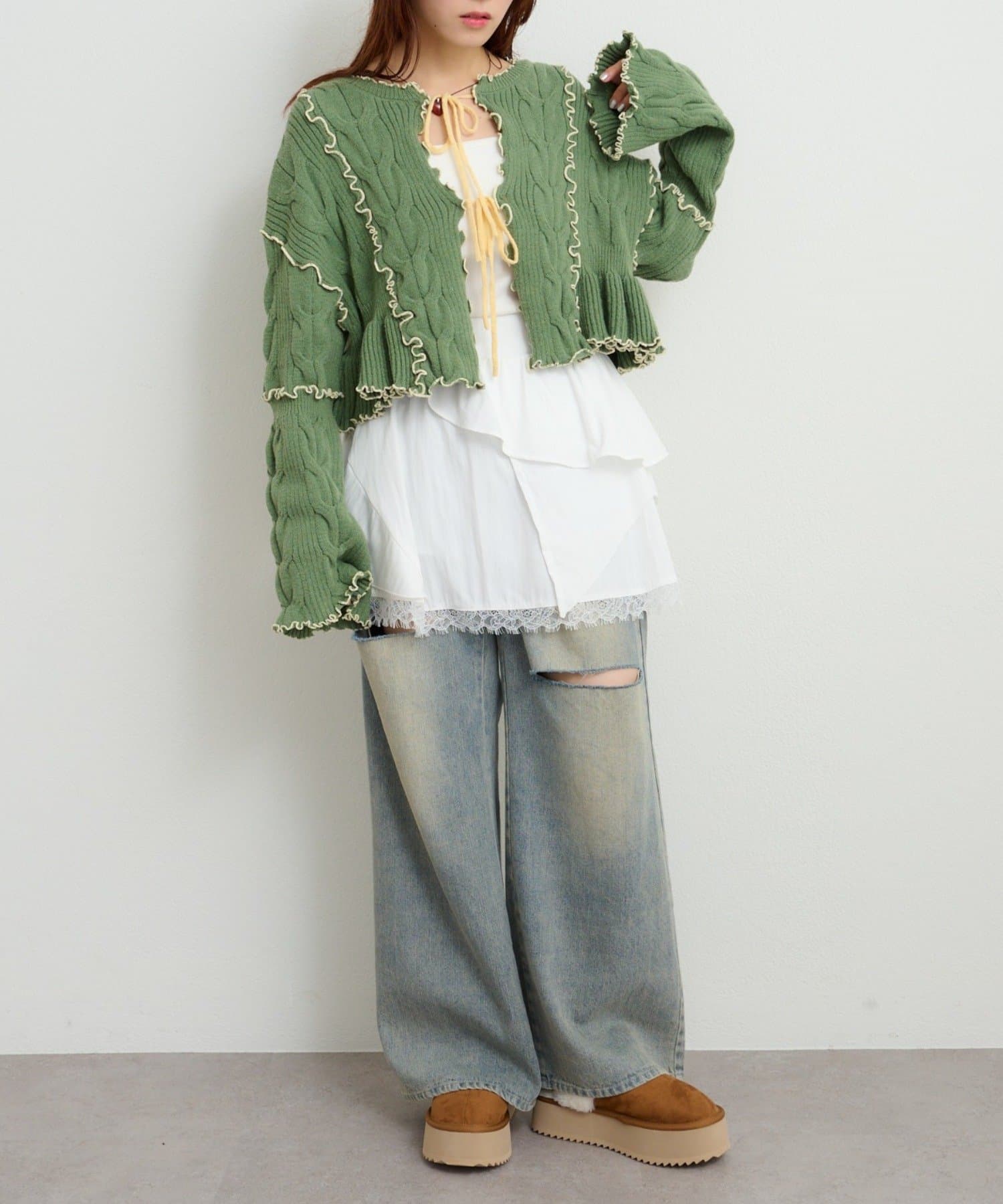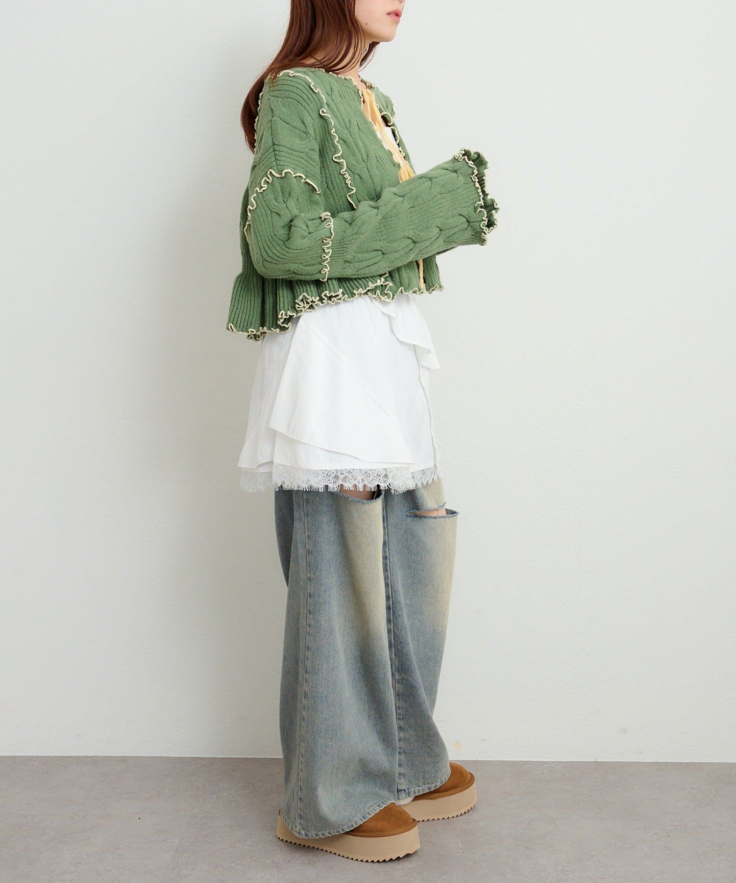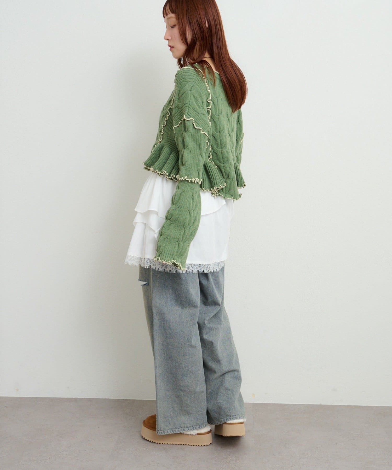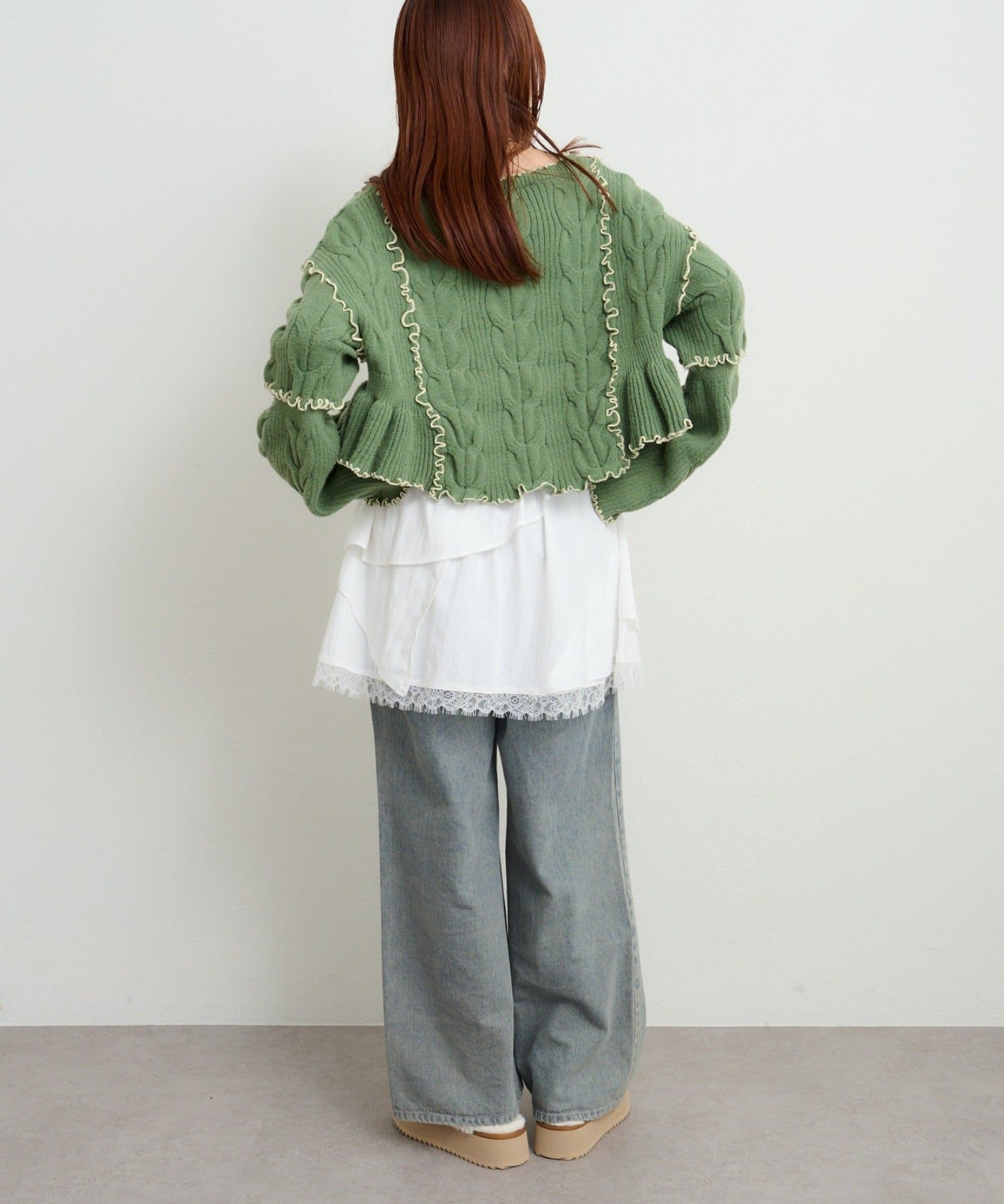 ・ケーブルデザインと裾のフリルで程よく立体感も出て季節感がUP♪