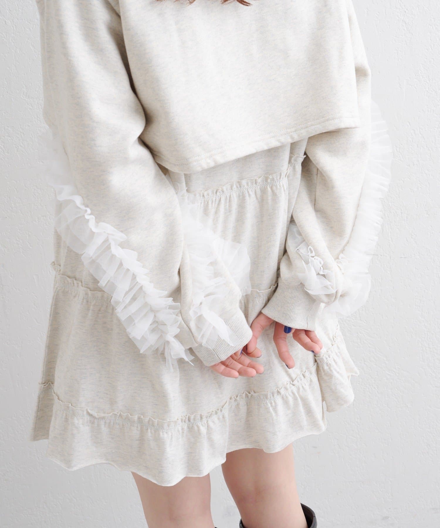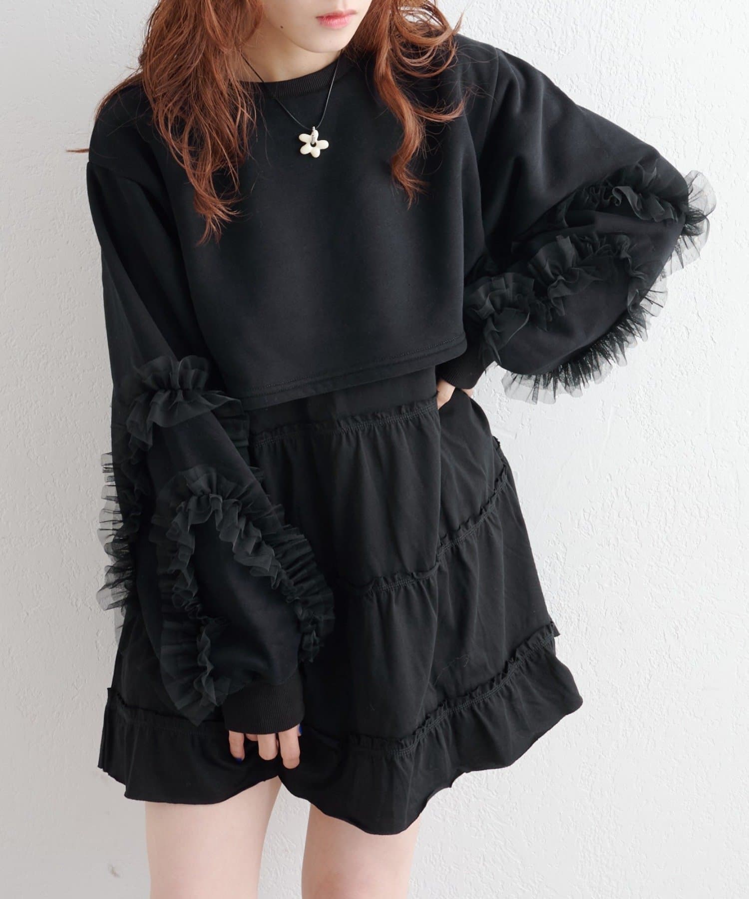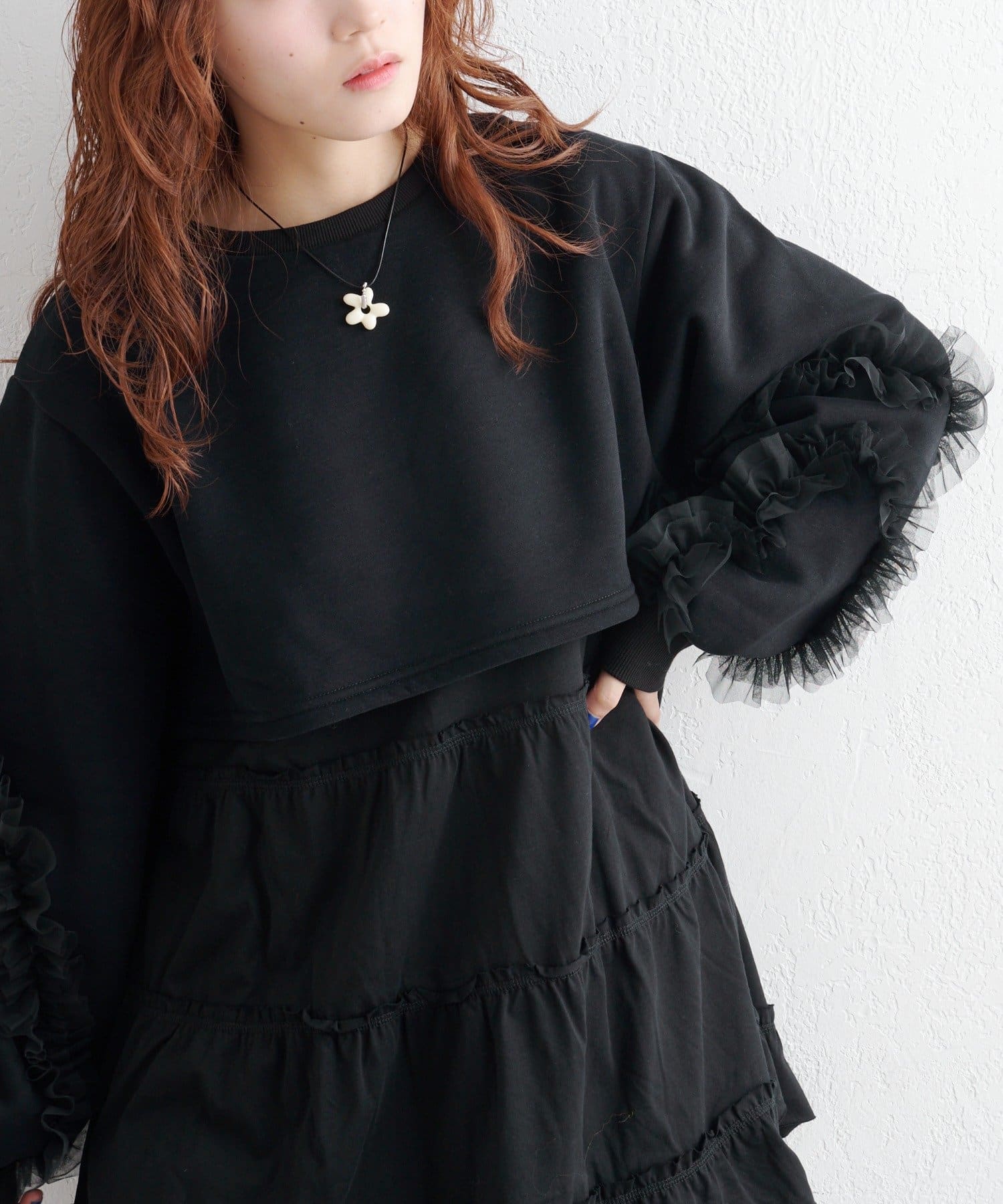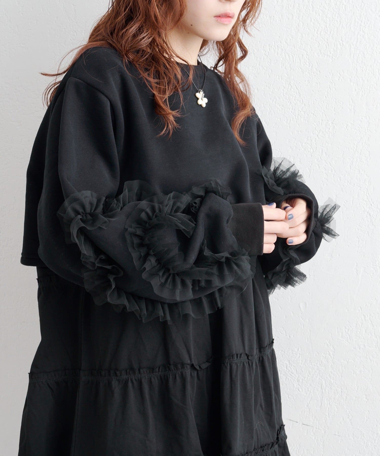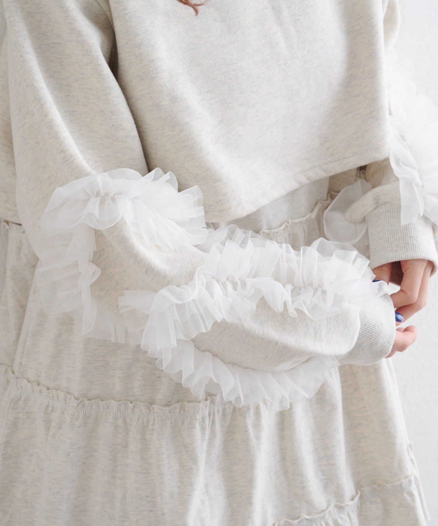 【1枚でオシャレ見え♪】チュールスリーブスウェットワンピース