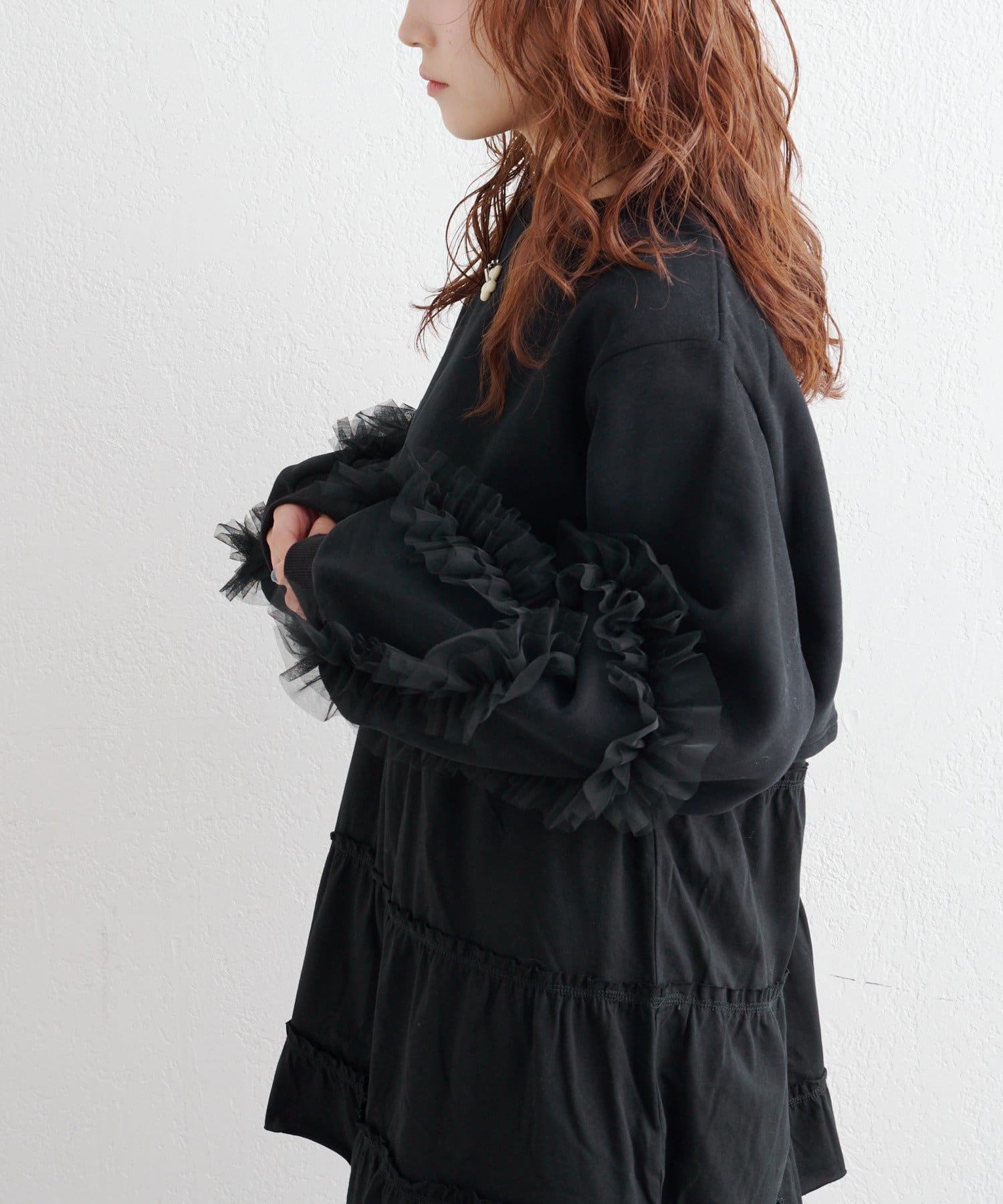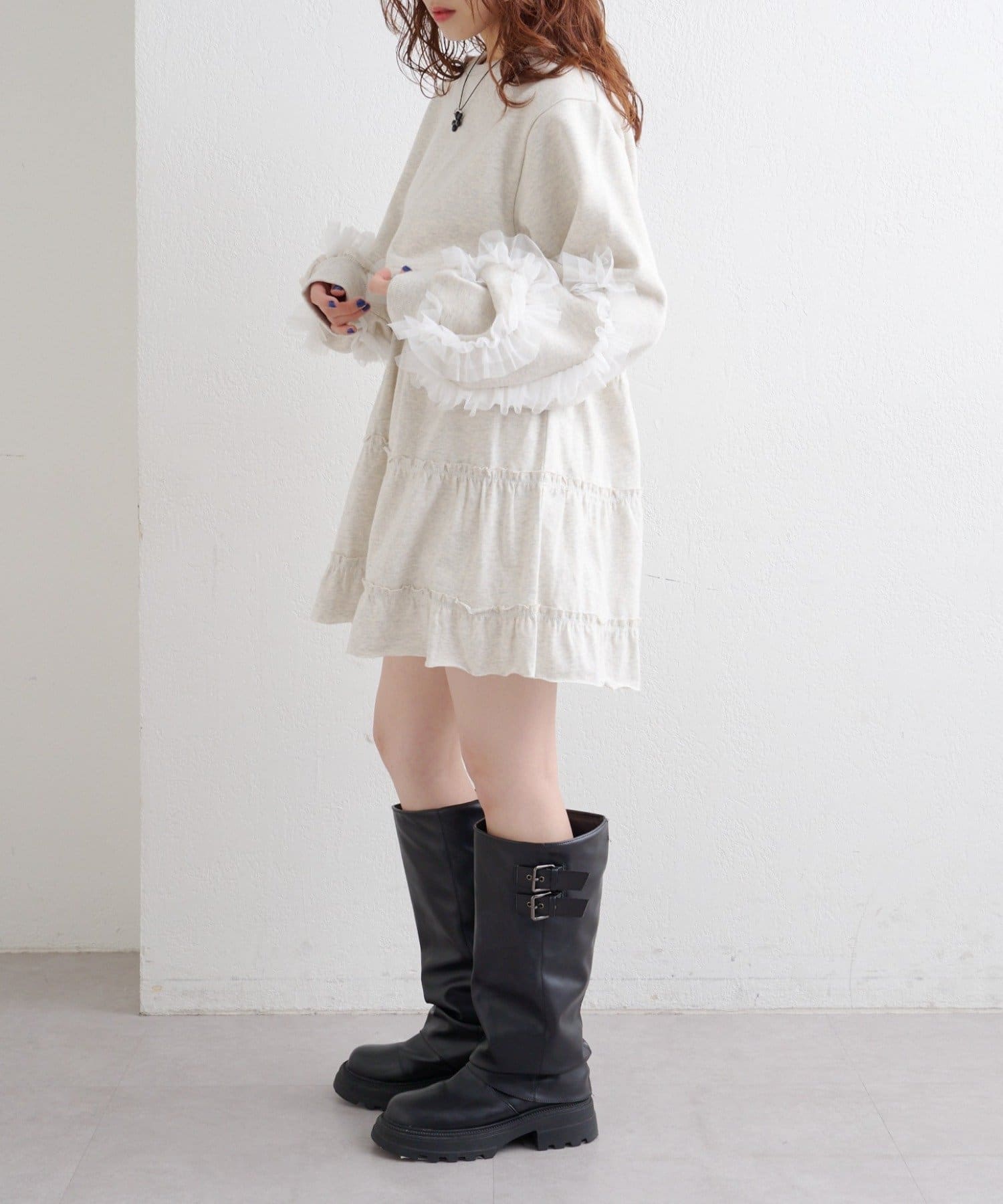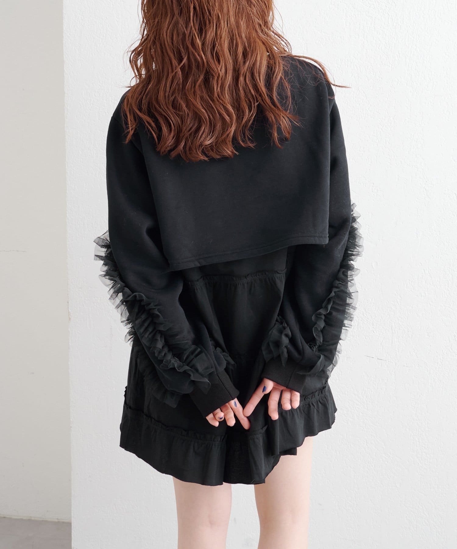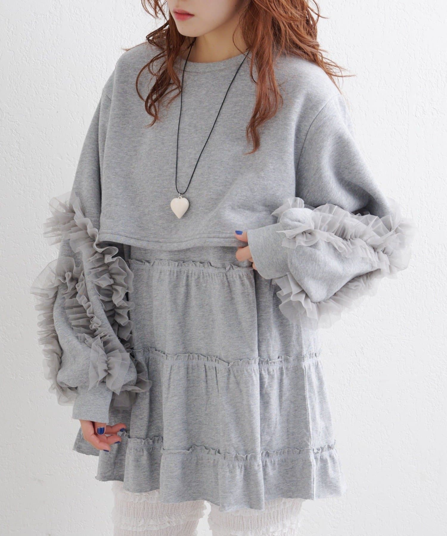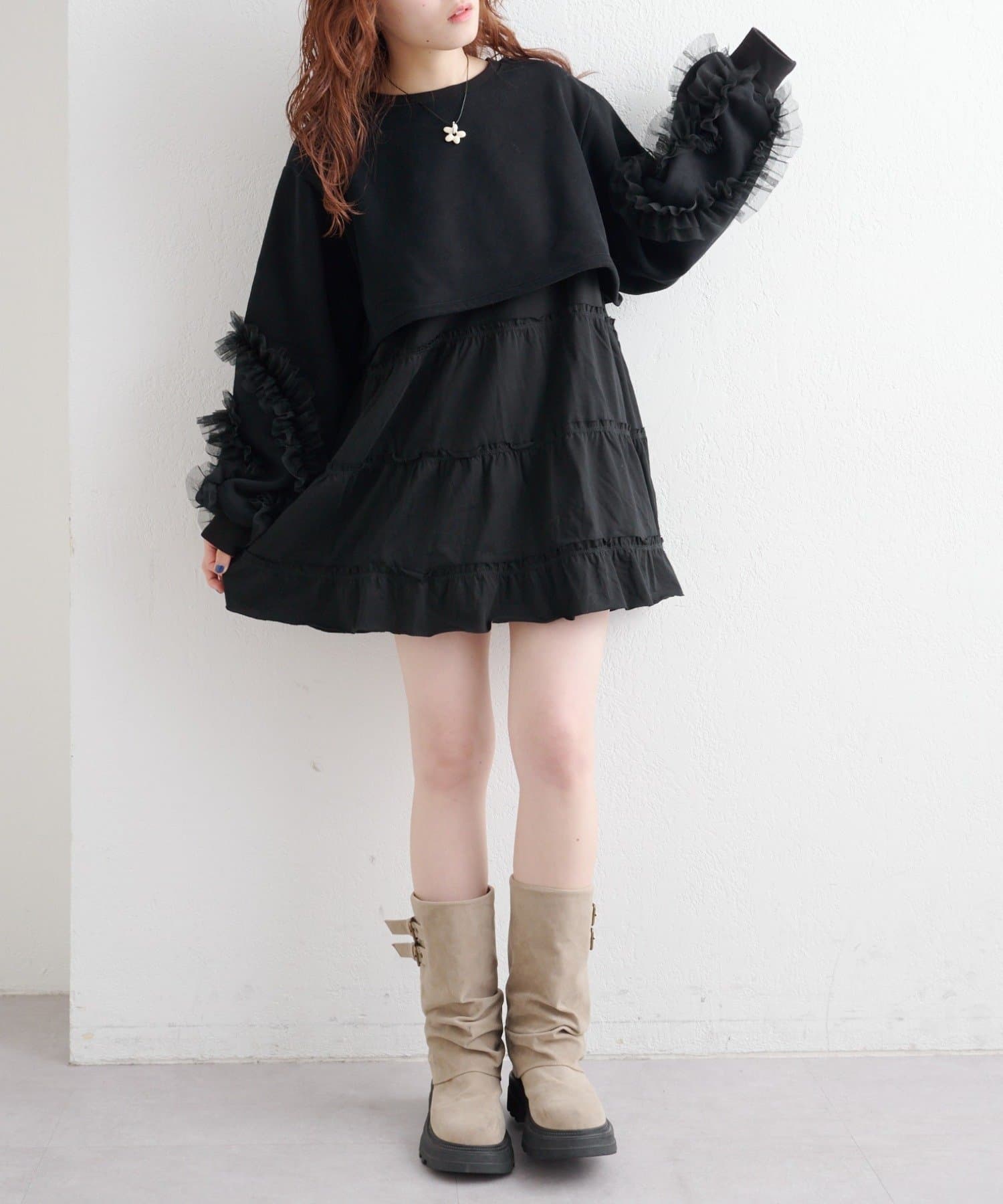 【1枚でオシャレ見え♪】チュールスリーブスウェットワンピース