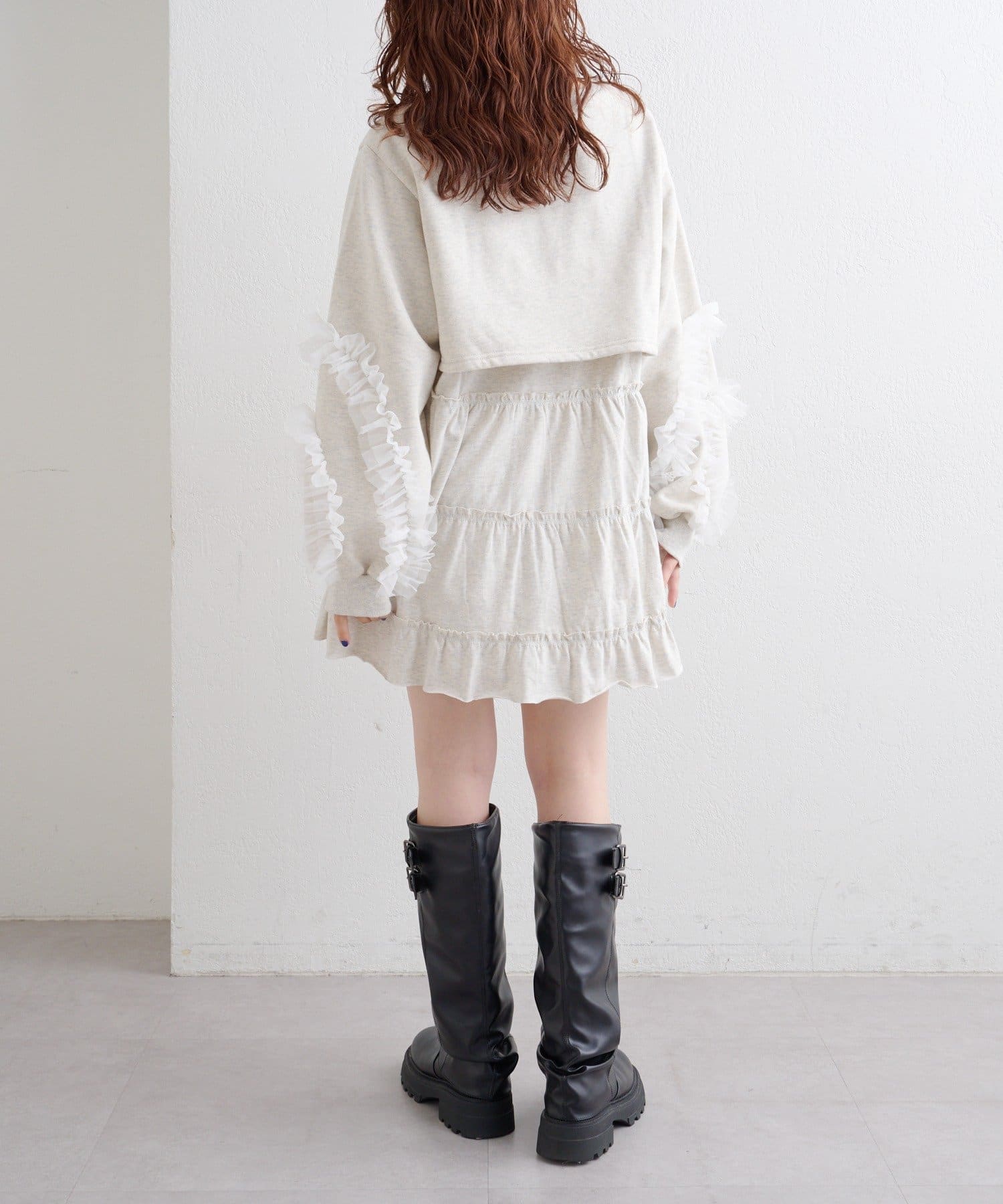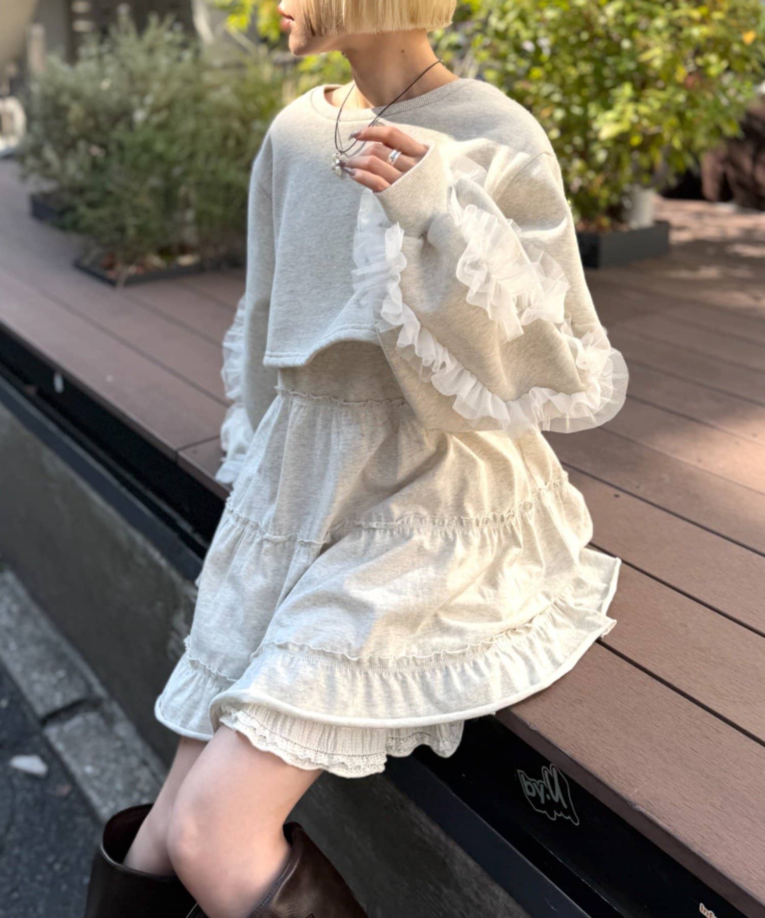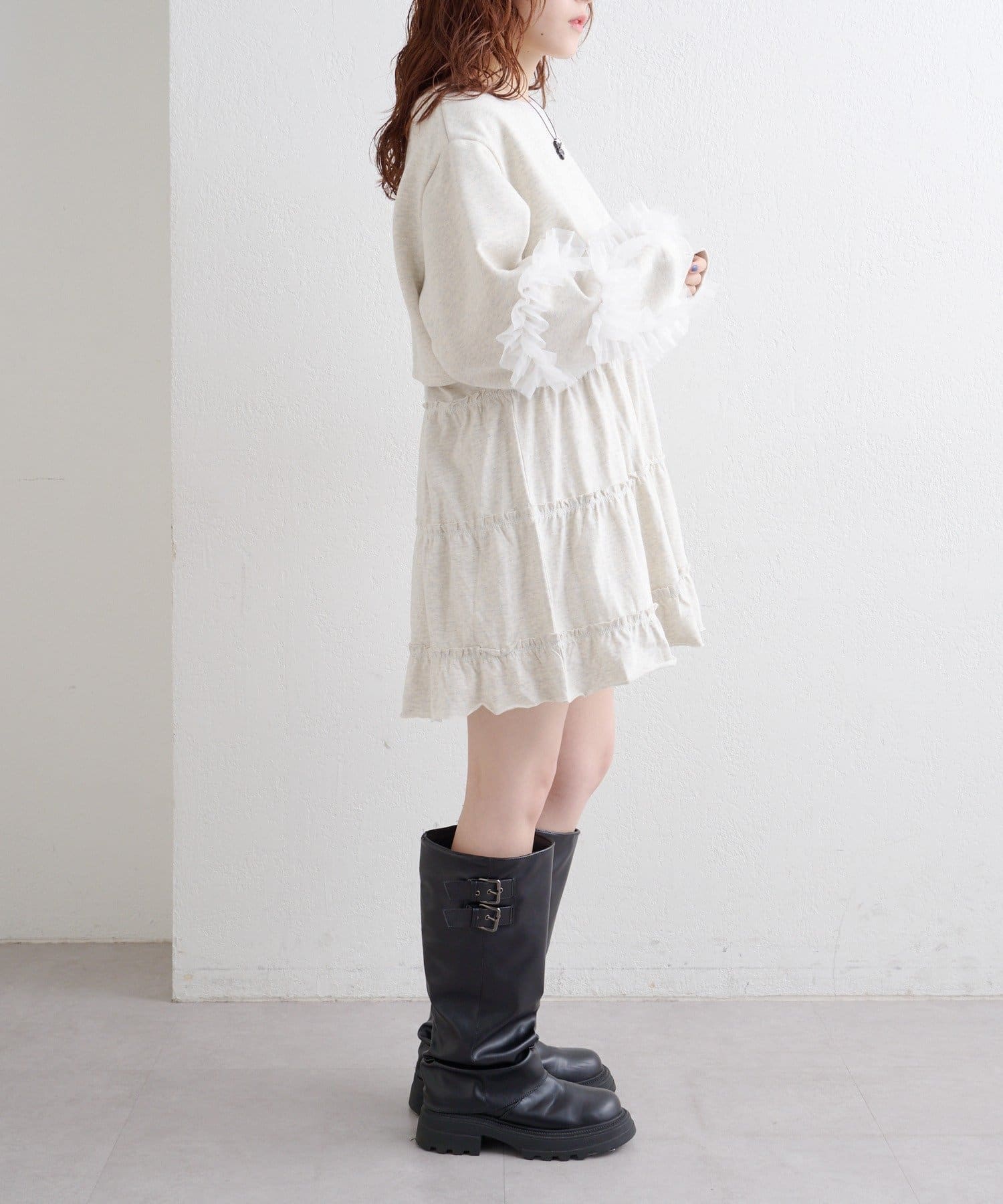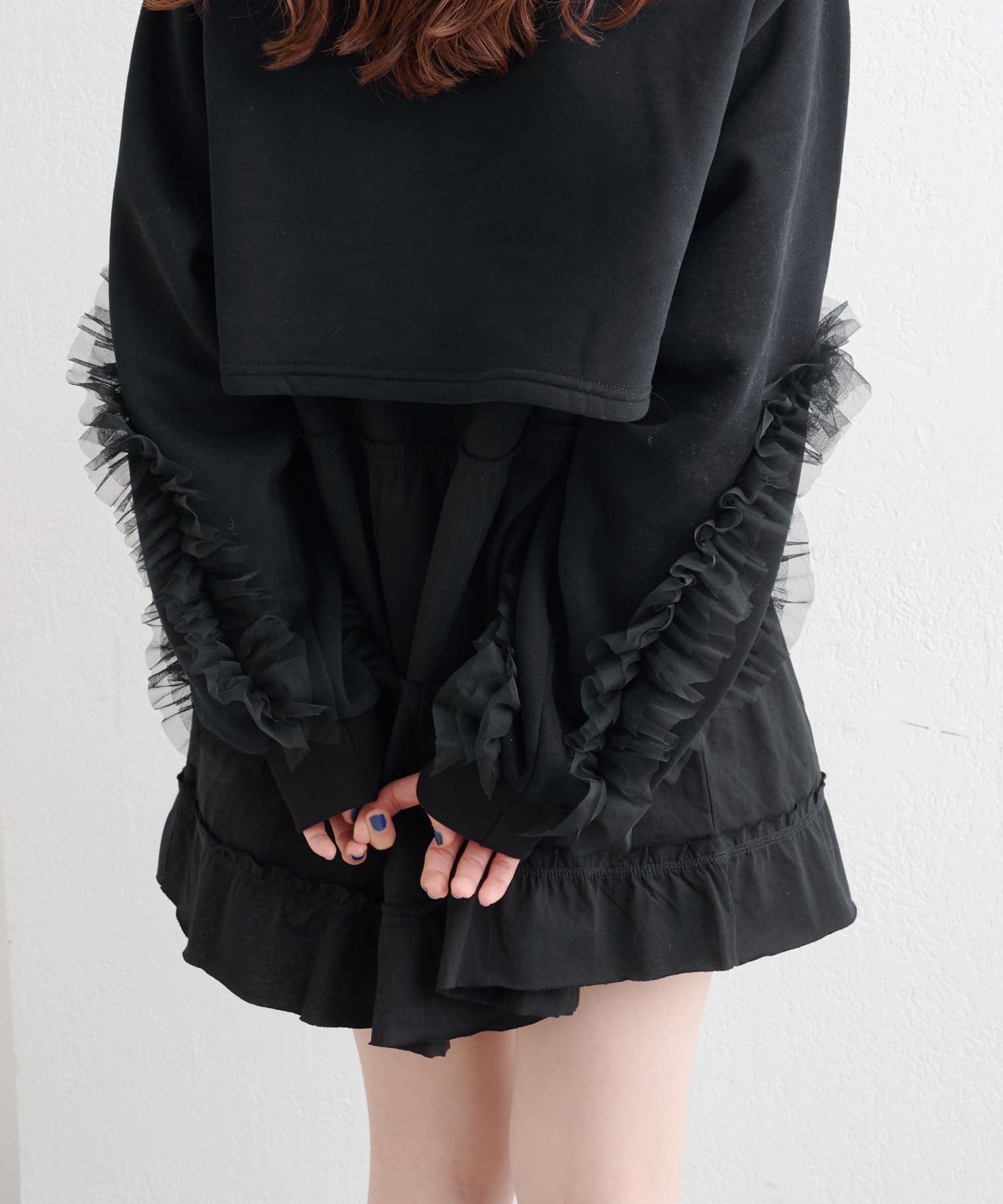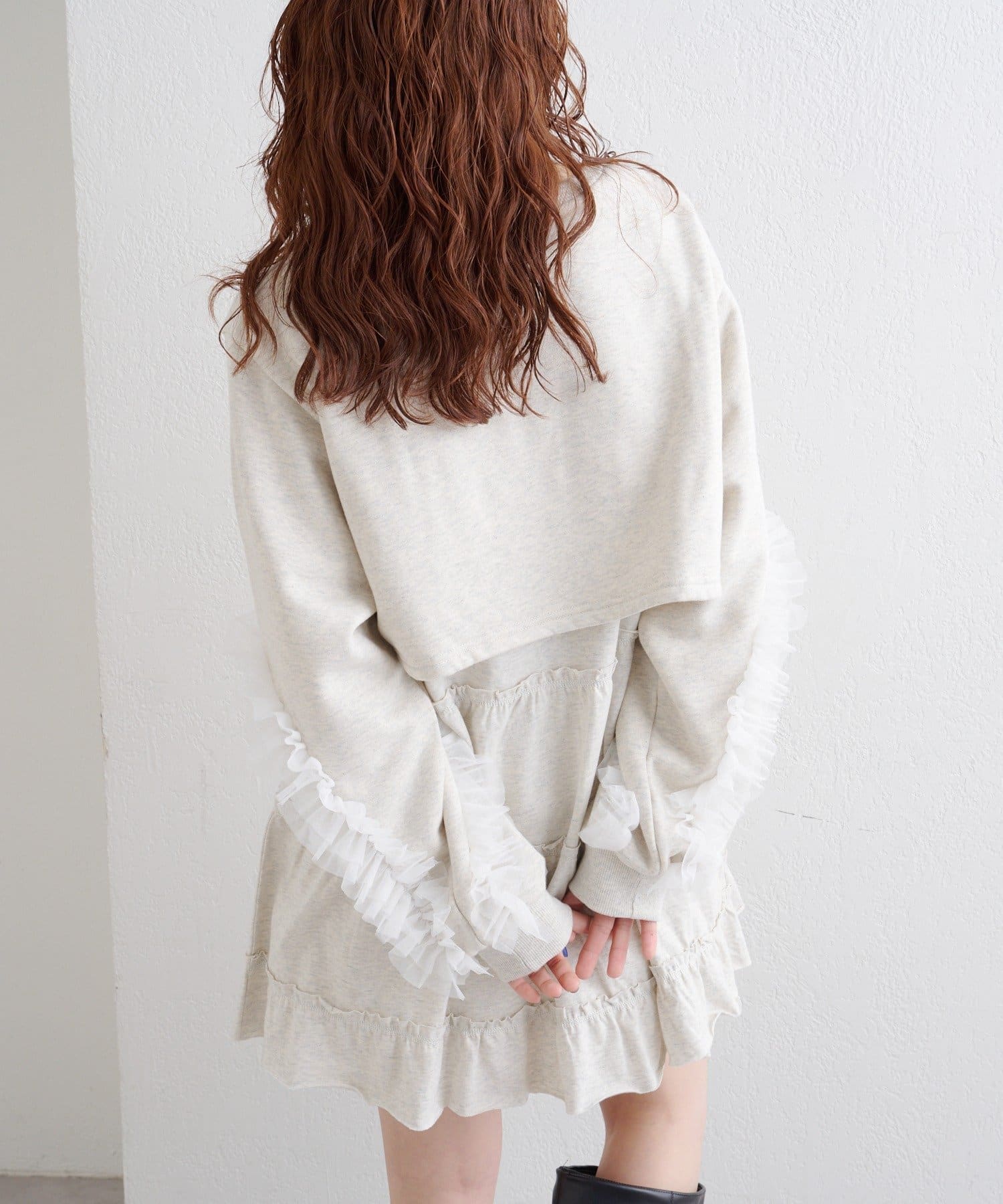 【1枚でオシャレ見え♪】チュールスリーブスウェットワンピース